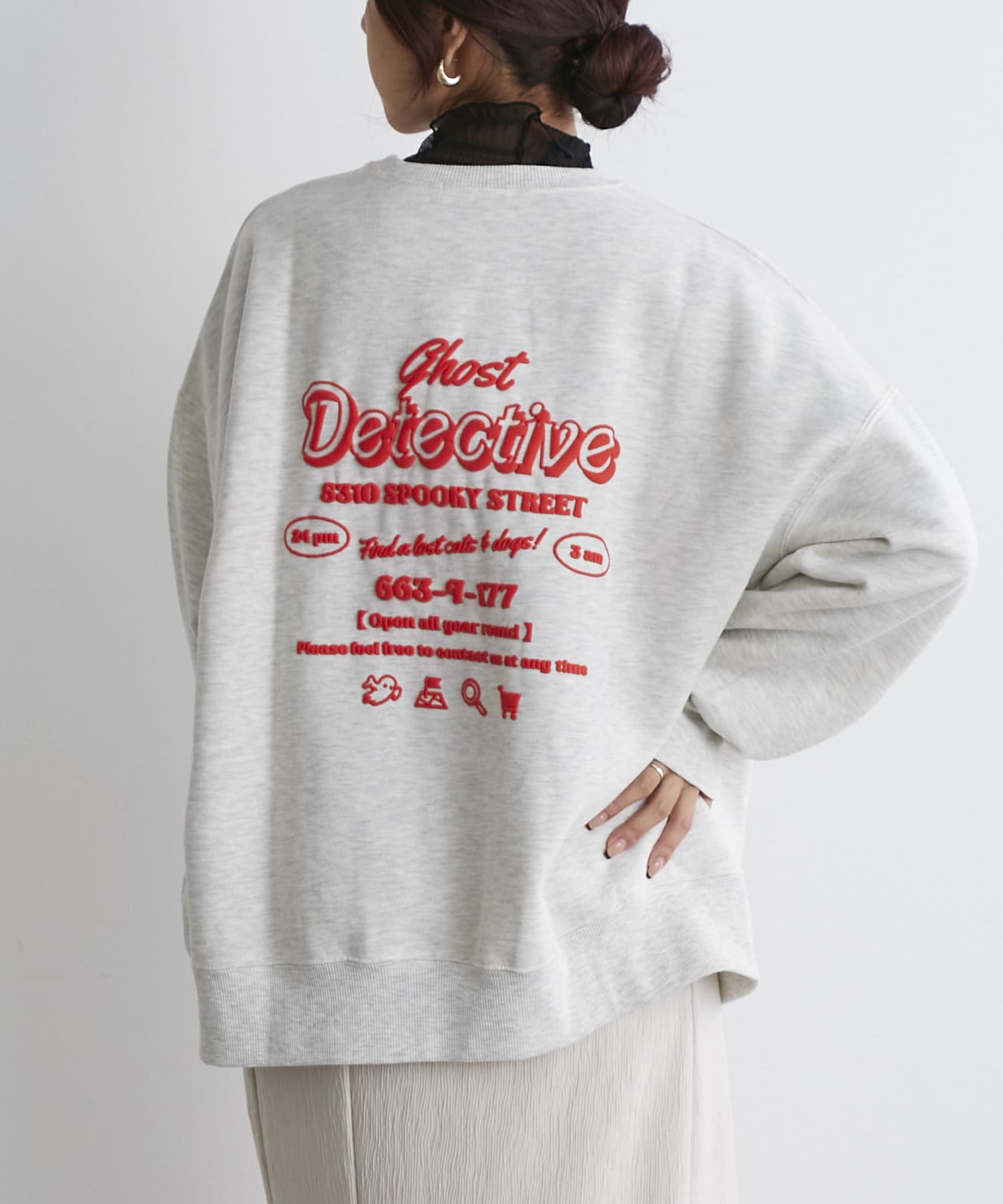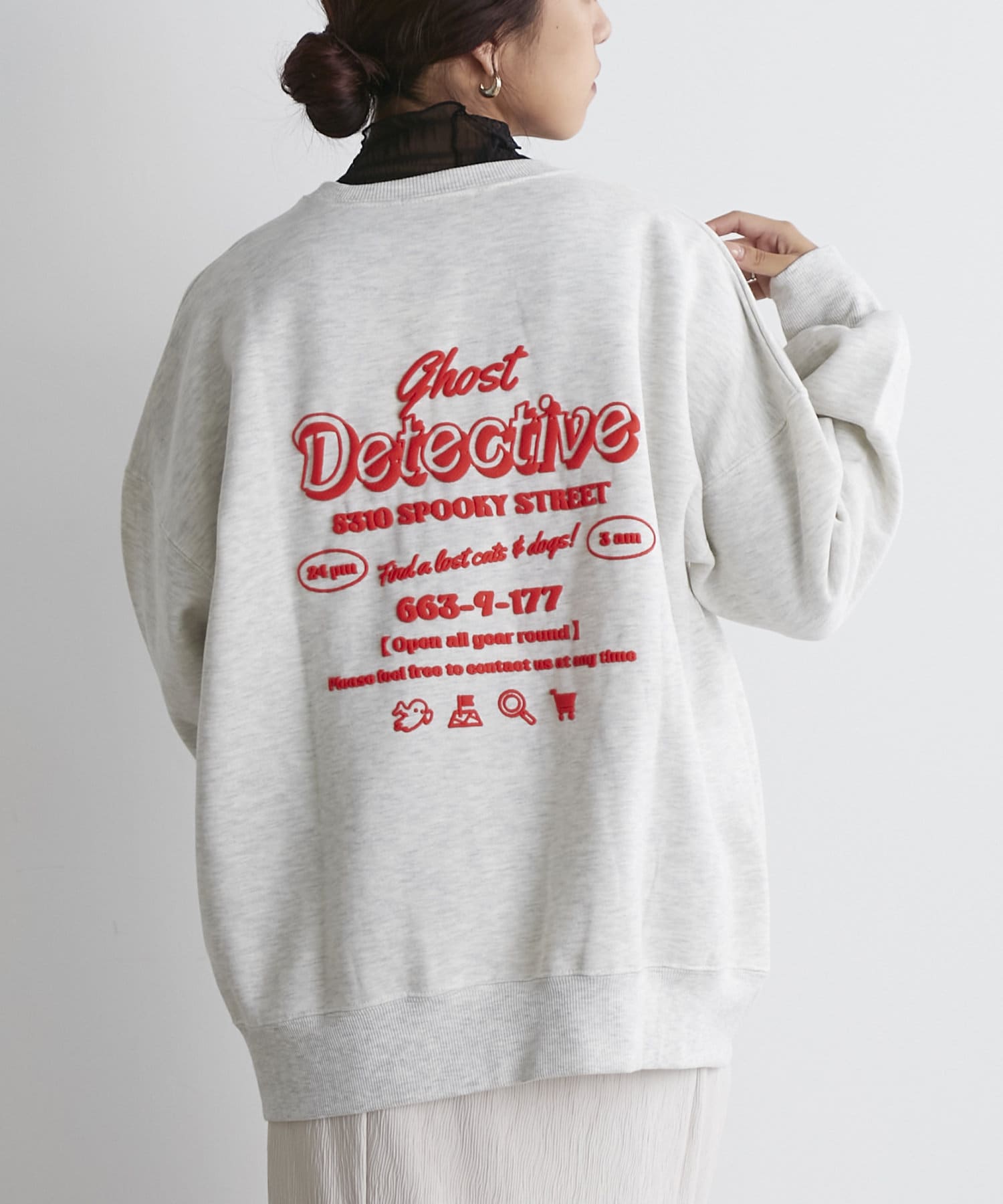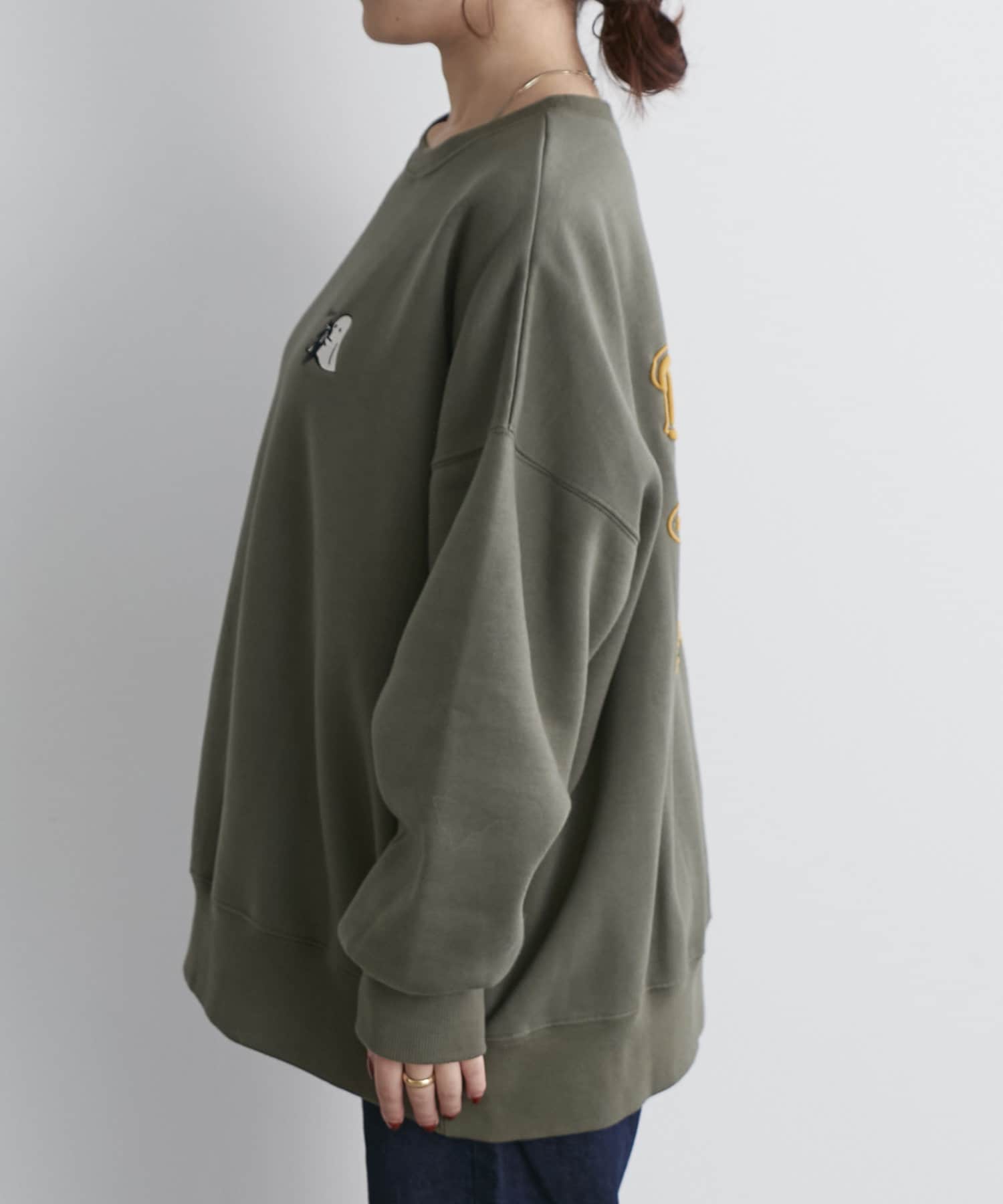 ・フロントにはさりげないおばけ刺繍とバックは目を惹く発泡ロゴプリントがコーデのポイントに