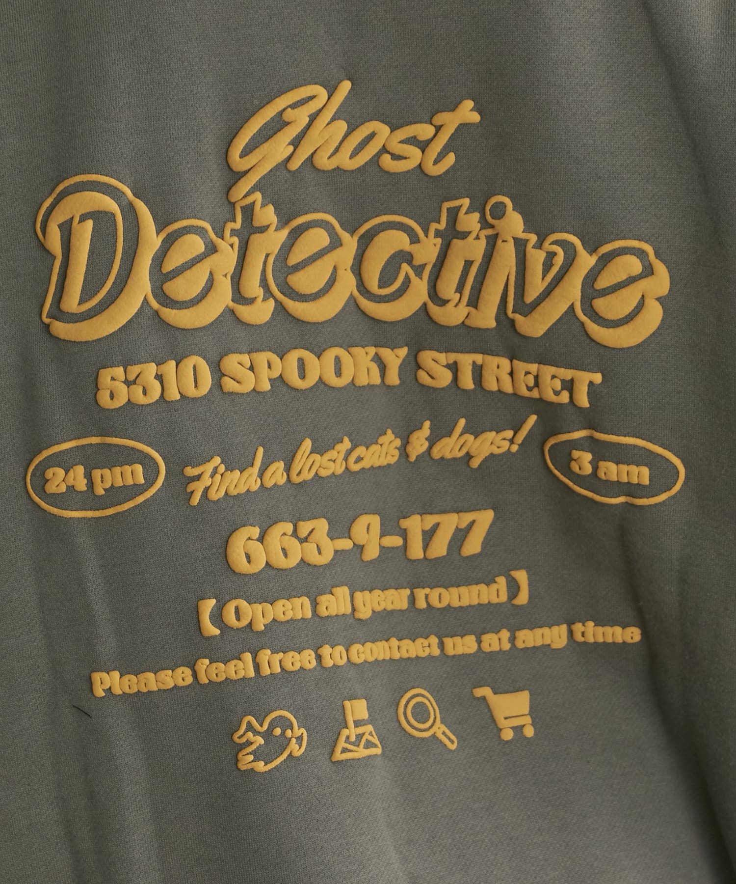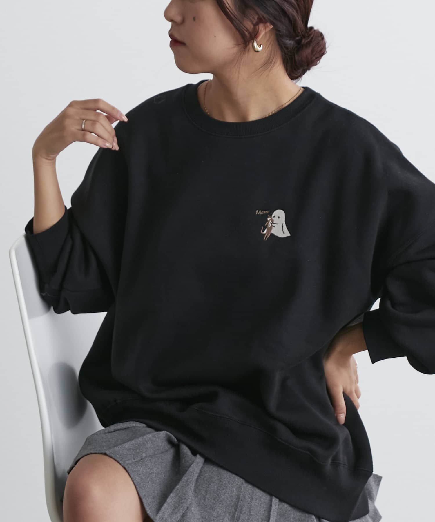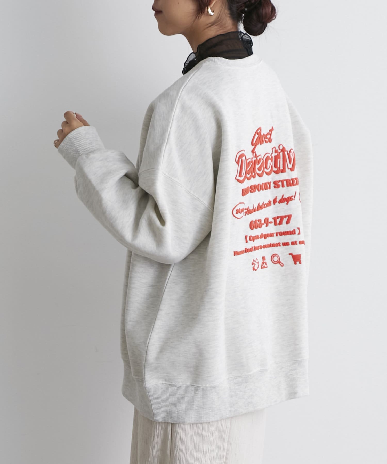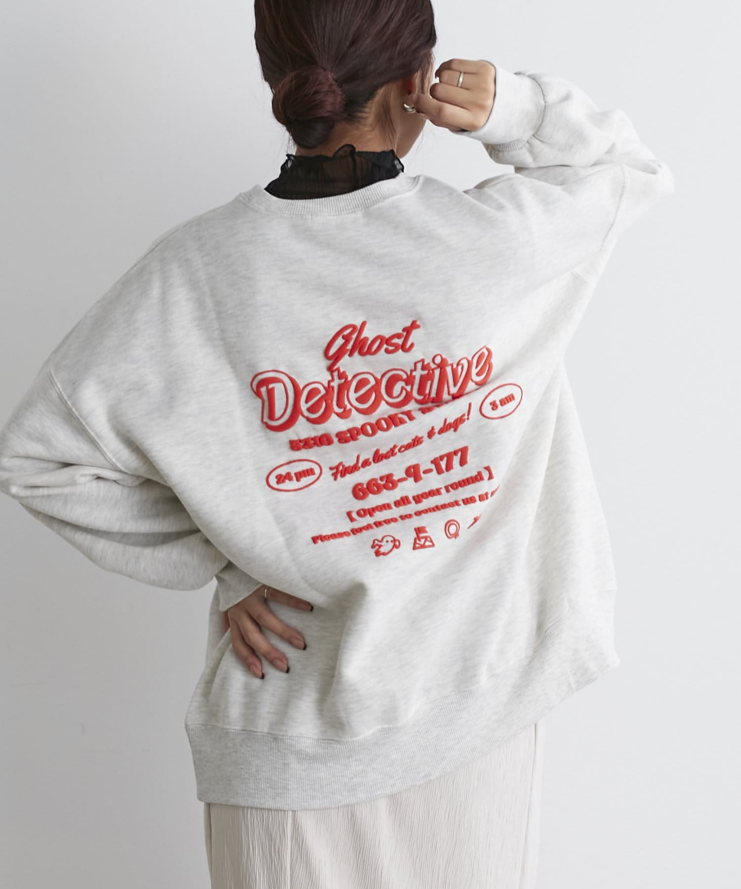 ・フロントにはさりげないおばけ刺繍とバックは目を惹く発泡ロゴプリントがコーデのポイントに