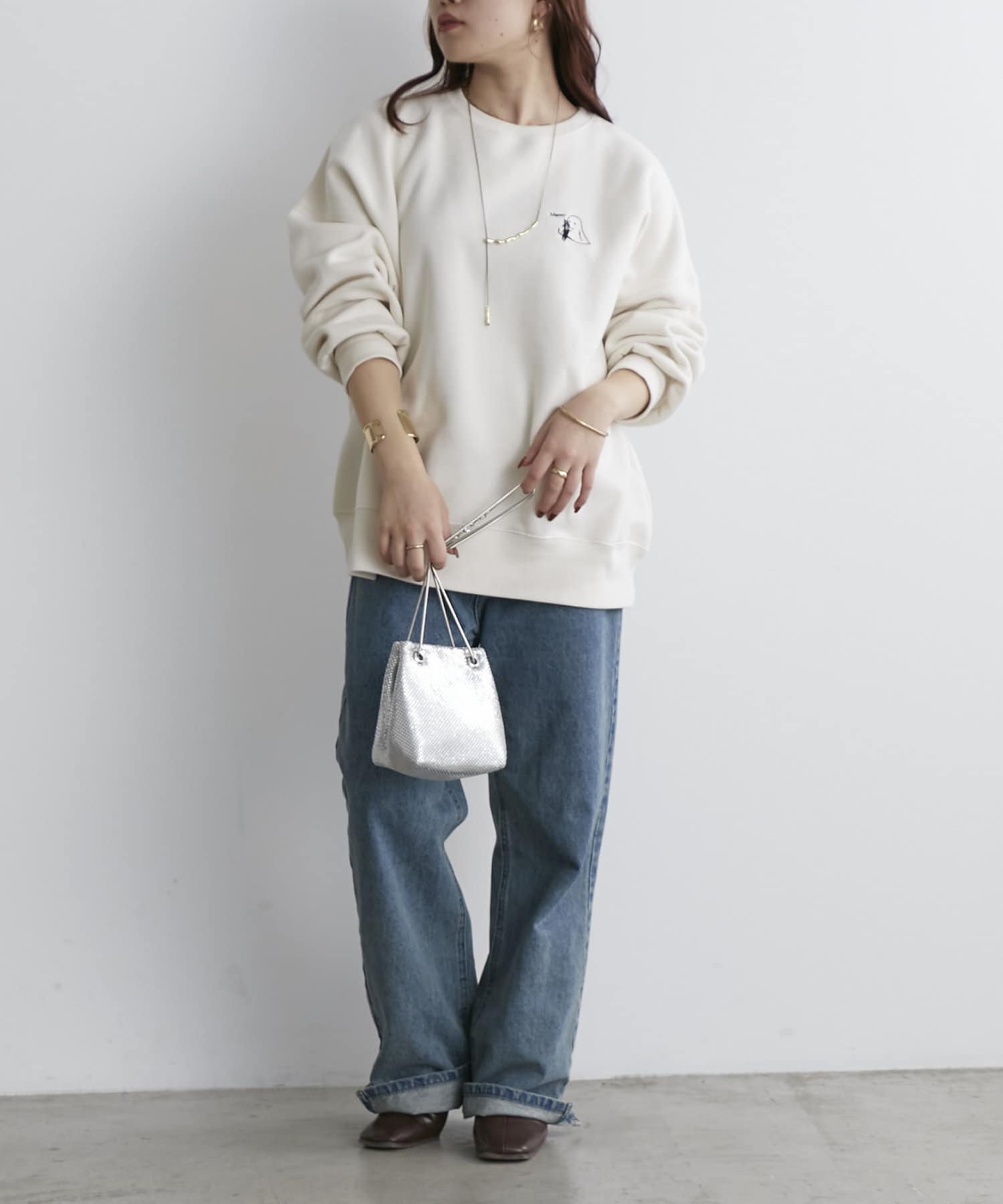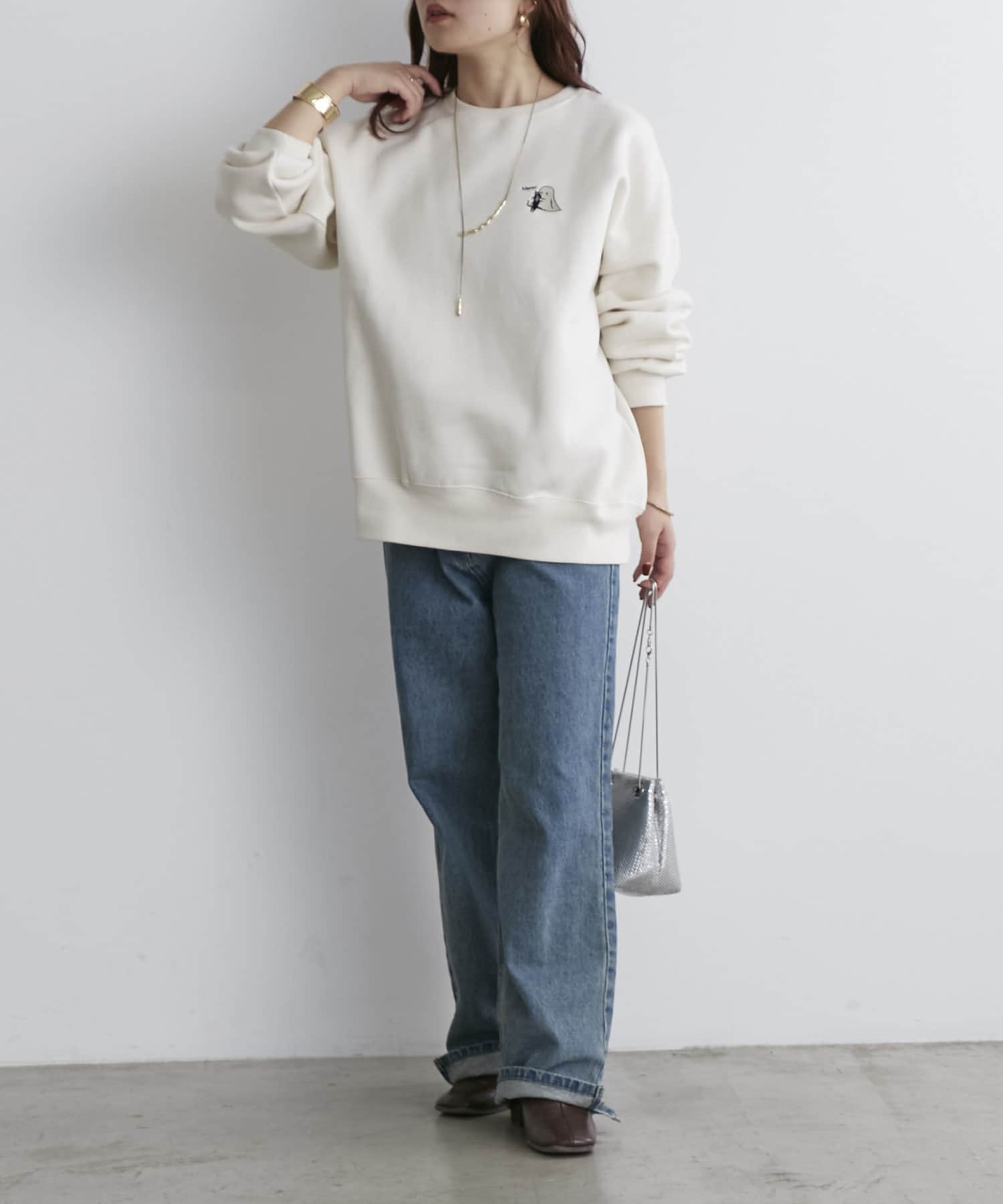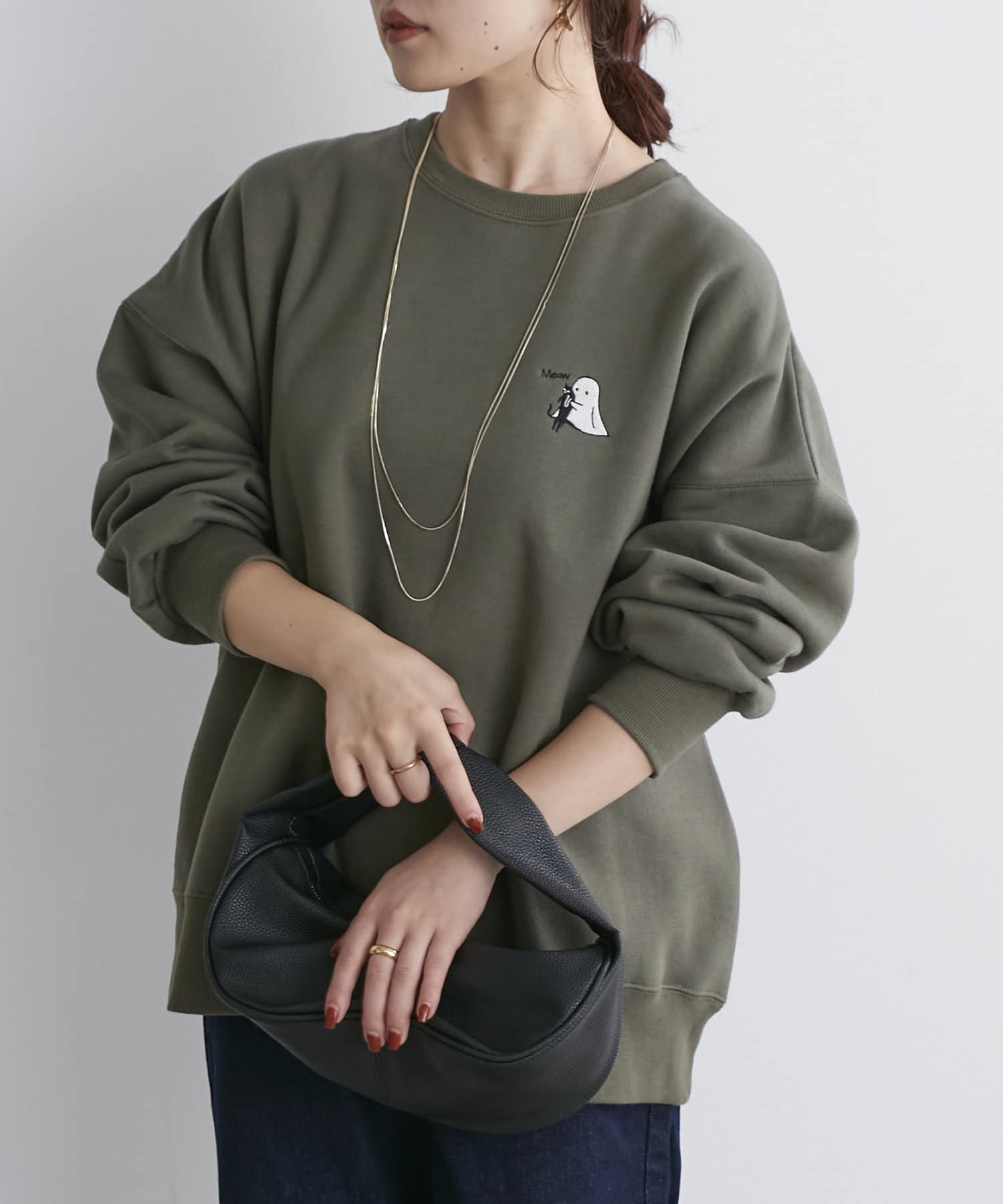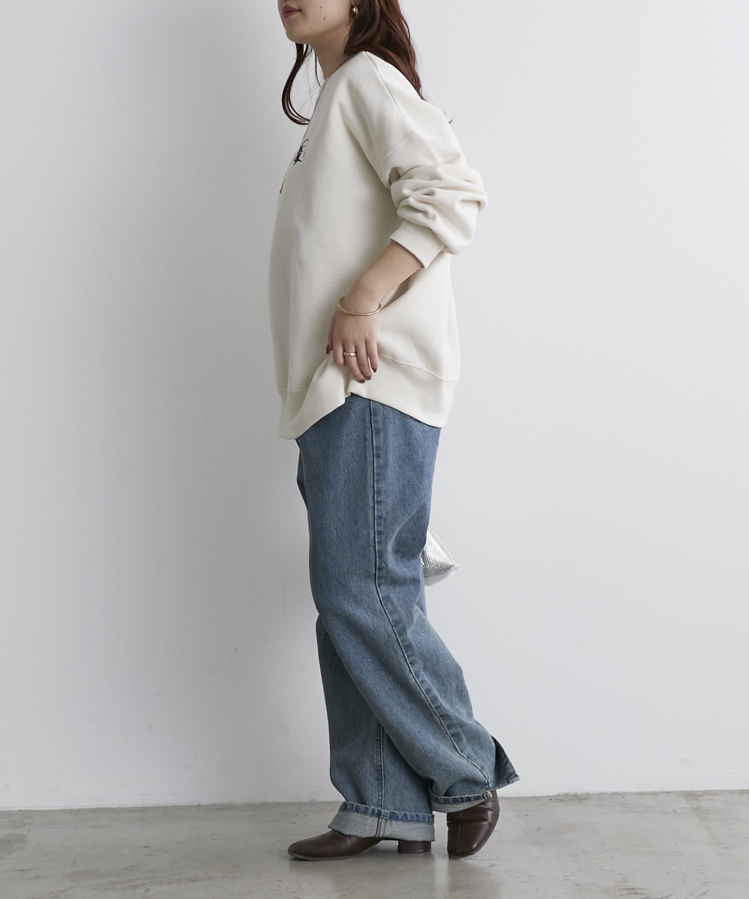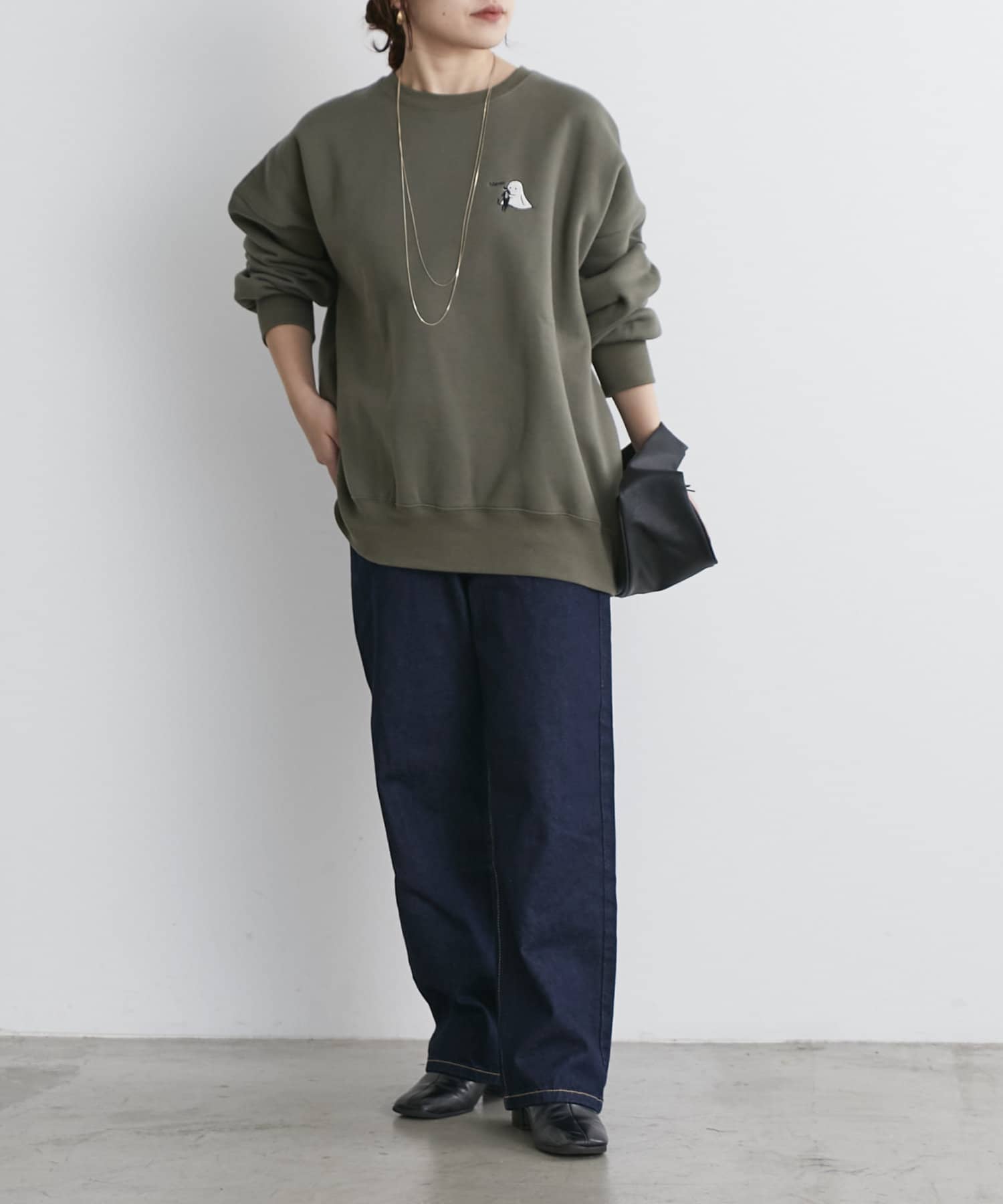 ・ゆとりのあるシルエットなのでハイネックインナーやシャツとのレイヤードコーデも楽しめます