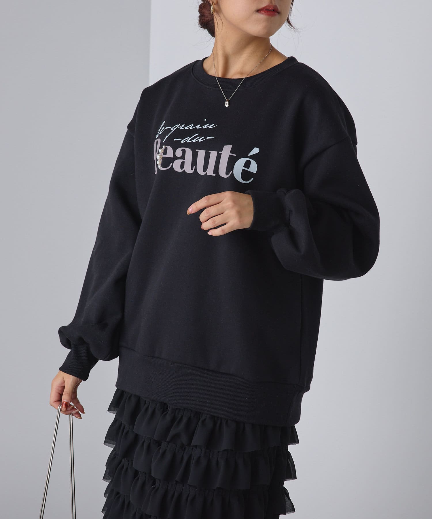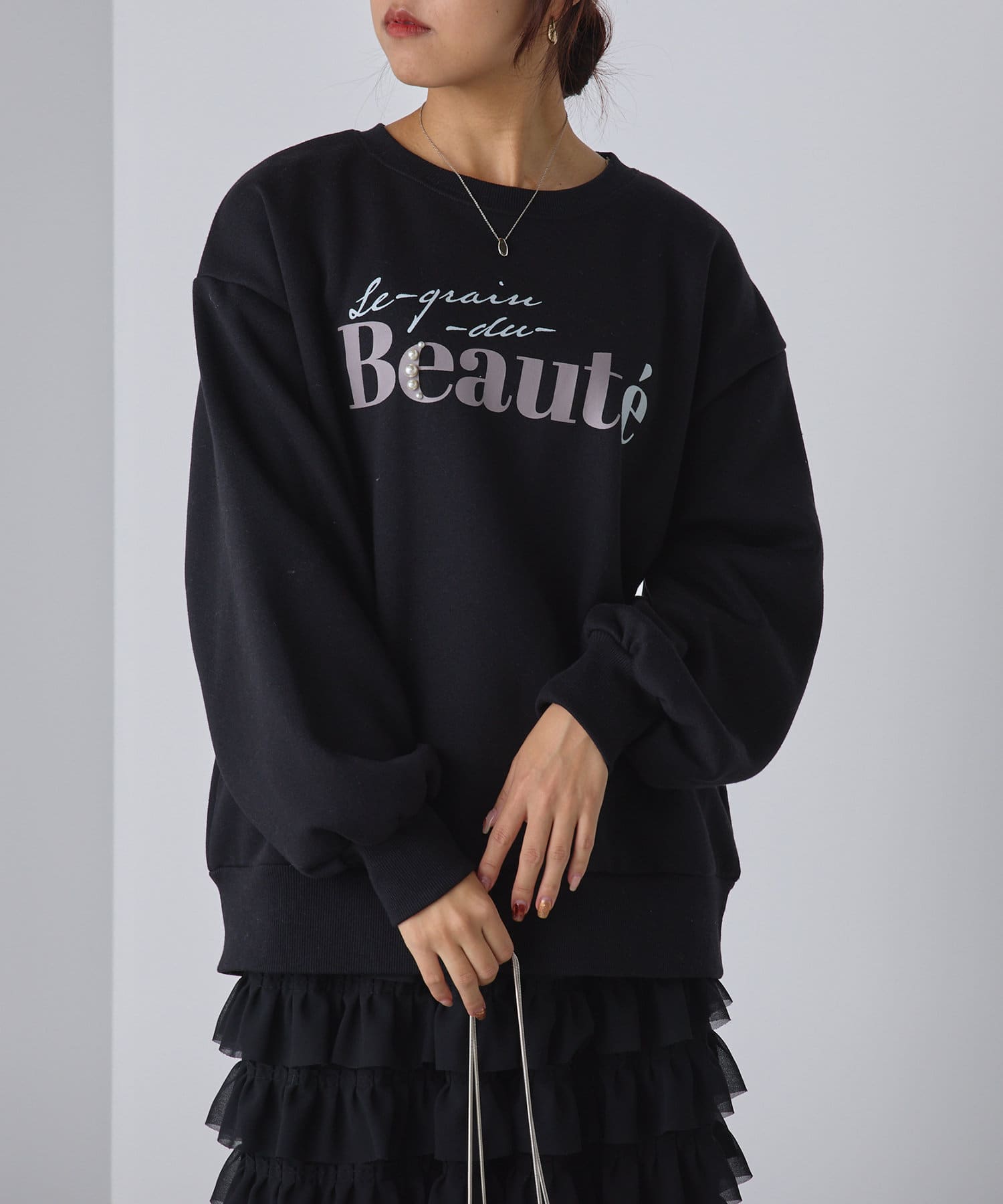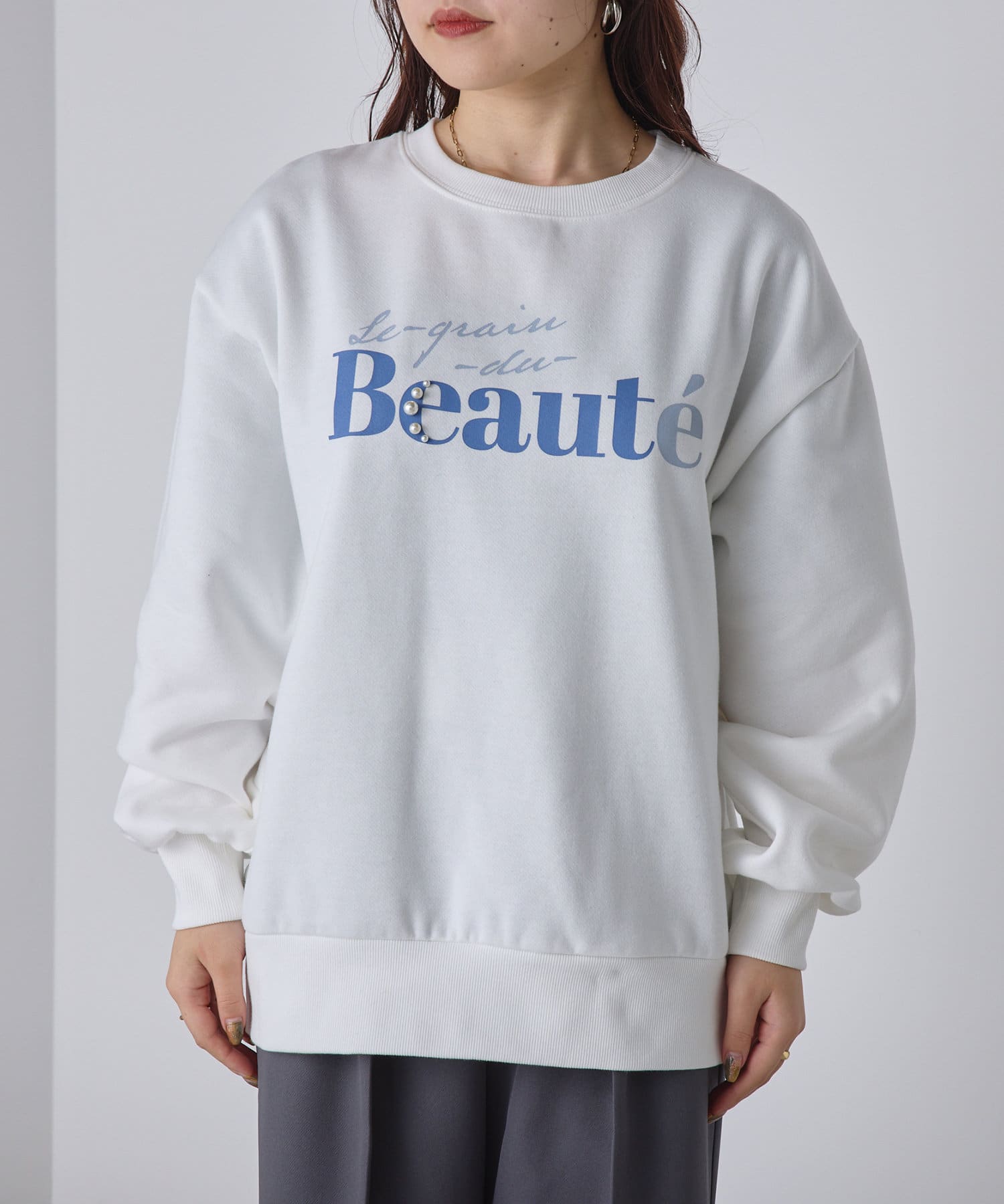 ・ロゴデザインにパールをプラスしたスウェット