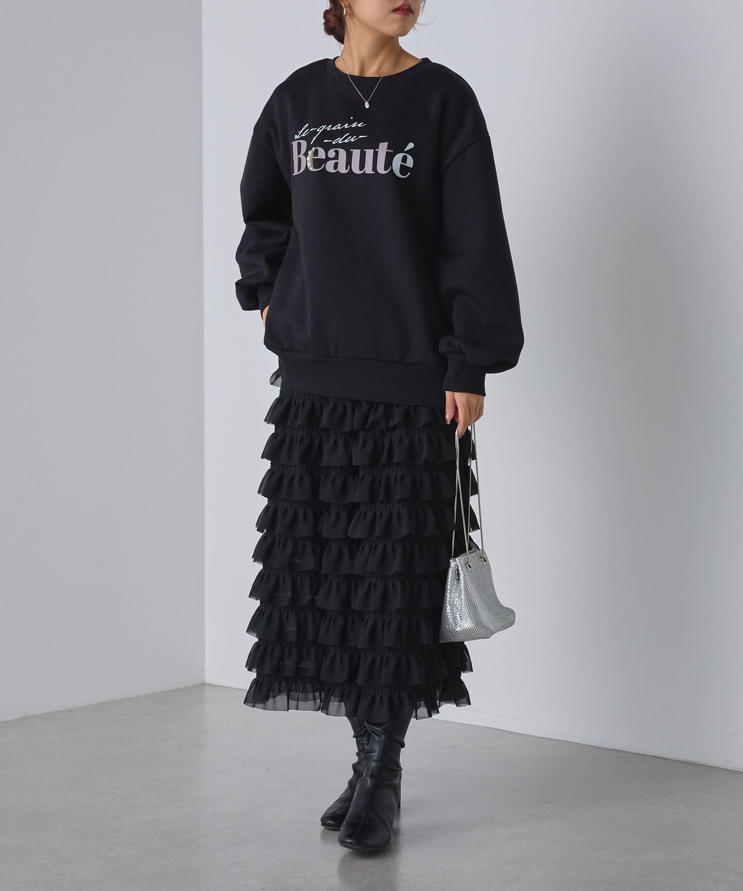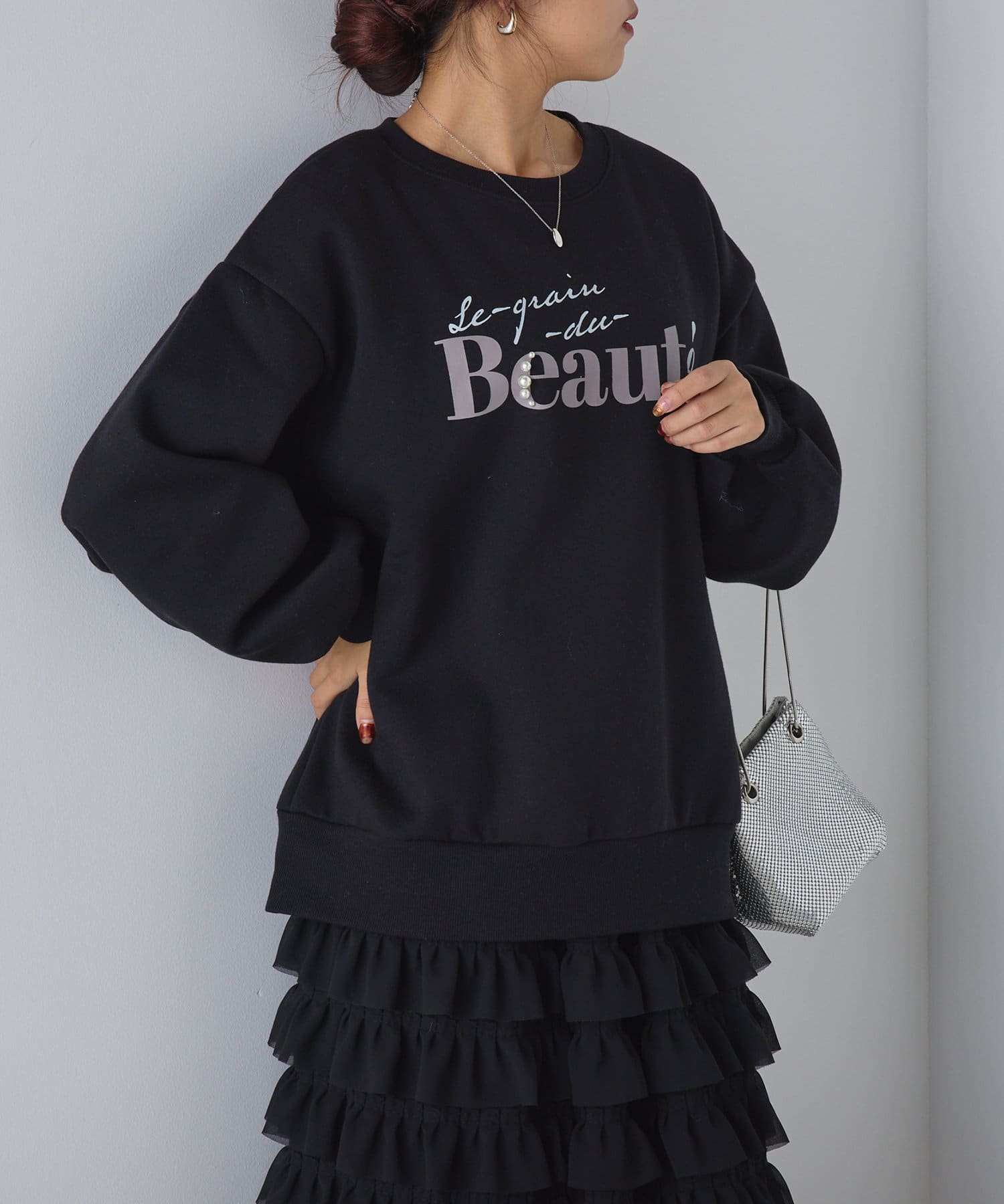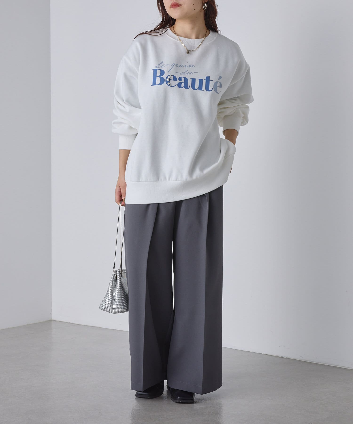・ロゴデザインにパールをプラスしたスウェット
