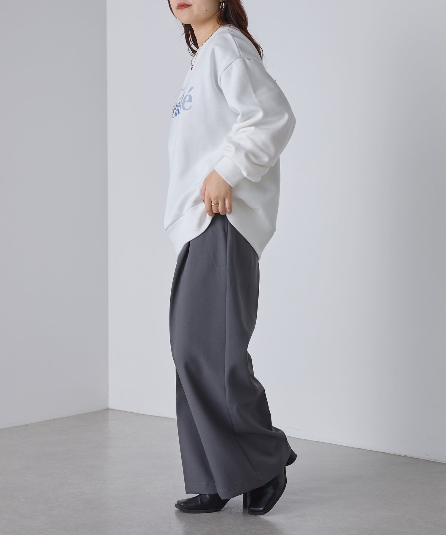 パール&ロゴ裏起毛スウェット