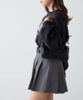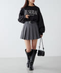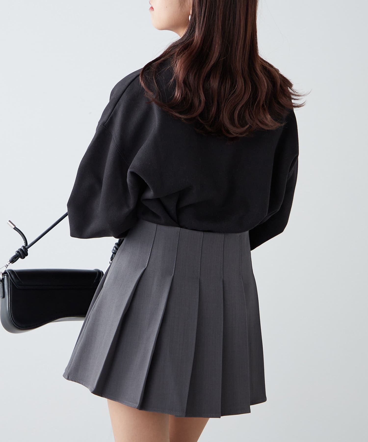 ・ミニ丈ボトムを合わせるなら台形シルエットのものを選んで細見えを