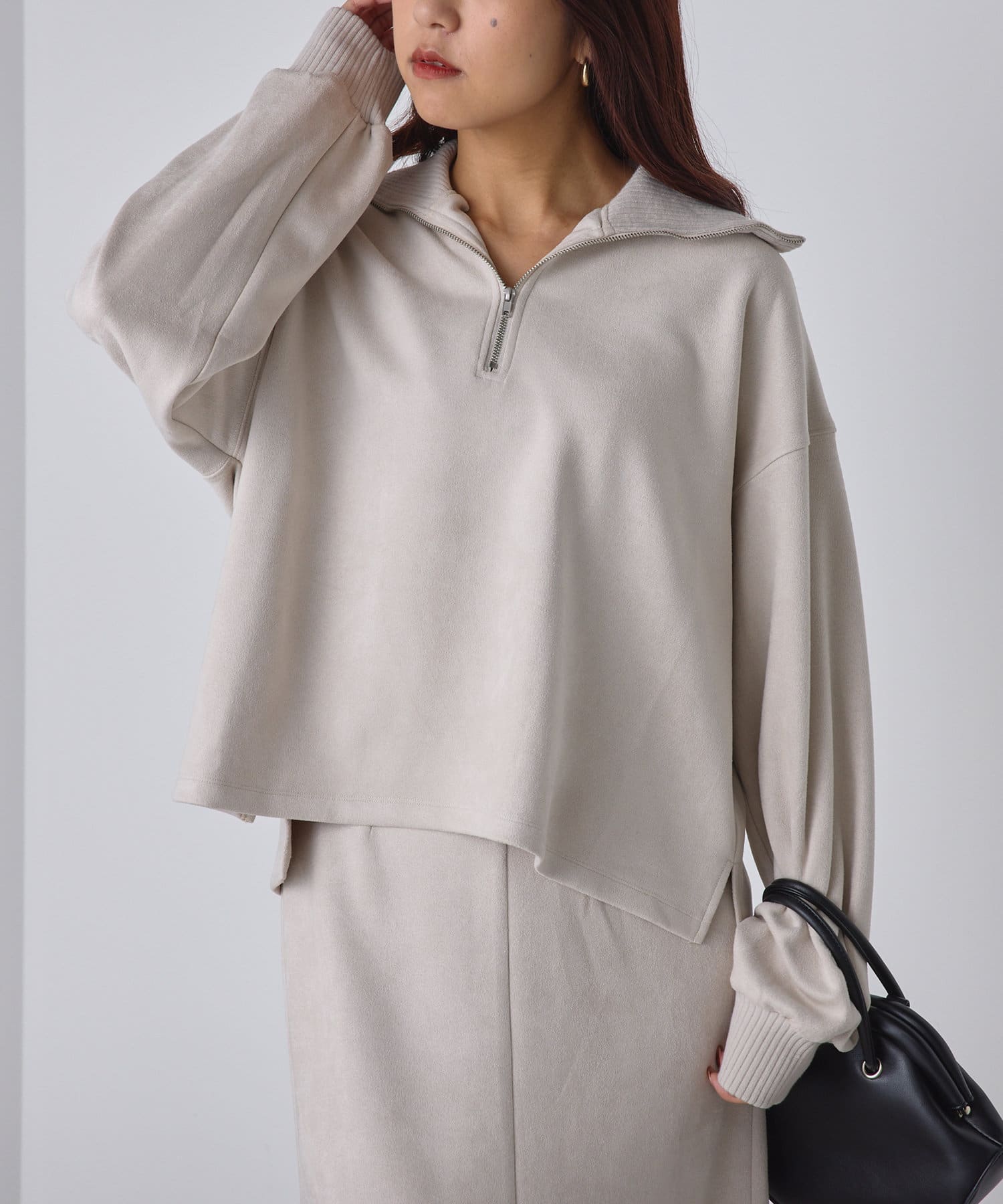 ・肌触りの良いスエードポンチ素材のプルオーバー