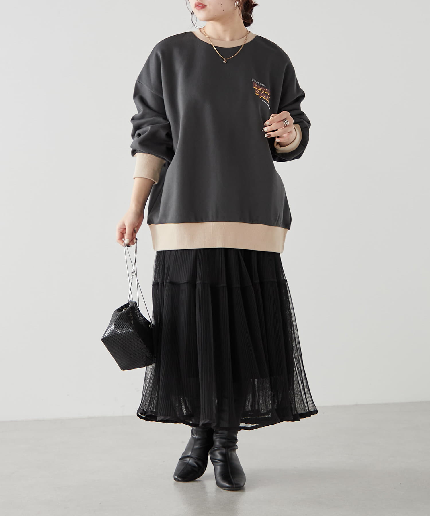 ・インはせず、アウトスタイリングのゆるっとコーデが◎