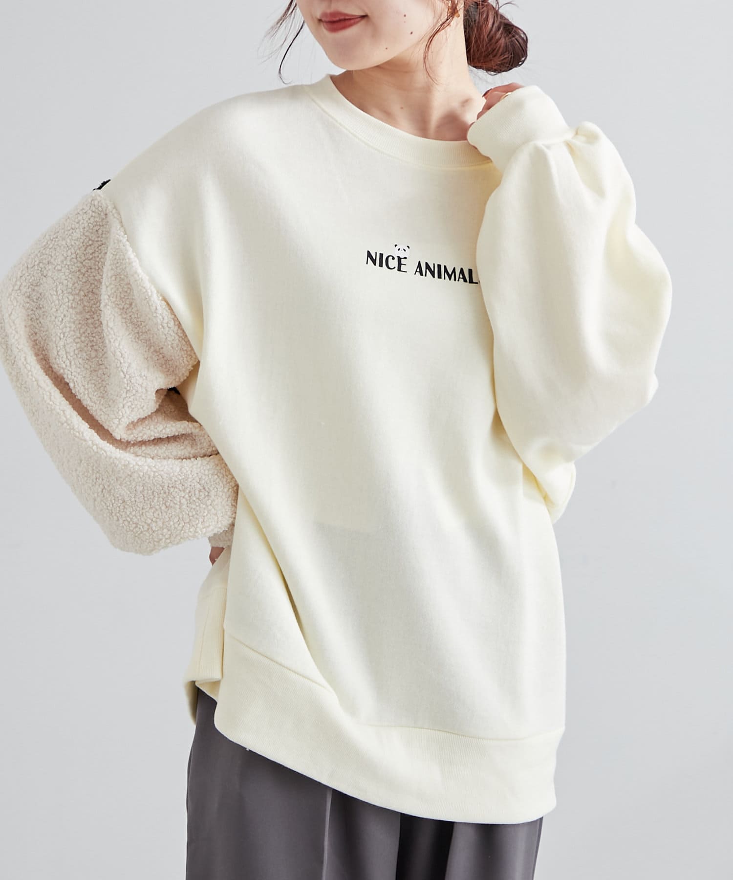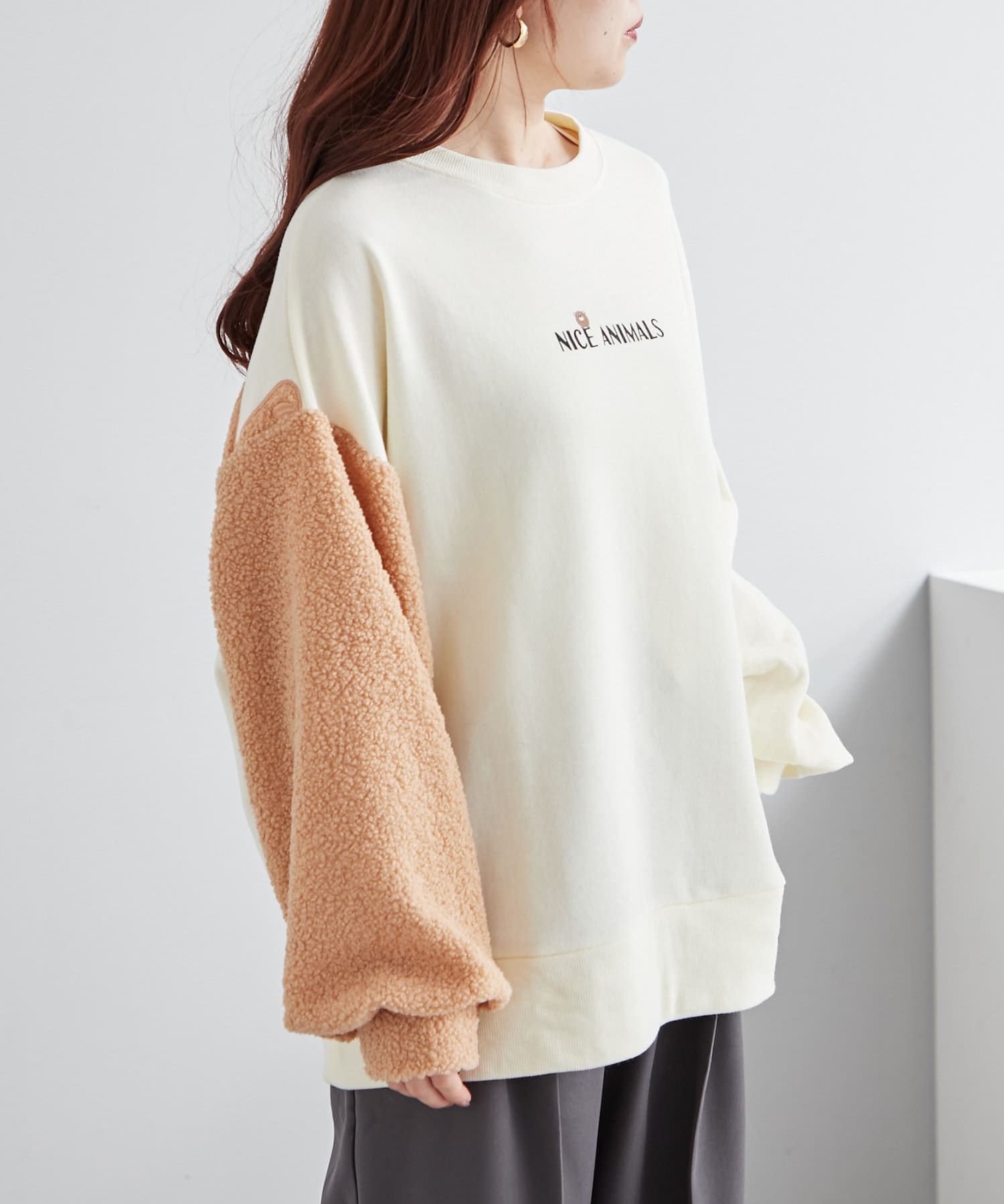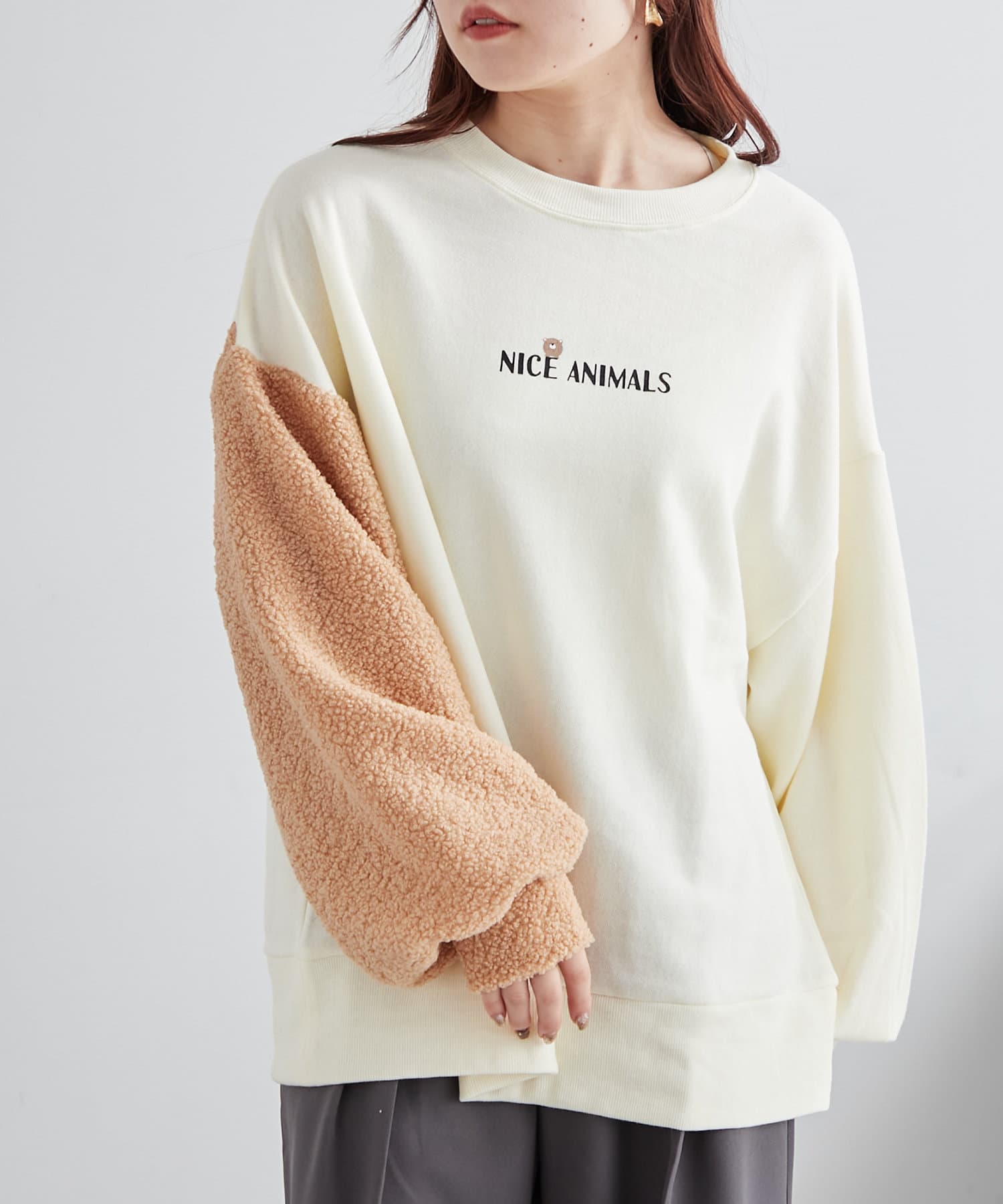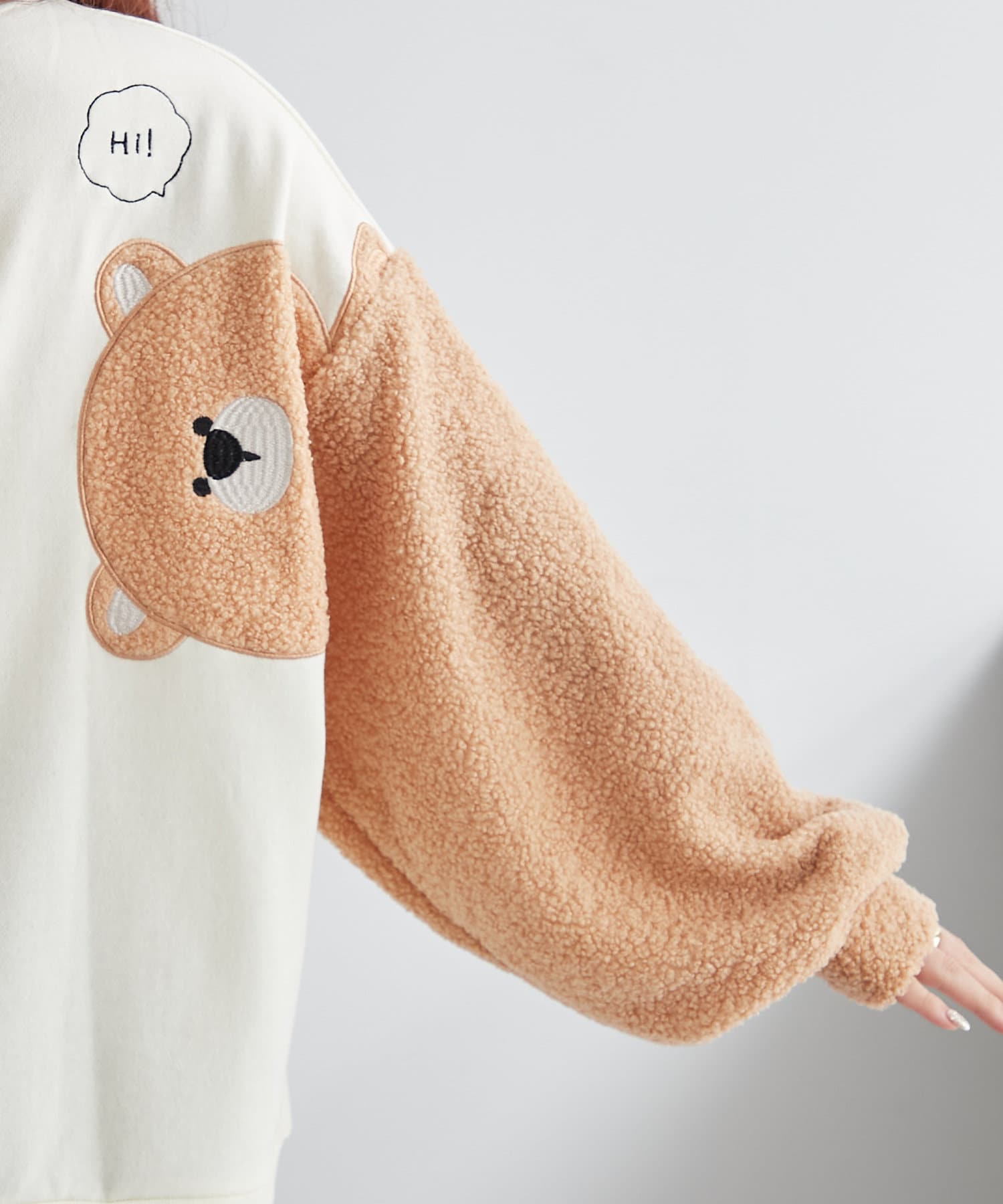・目を惹くふわふわなボア素材のアニマルがポイントのプルオーバー