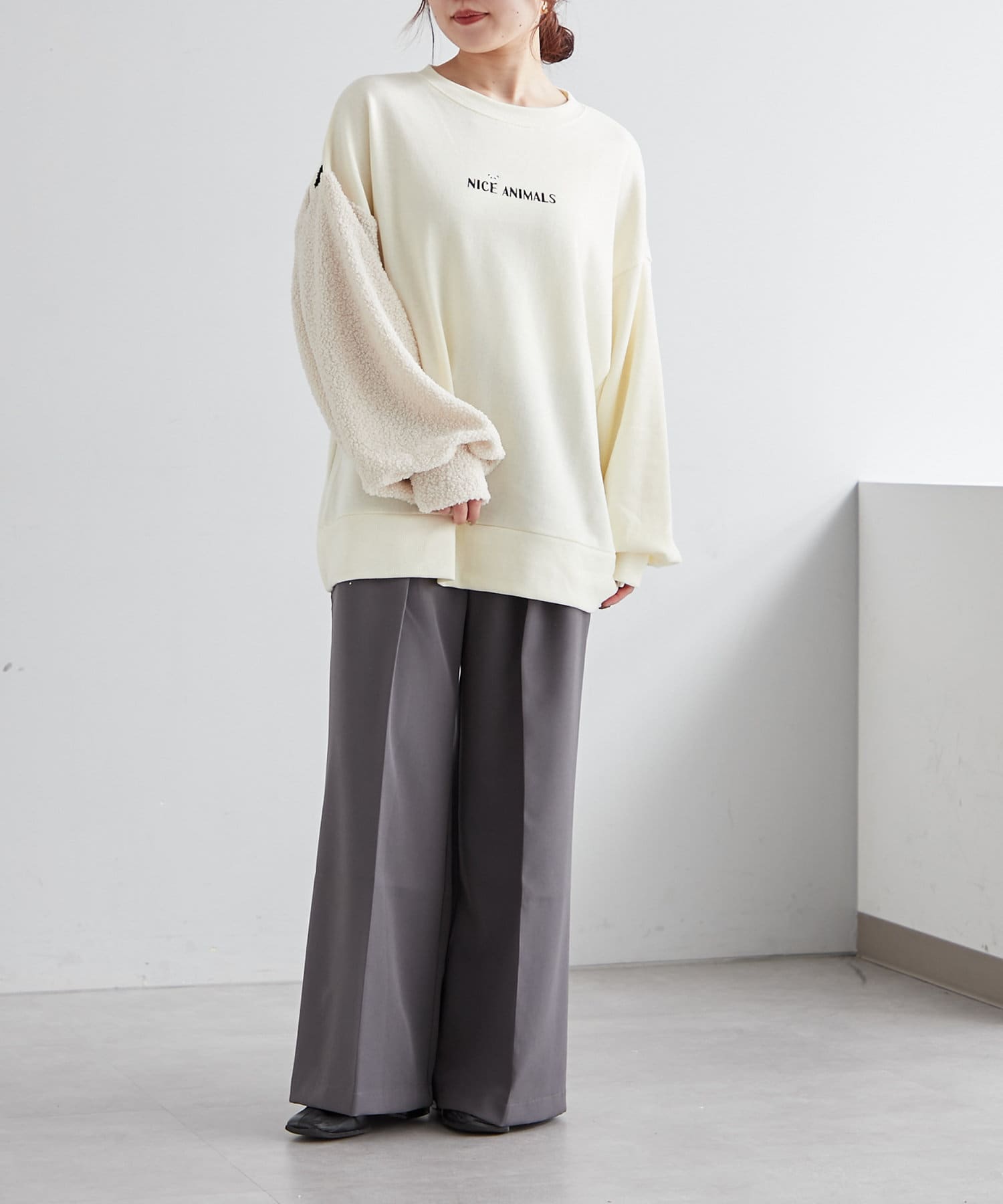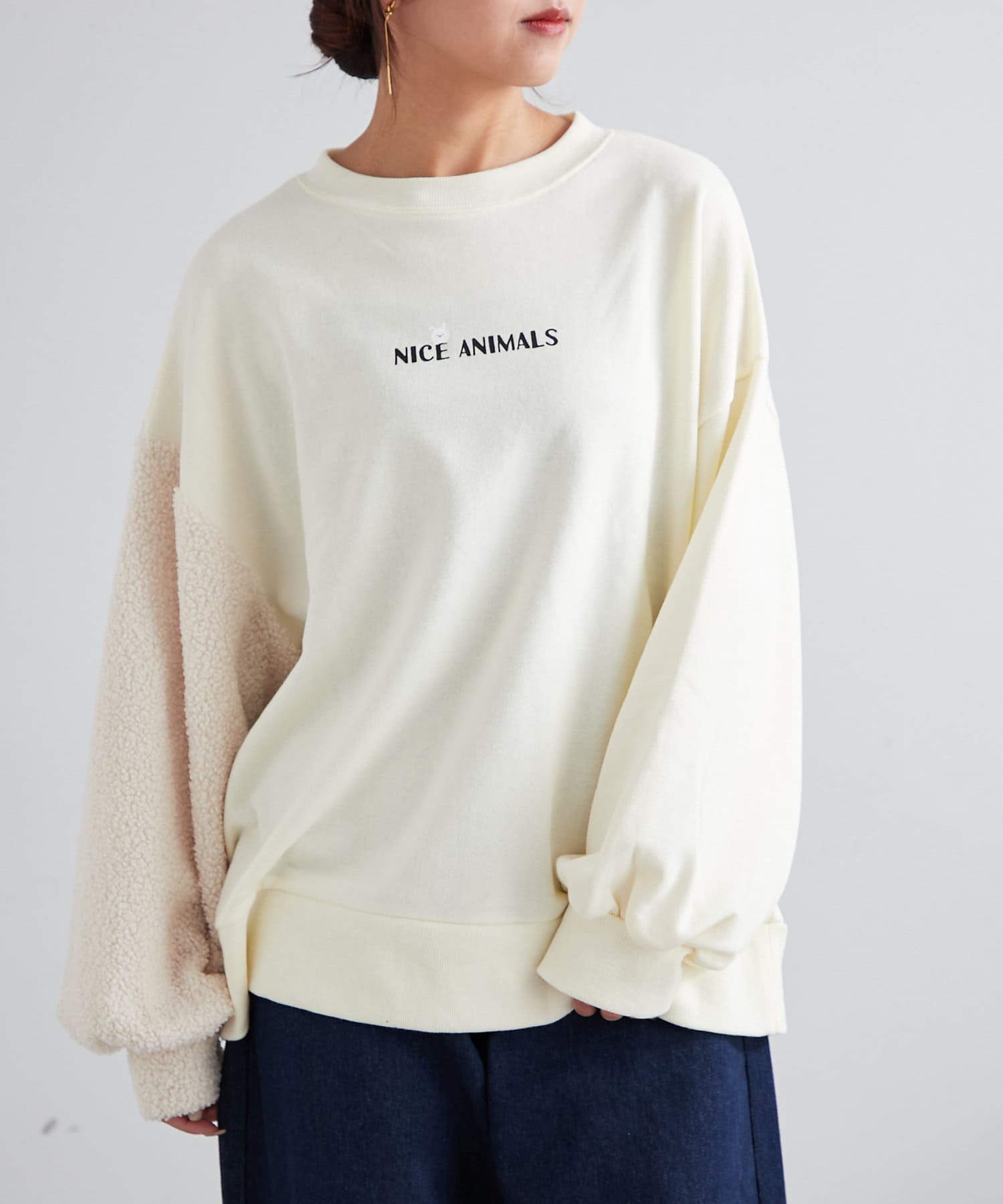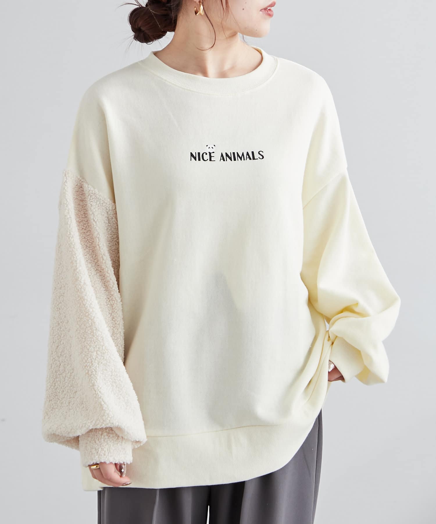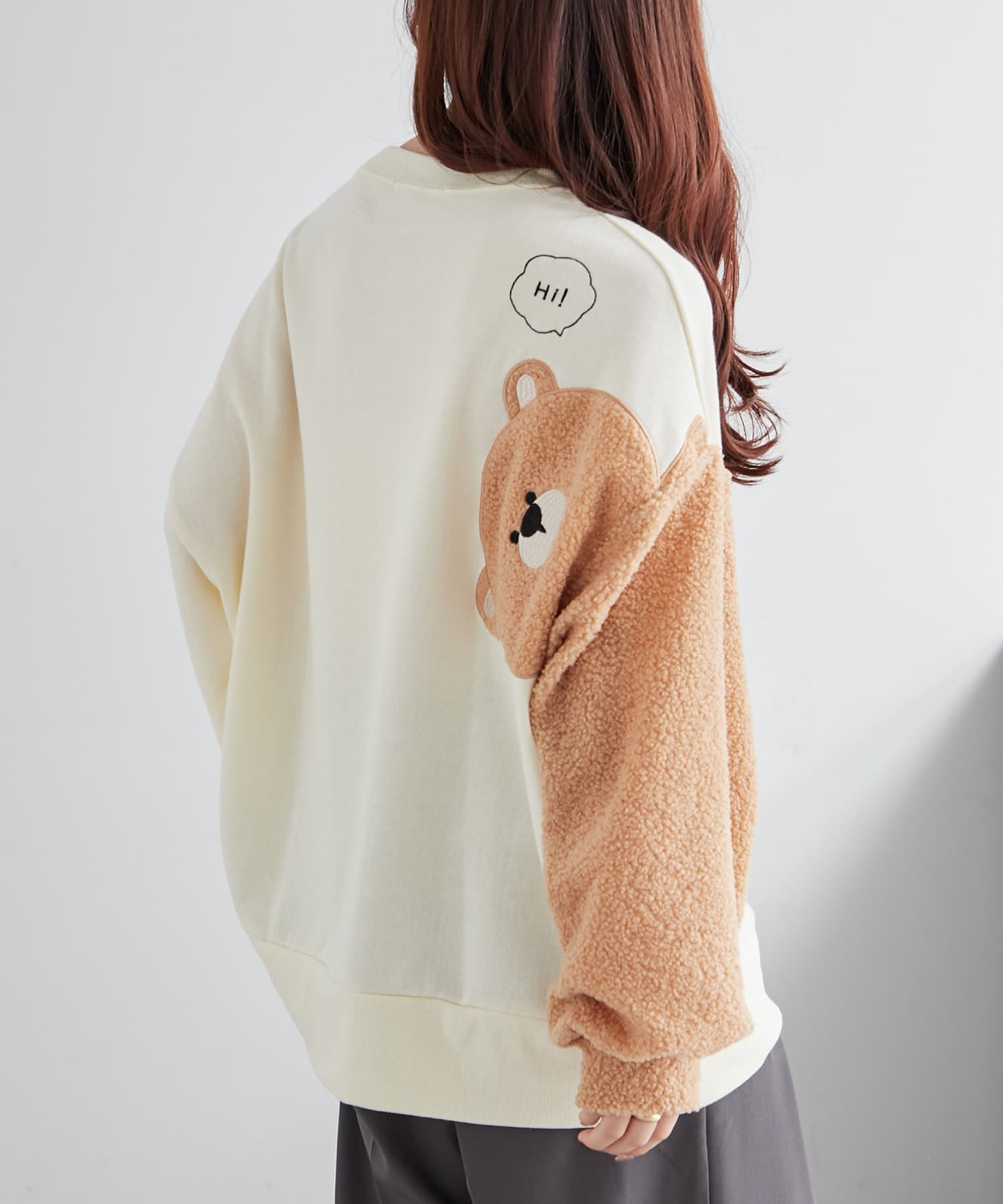 ・目を惹くふわふわなボア素材のアニマルがポイントのプルオーバー