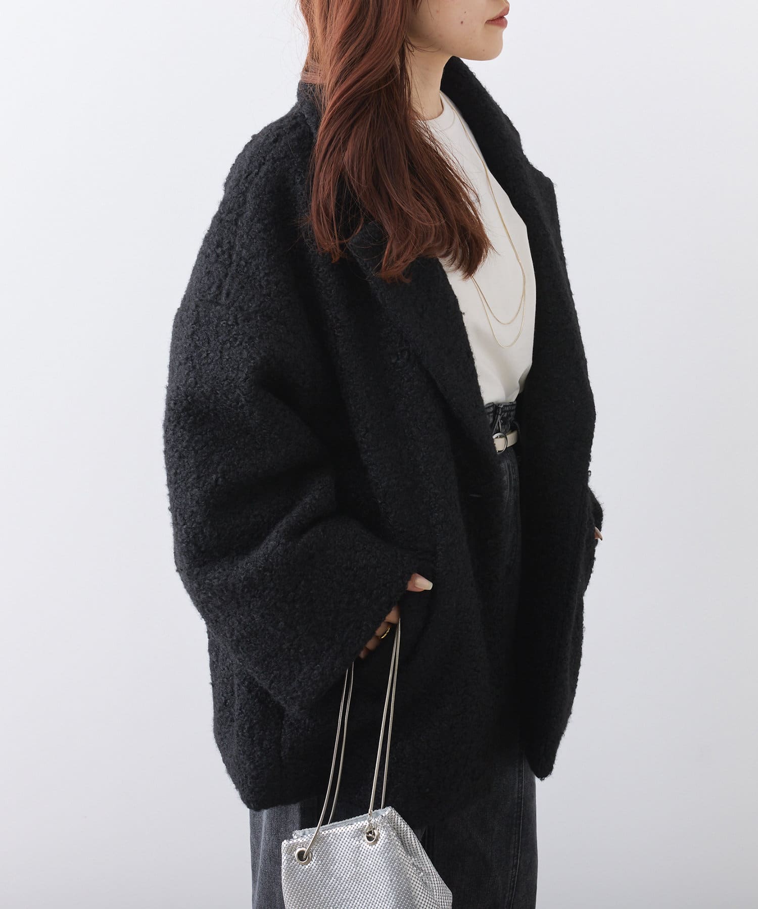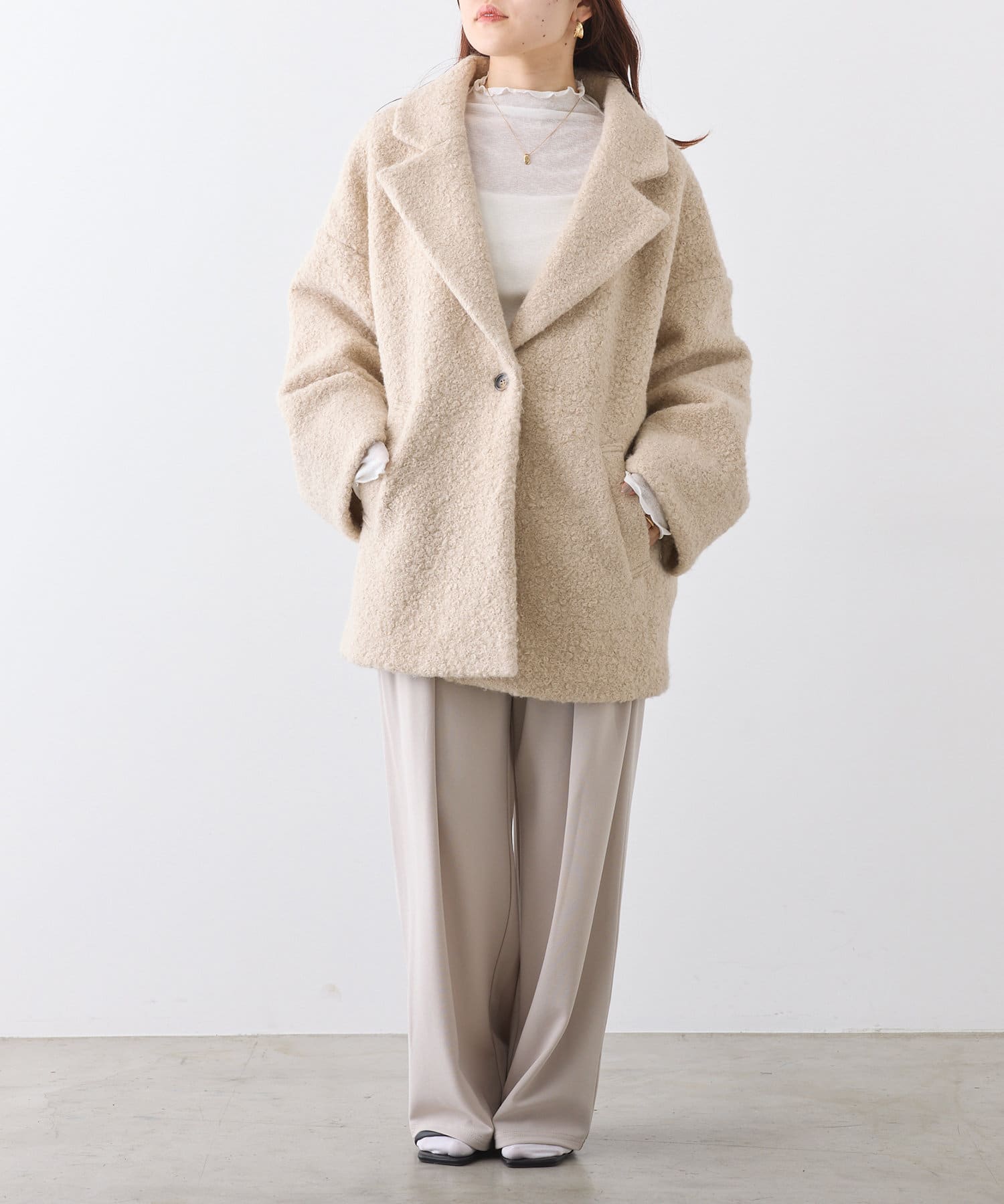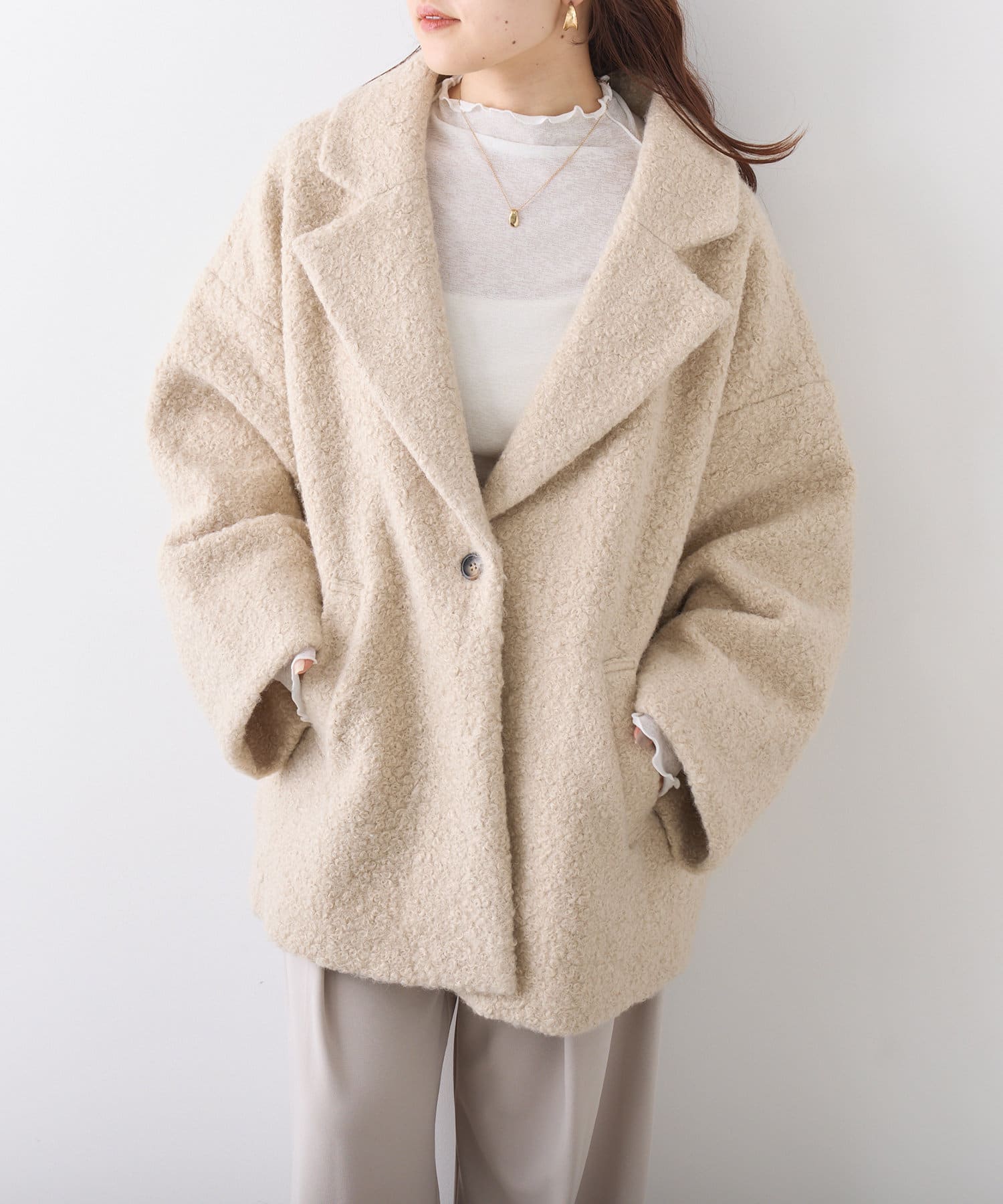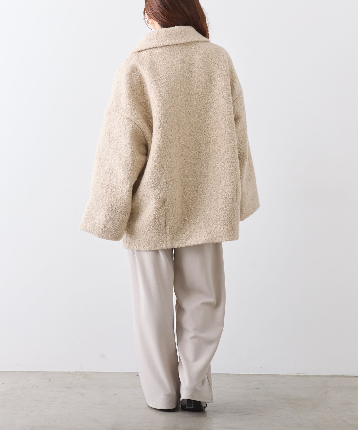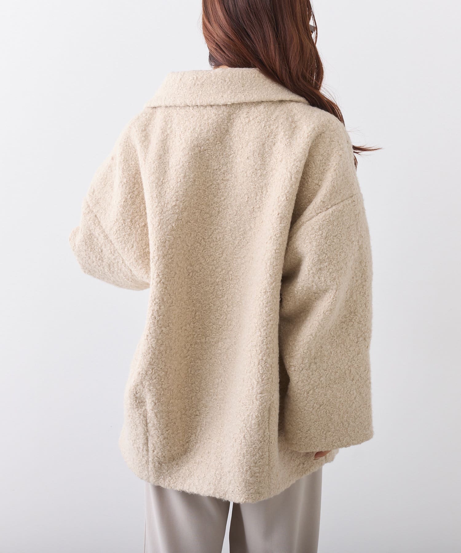 ・品を感じる襟デザインで、ストールなどの巻物やタートルネックとのスタイリングもしやすいアイテムです。