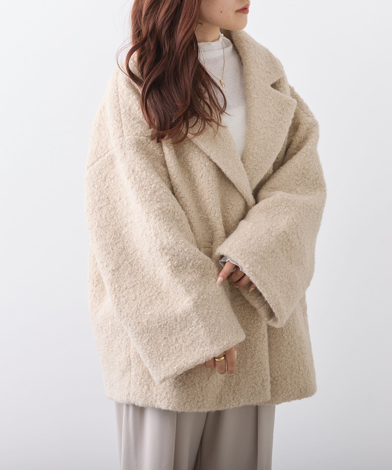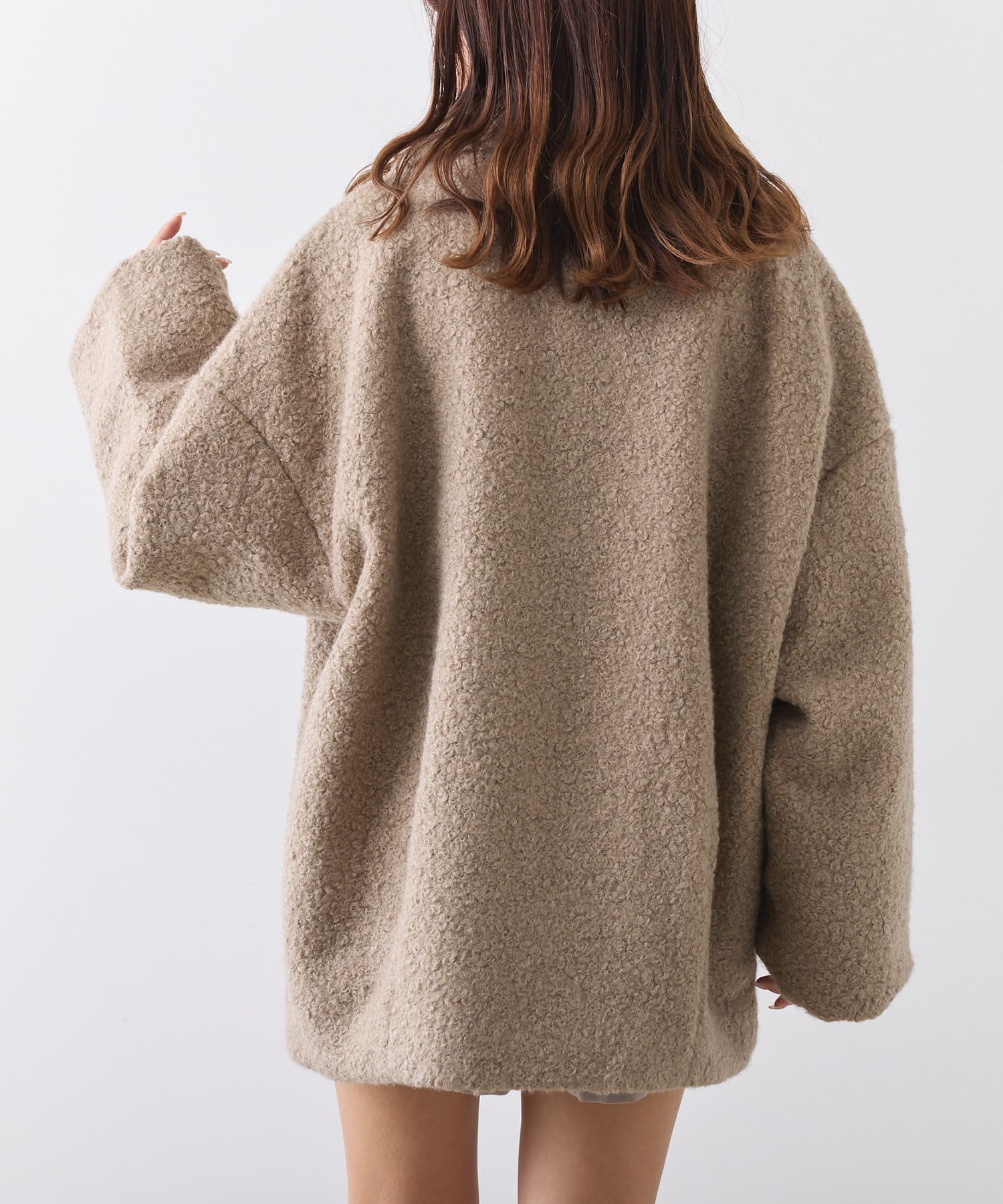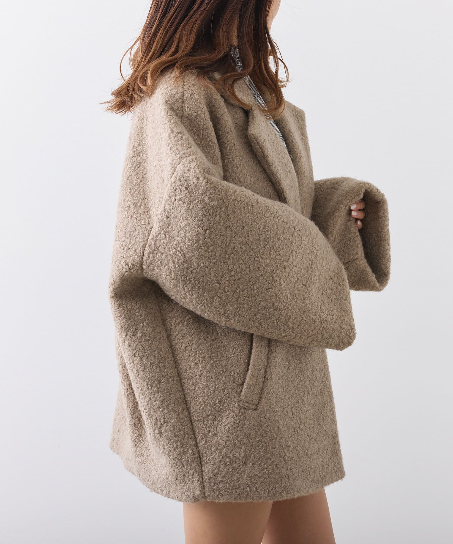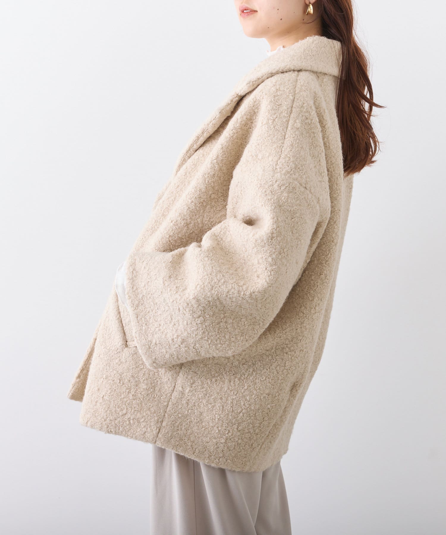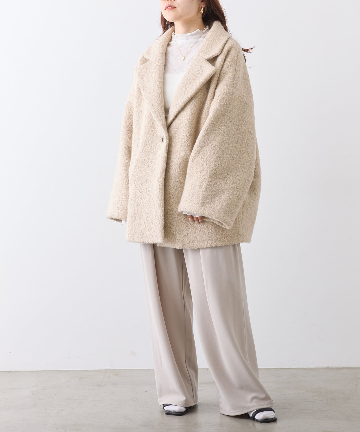 ・品を感じる襟デザインで、ストールなどの巻物やタートルネックとのスタイリングもしやすいアイテムです。