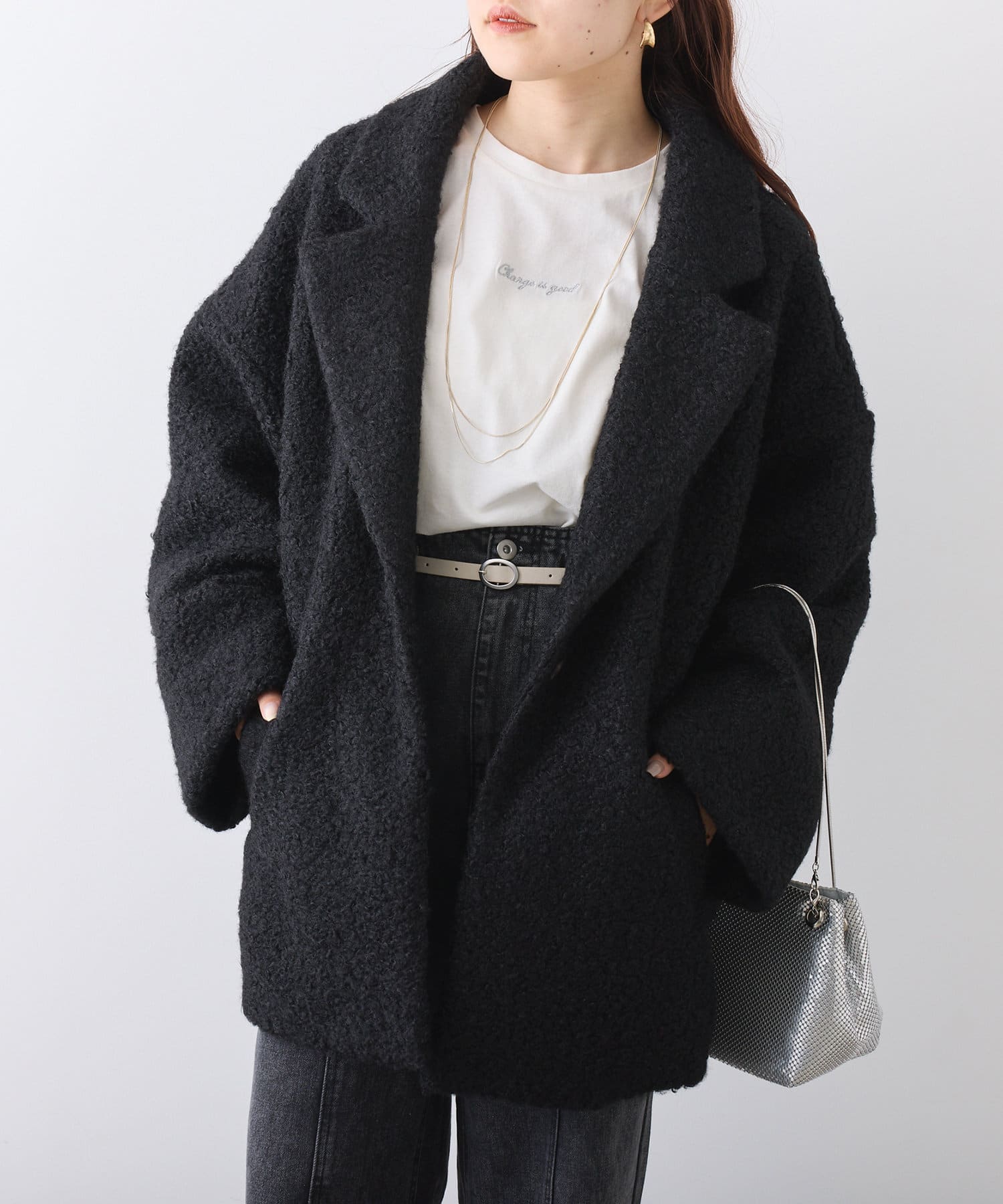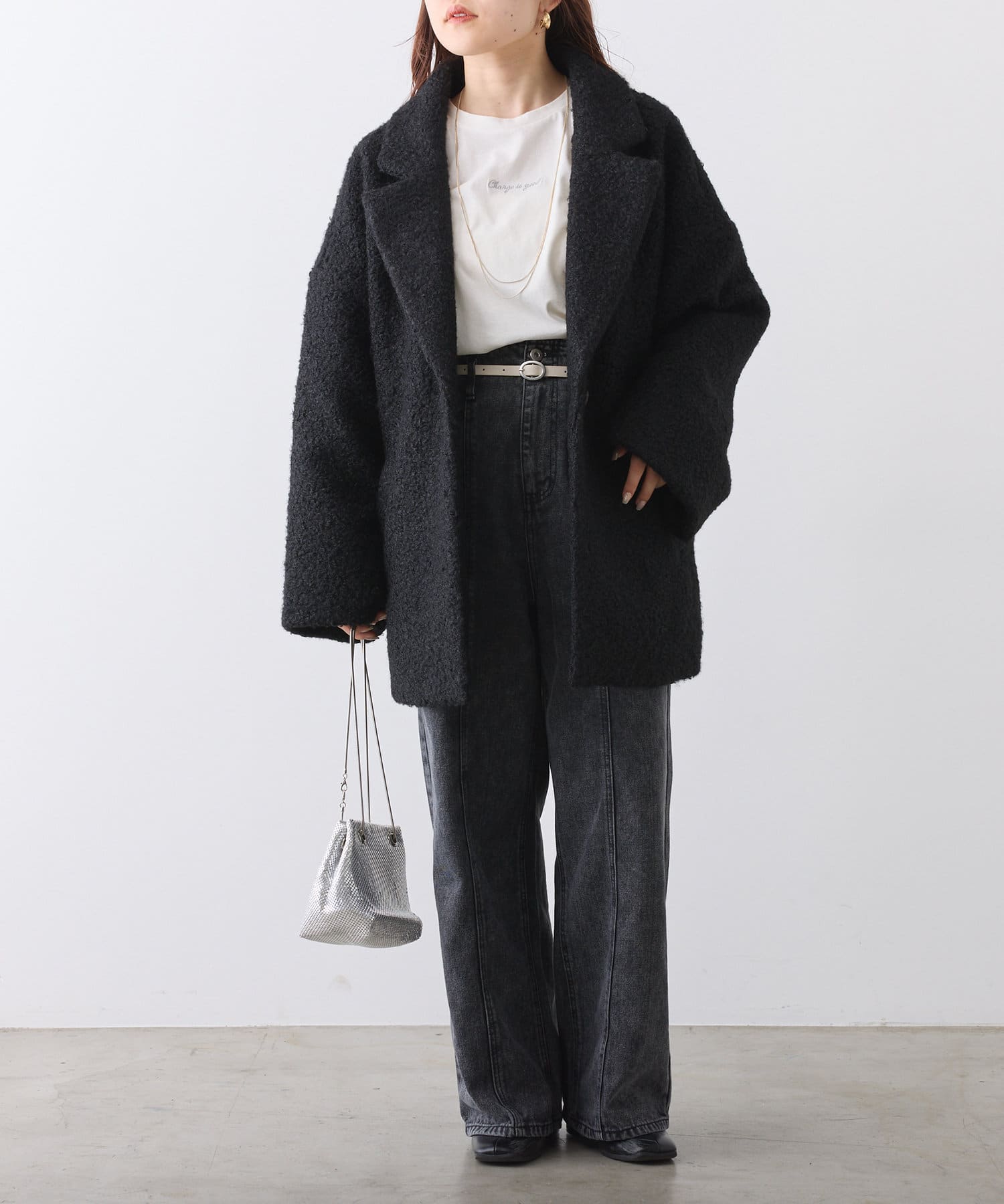 ・全身のバランスを取りやすいハーフコートは小柄な方にもおすすめのひと品