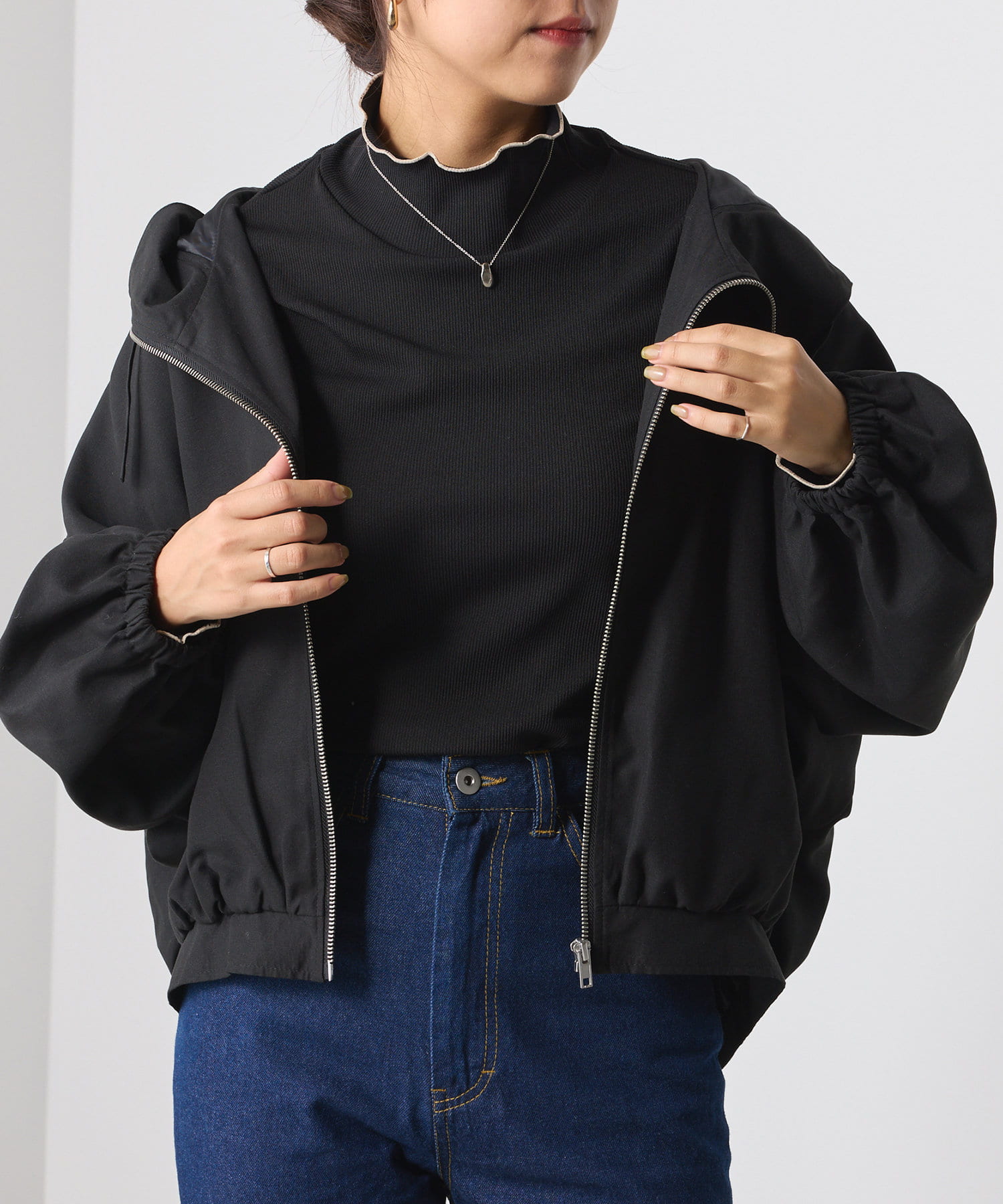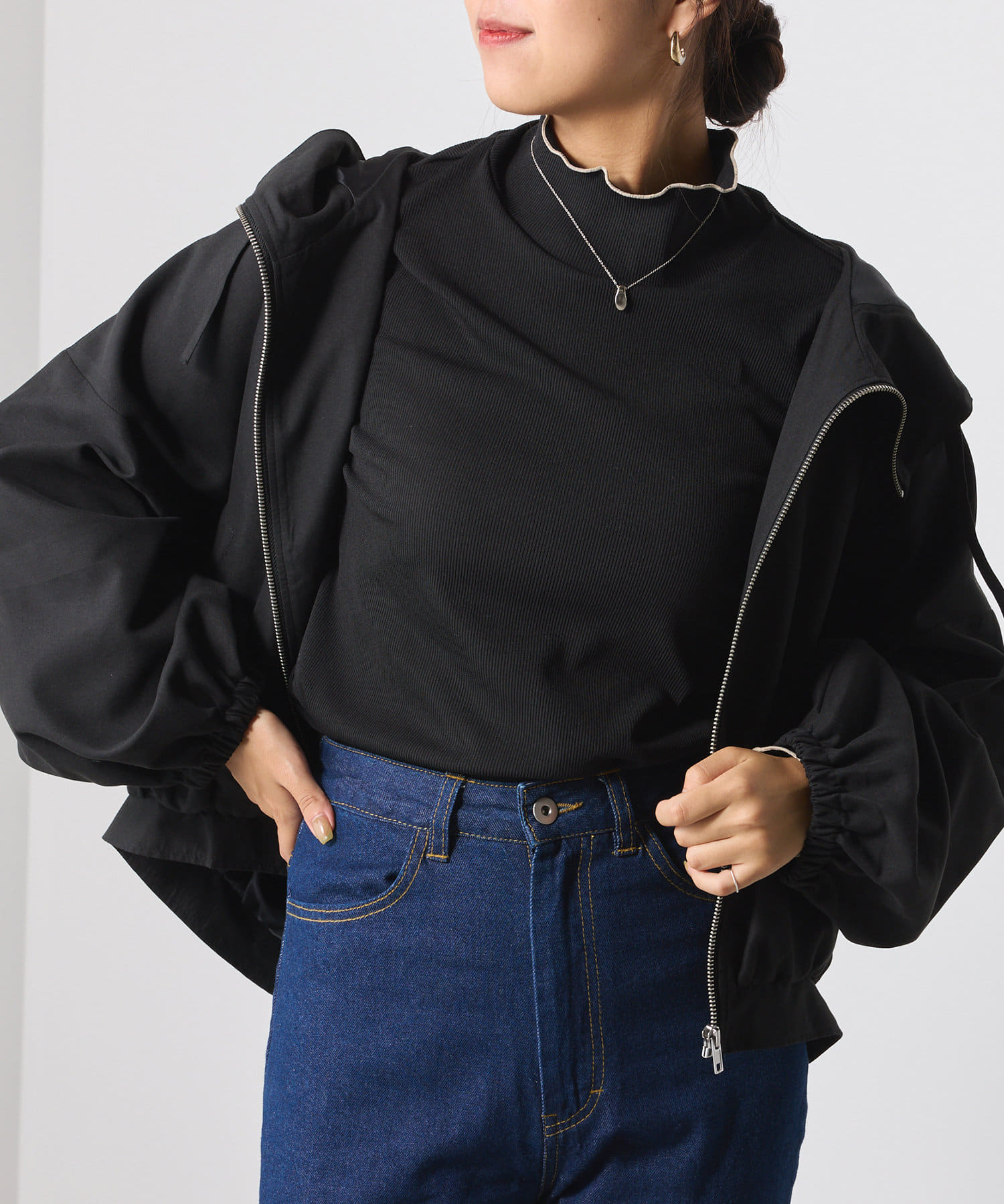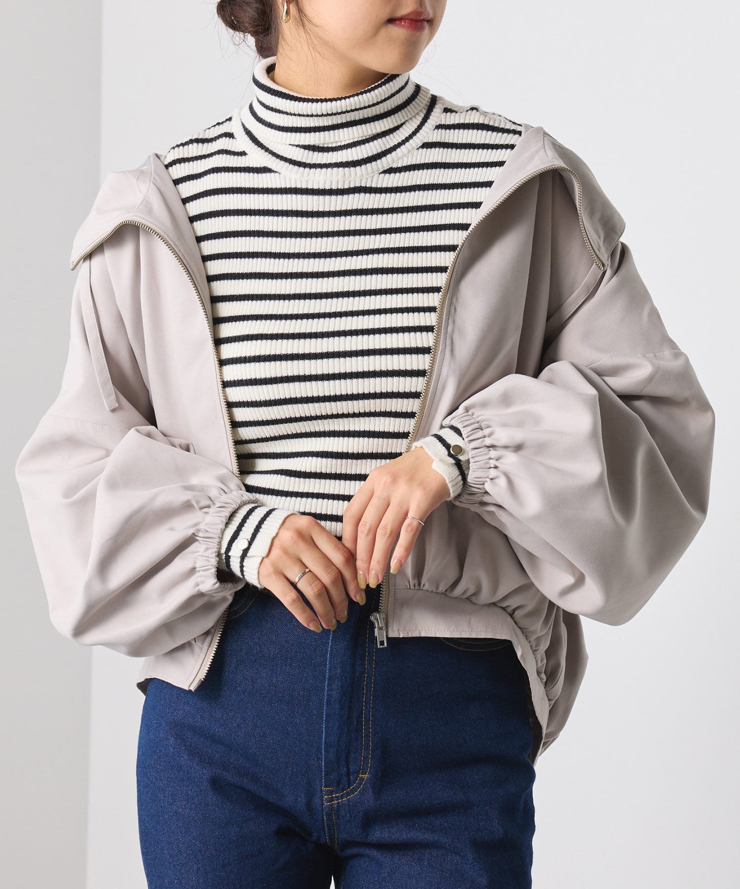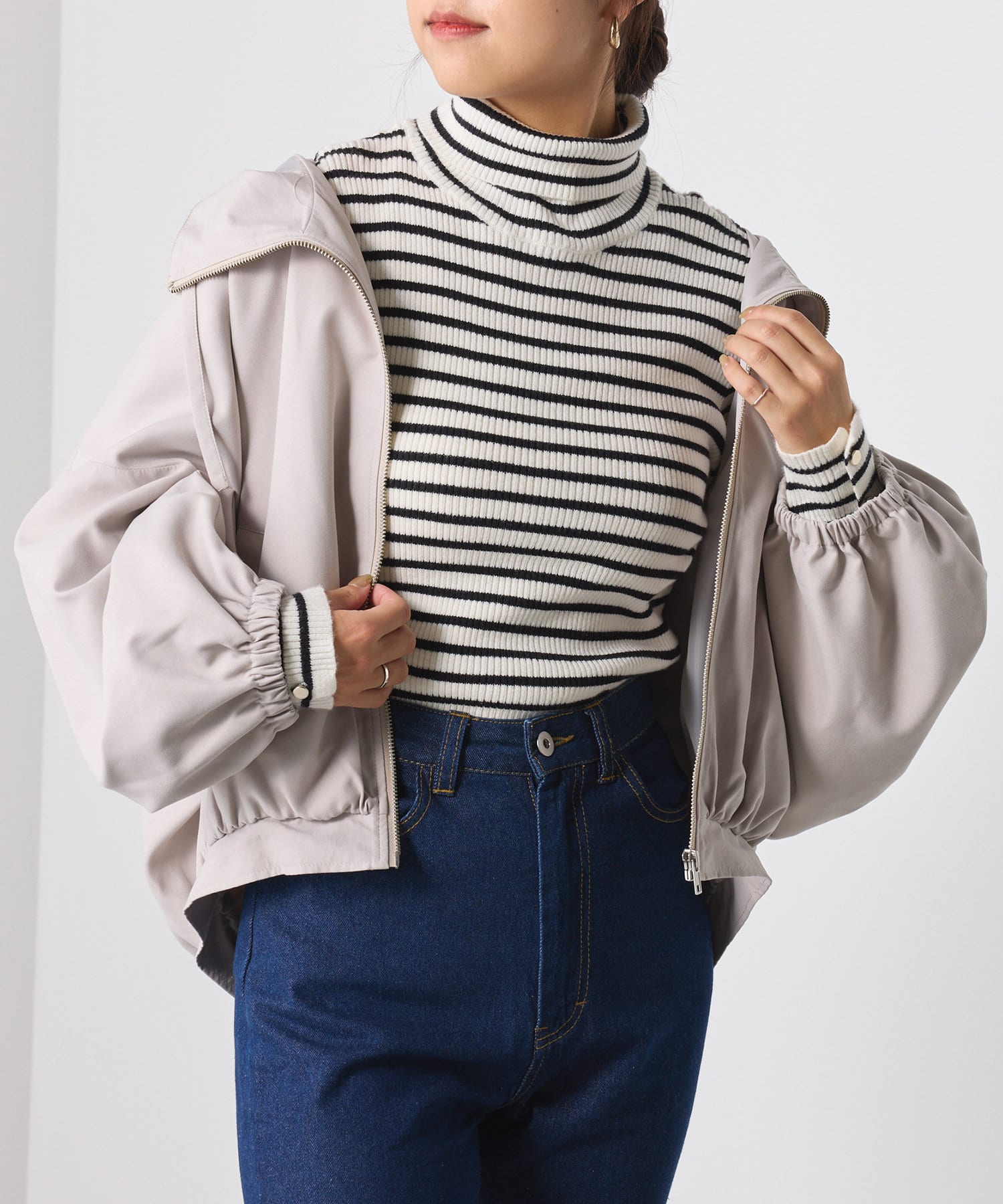 ・フェミニンな印象をアップさせるボリューム袖がポイント。