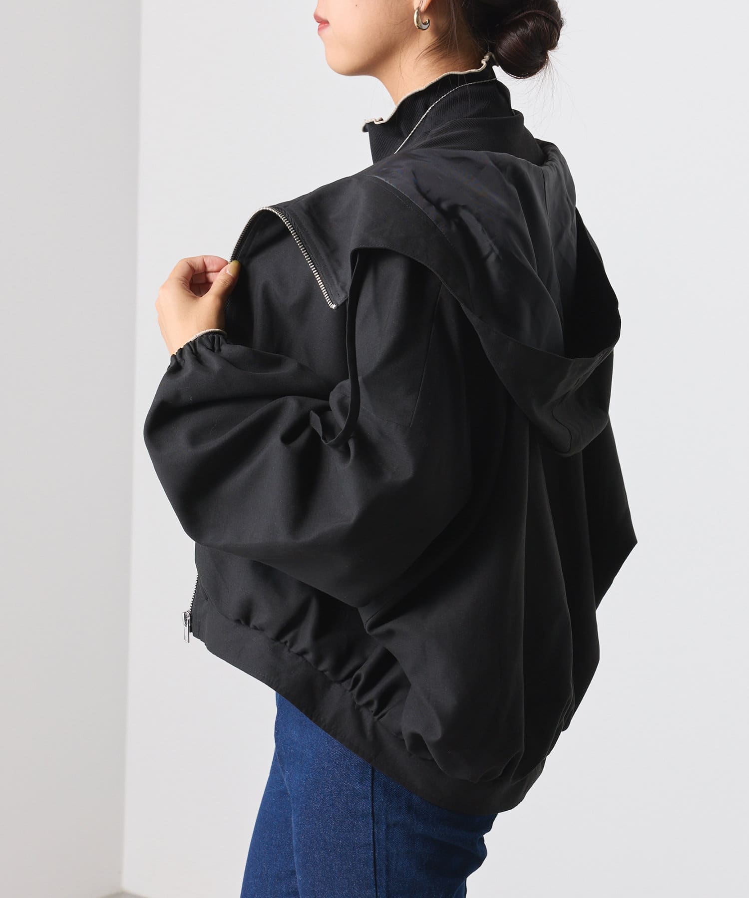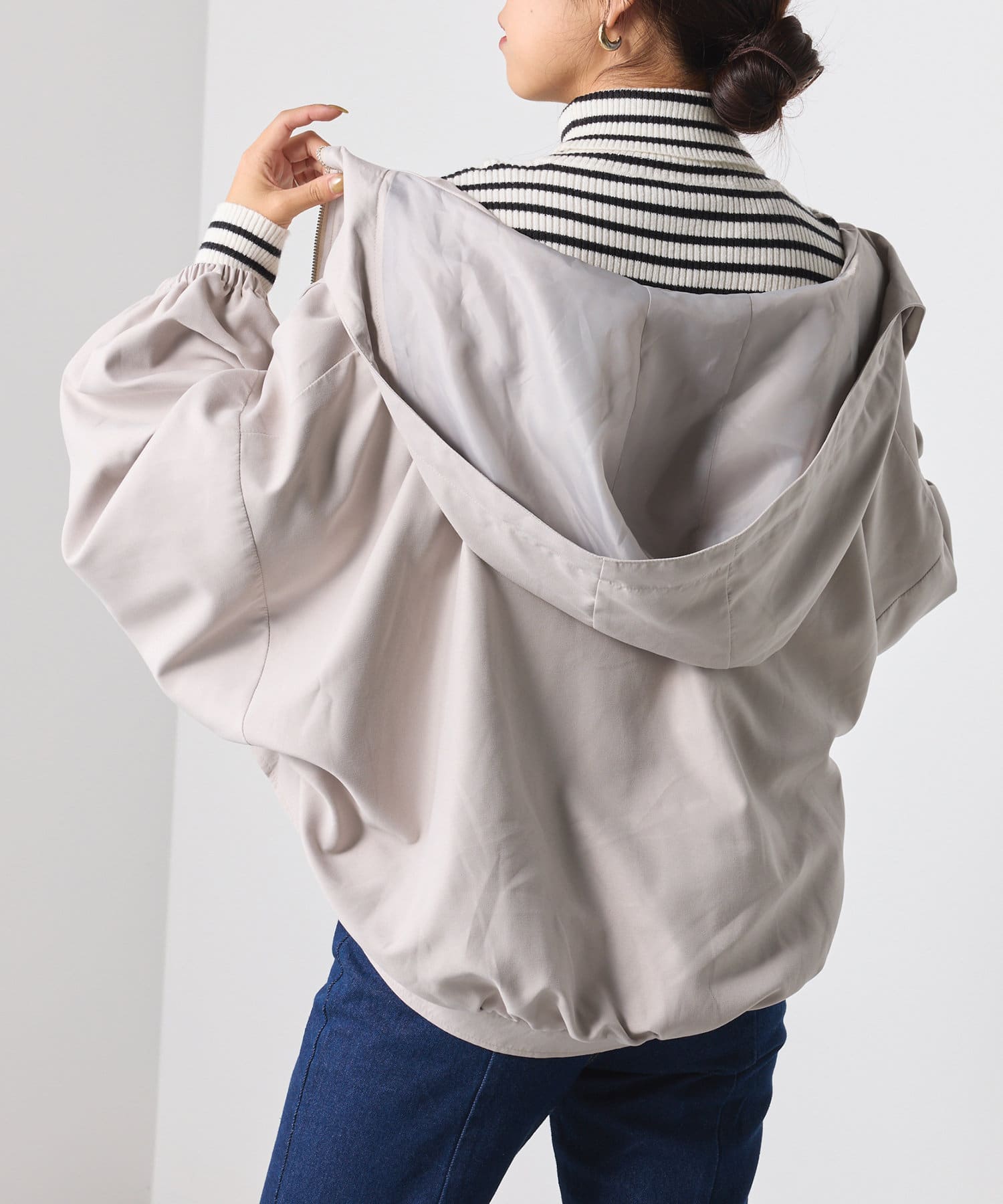 ・手軽に羽織れて、どんなスタイルにも合わせやすいオーソドックスなデザイン。