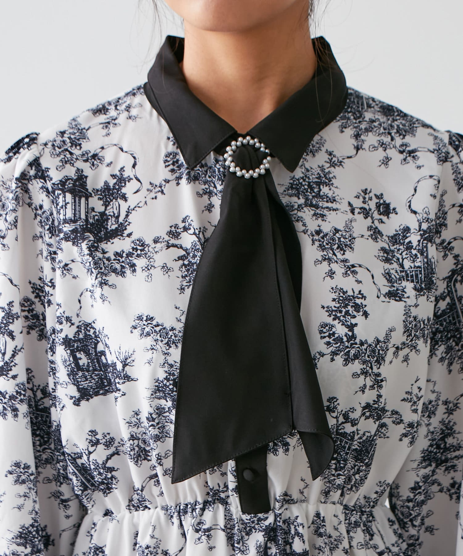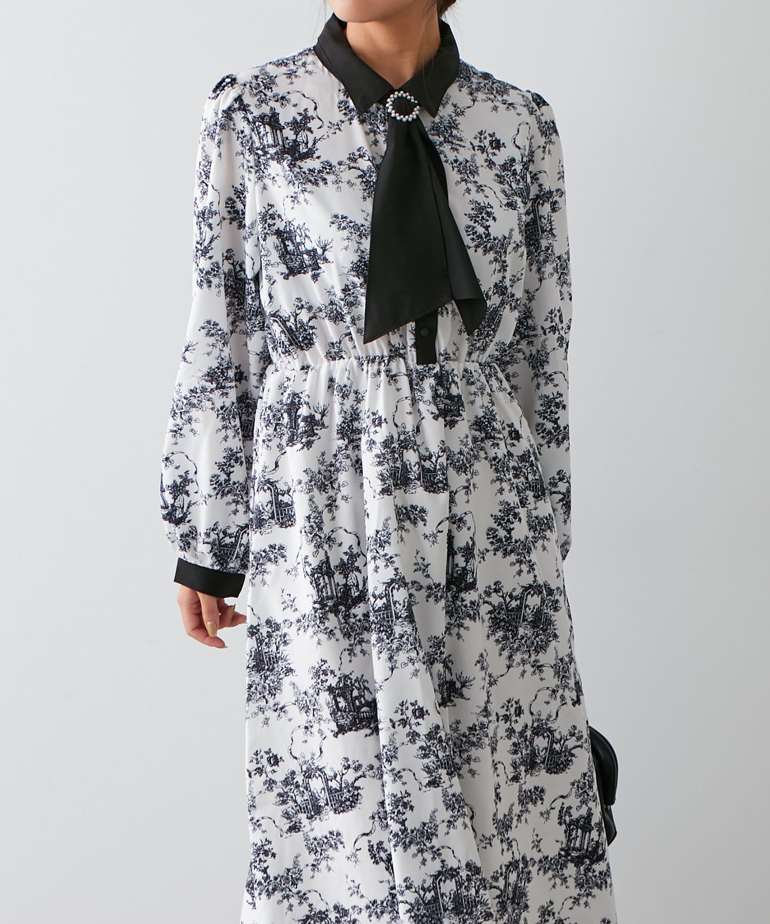 TOP > NICE CLAUP / OLIVE des OLIVE OUTLET > レディース > ワンピース > ドレス/オケージョンワンピース > トワルトシジュイ柄タイ付きワンピース