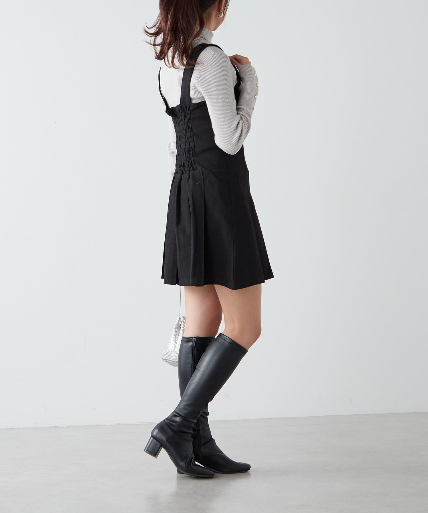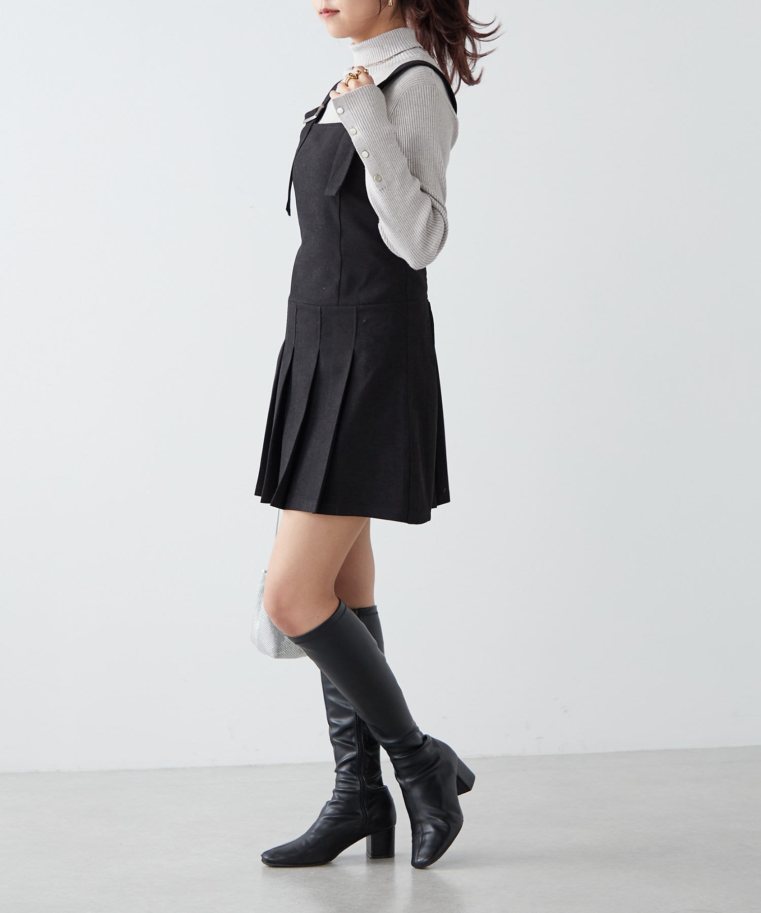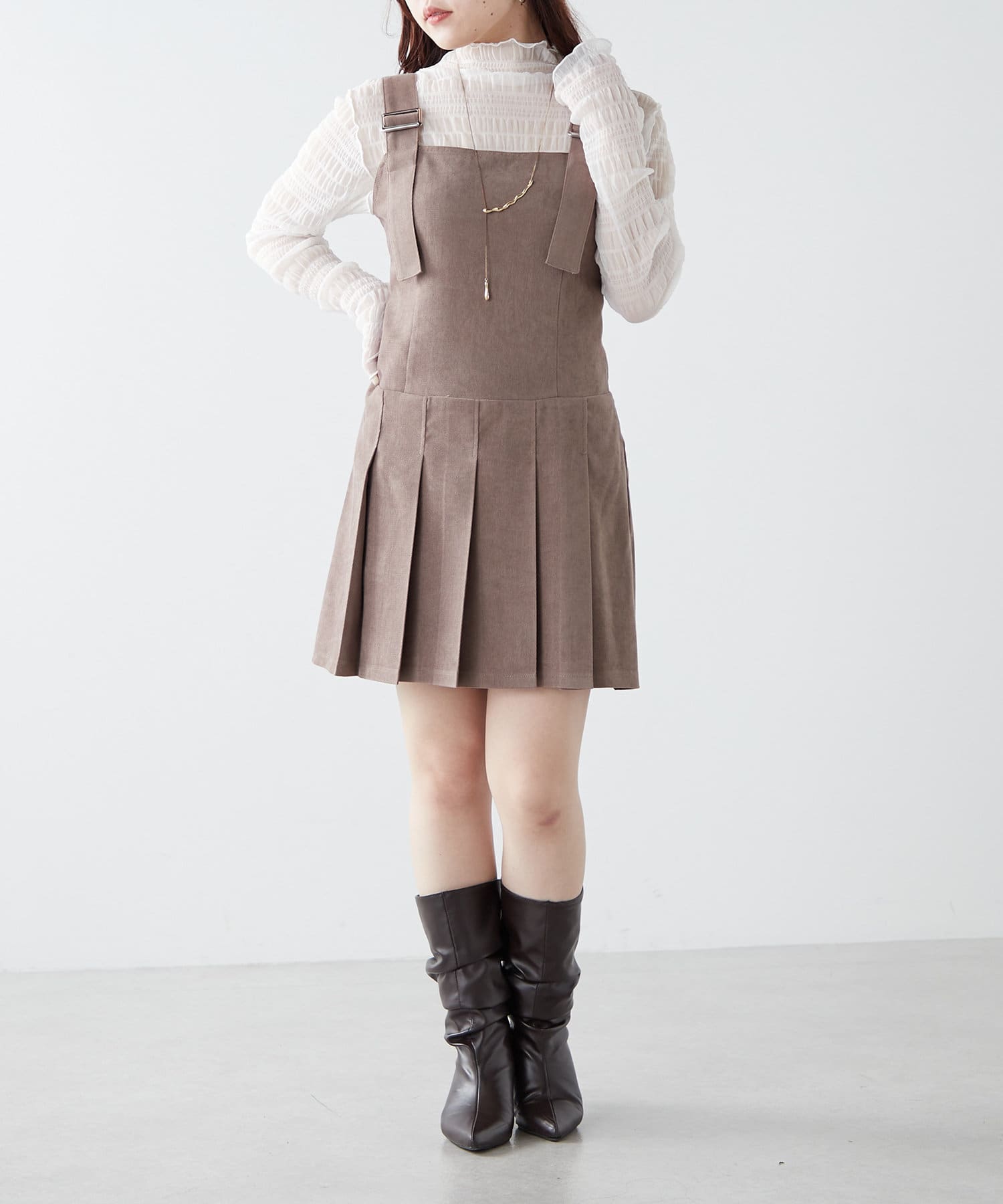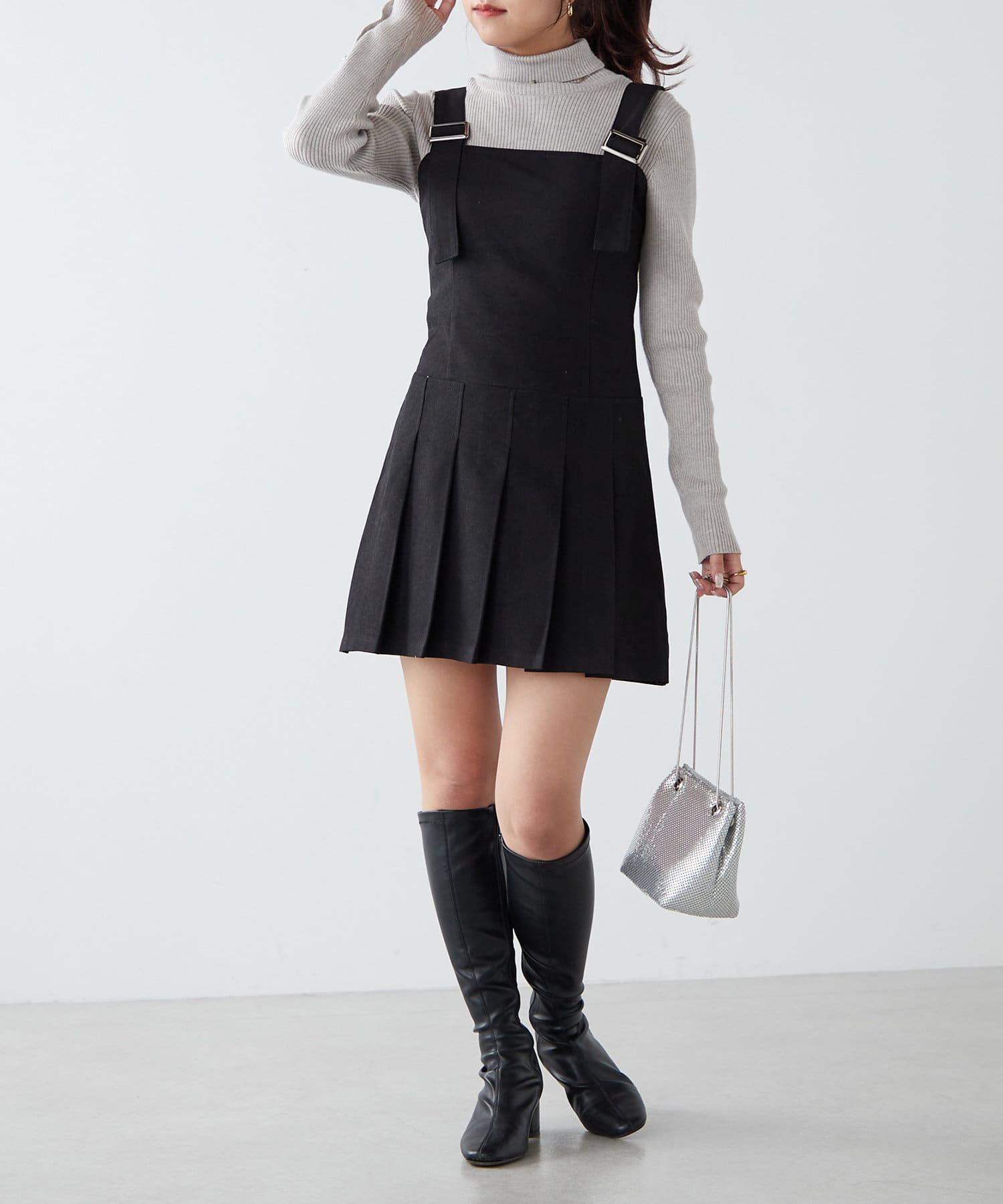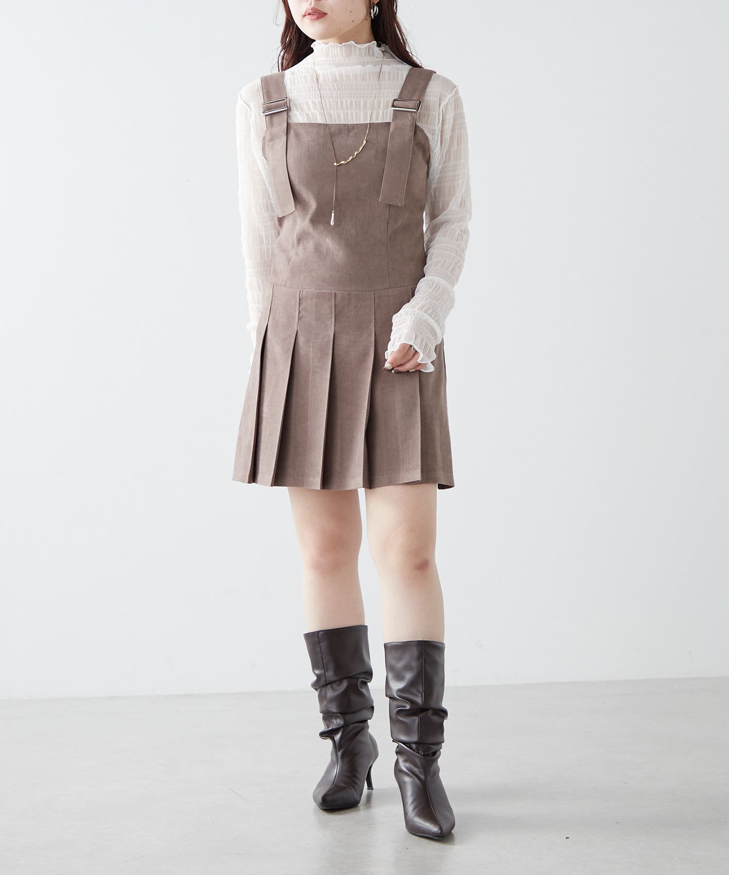 ・プリーツデザインがガーリーなミニ丈のジャンスカ