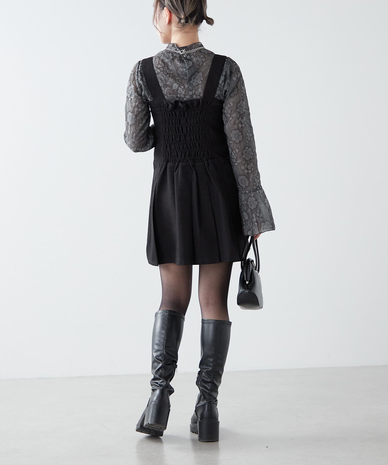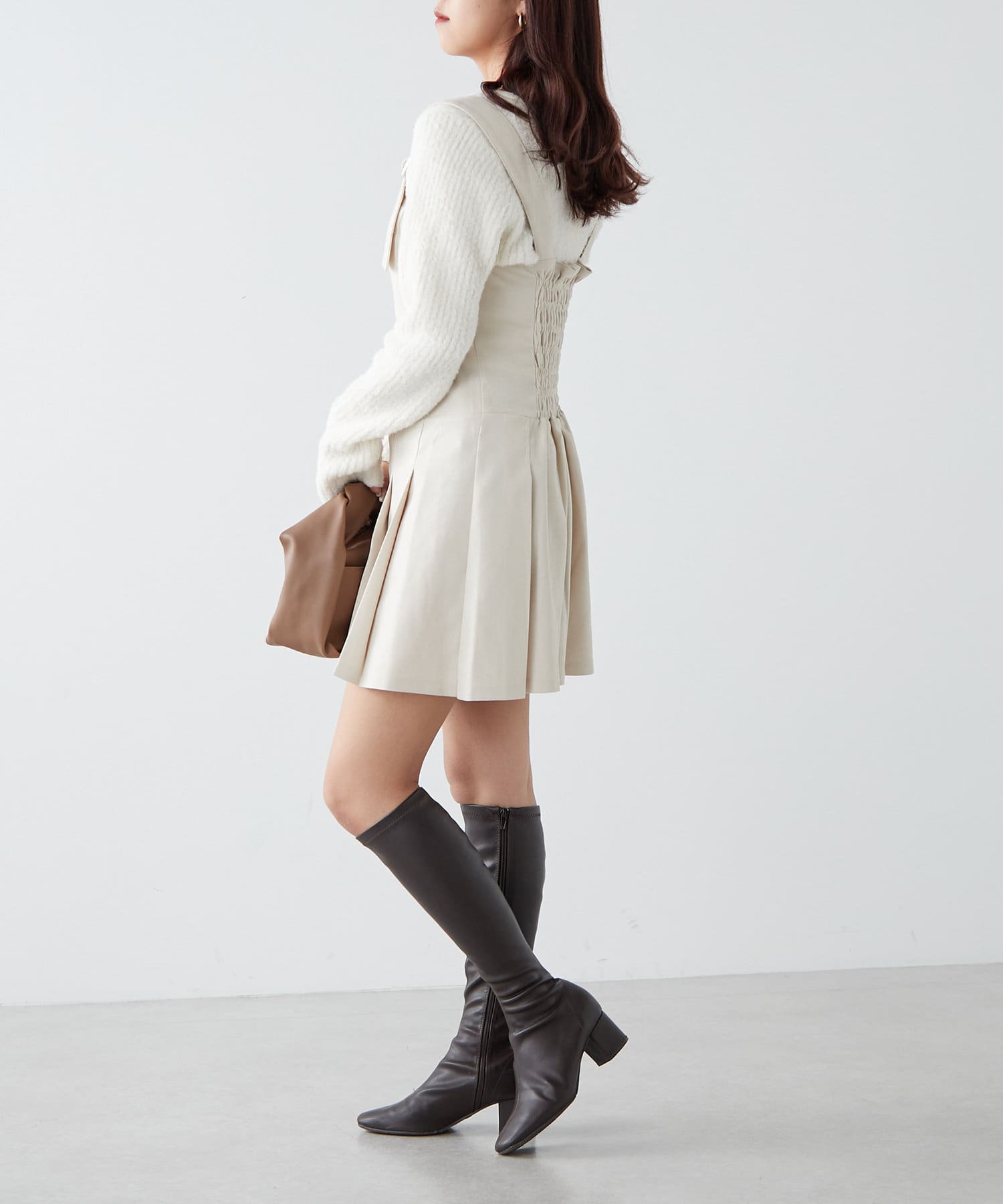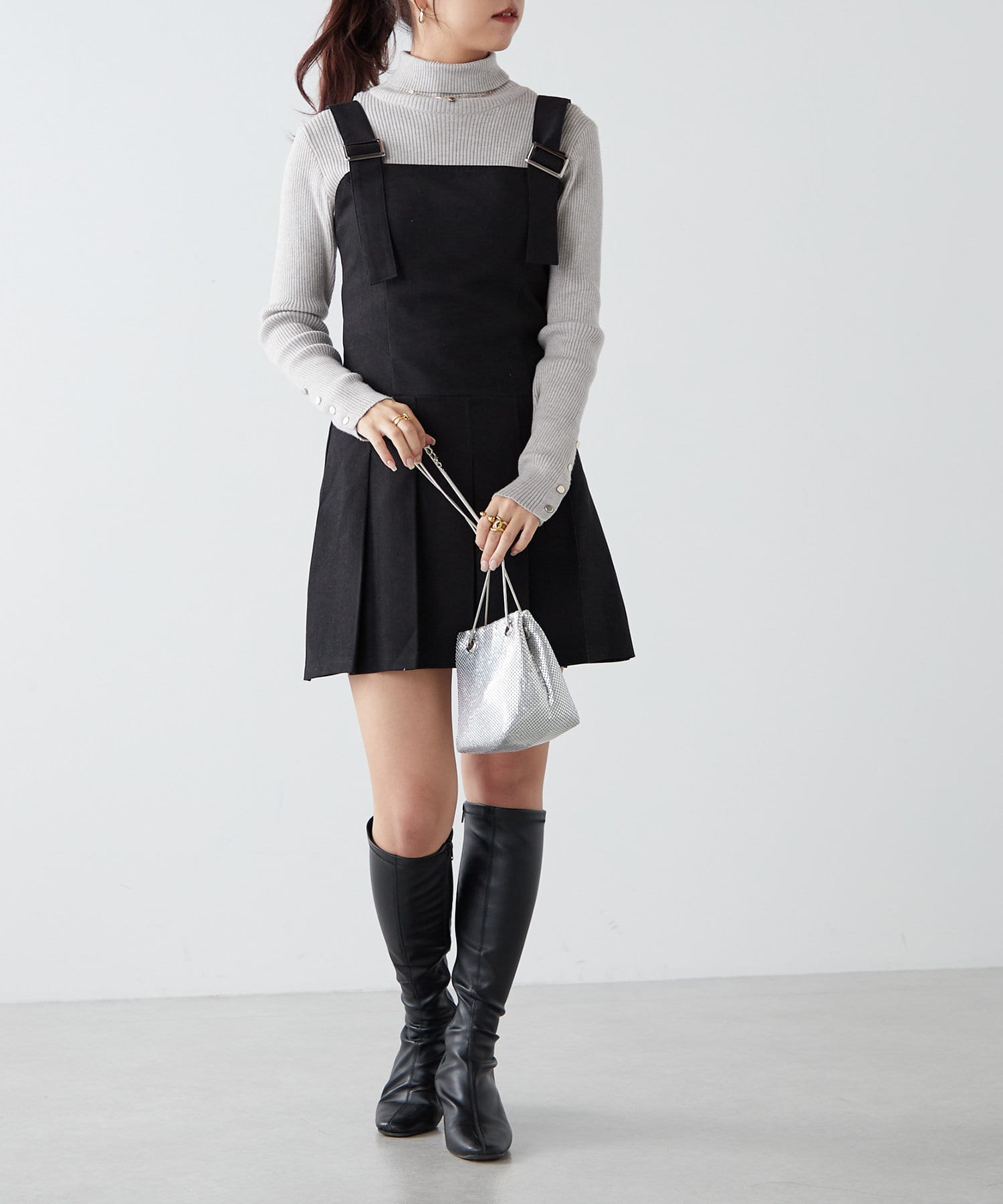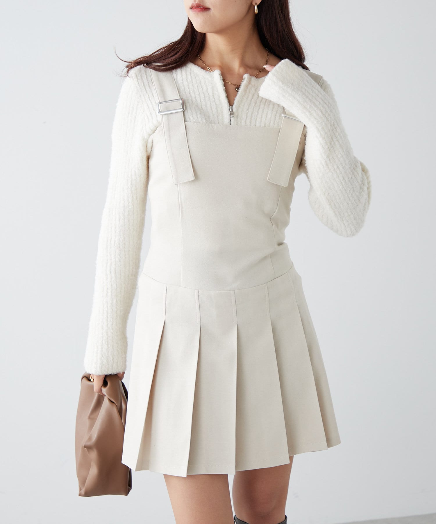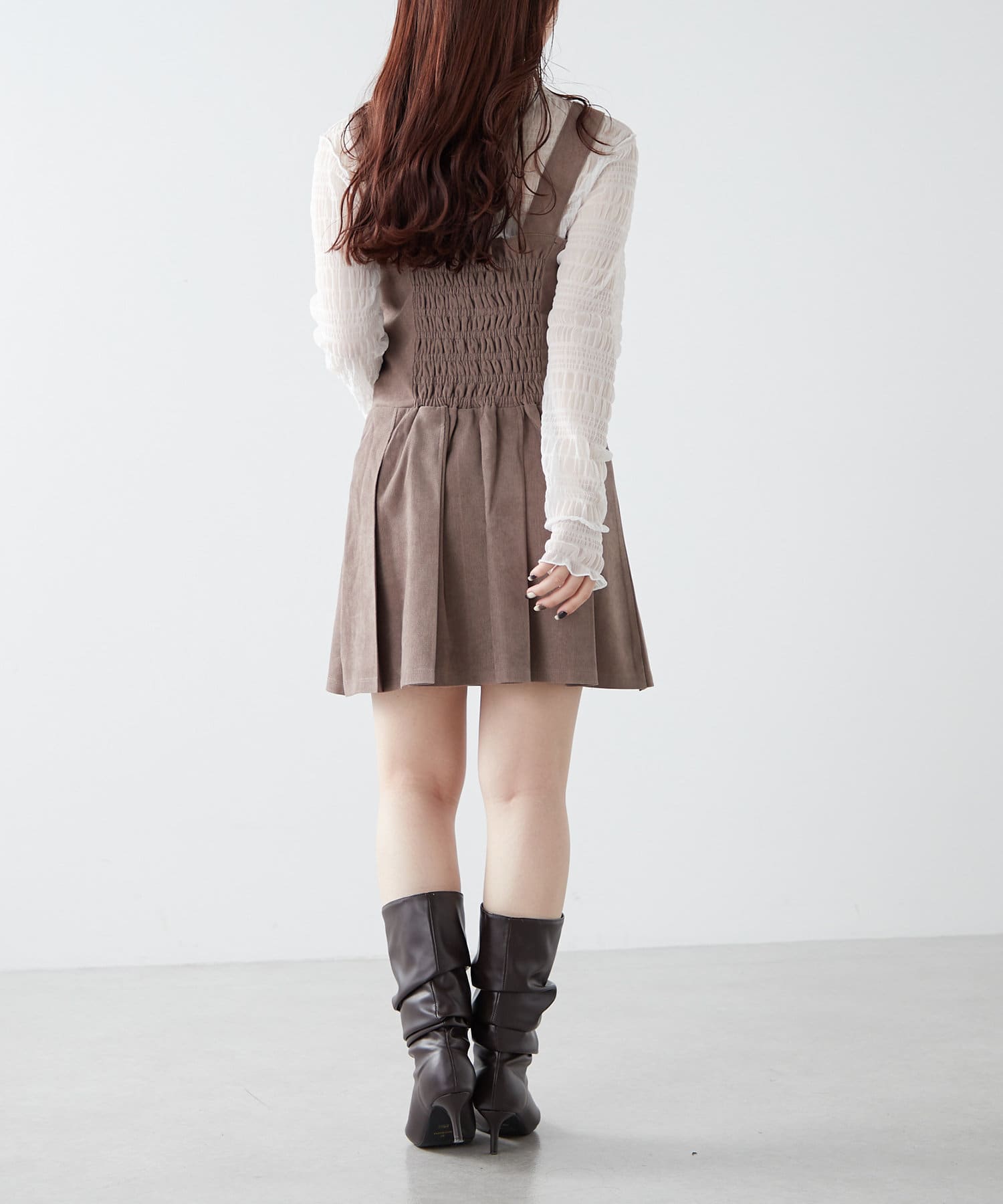 ・プリーツデザインがガーリーなミニ丈のジャンスカ