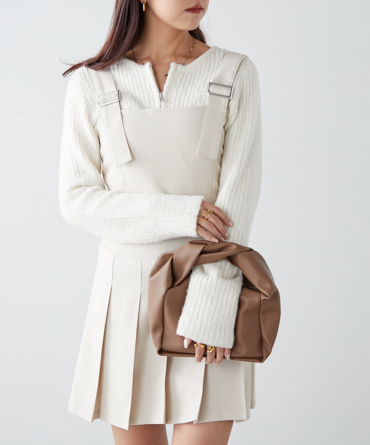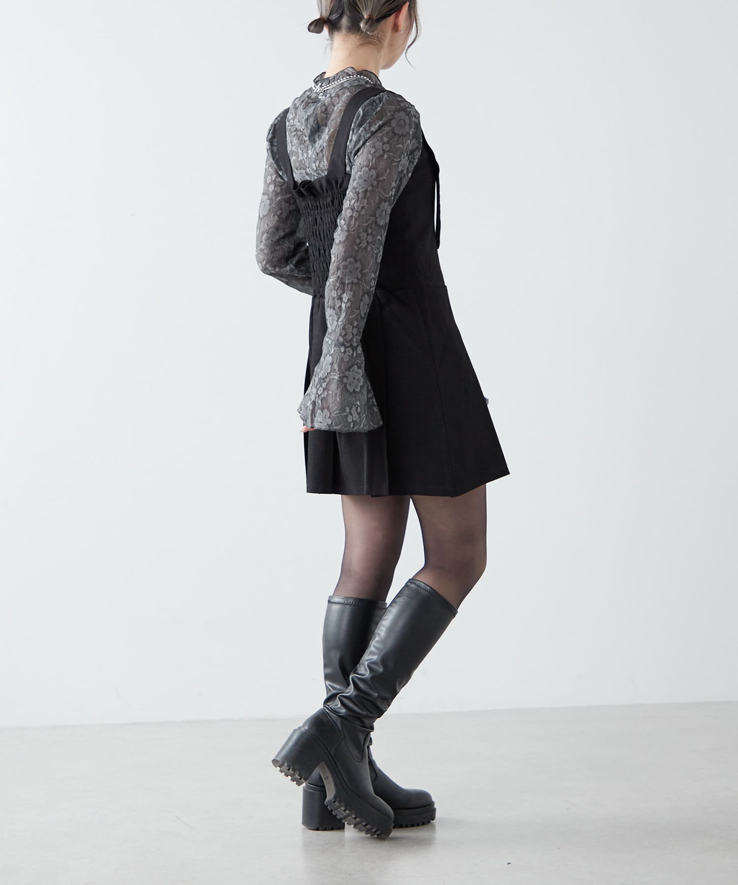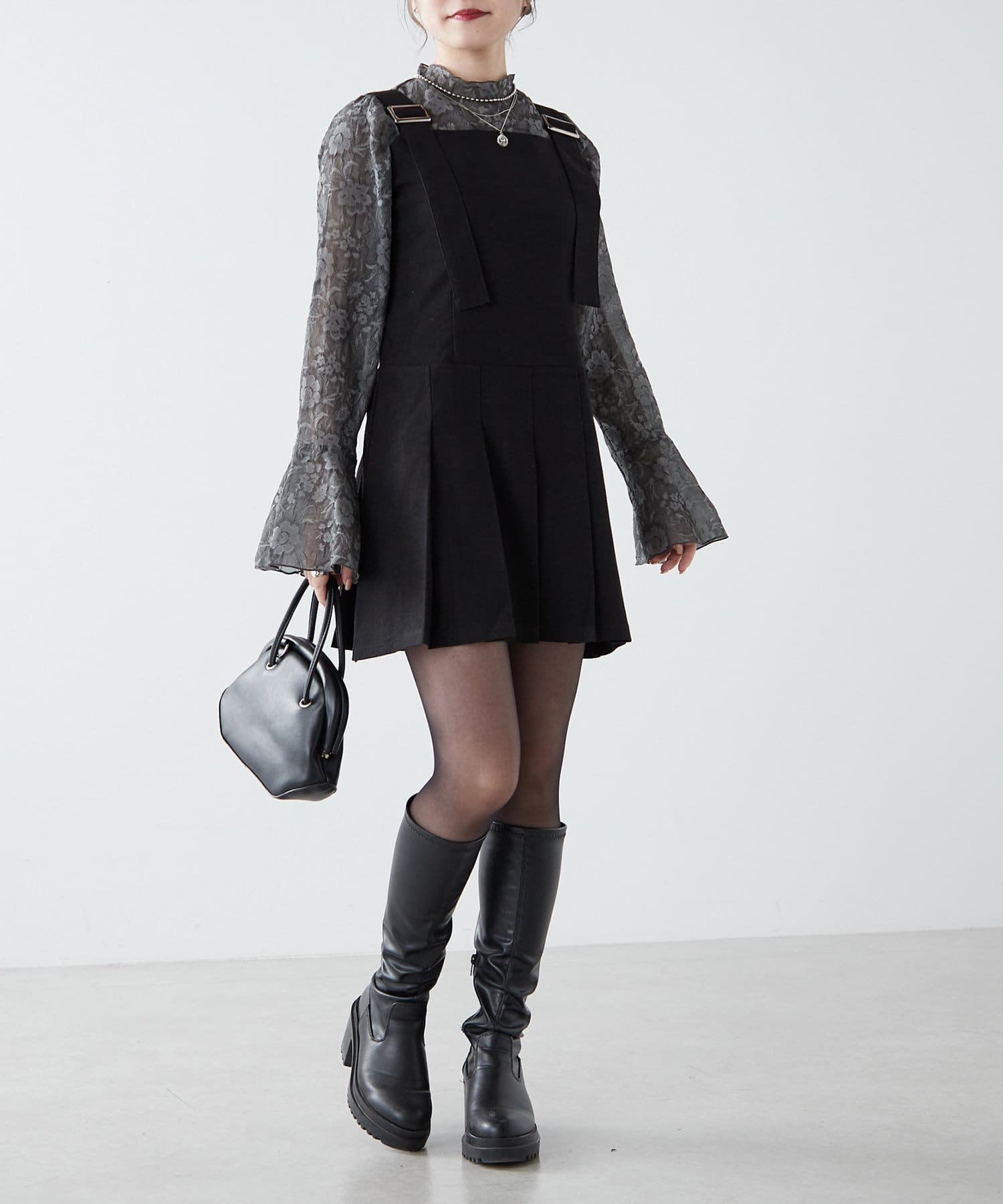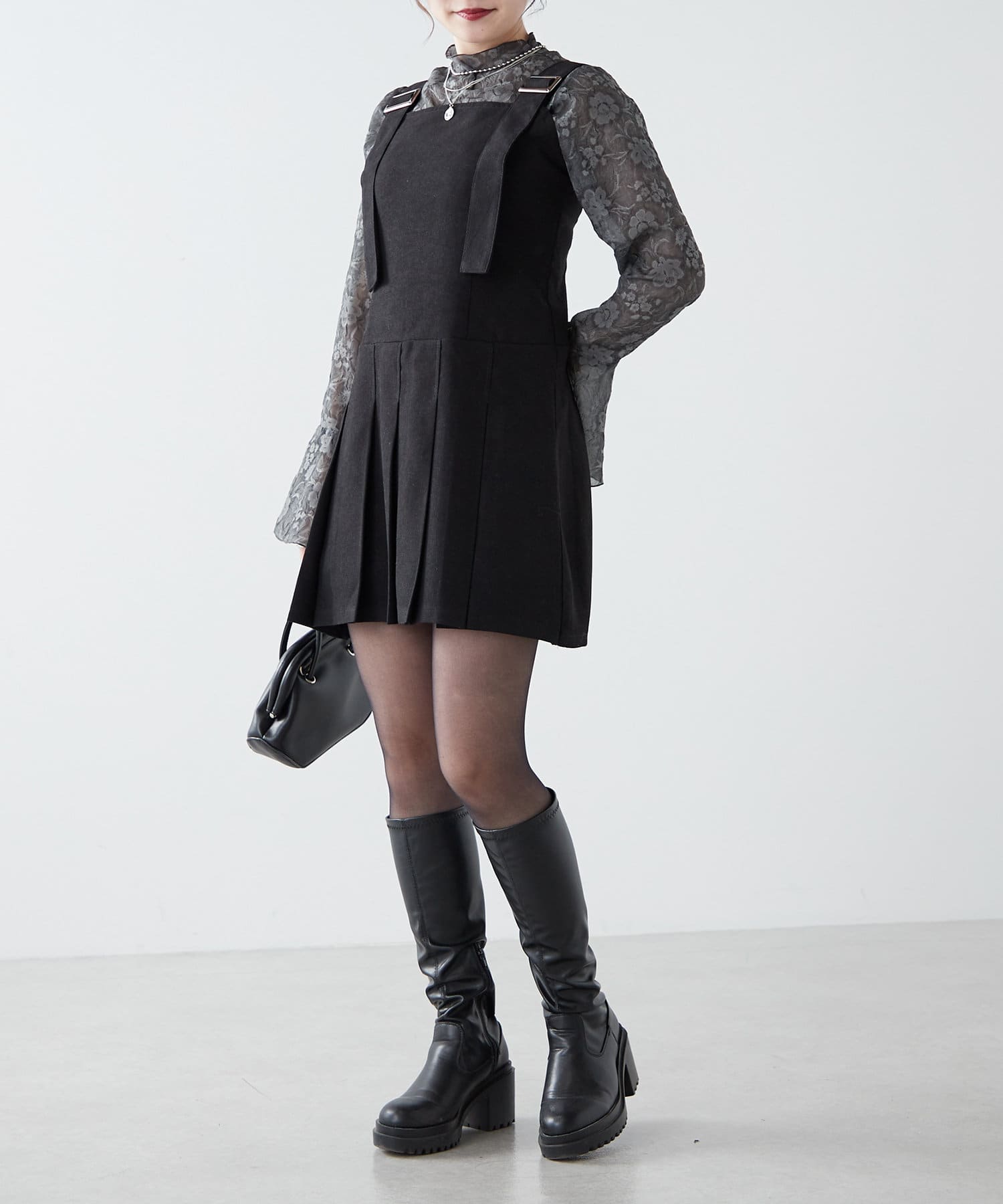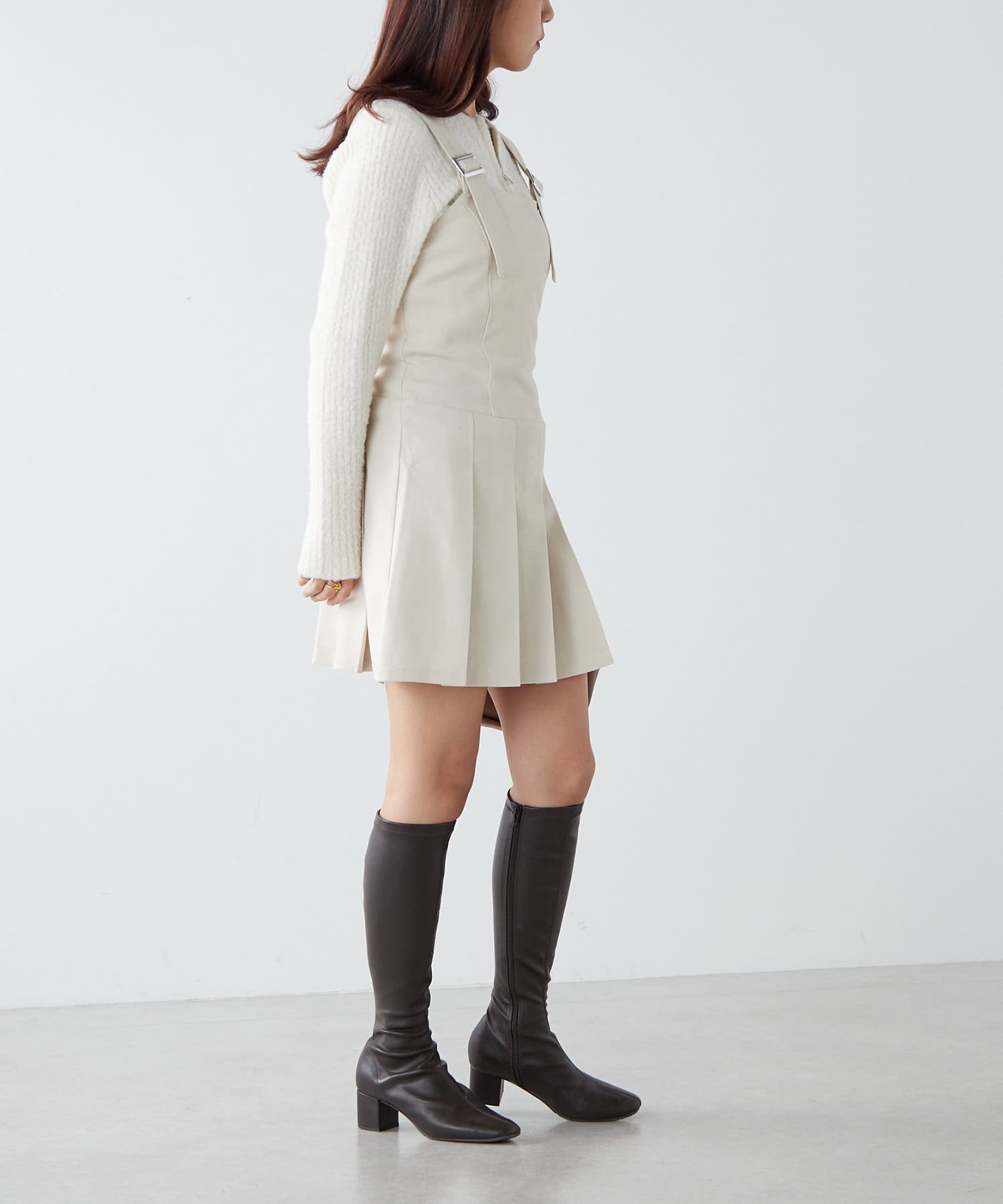・プリーツデザインがガーリーなミニ丈のジャンスカ