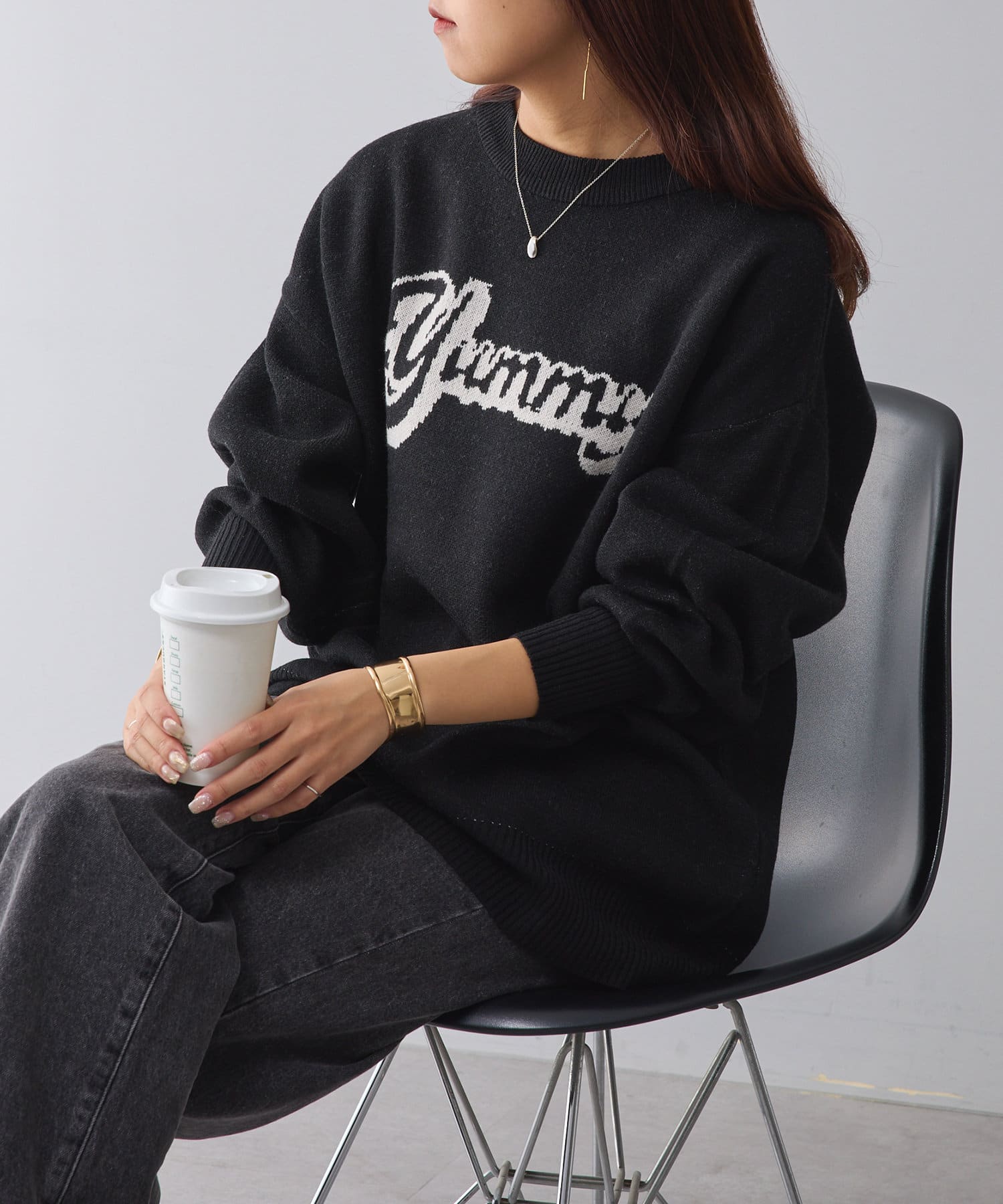 オーバーサイズロゴニット