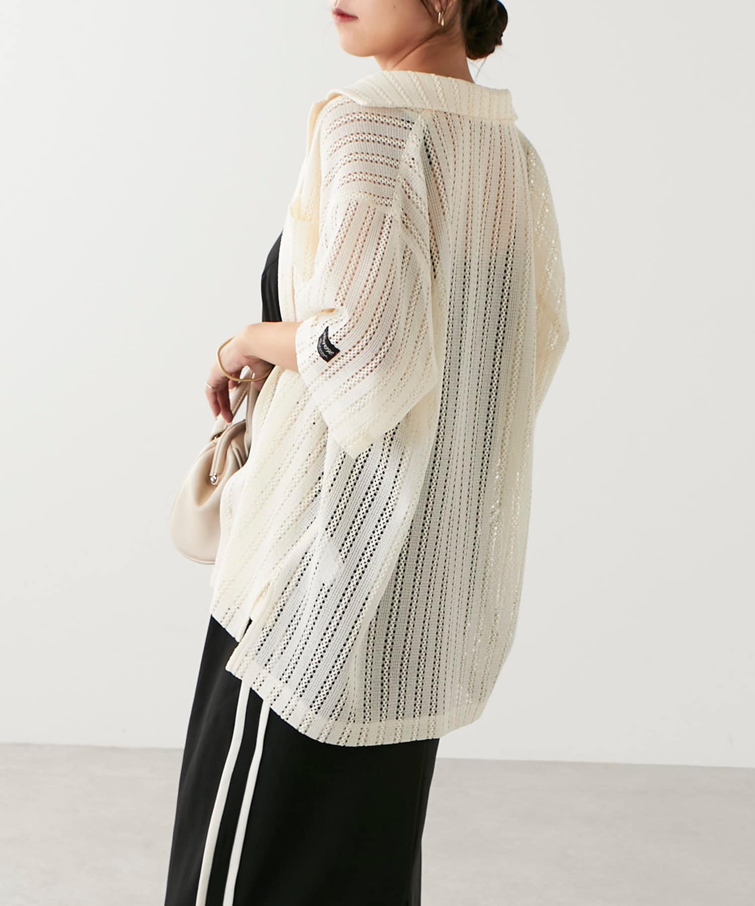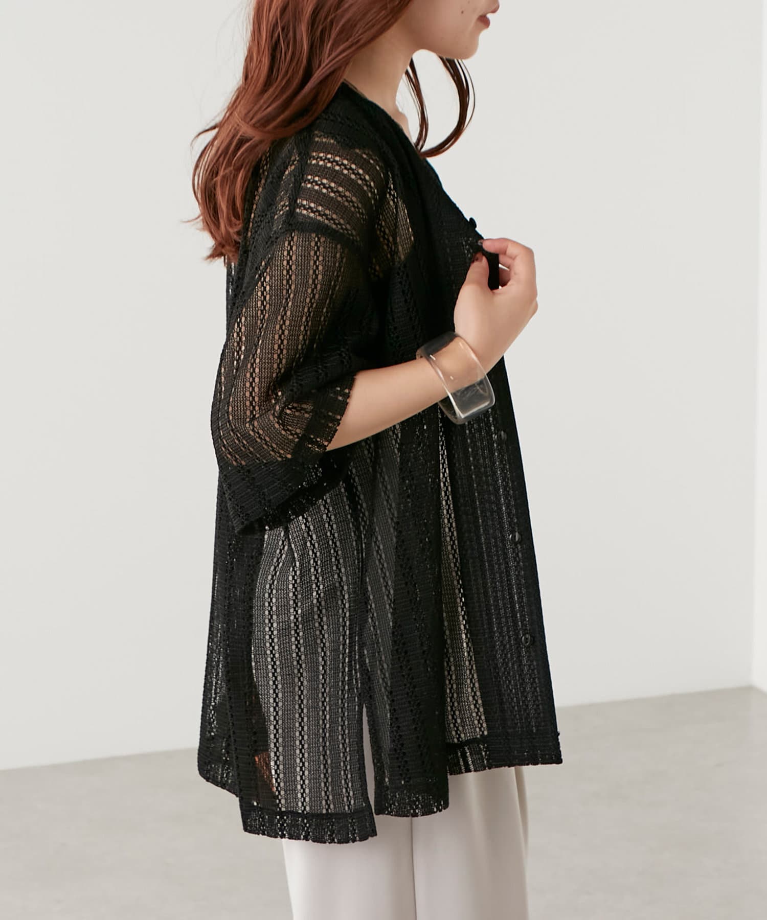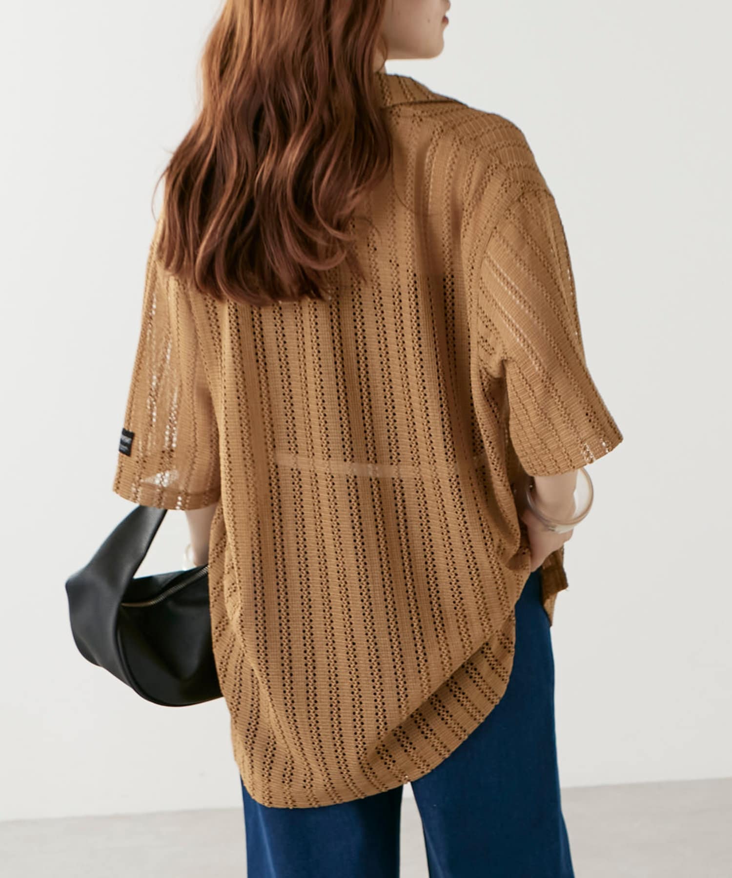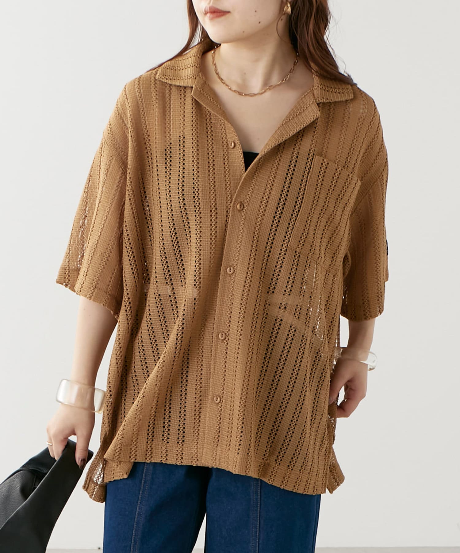 ・トレンド感溢れる透かしデザインが特徴のニットシャツ。