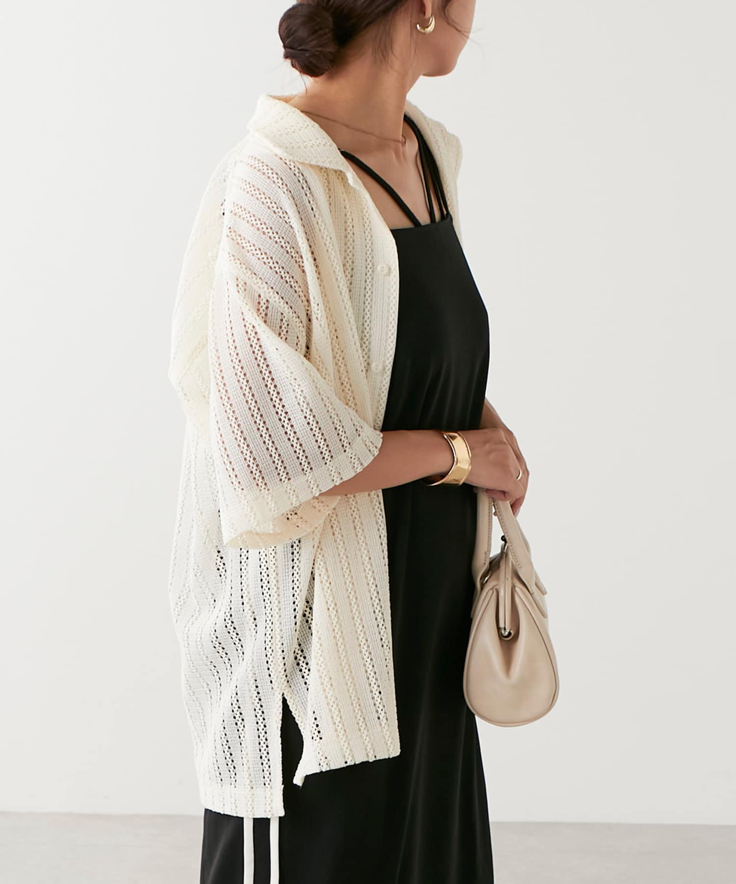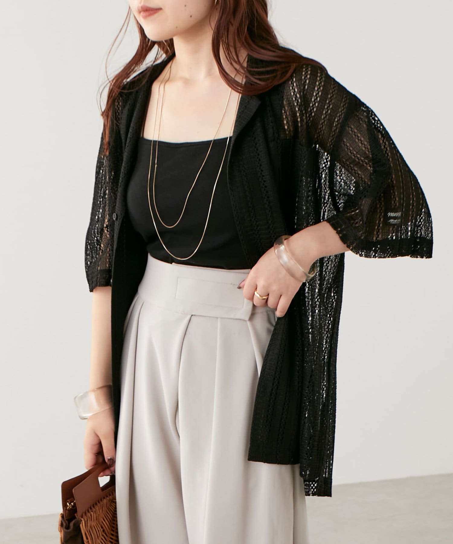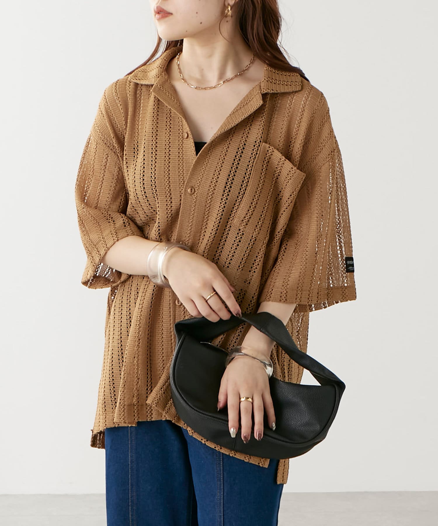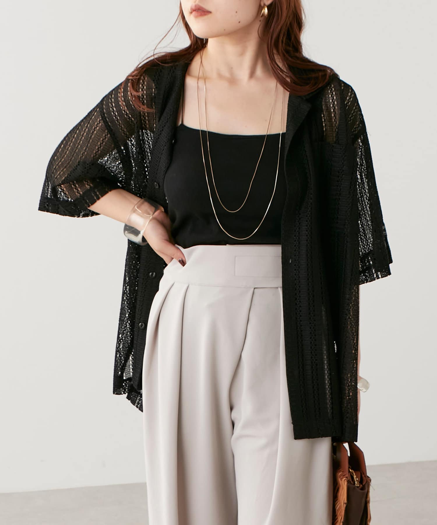 ・トレンド感溢れる透かしデザインが特徴のニットシャツ。