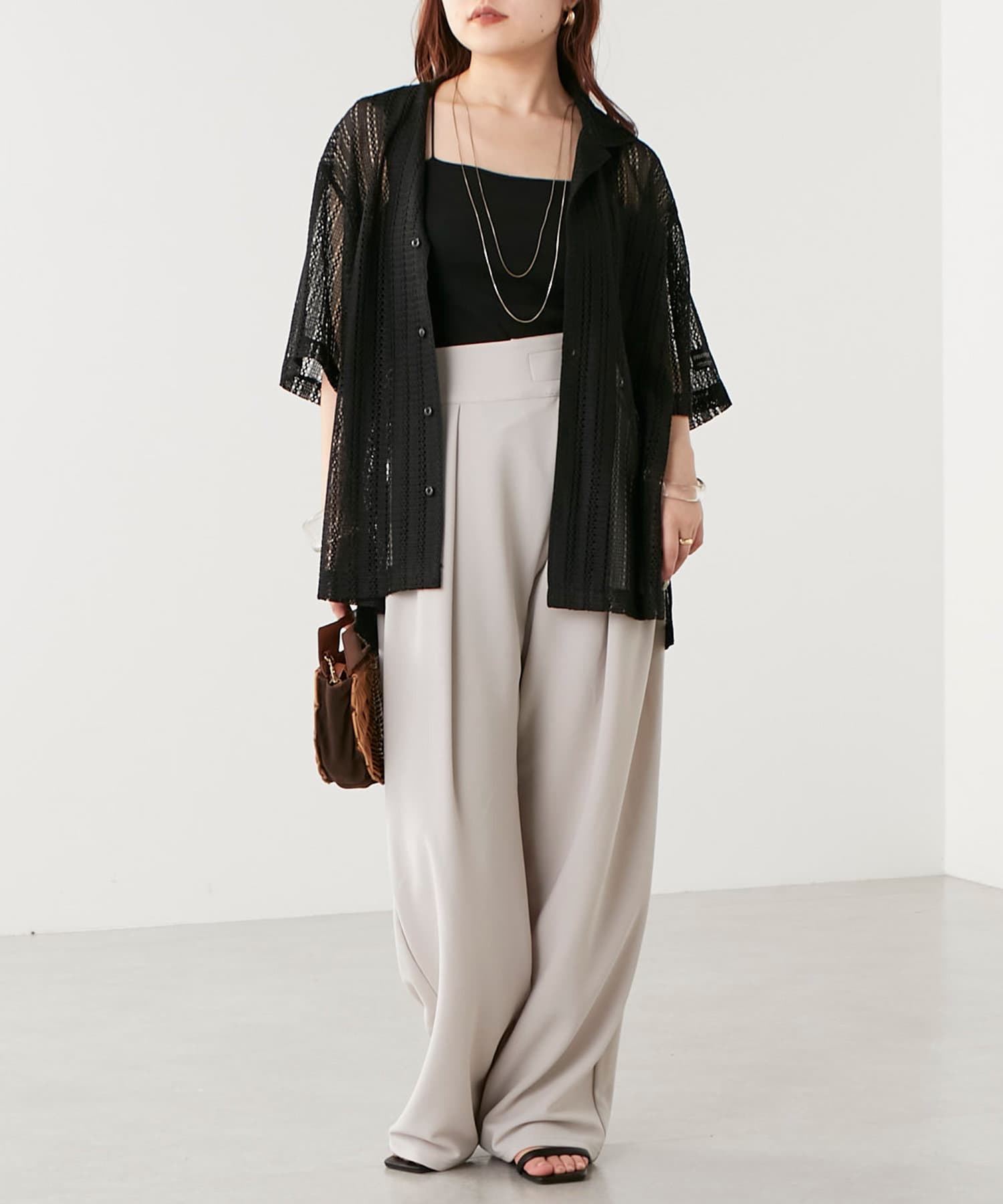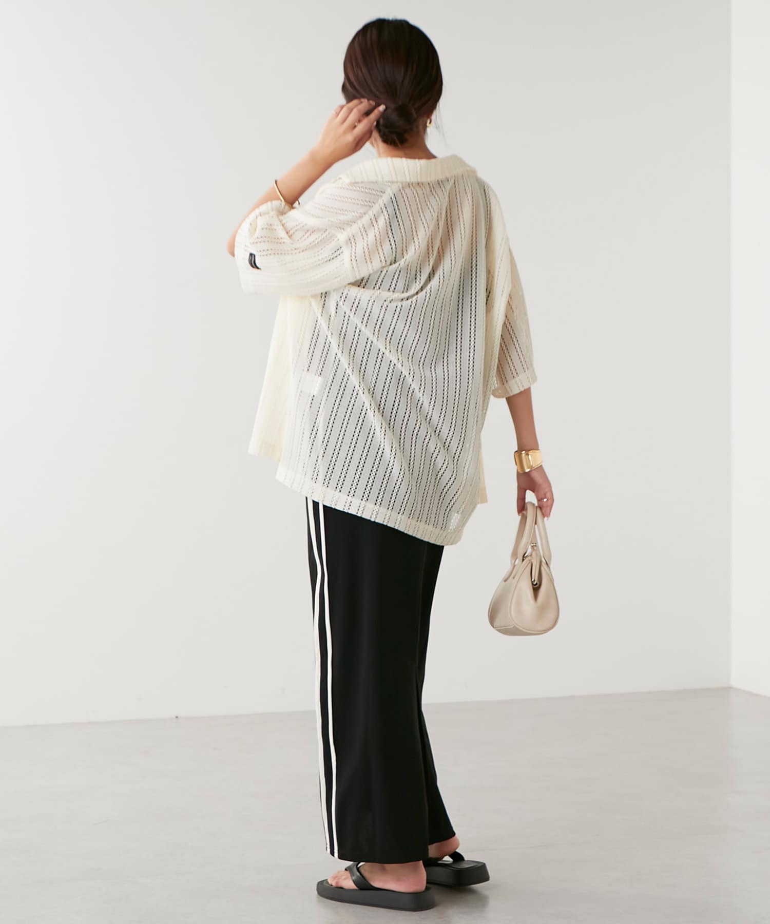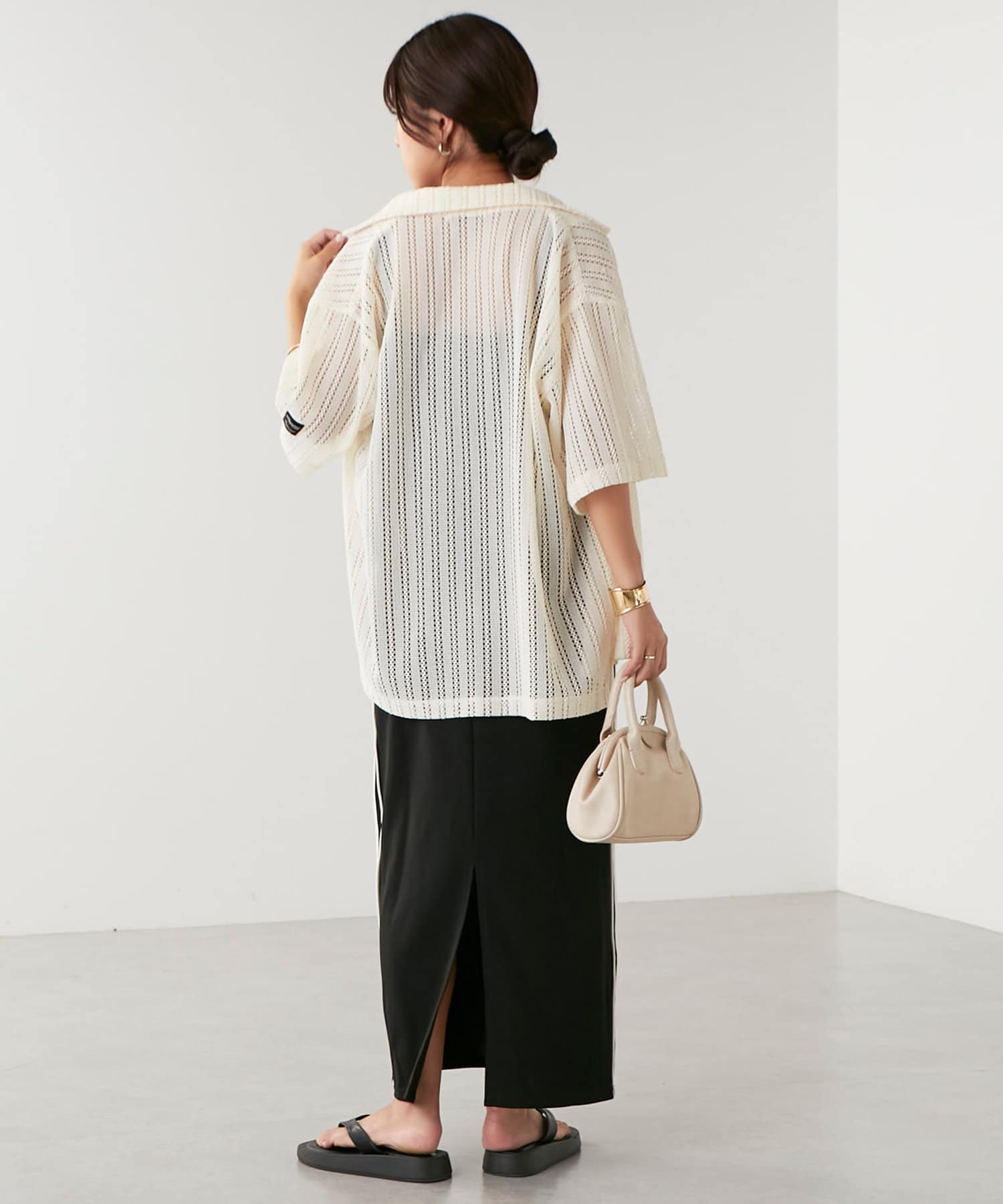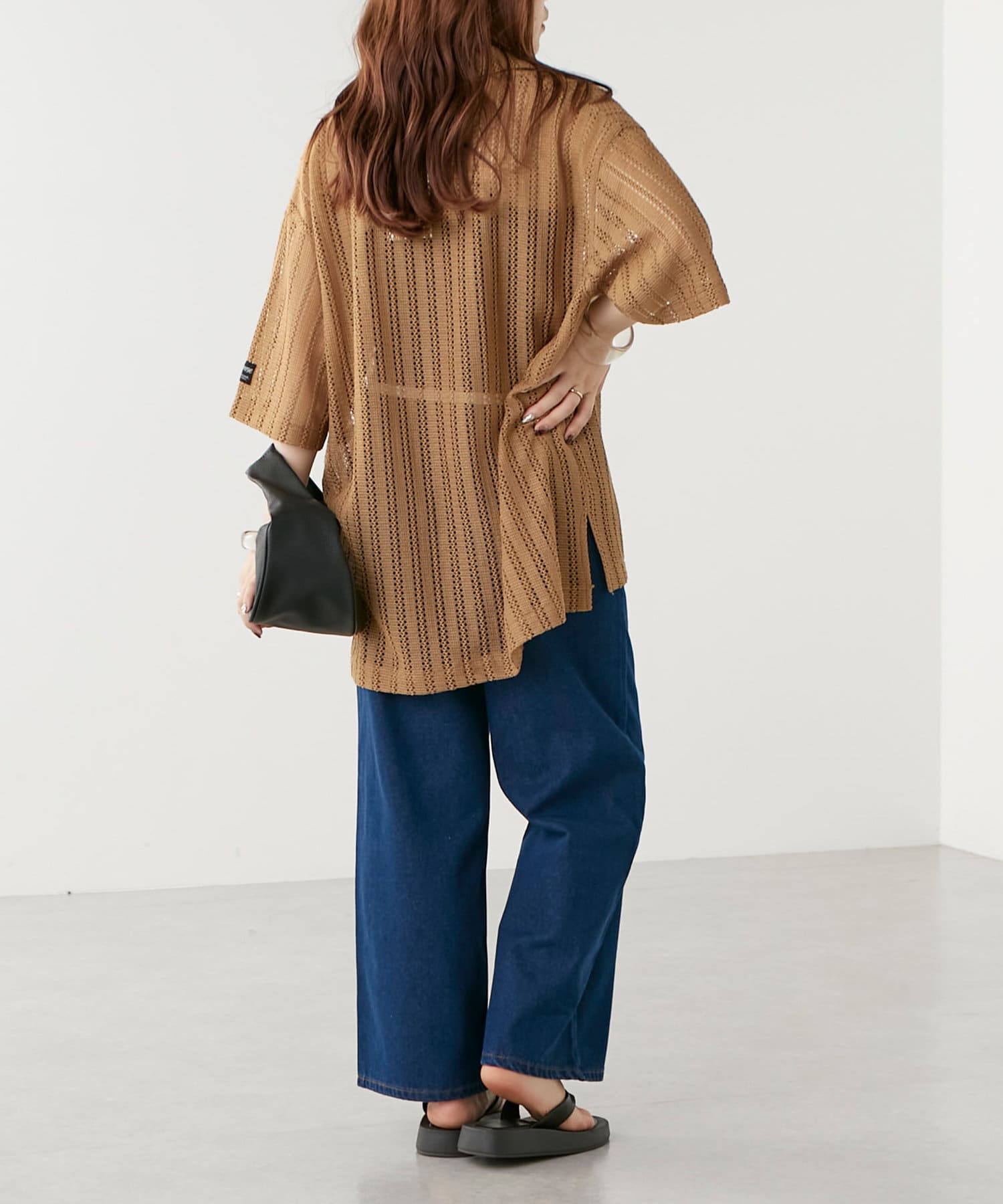 ・トレンド感溢れる透かしデザインが特徴のニットシャツ。