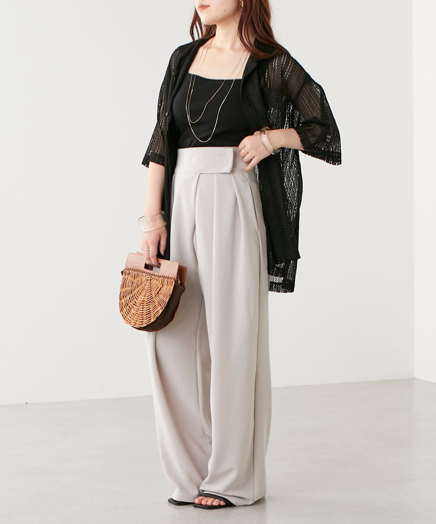 ・スラックスなどのすっきりとしたパンツと合わせると少し大人っぽい印象に〇