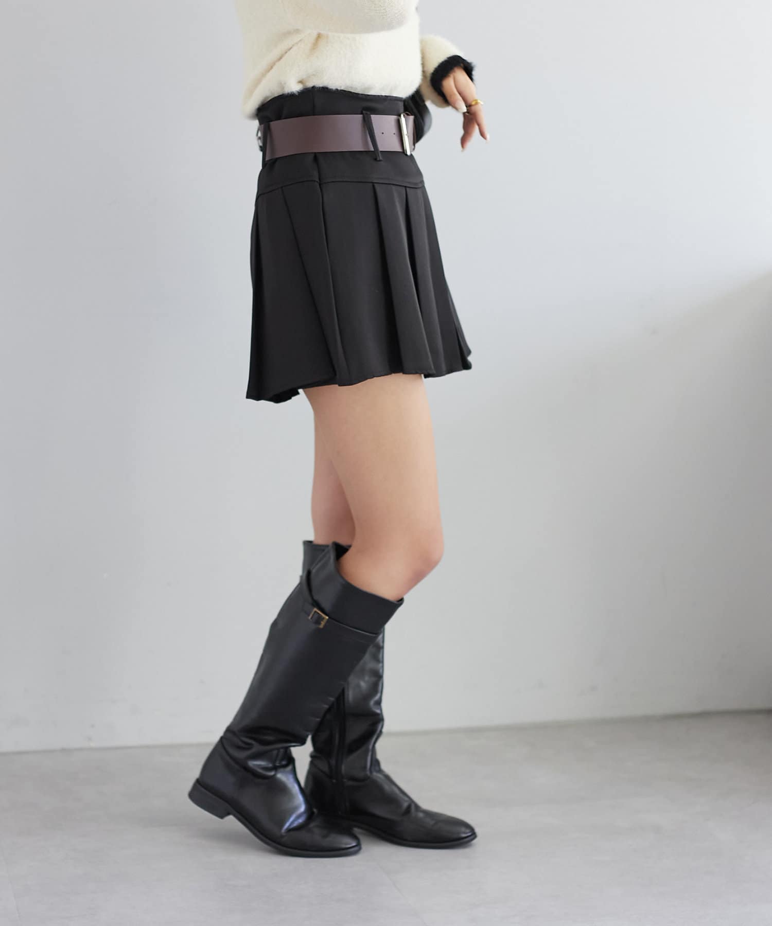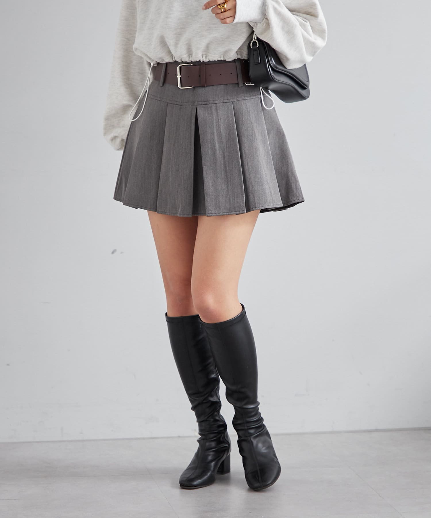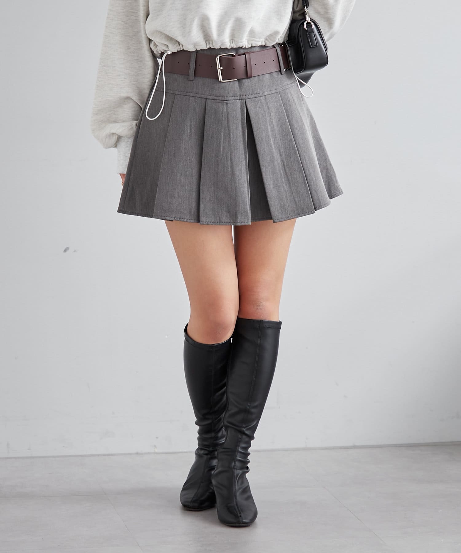 ベルトがセットになったプリーツミニスカート