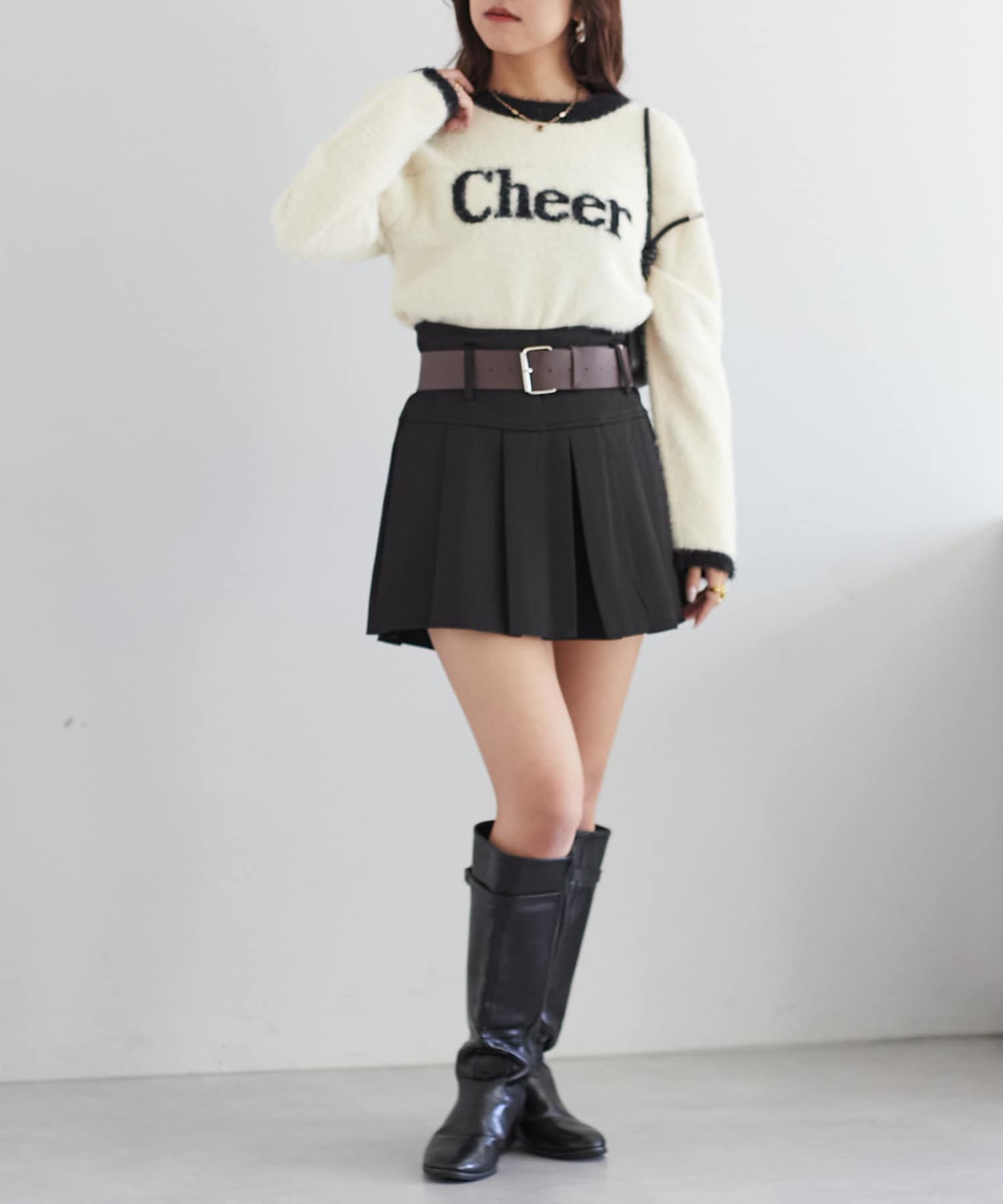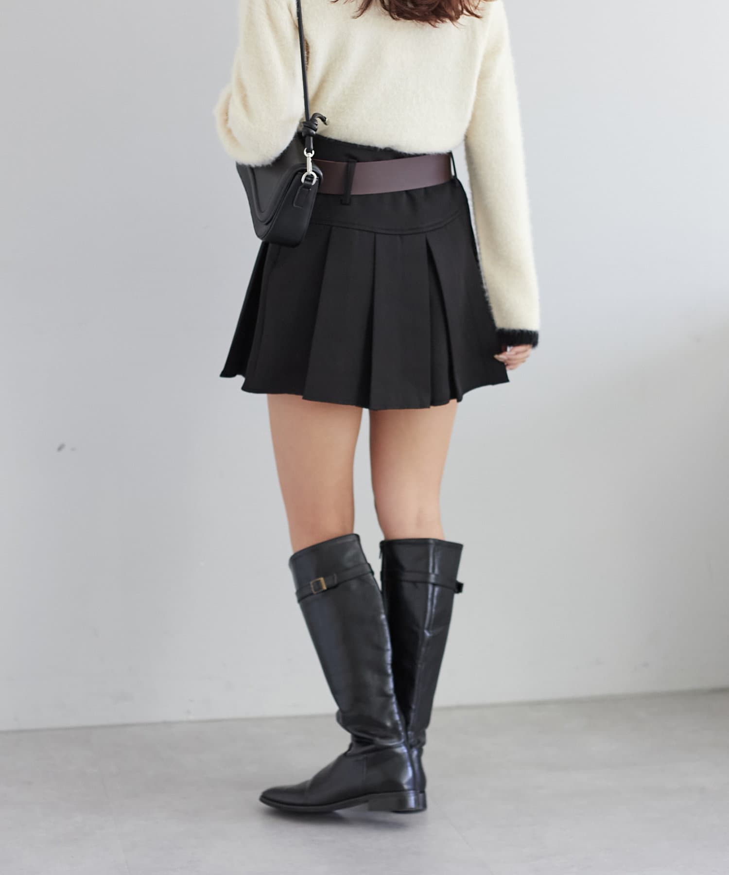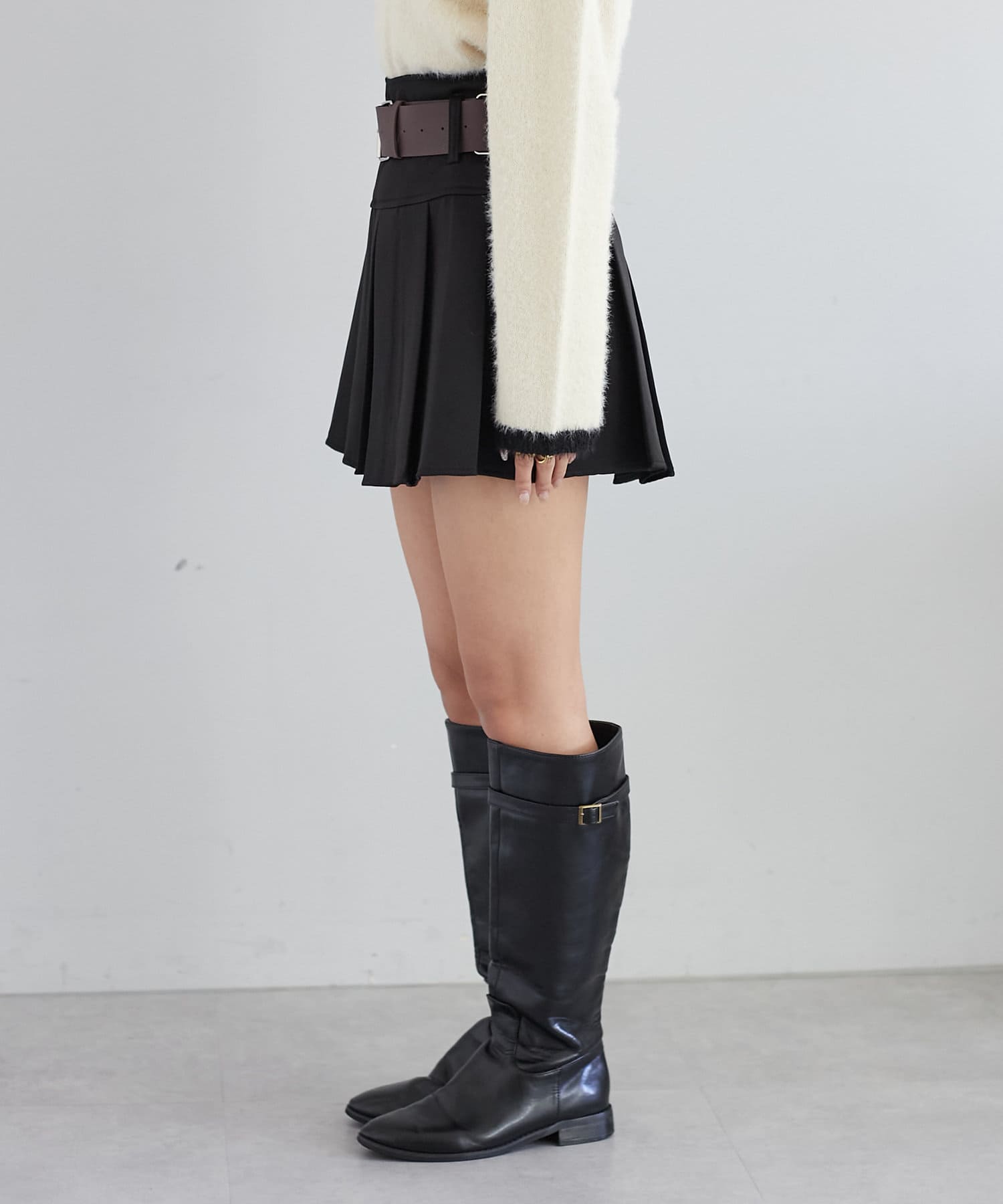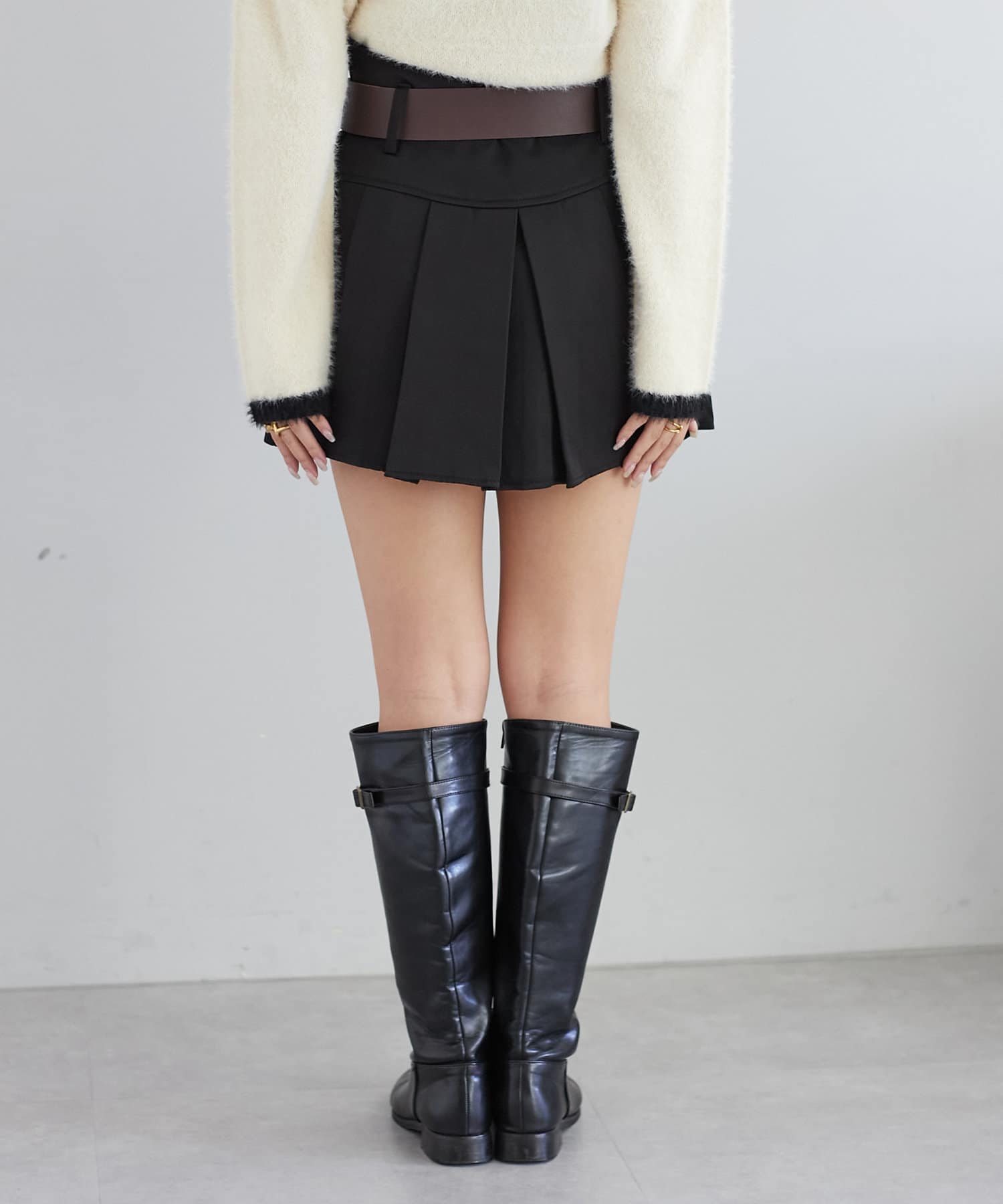 ベルトがセットになったプリーツミニスカート