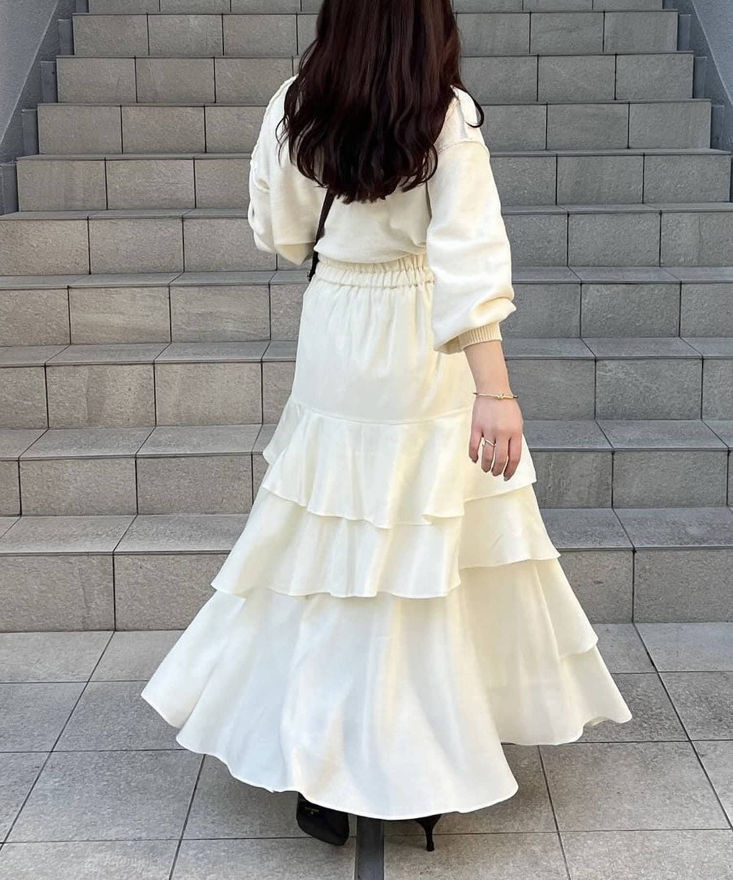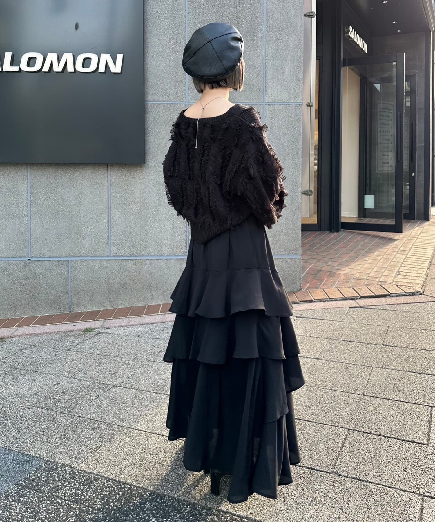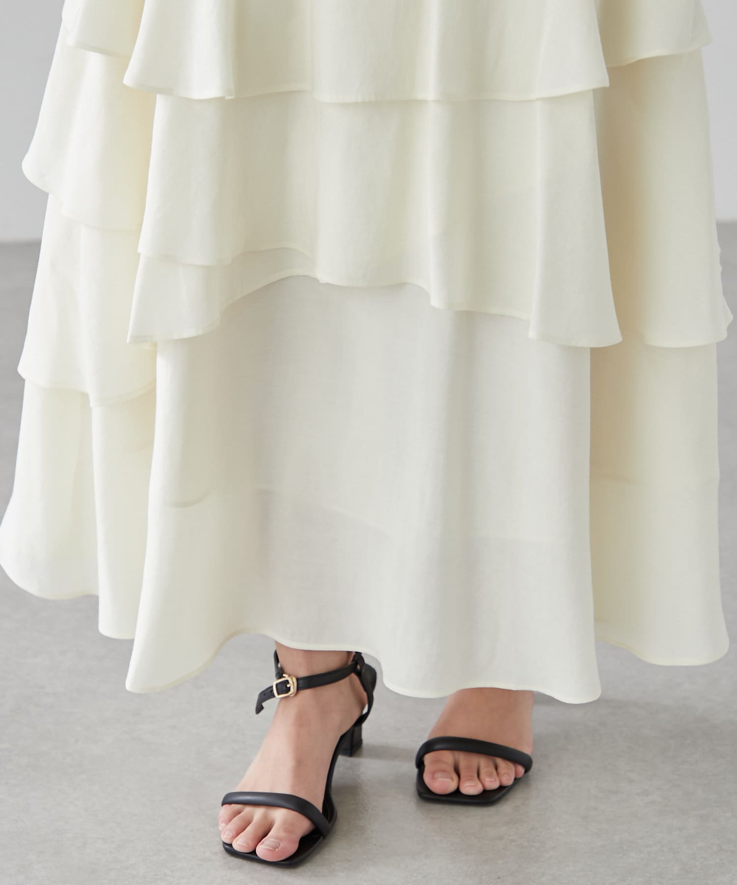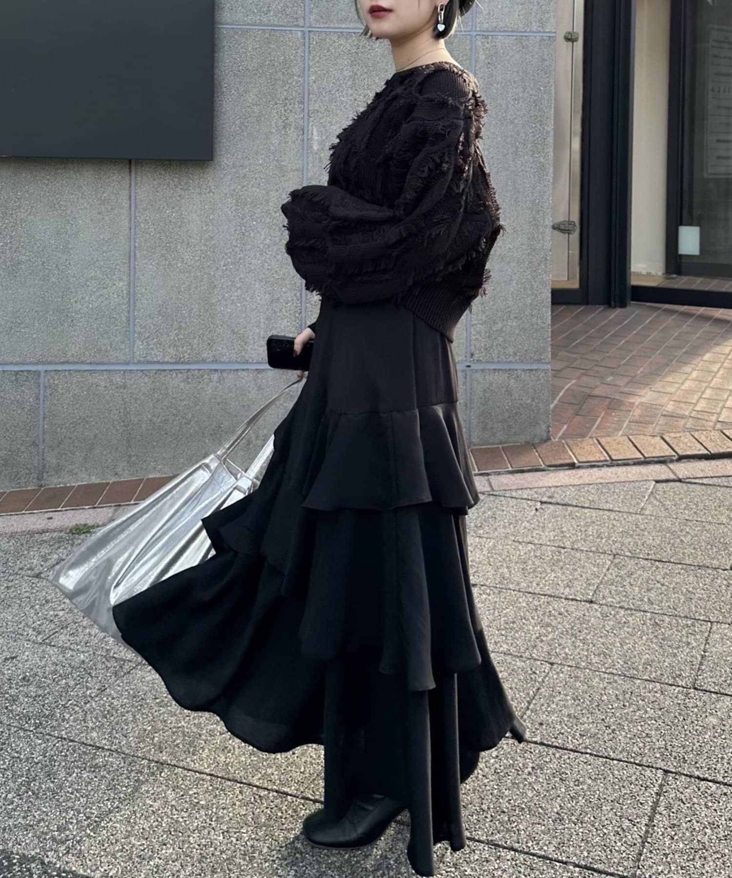 アシンメトリーに配置されたティアードが歩くたびにふわっと揺れ、