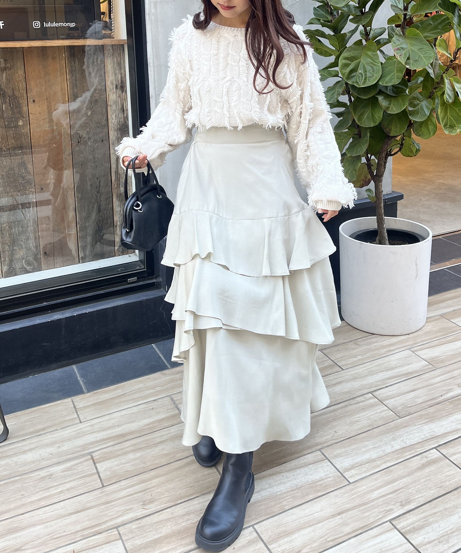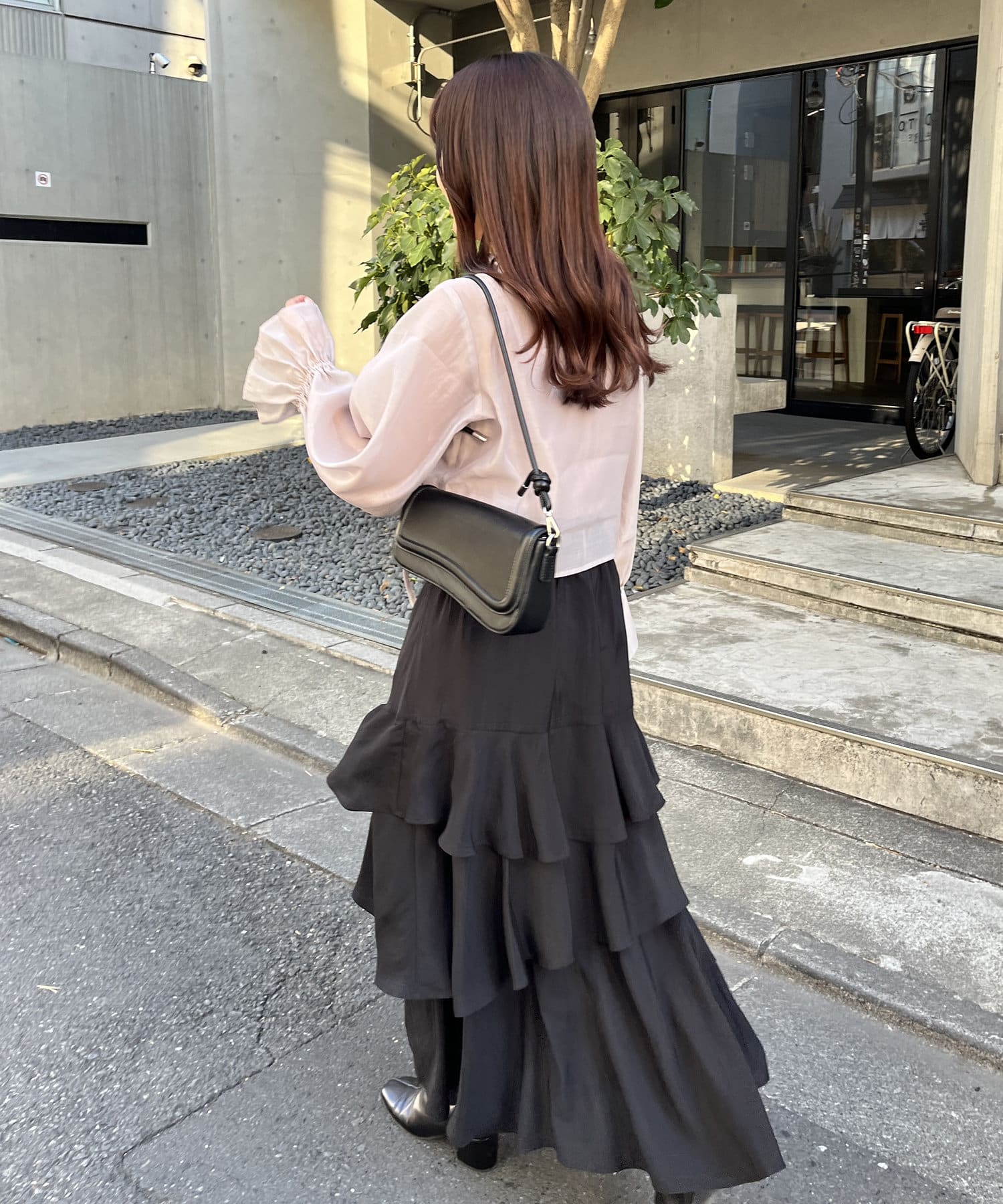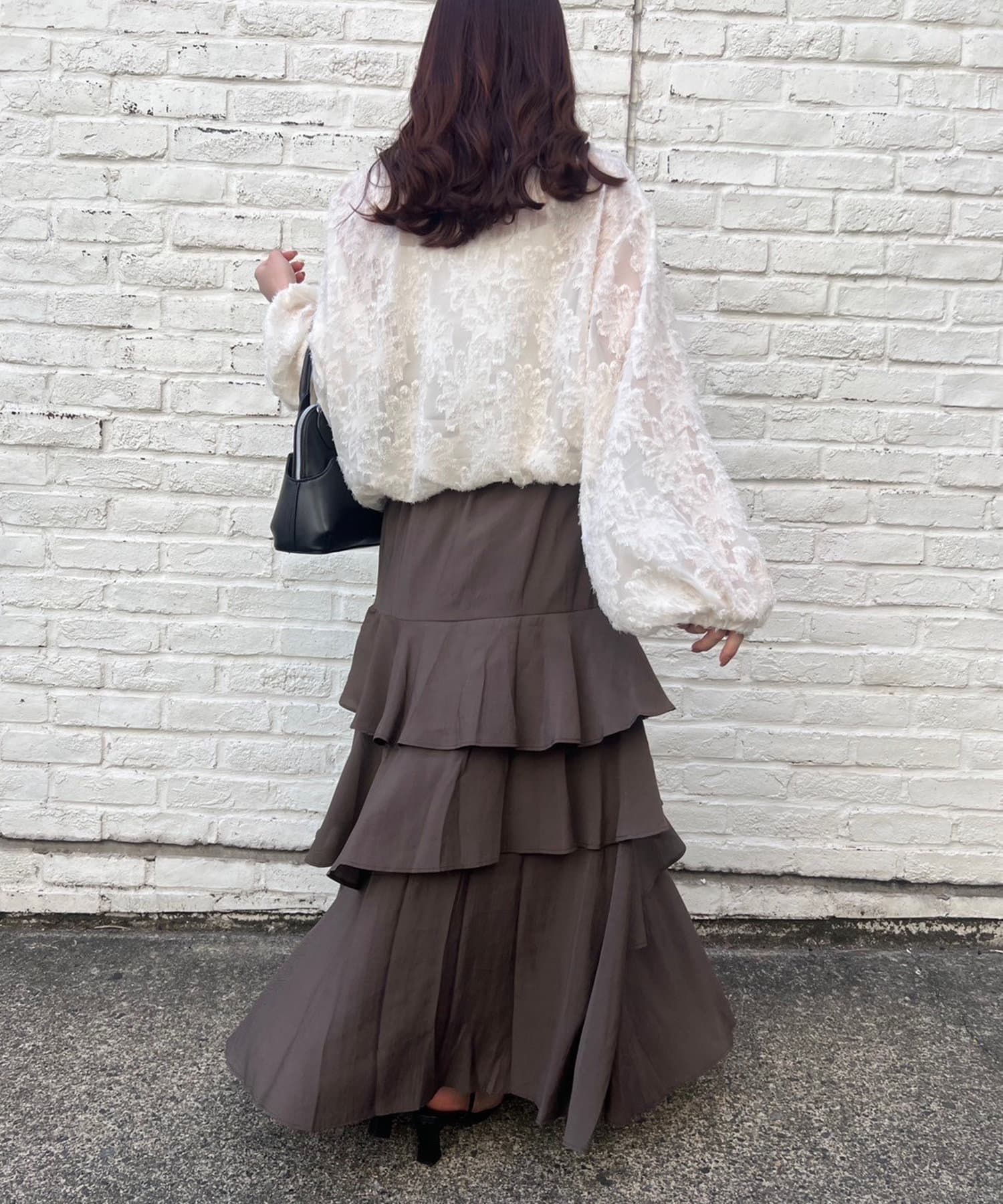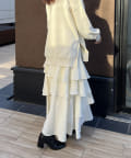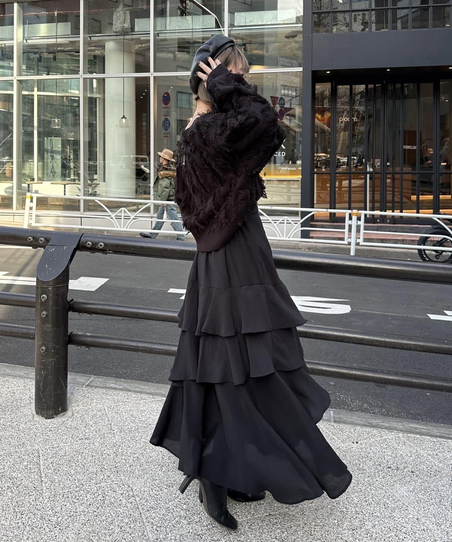 アシンメトリーに配置されたティアードが歩くたびにふわっと揺れ、
