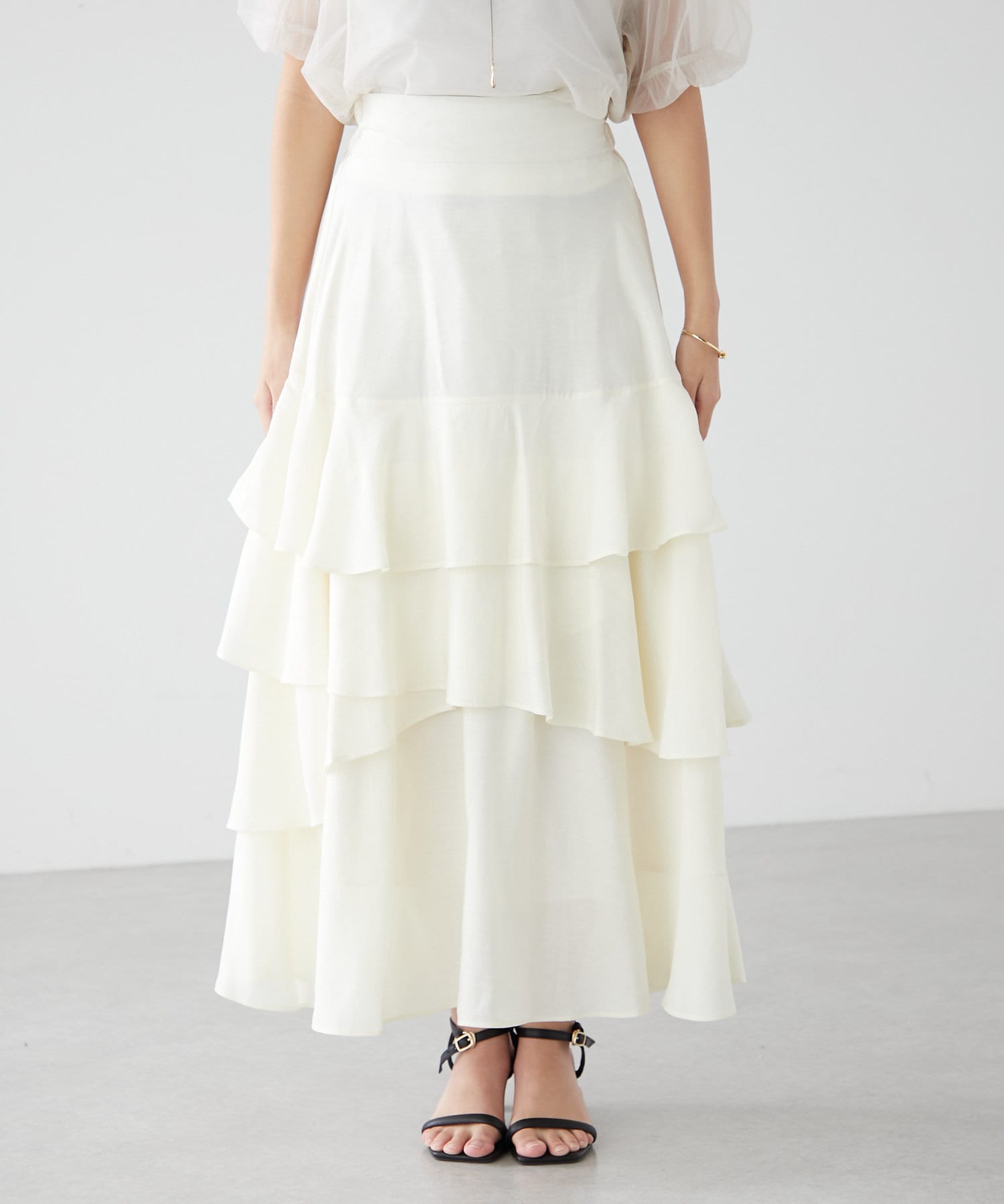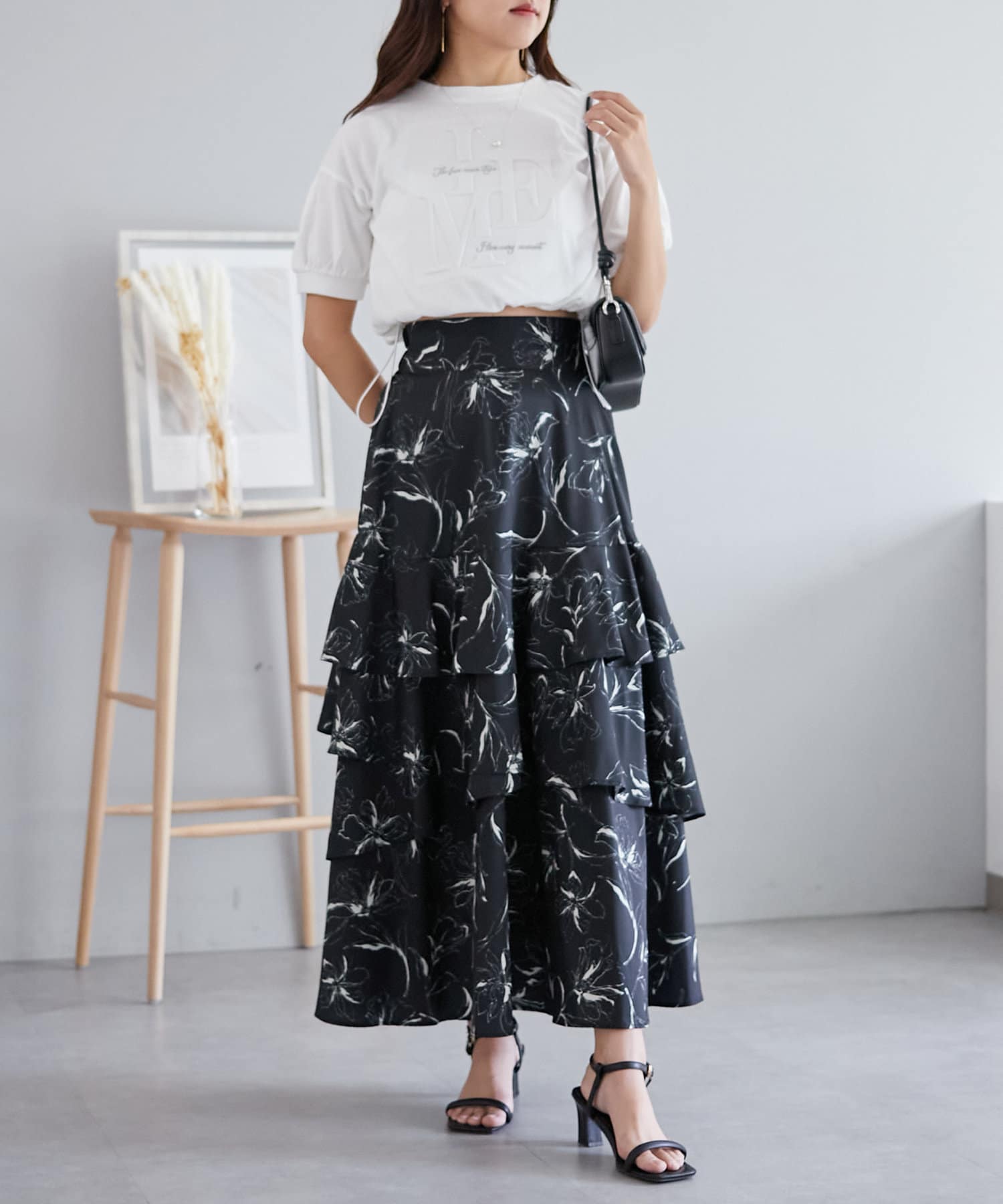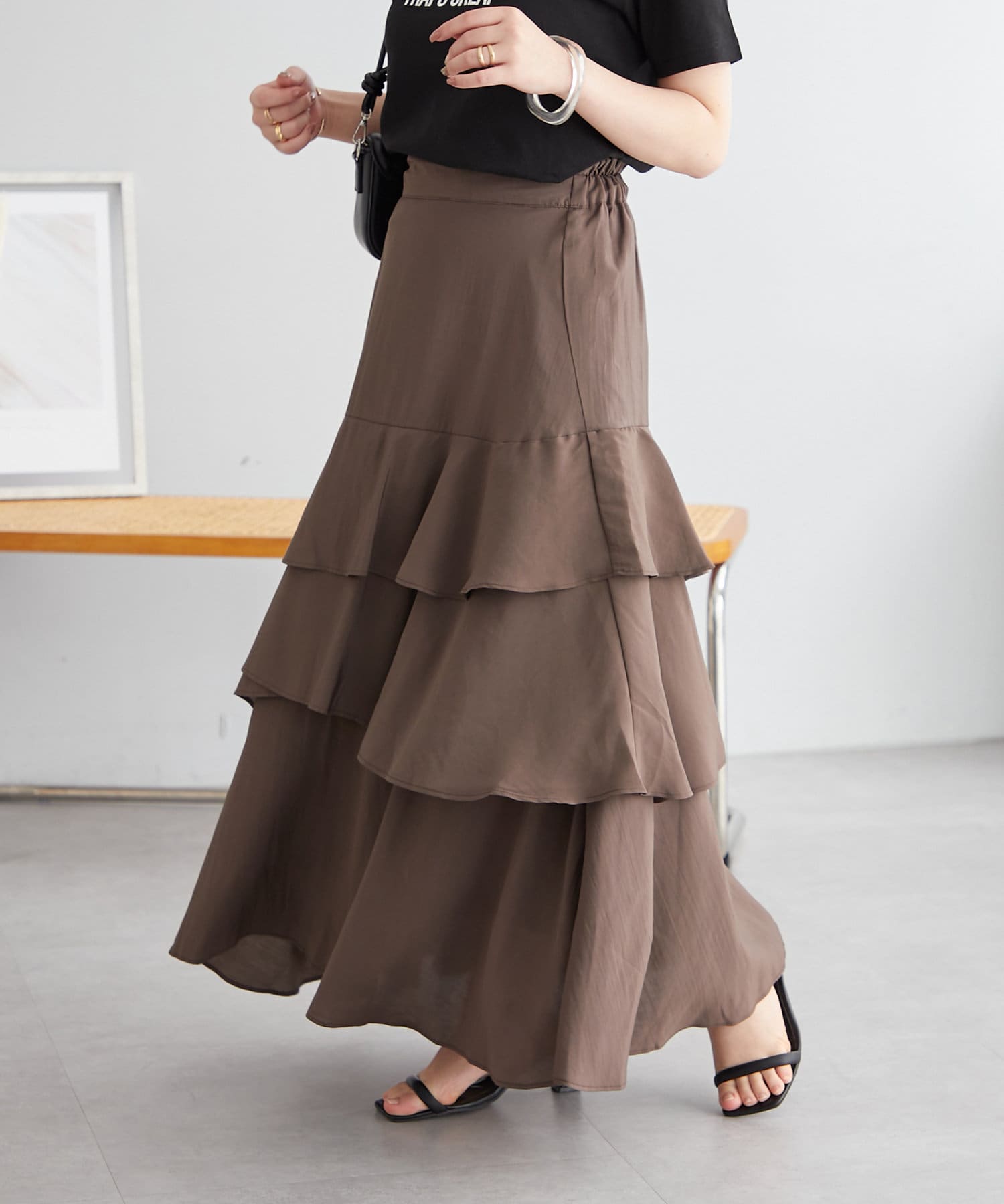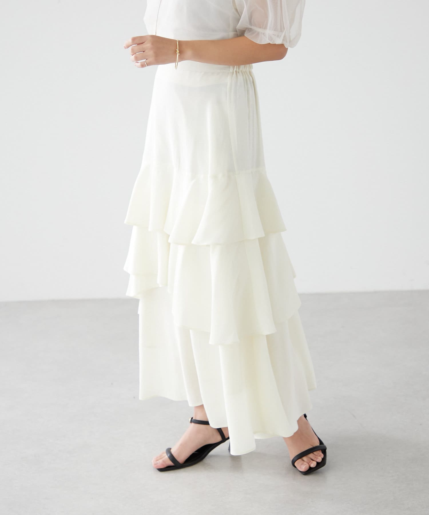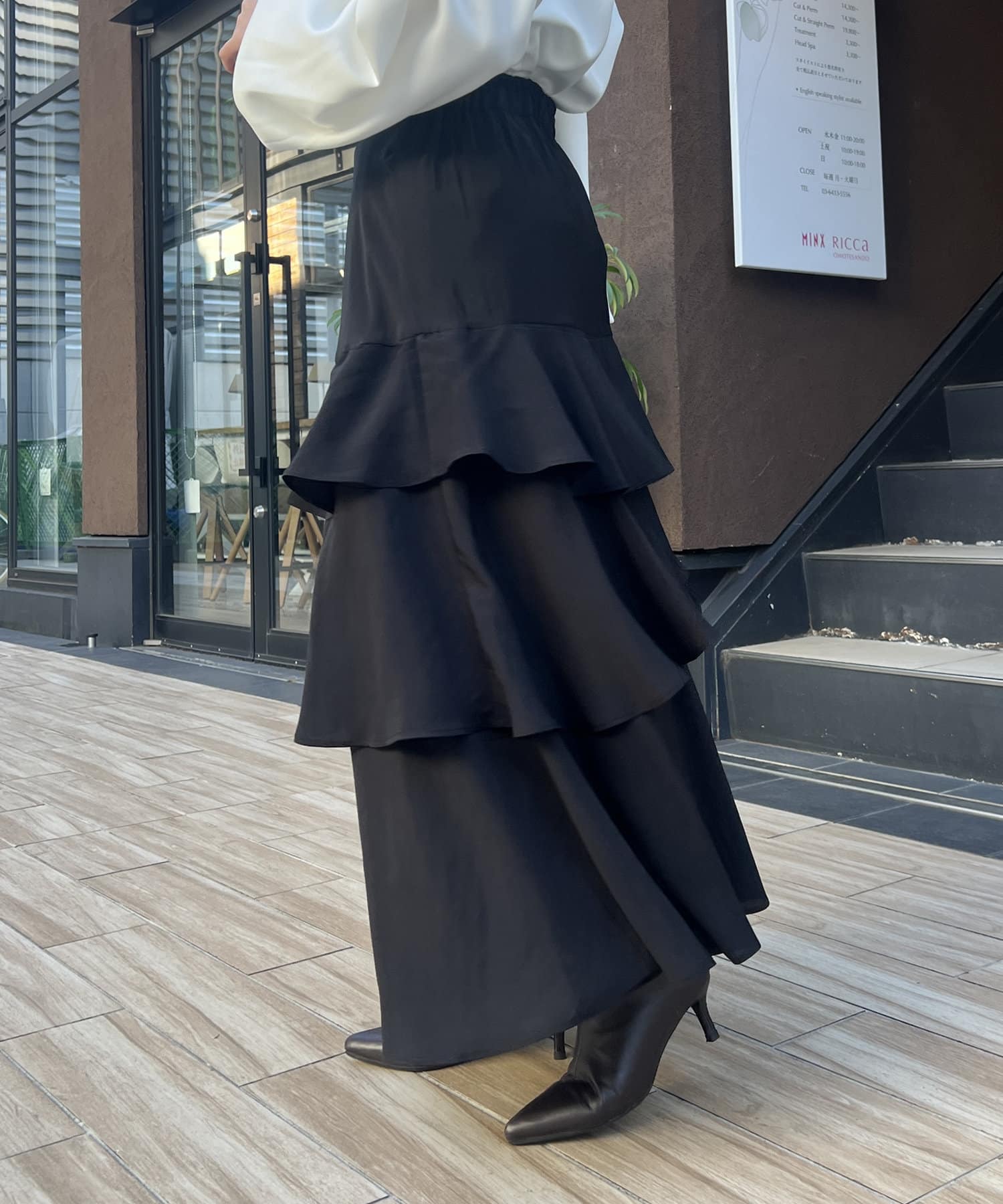 ハイウエストと細見えでスタイルアップが叶うティアードスカート♪