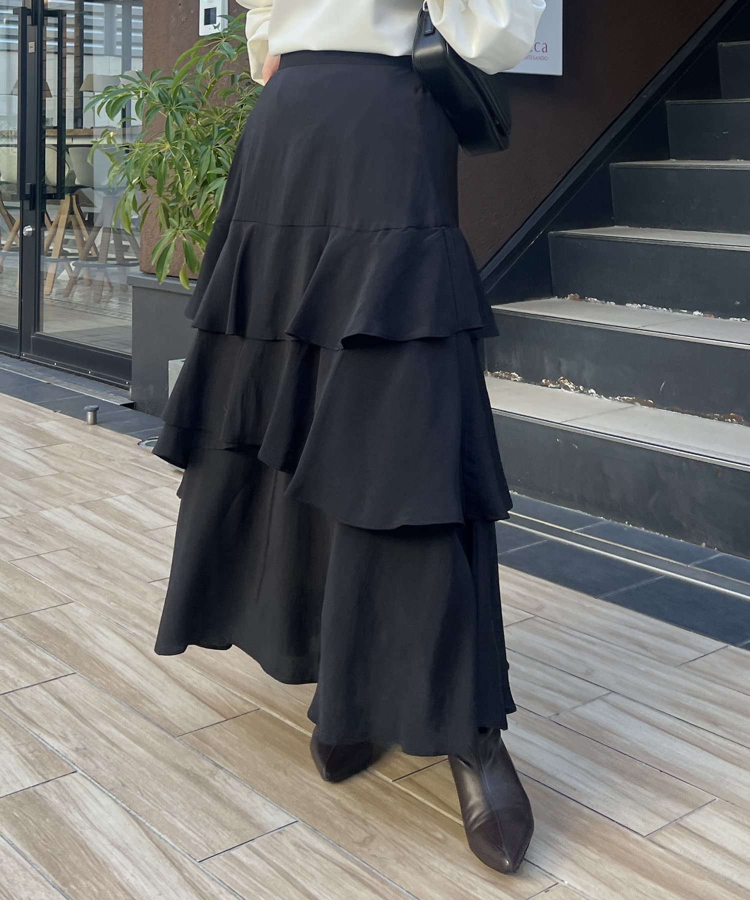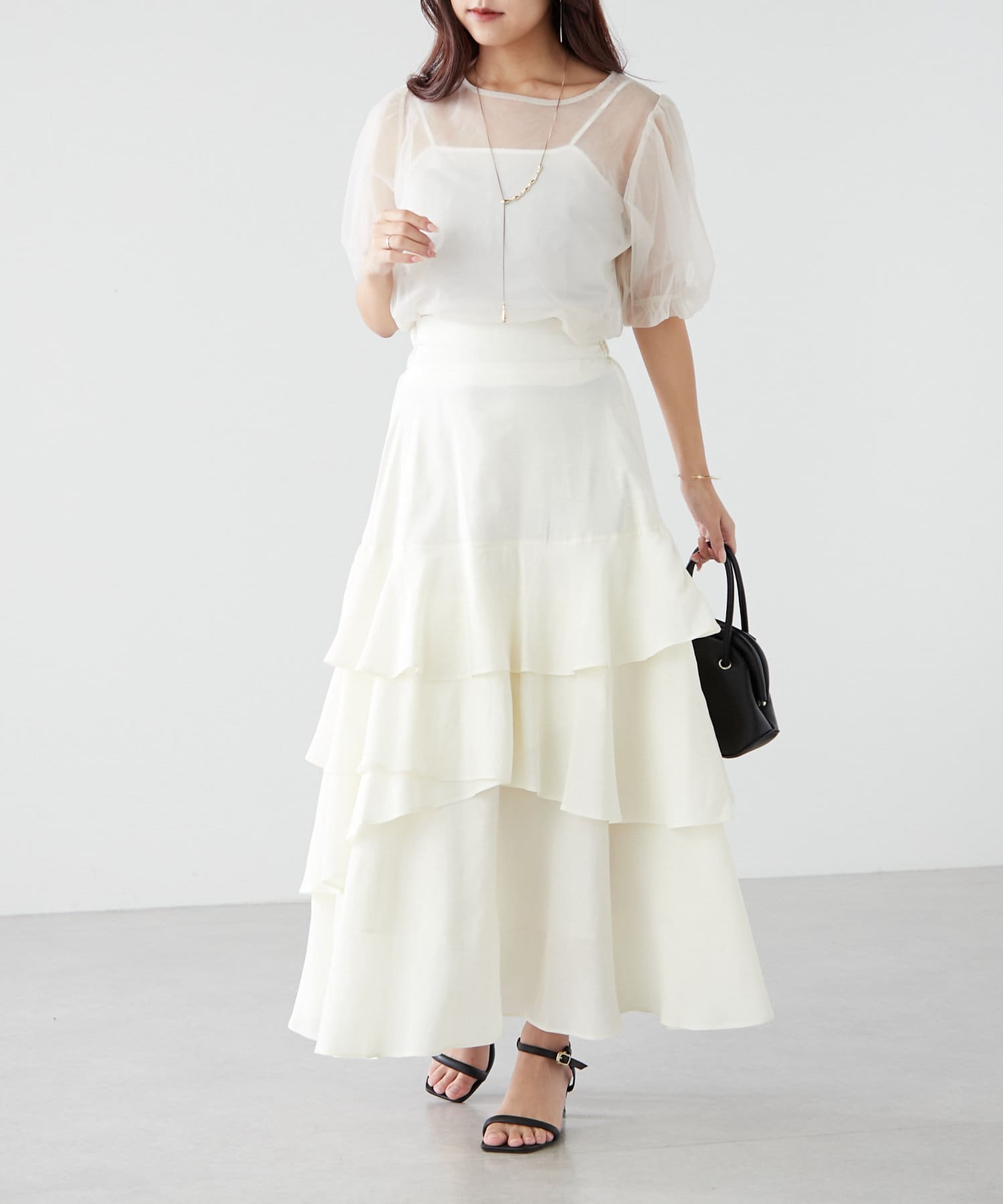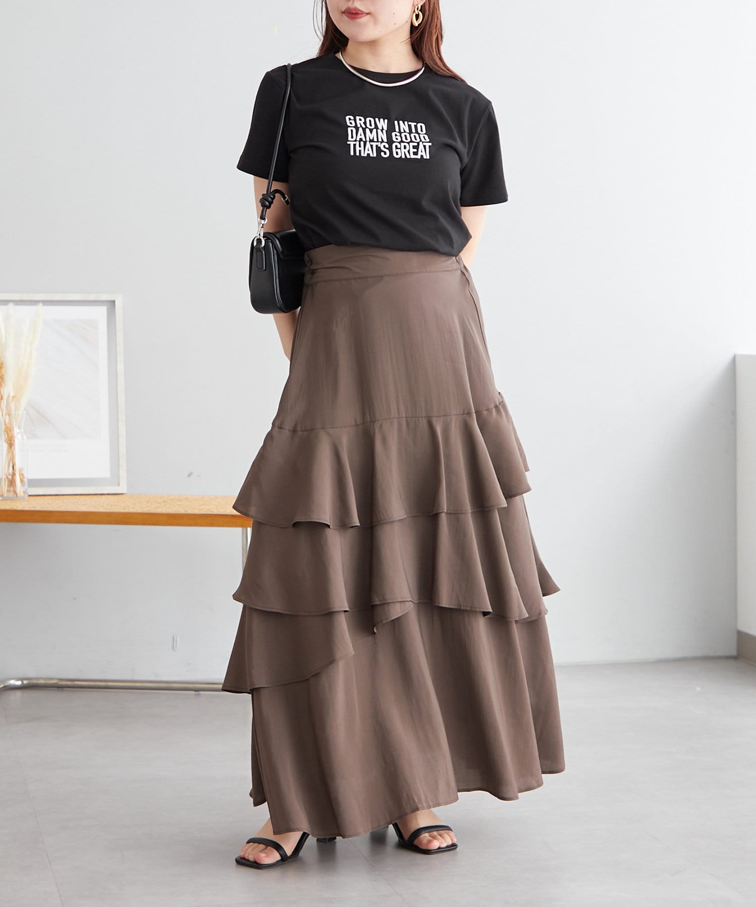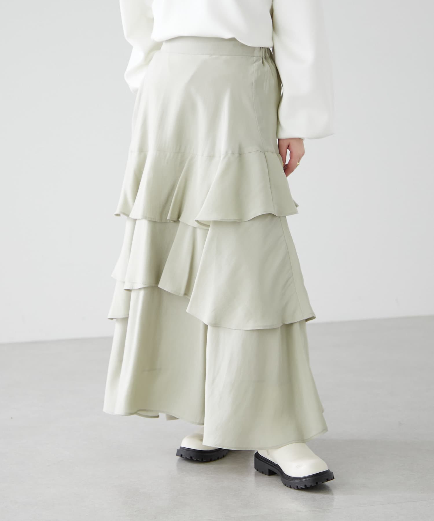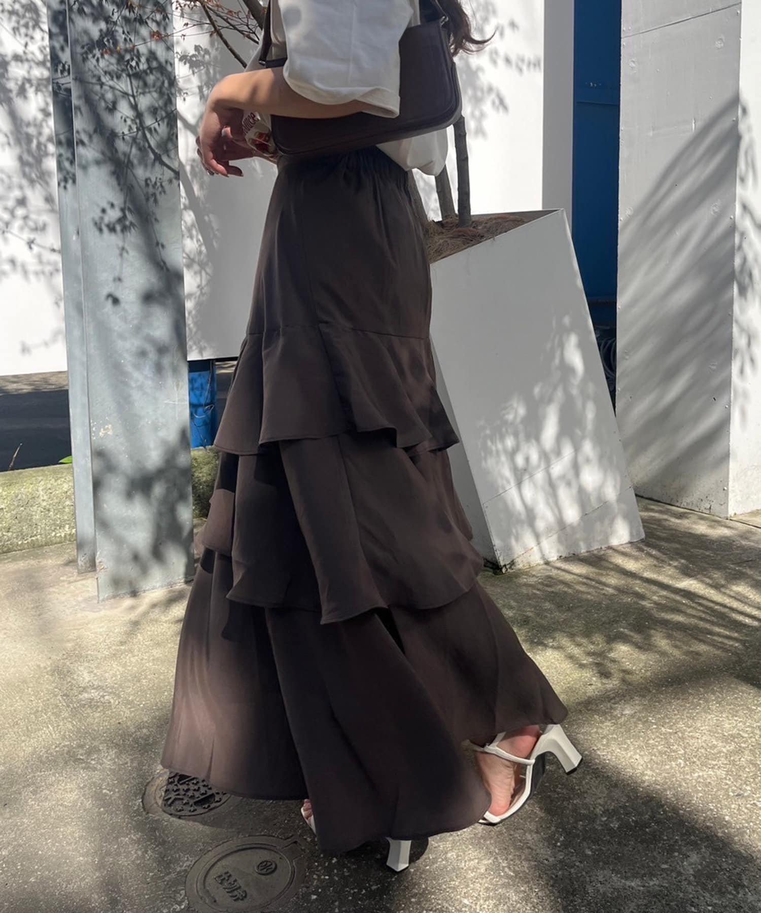 ハイウエストと細見えでスタイルアップが叶うティアードスカート♪
