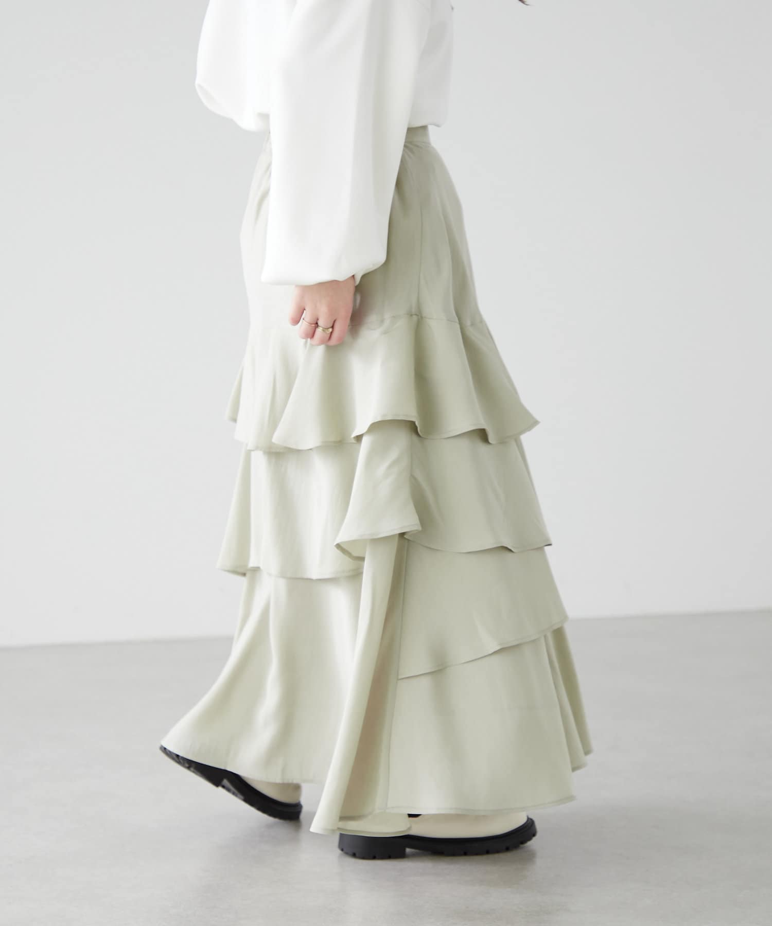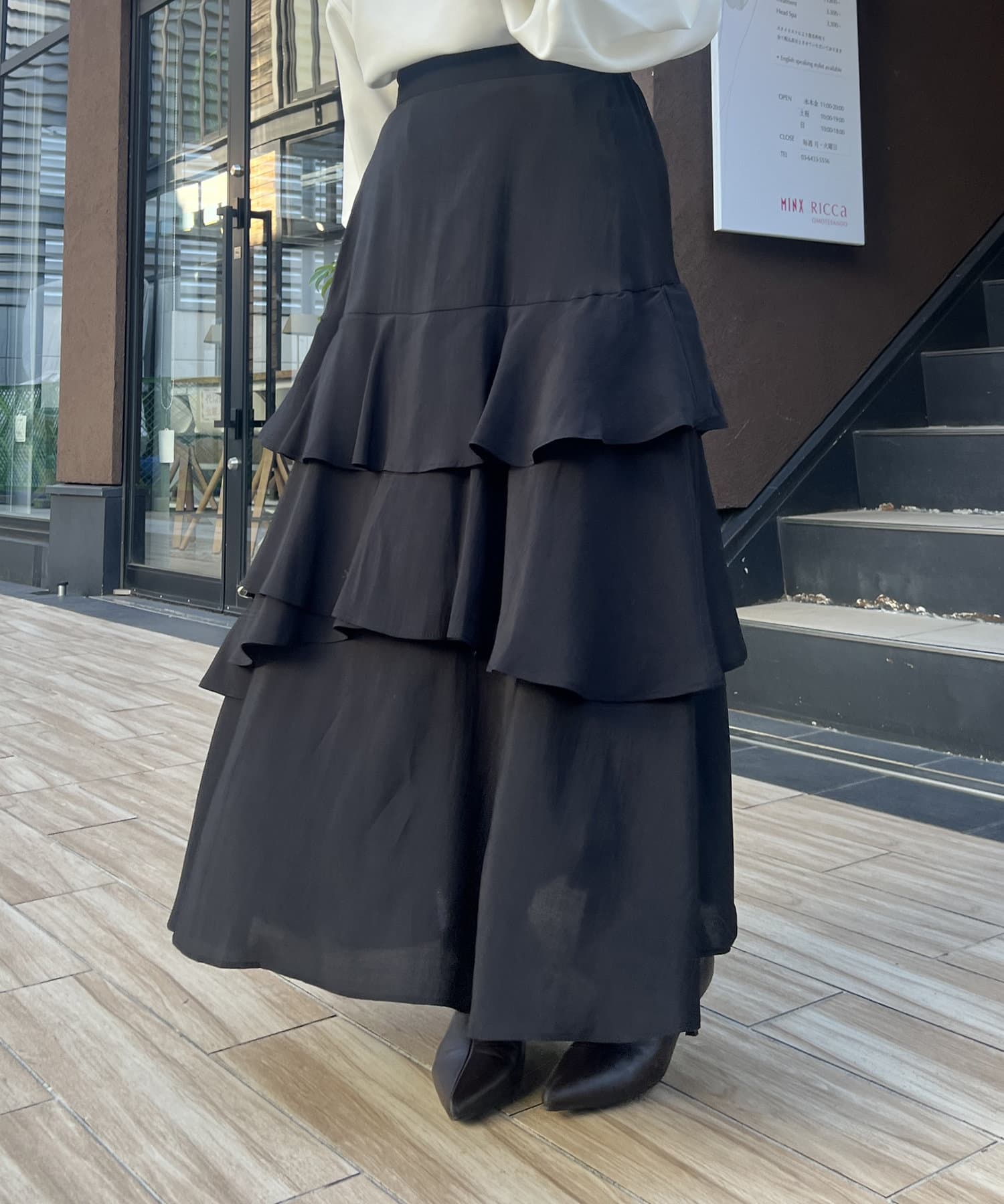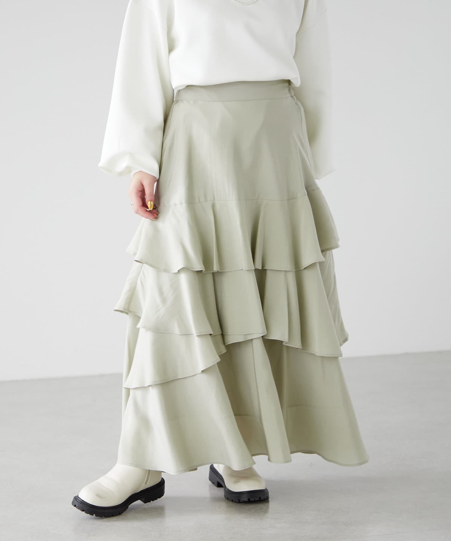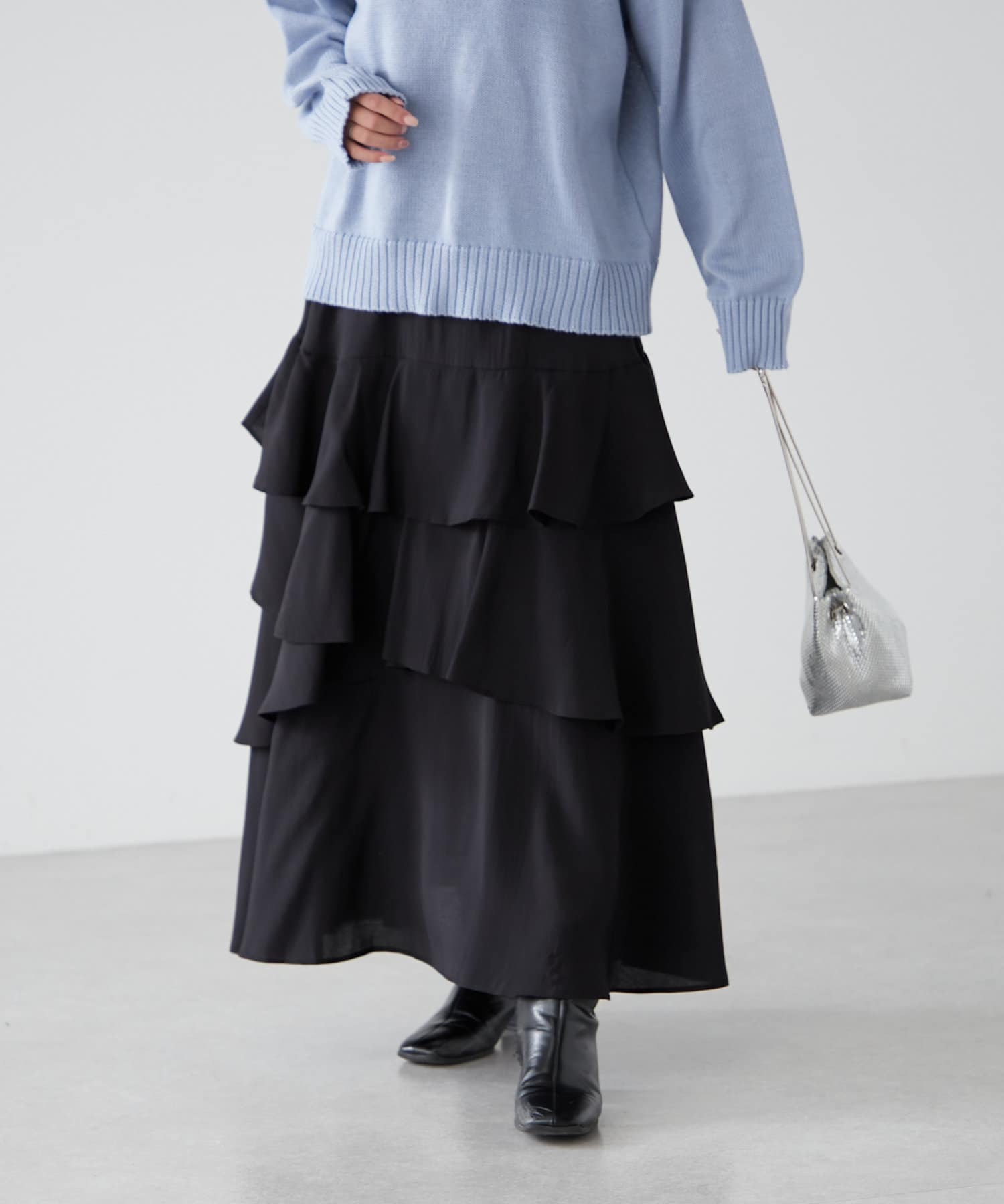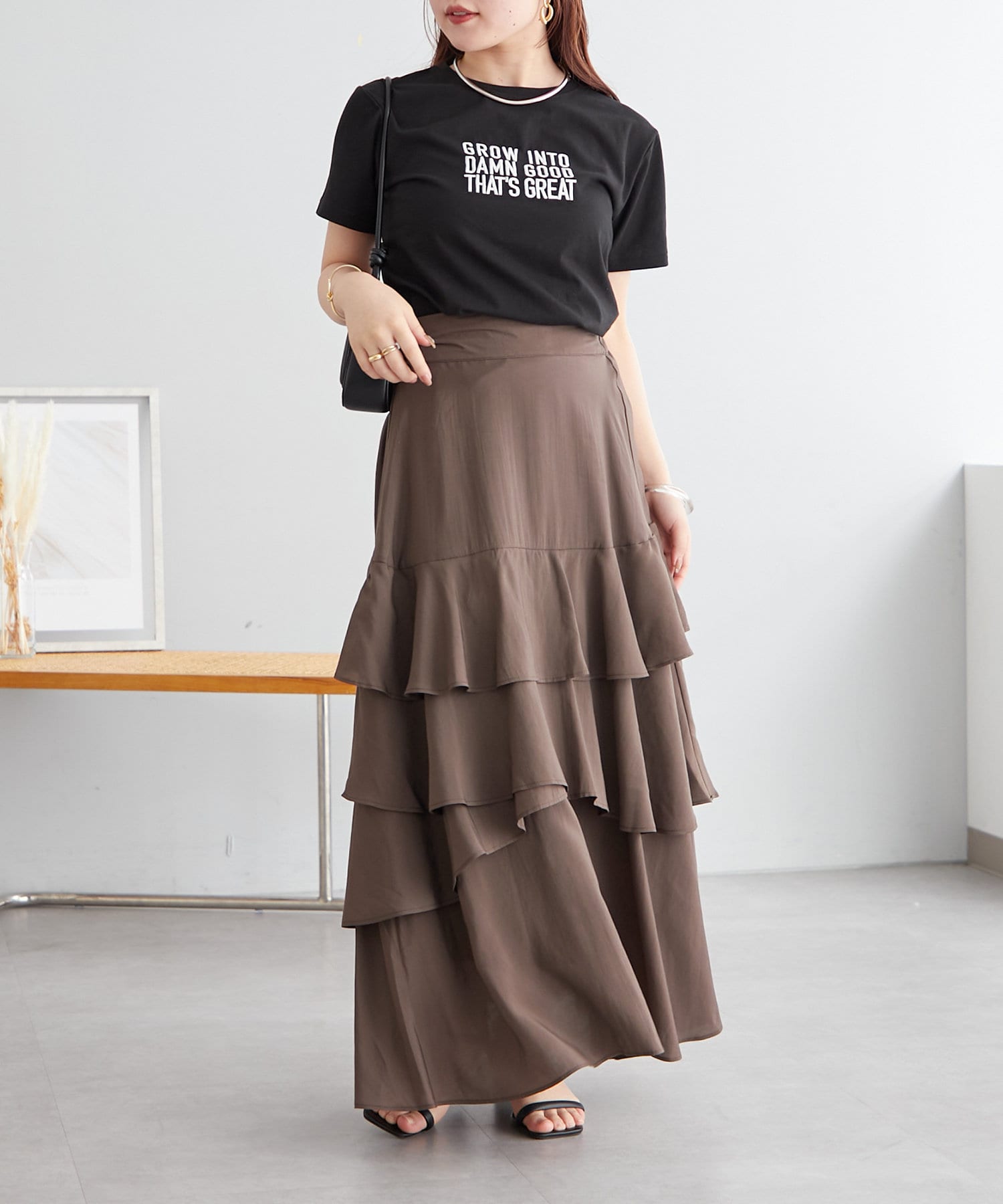 ハイウエストと細見えでスタイルアップが叶うティアードスカート♪