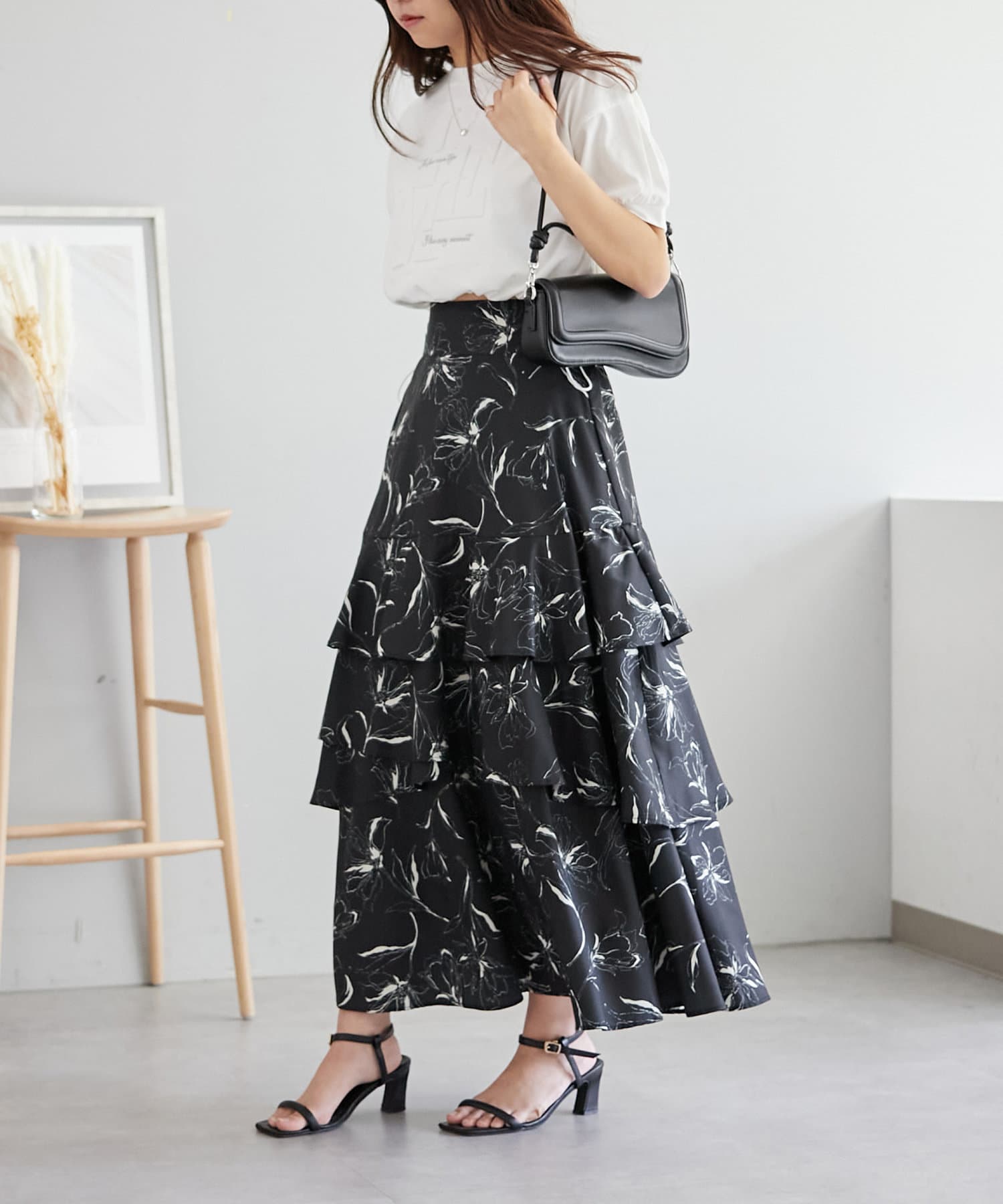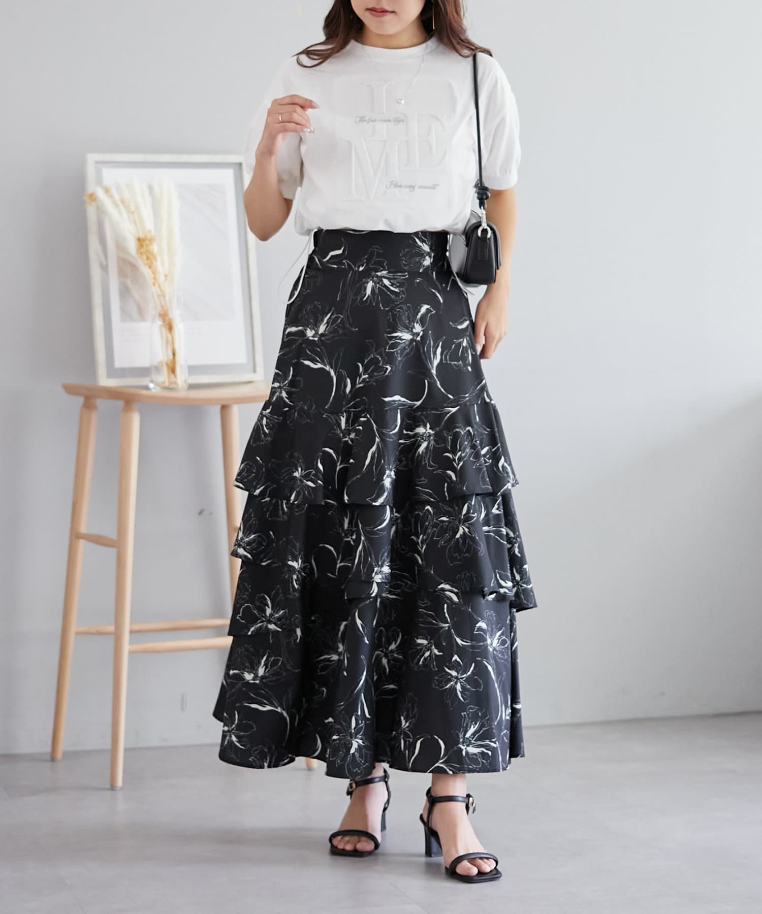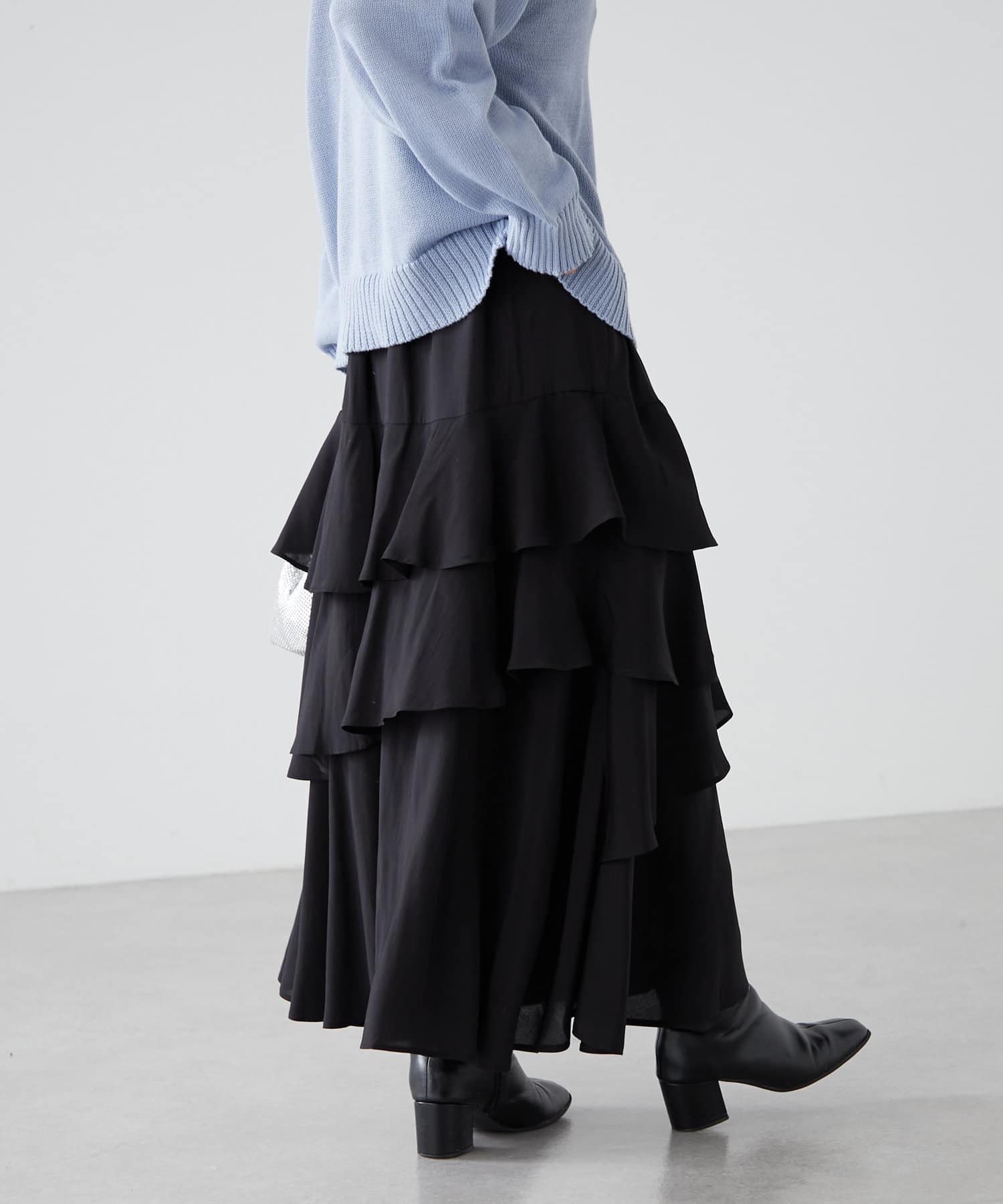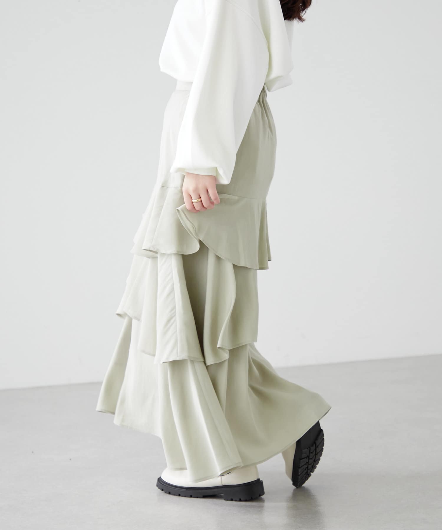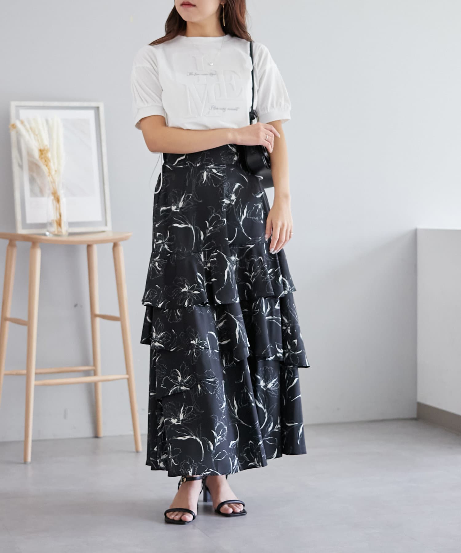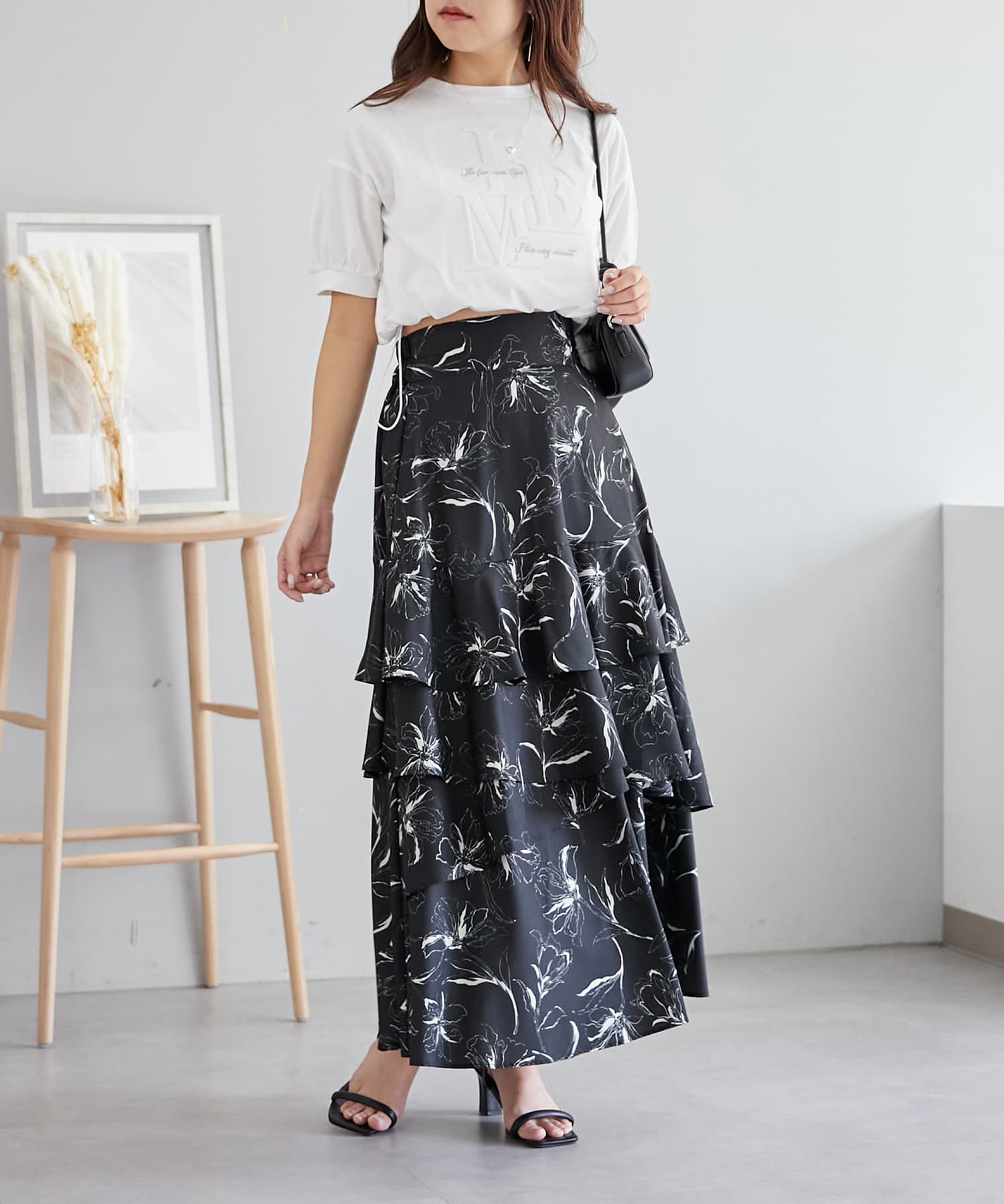 ハイウエストと細見えでスタイルアップが叶うティアードスカート♪
