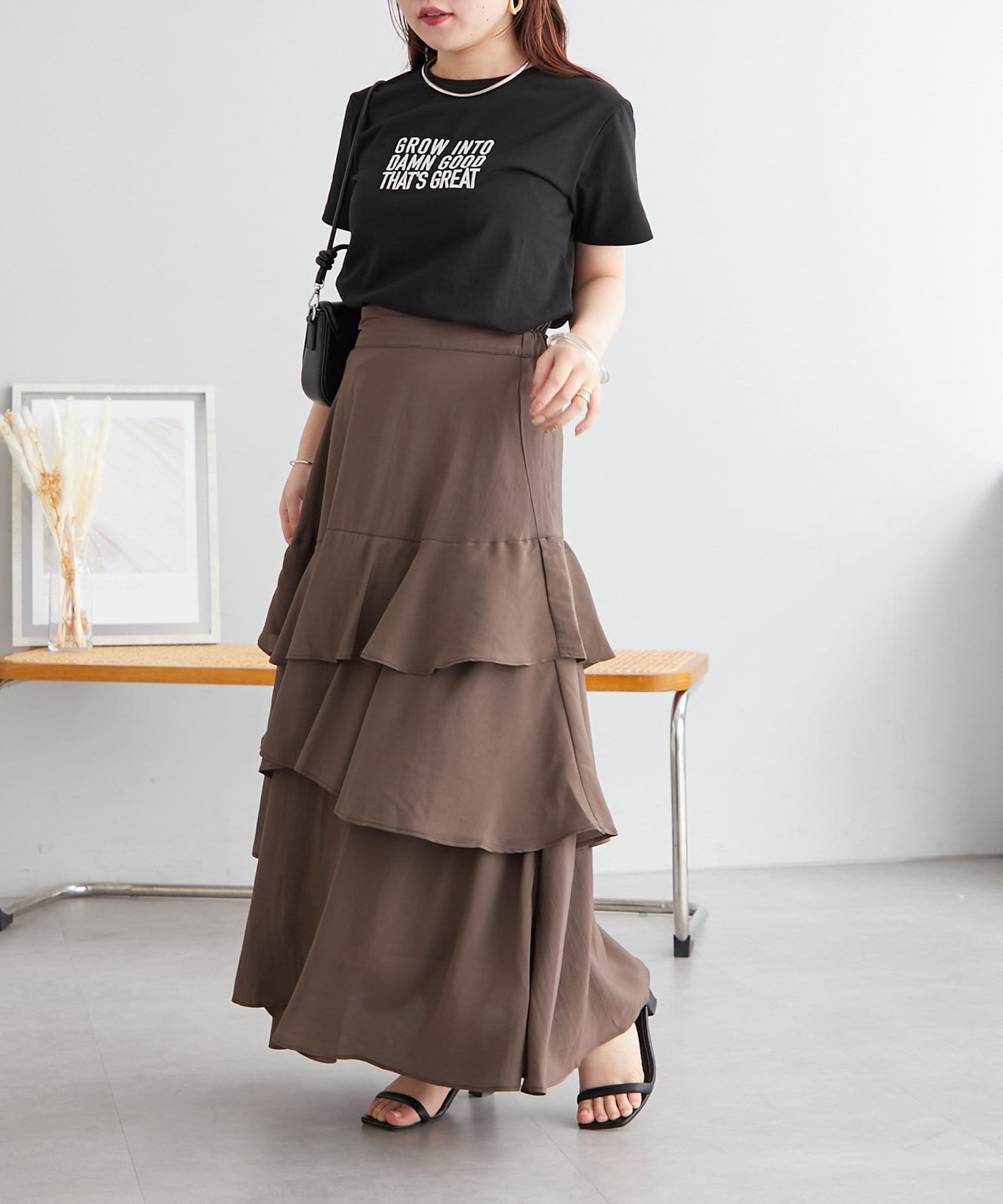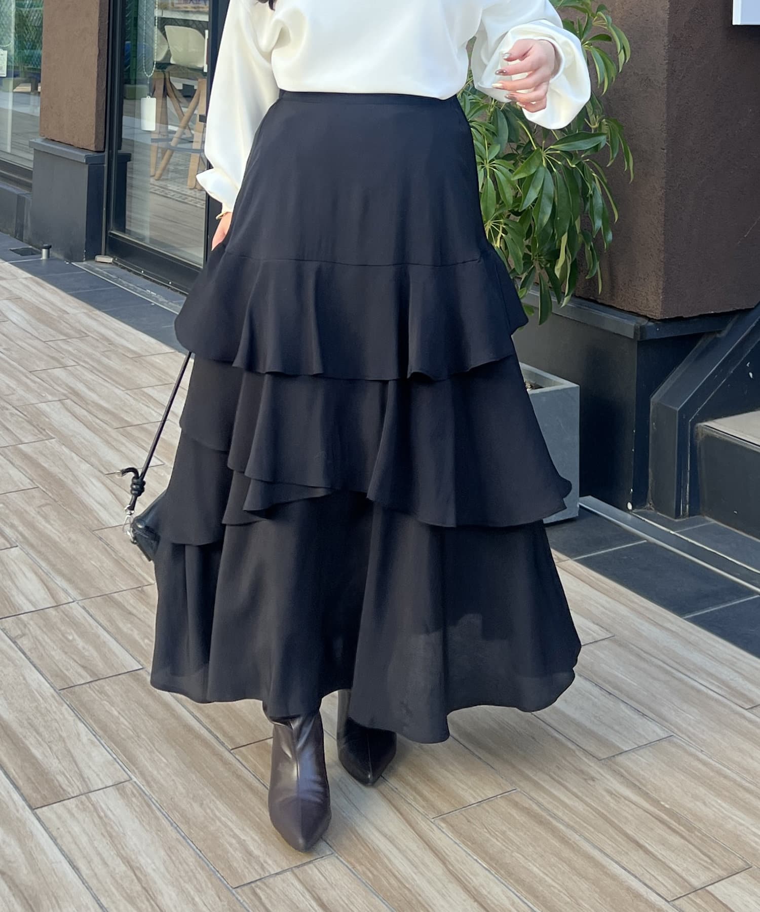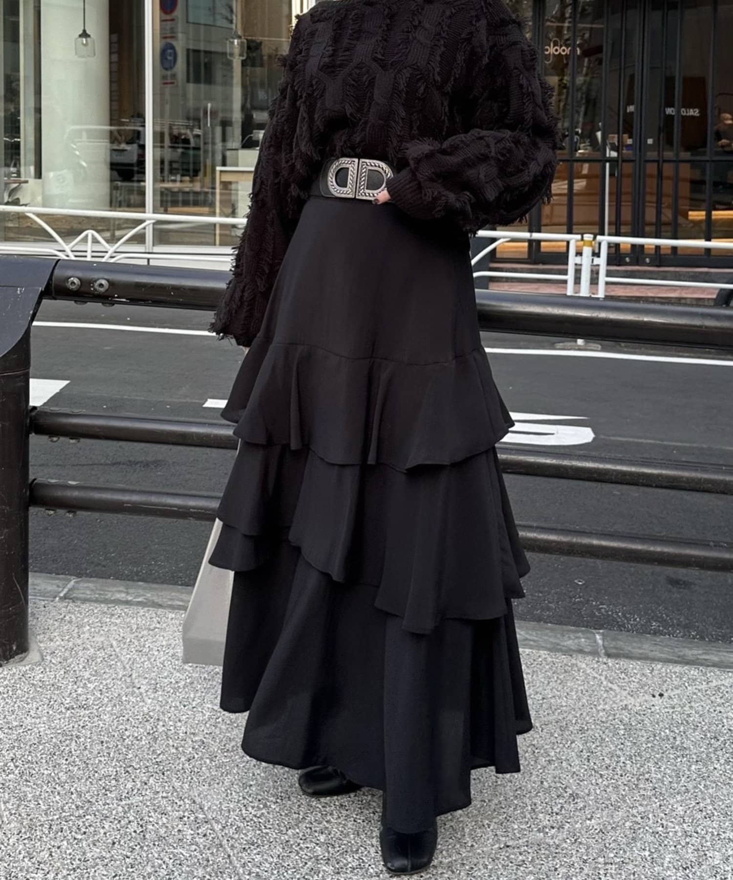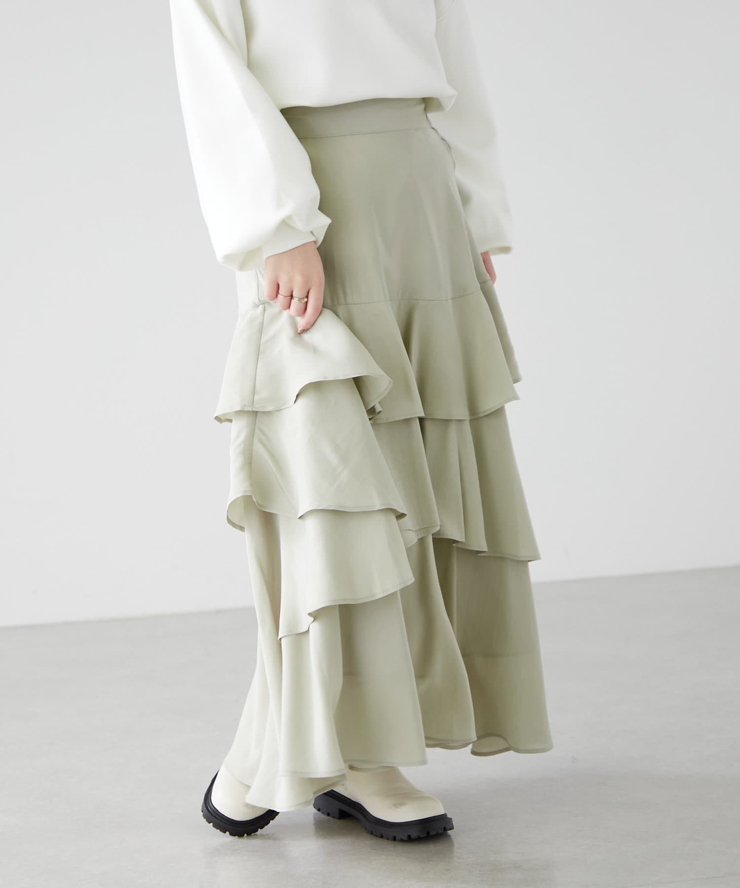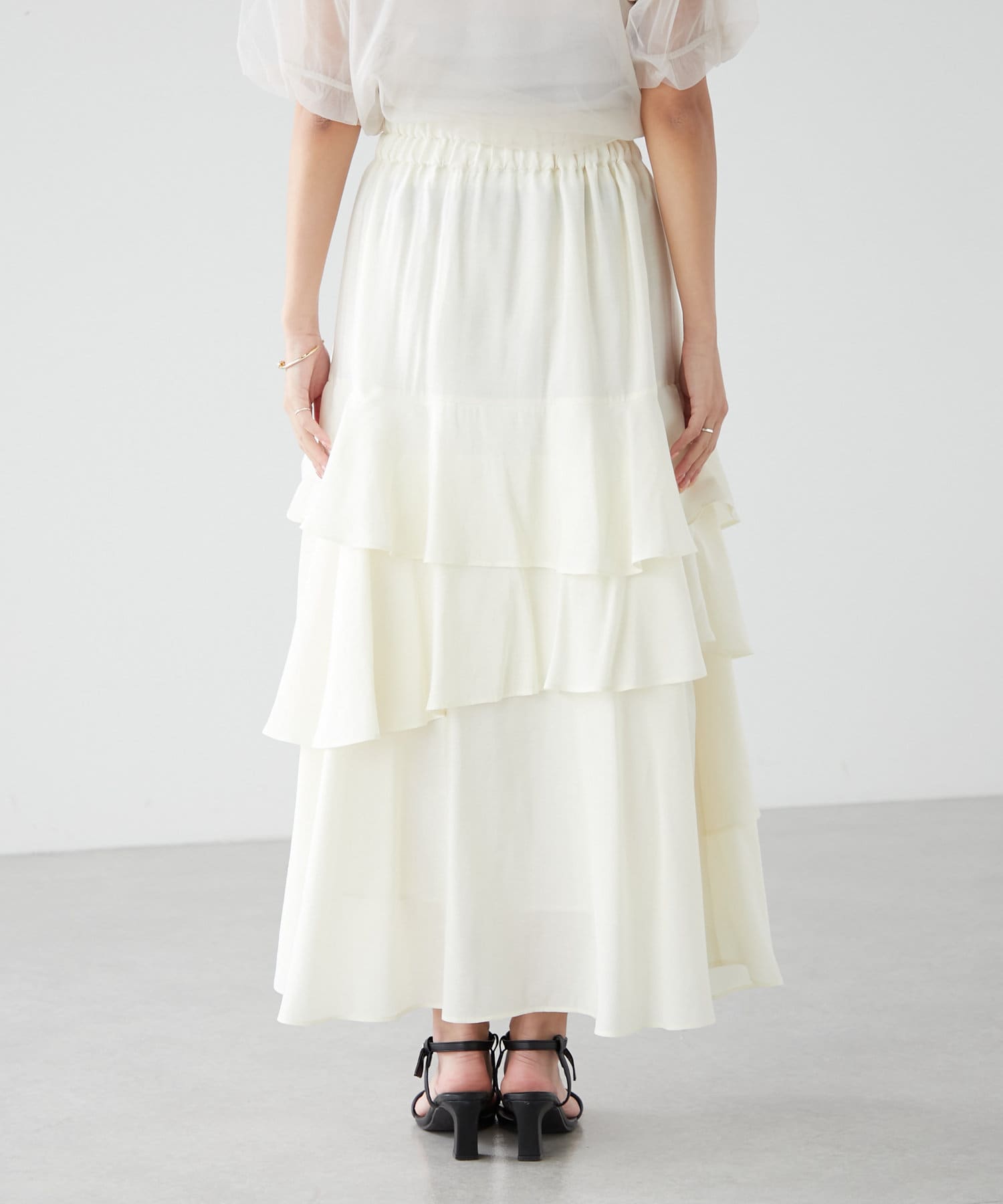 ハイウエストと細見えでスタイルアップが叶うティアードスカート♪