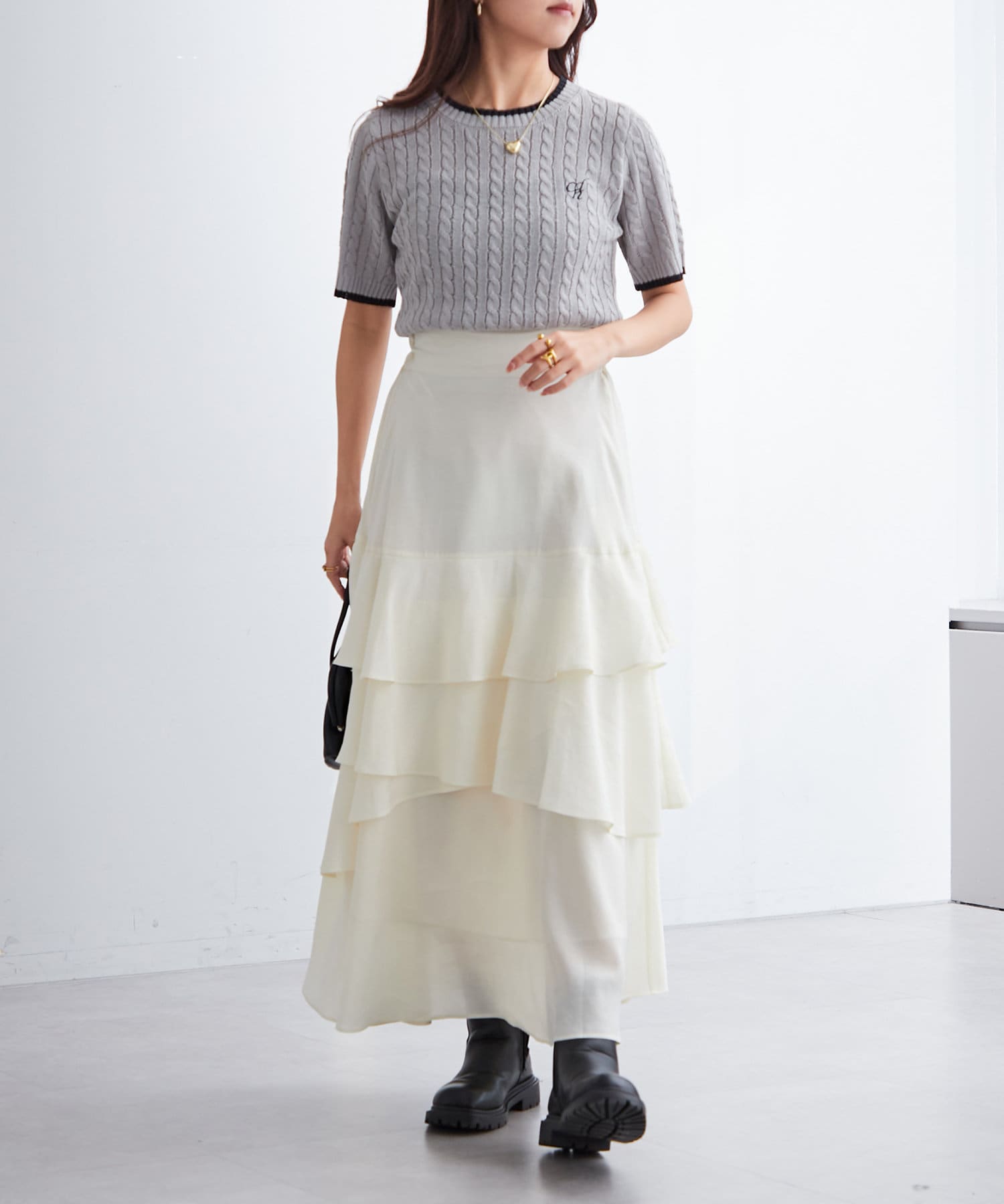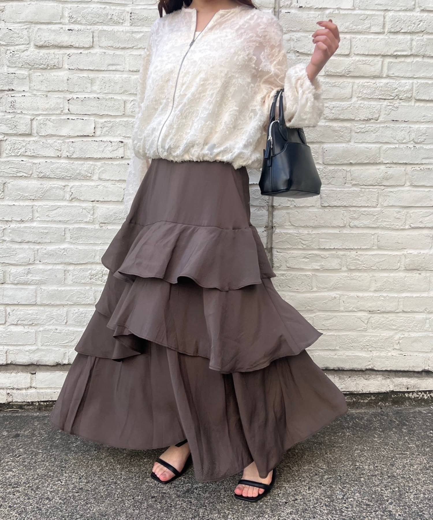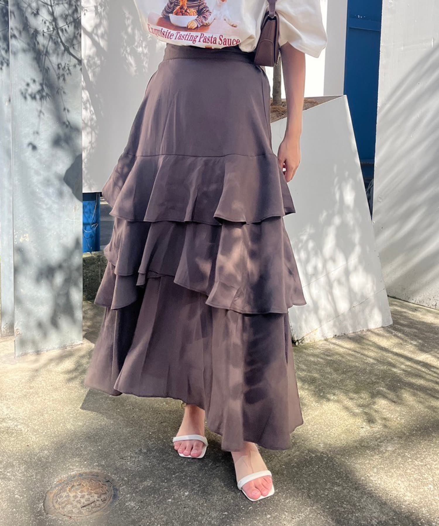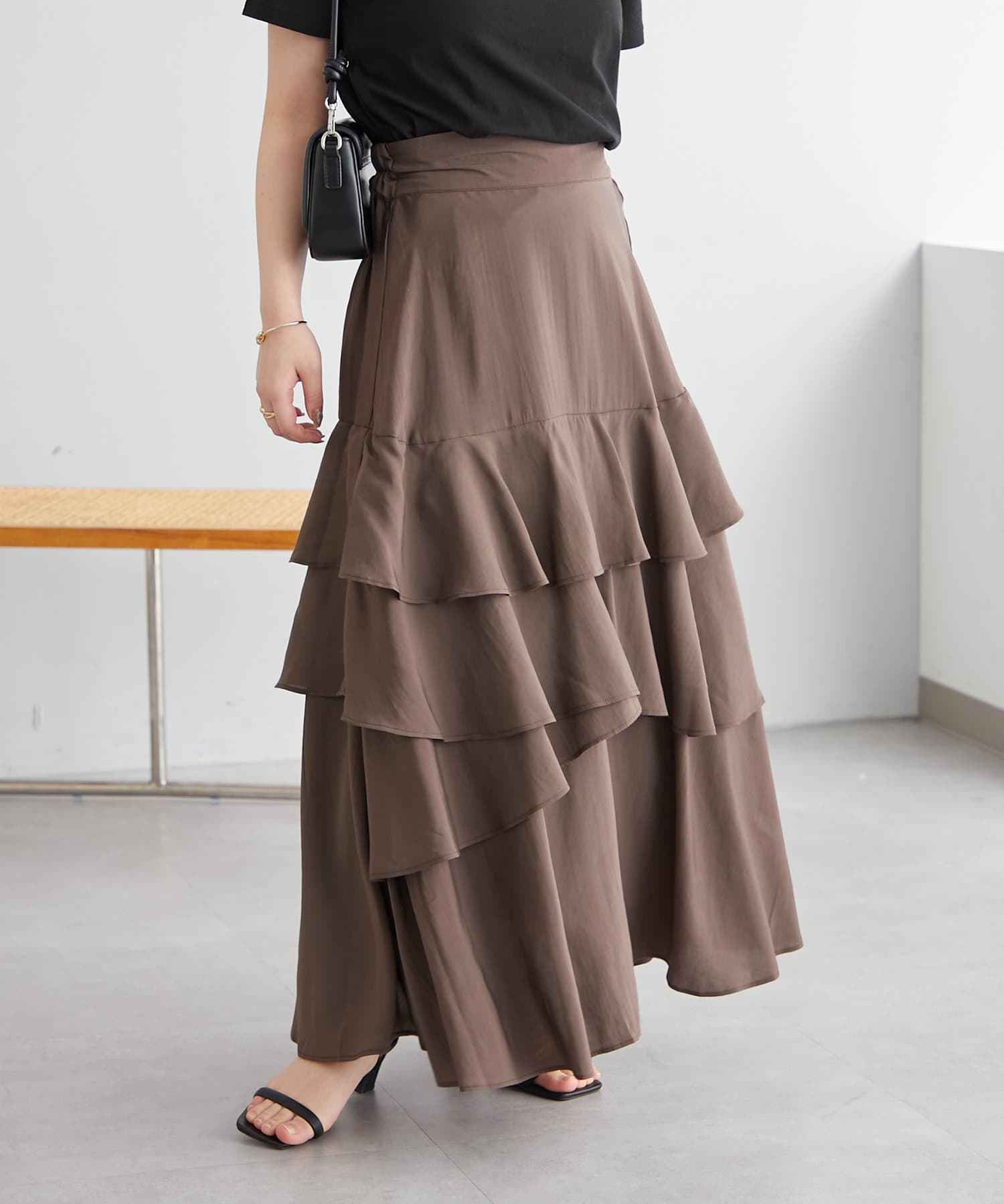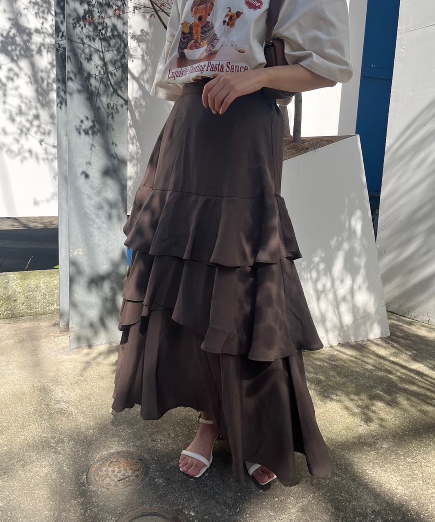 ハイウエストと細見えでスタイルアップが叶うティアードスカート♪