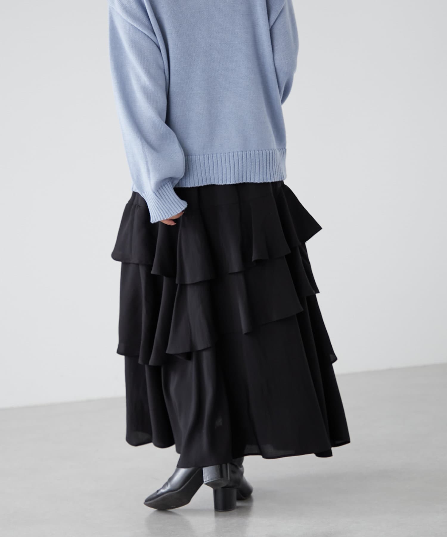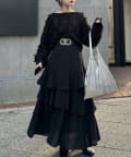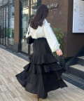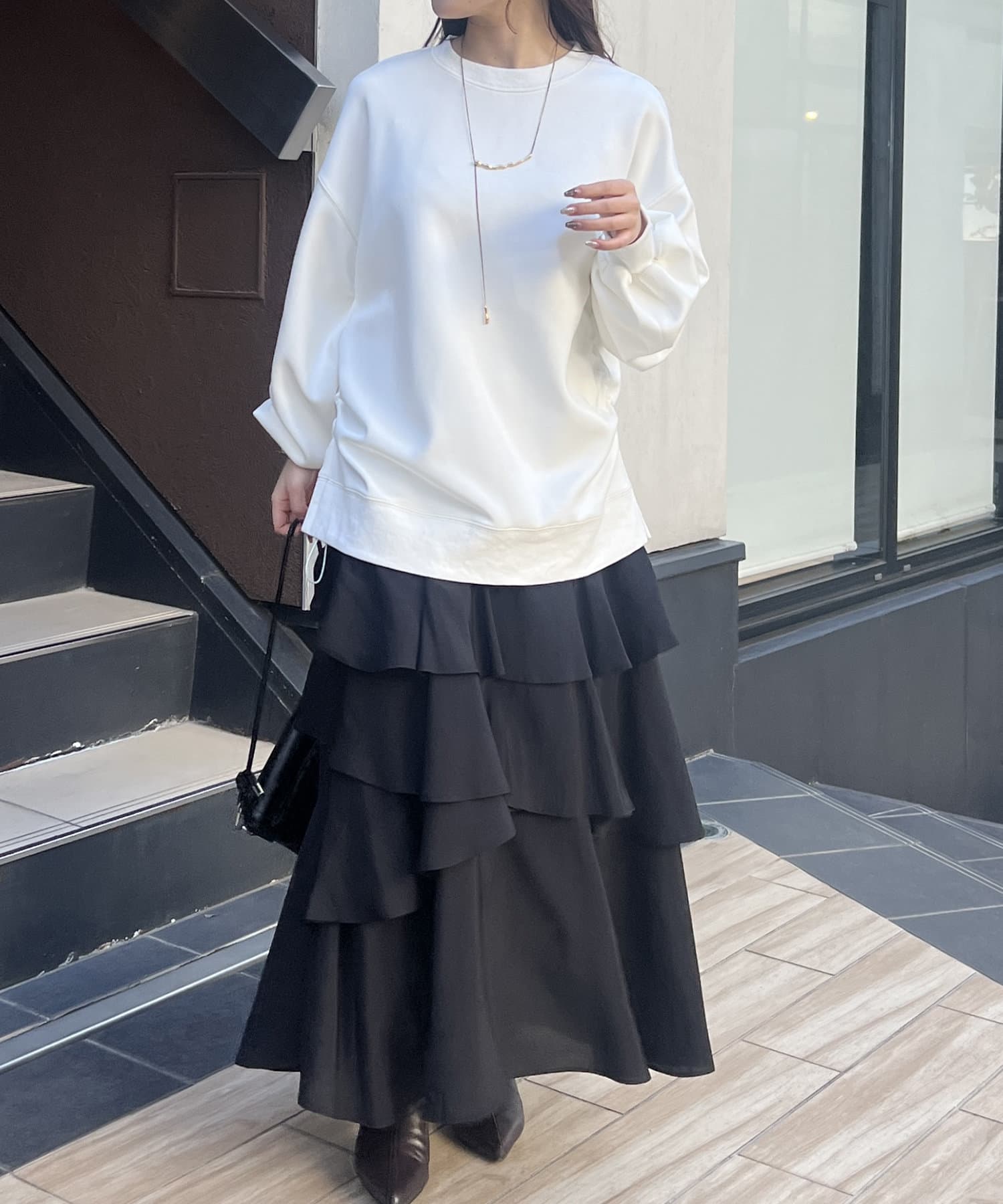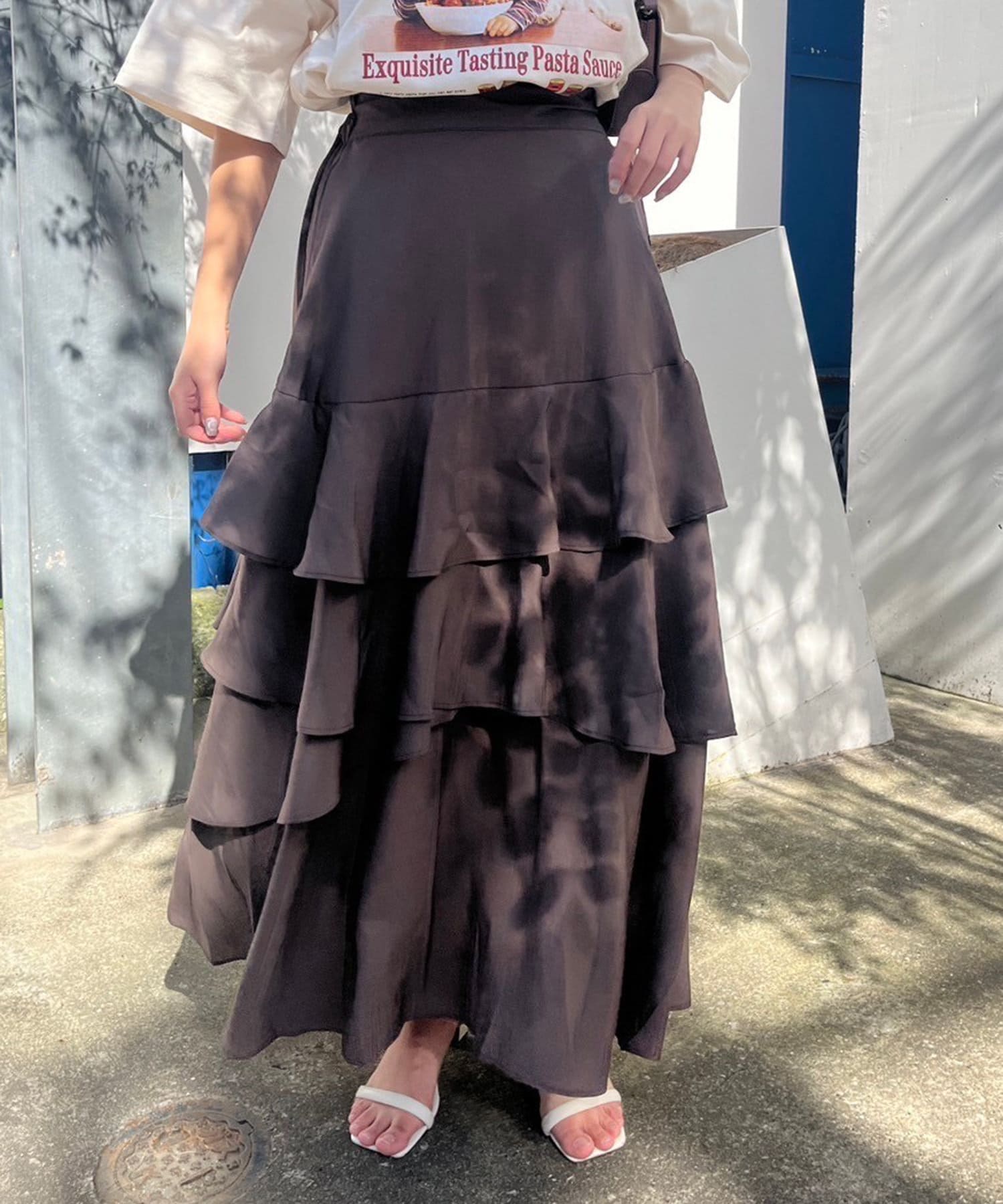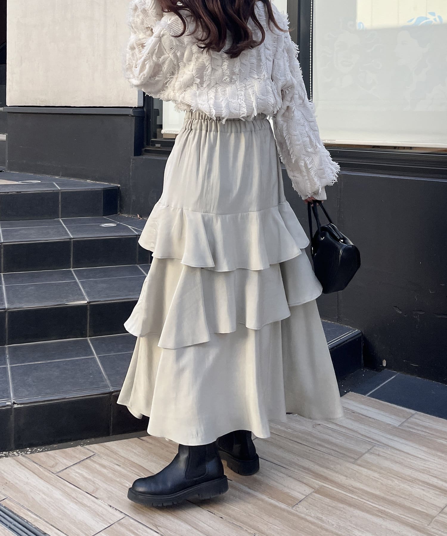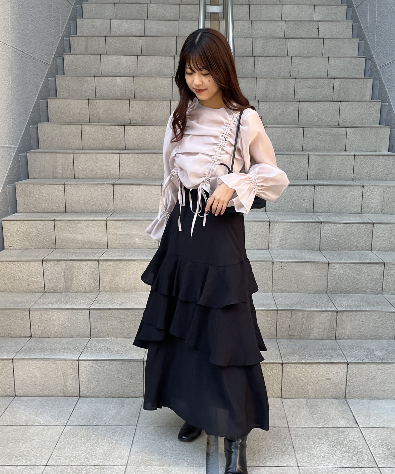 ハイウエストと細見えでスタイルアップが叶うティアードスカート♪