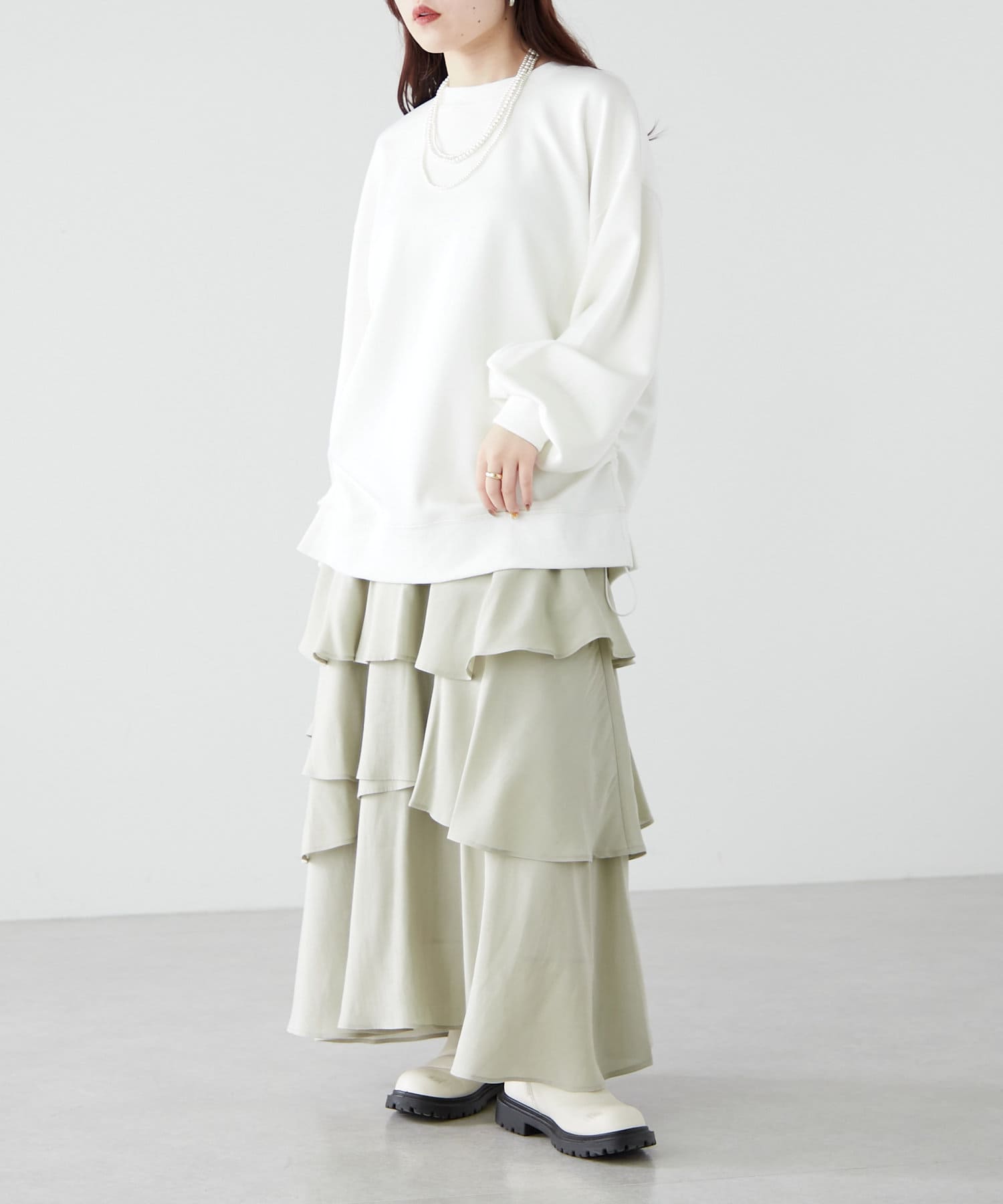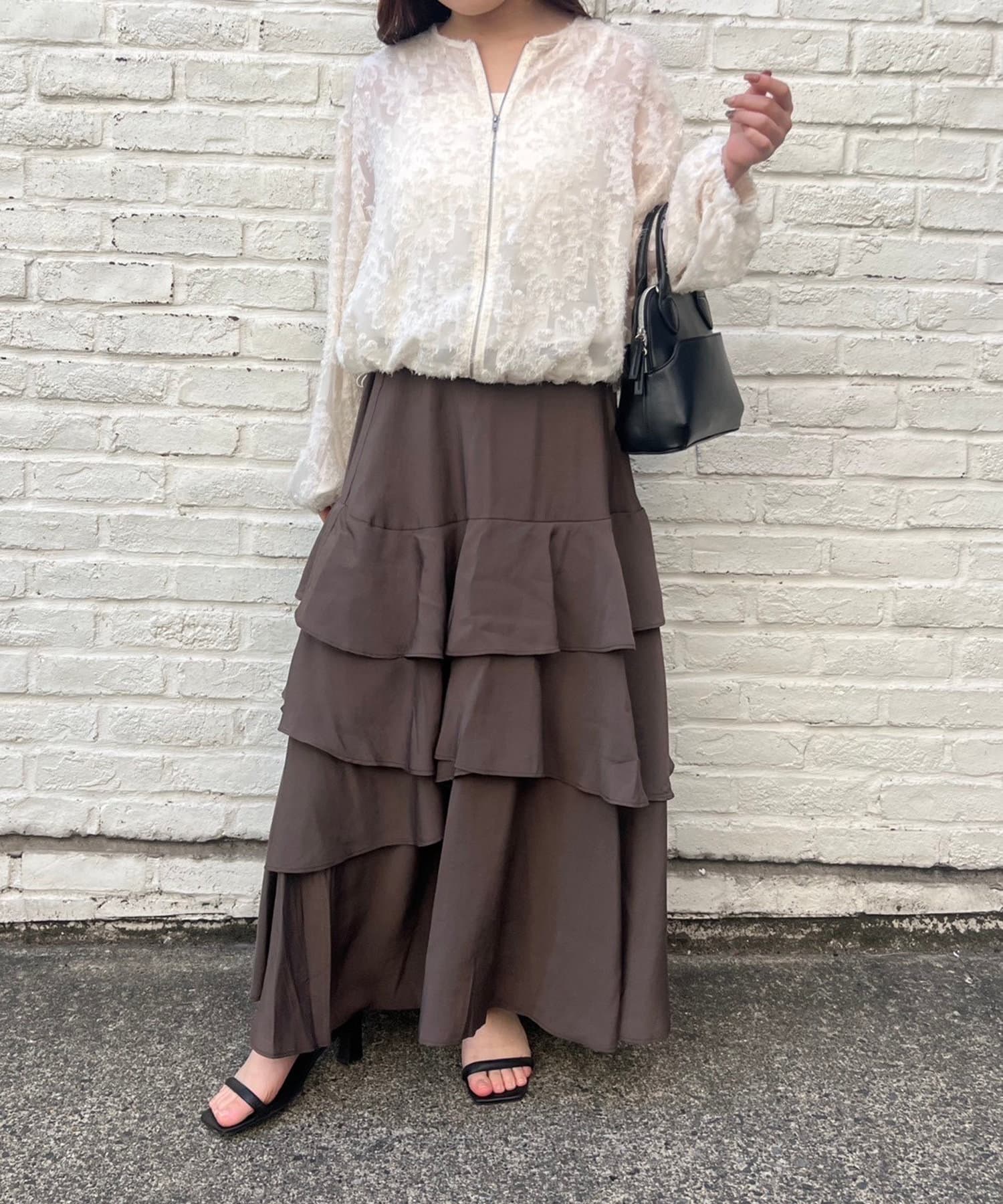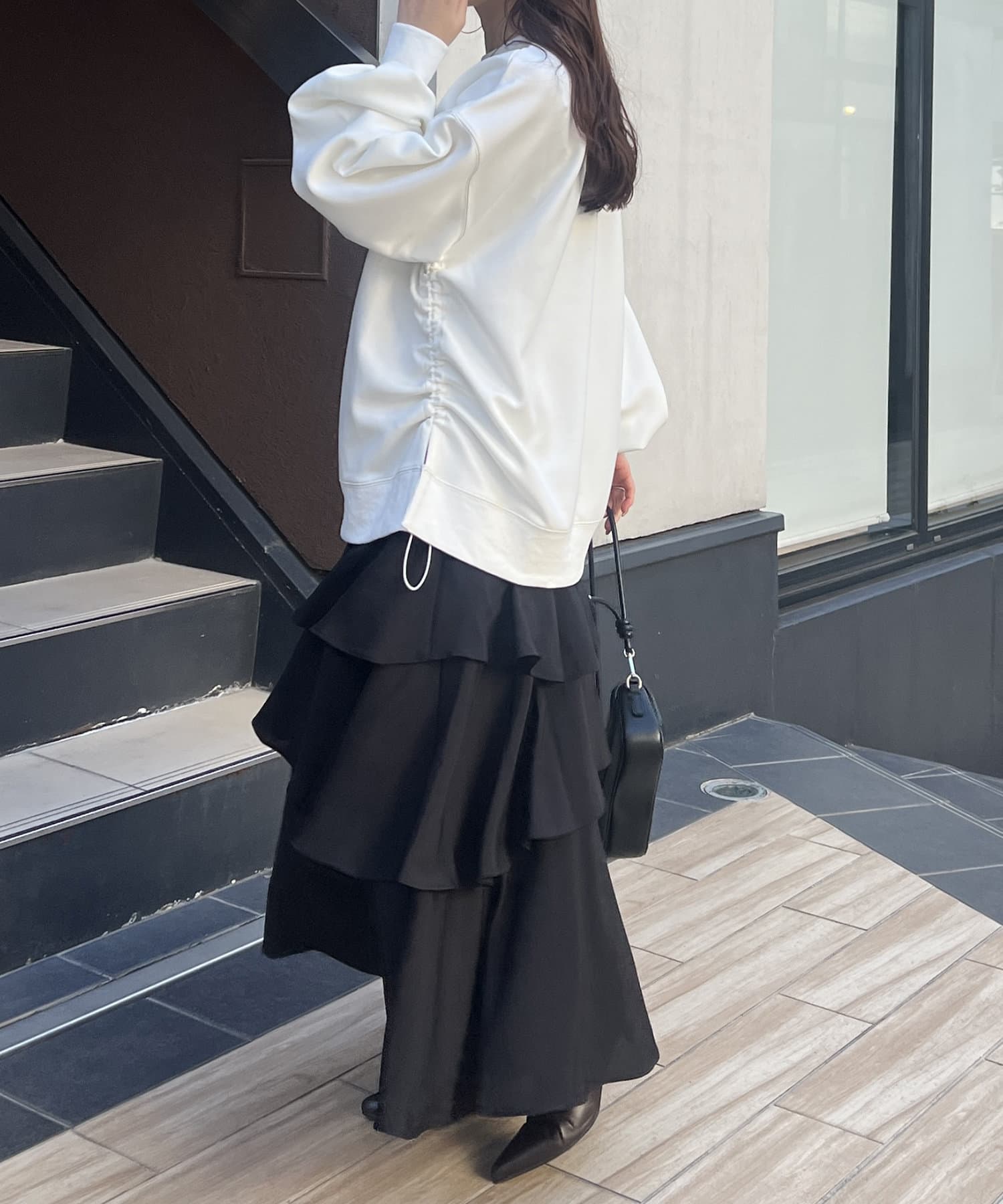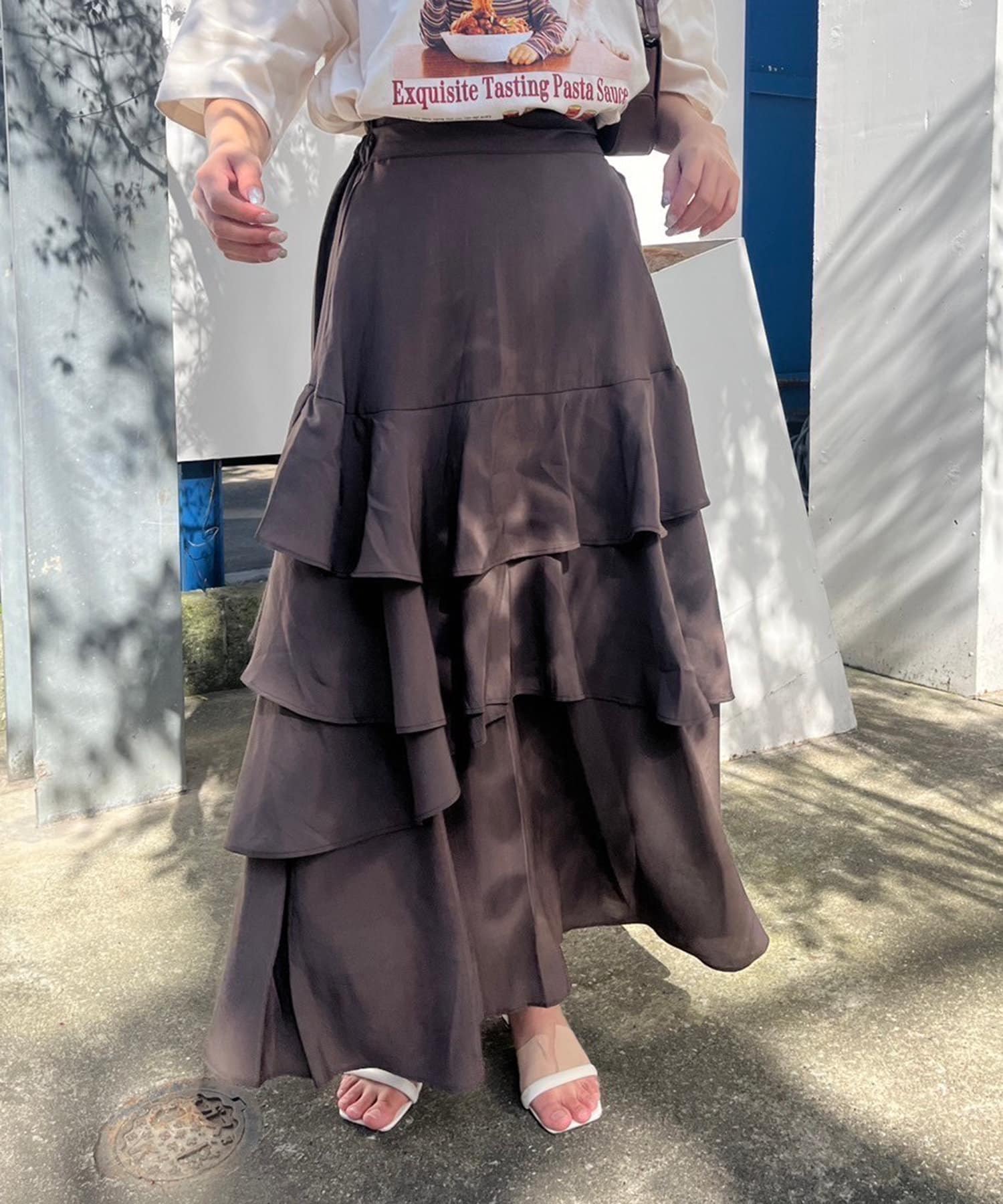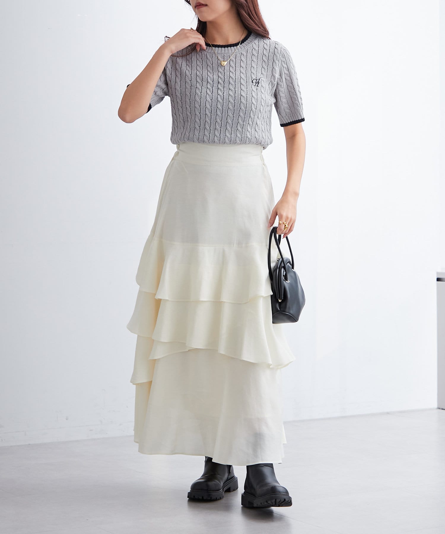 ハイウエストと細見えでスタイルアップが叶うティアードスカート♪