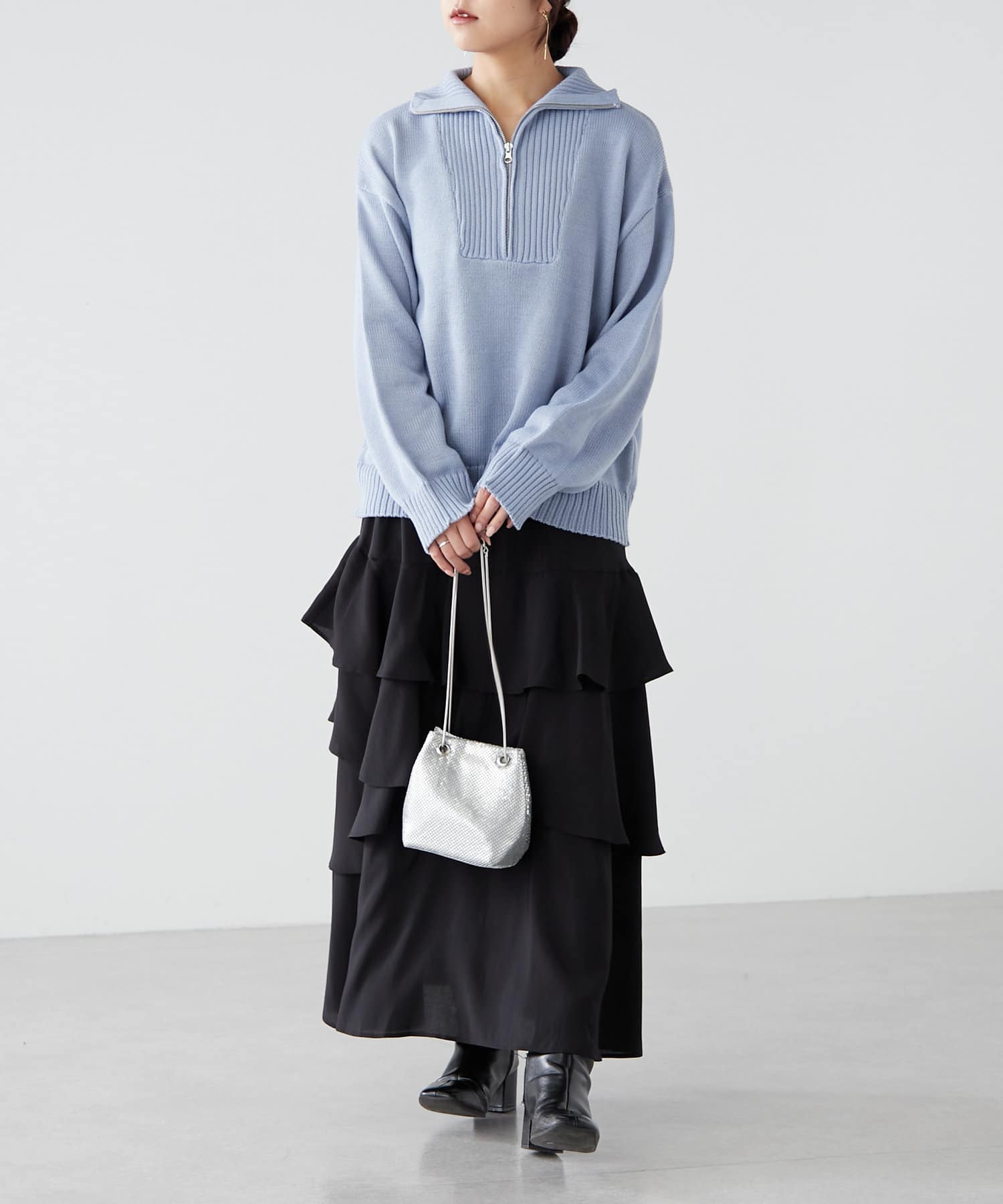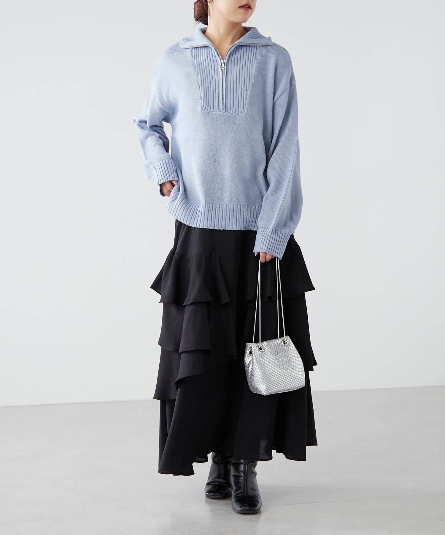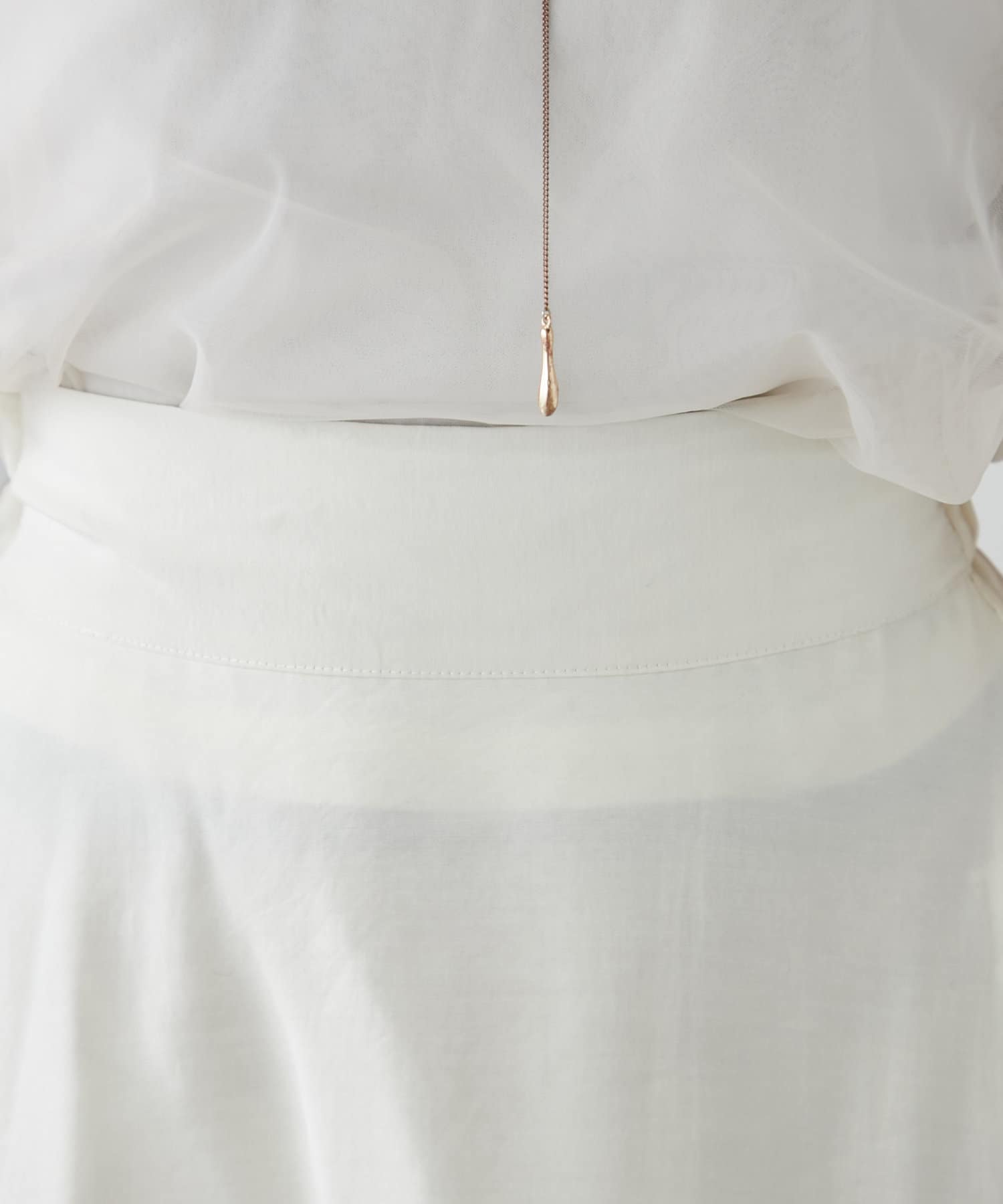 ・ティアードがヒップより下から始まるから腰回りがスッキリ見えるデザイン。