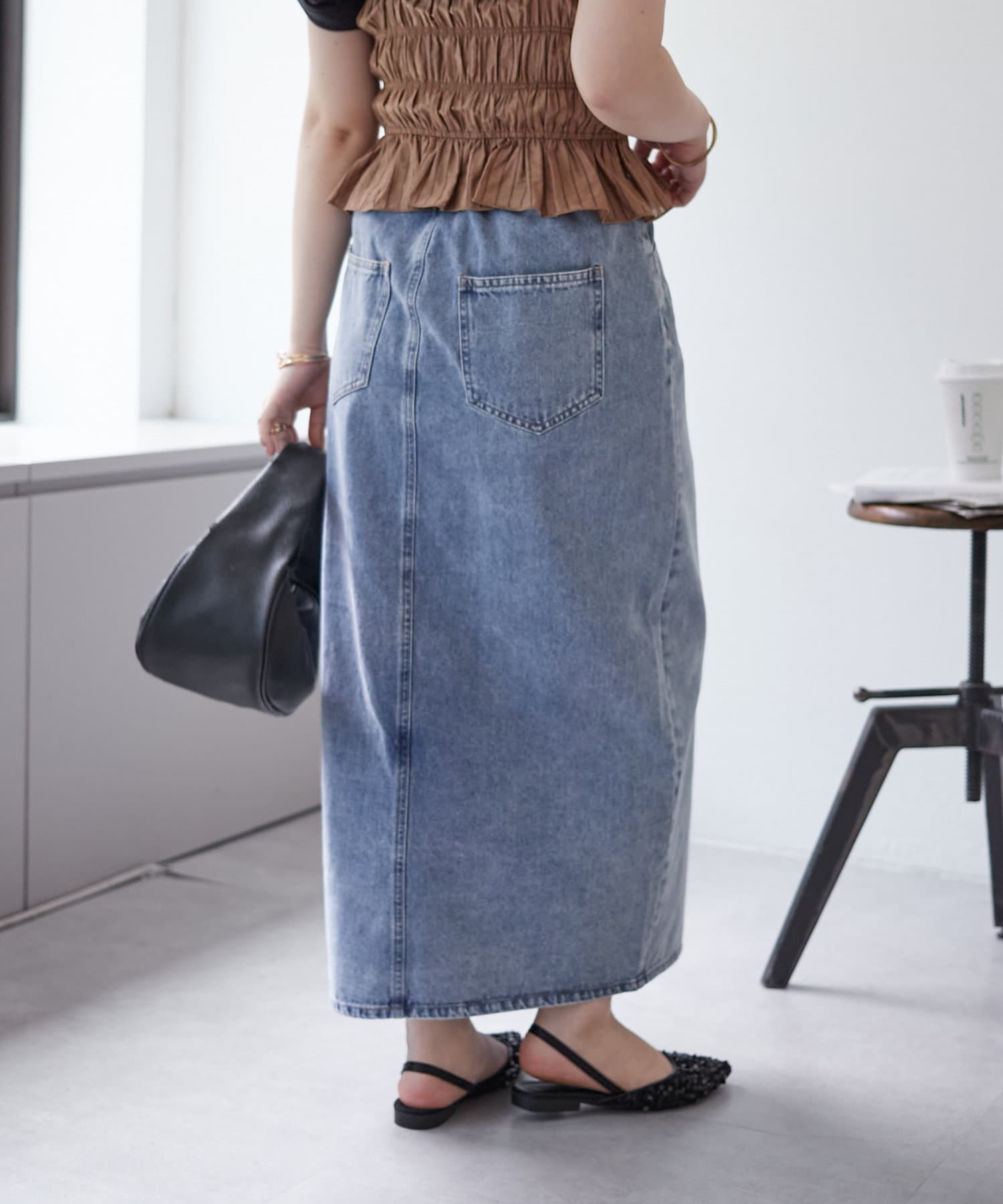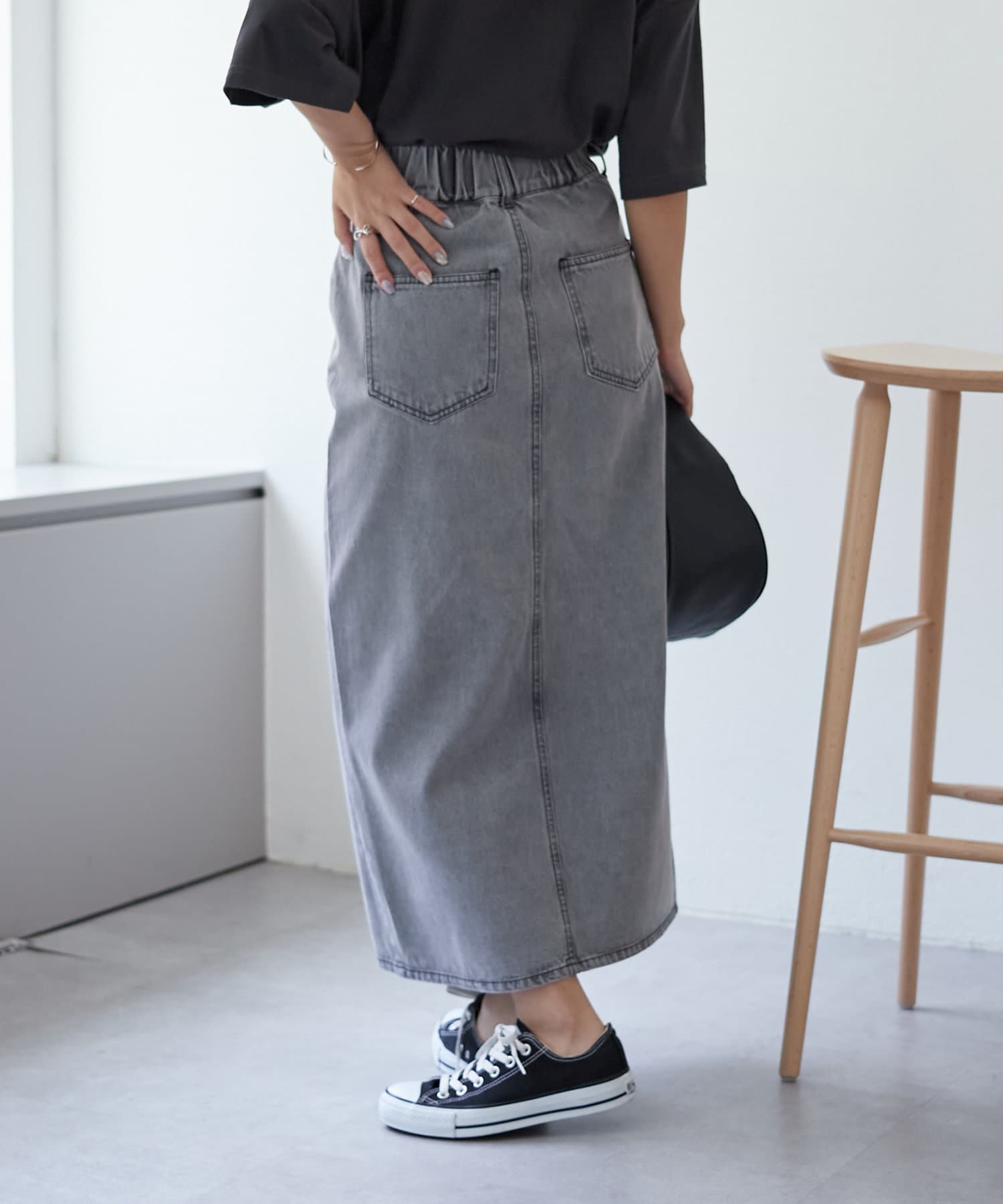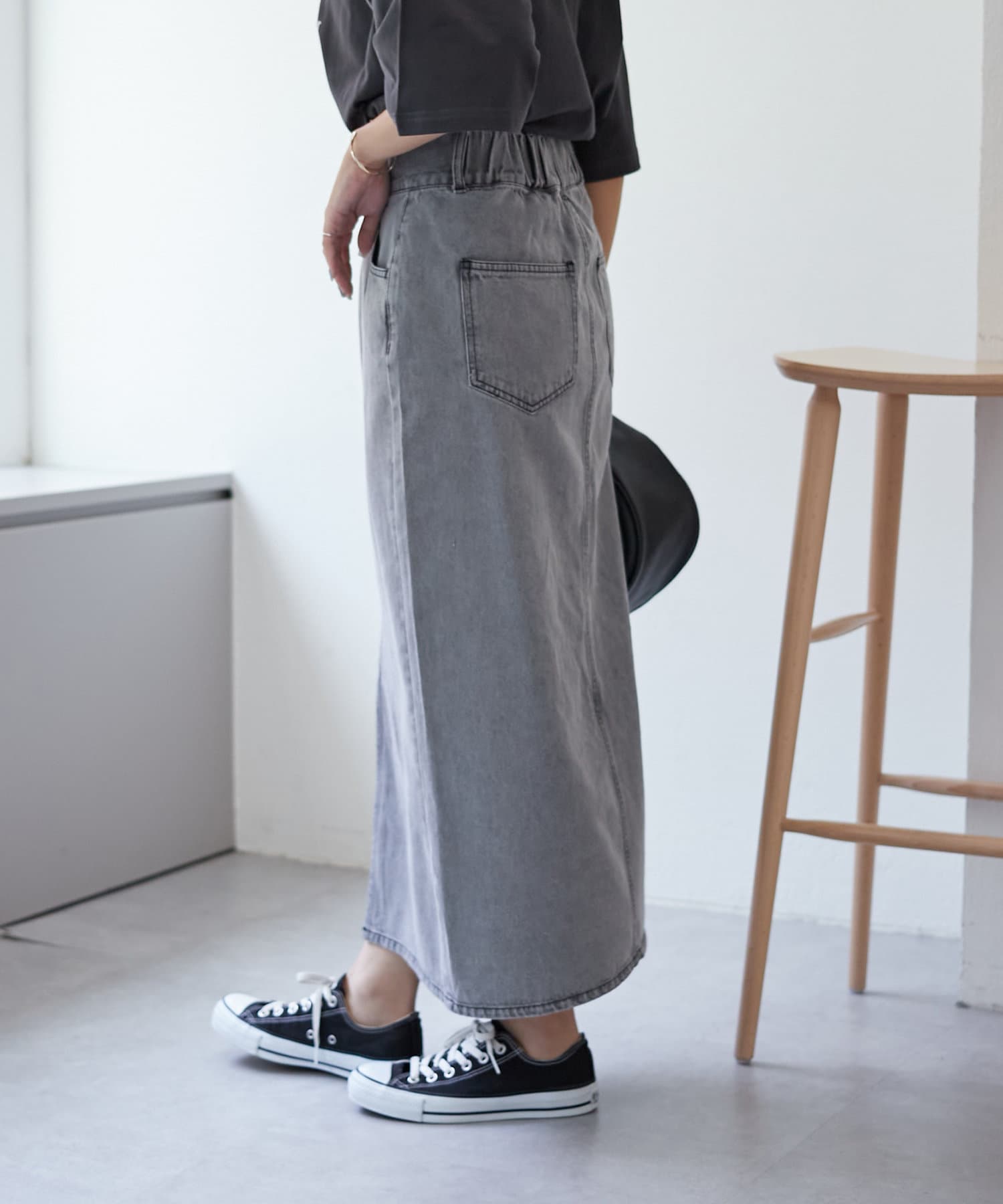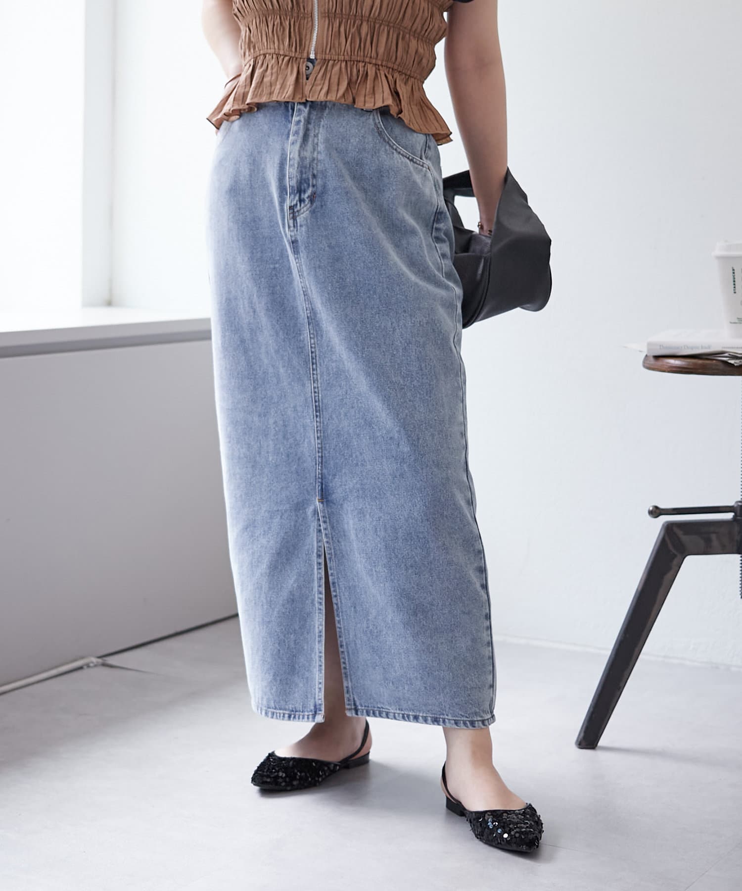・スリット入りでらくちん♪デニム素材のナロースカート