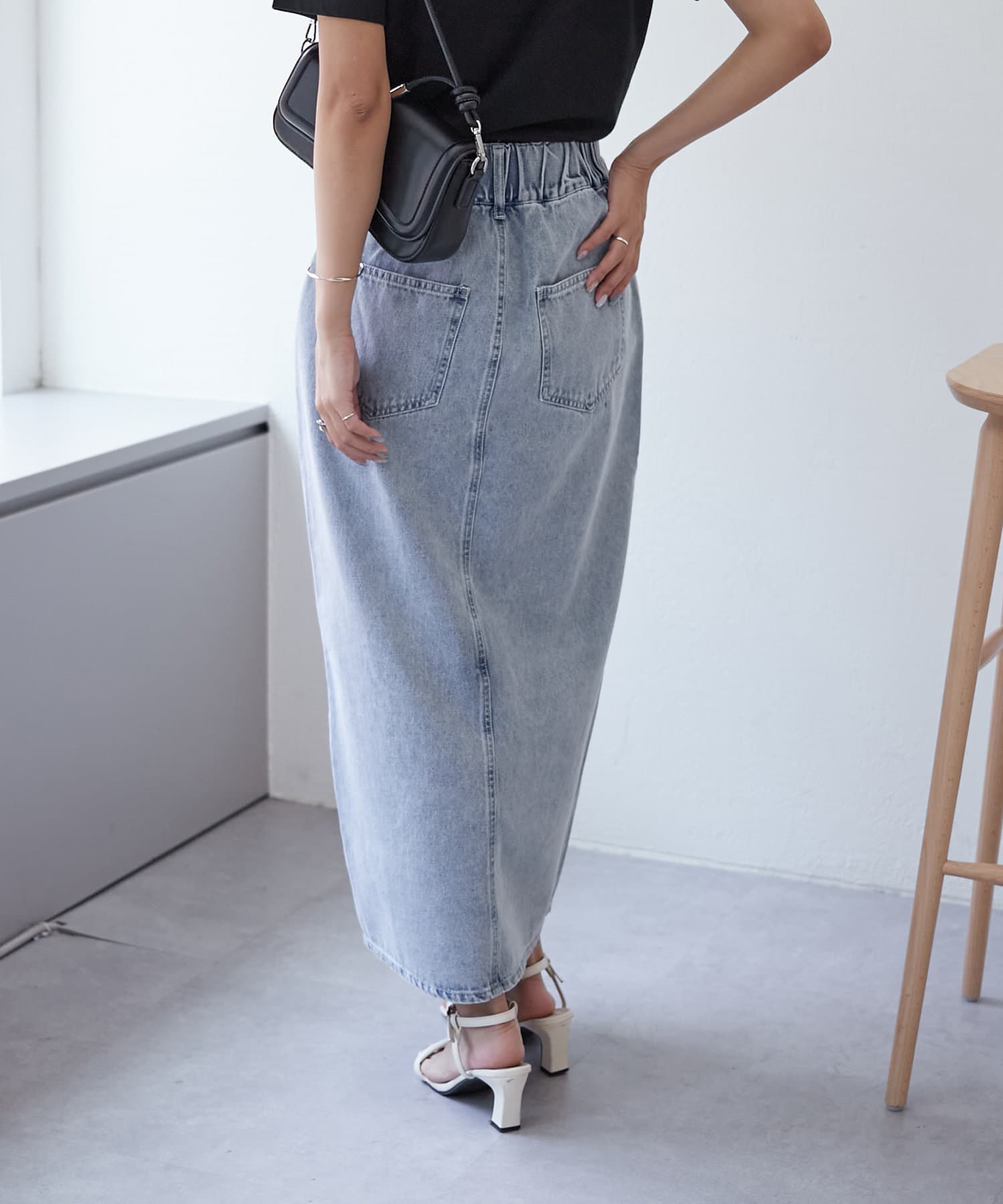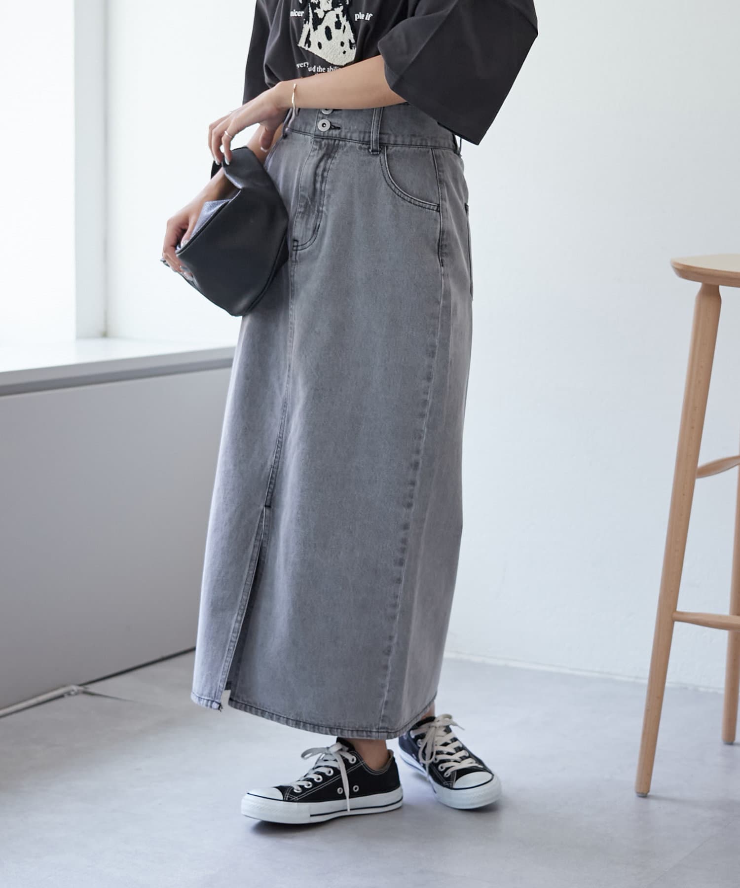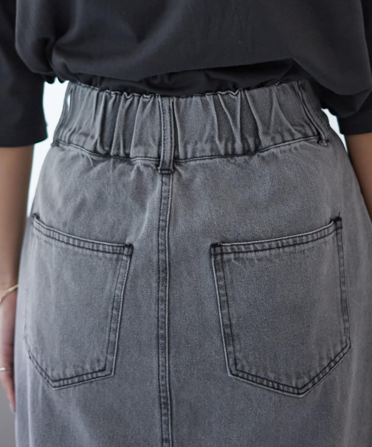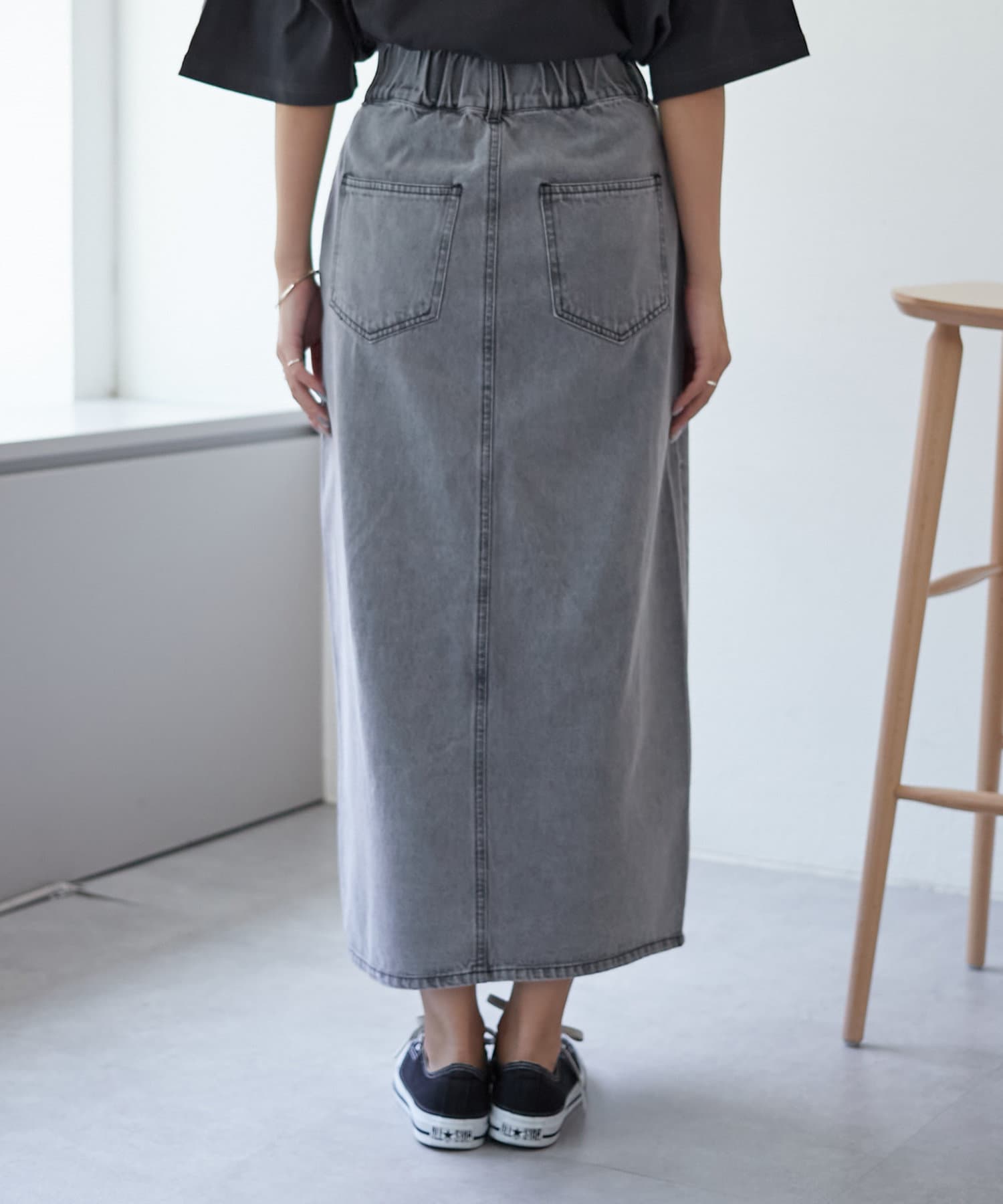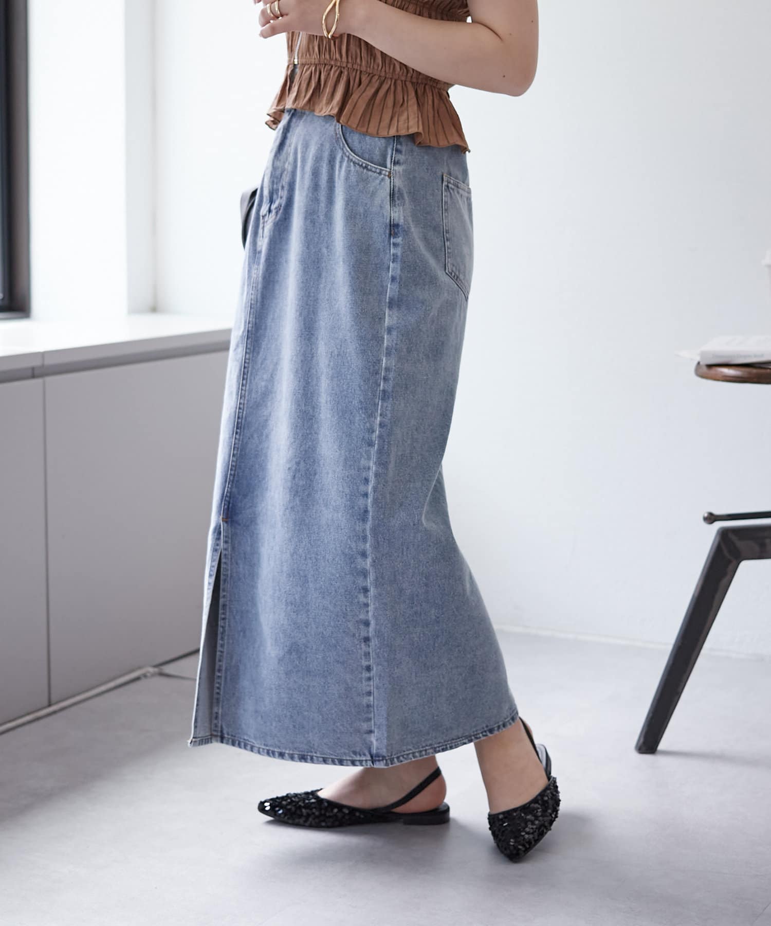 ・スリット入りでらくちん♪デニム素材のナロースカート