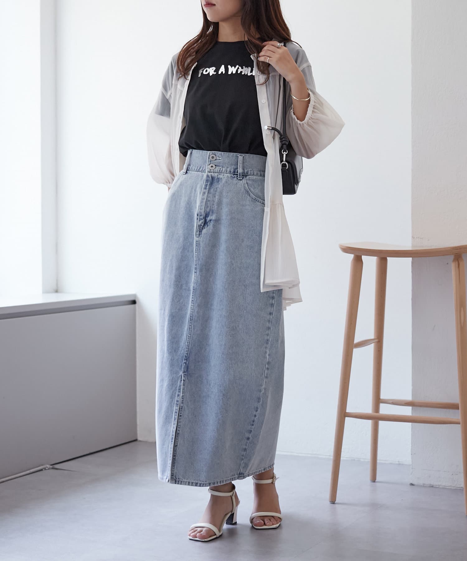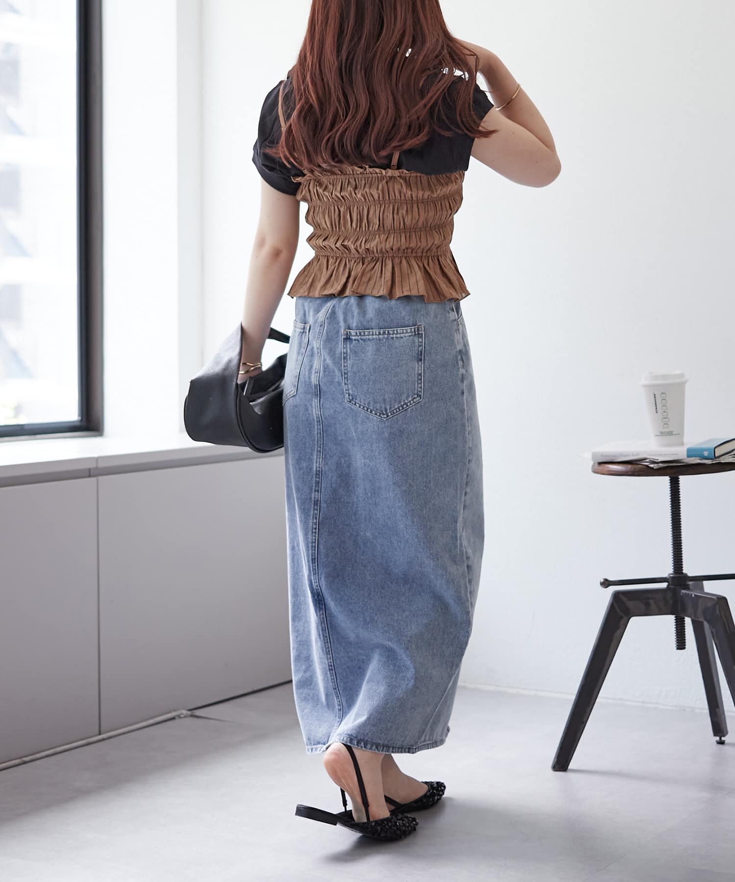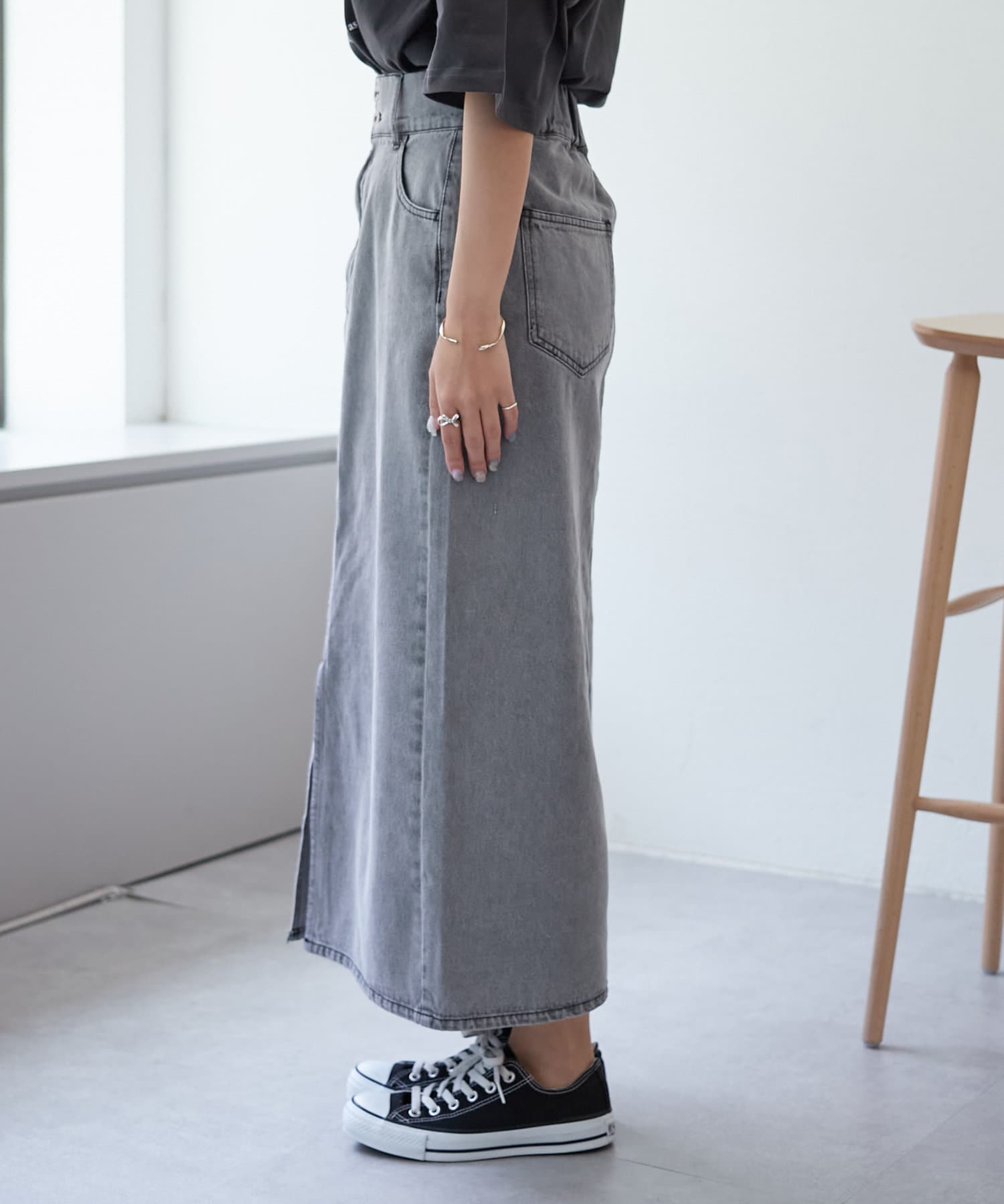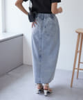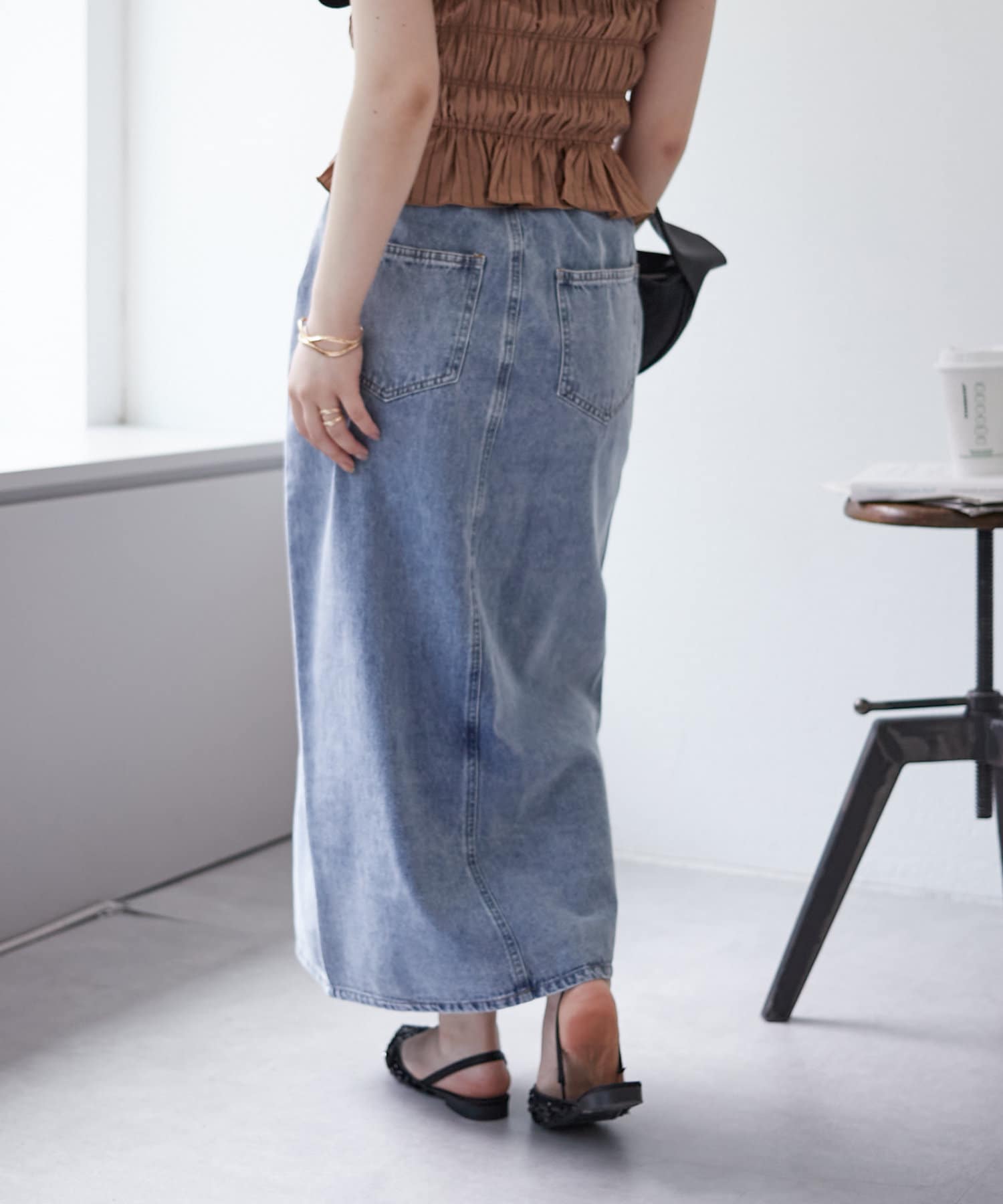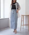 ・スリット入りでらくちん♪デニム素材のナロースカート
