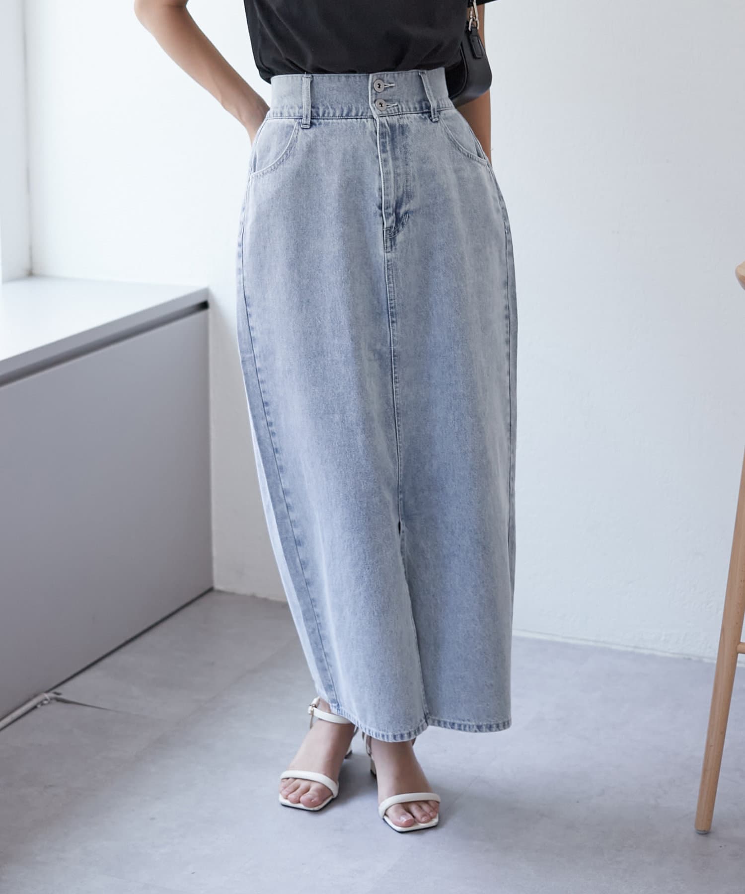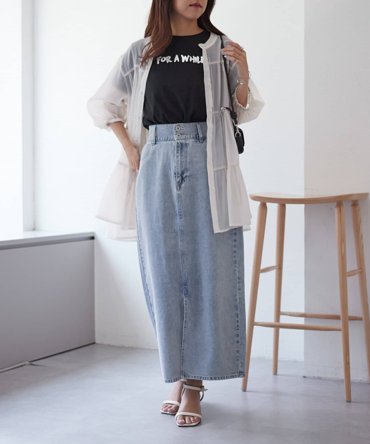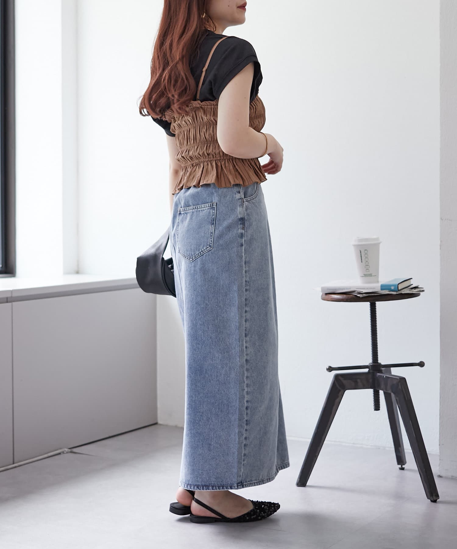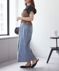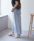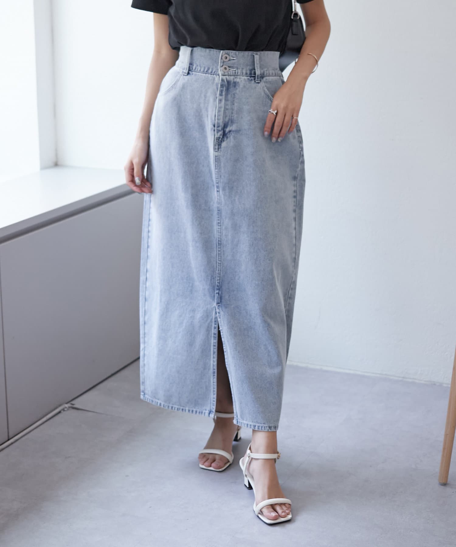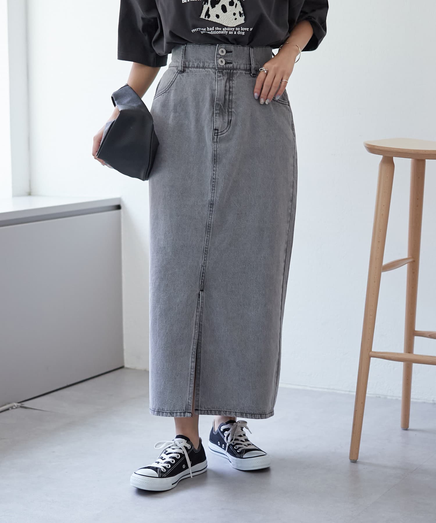 ・スリット入りでらくちん♪デニム素材のナロースカート