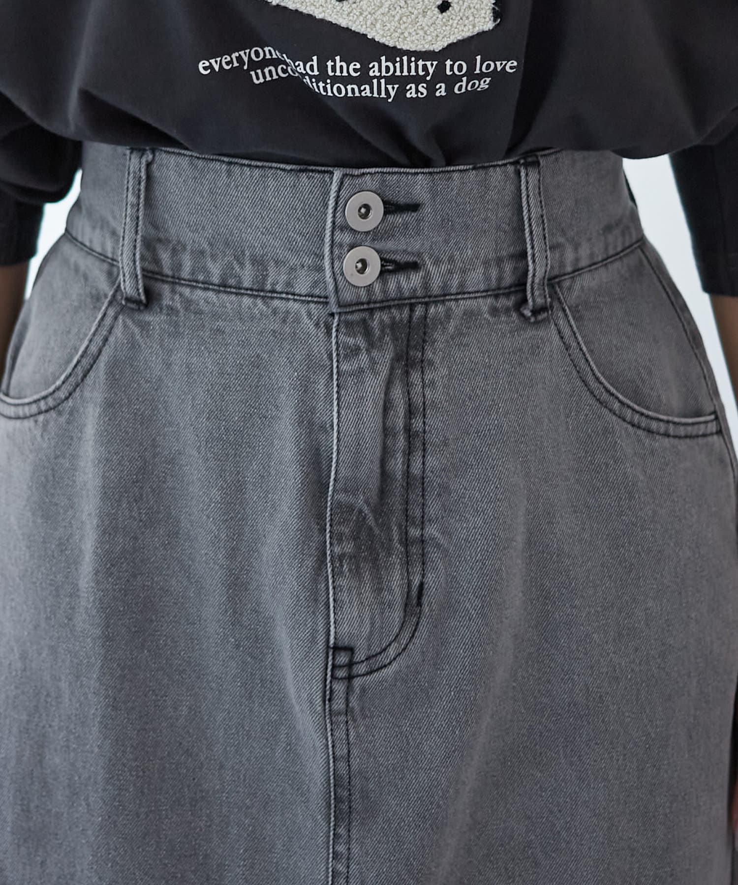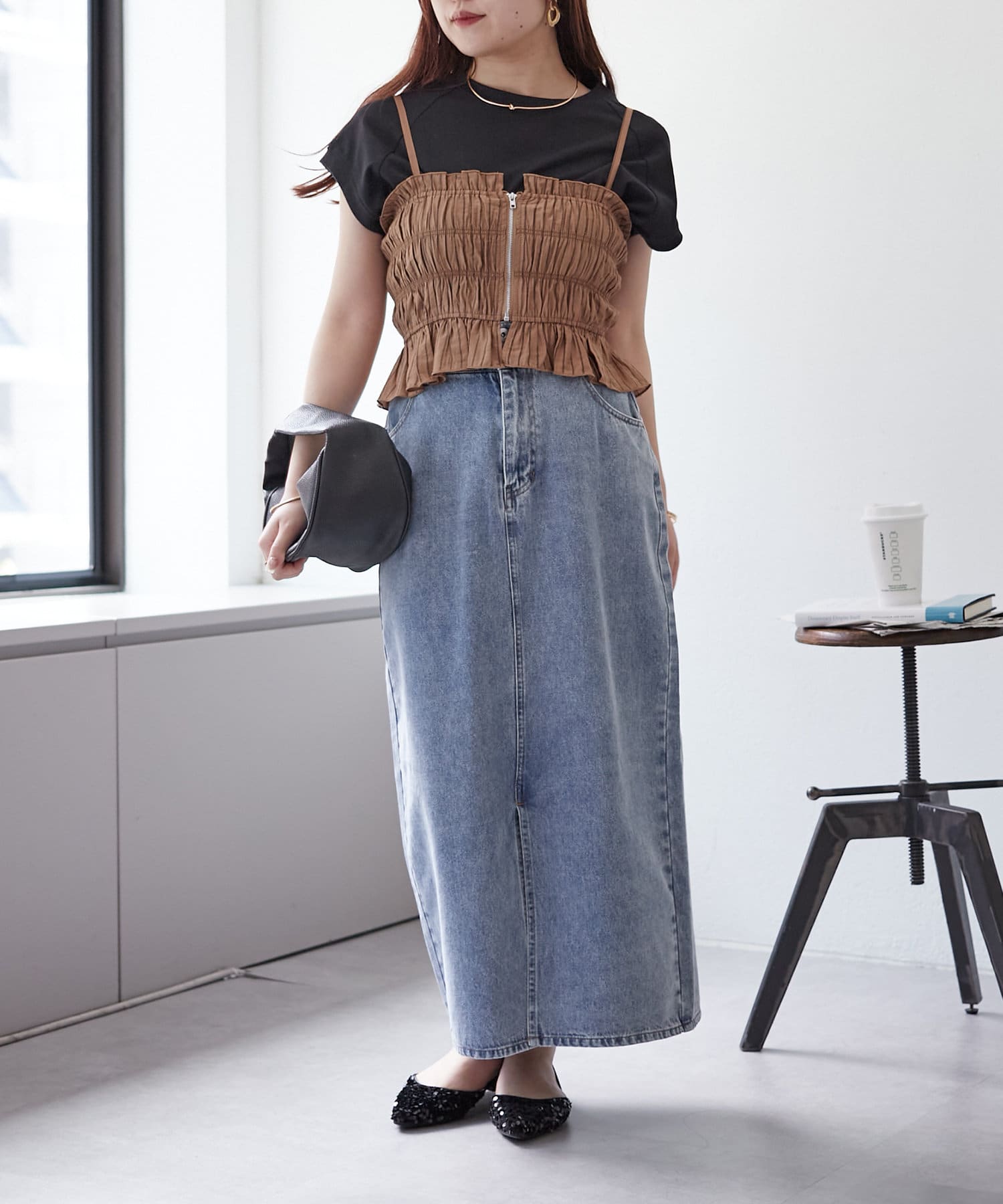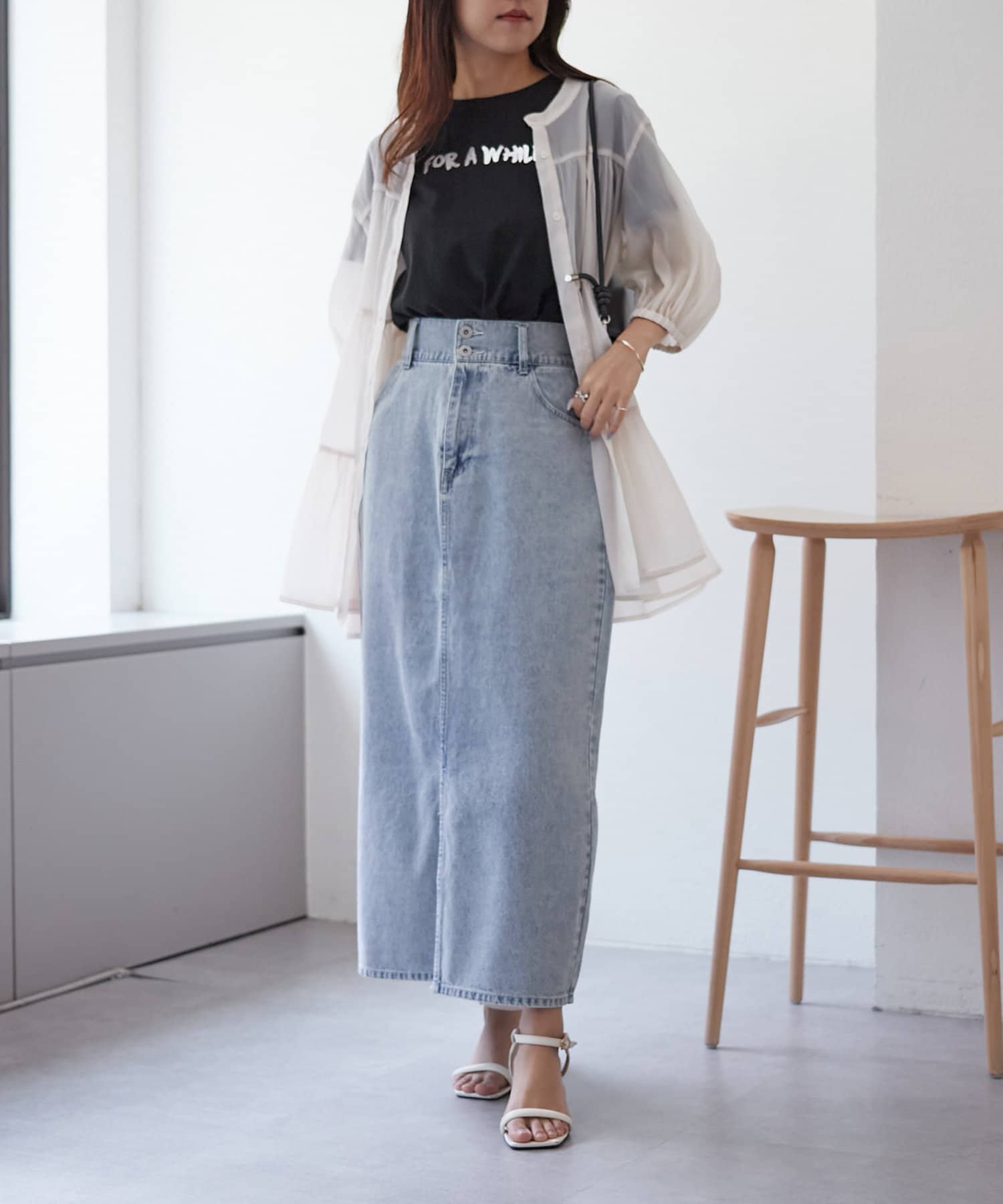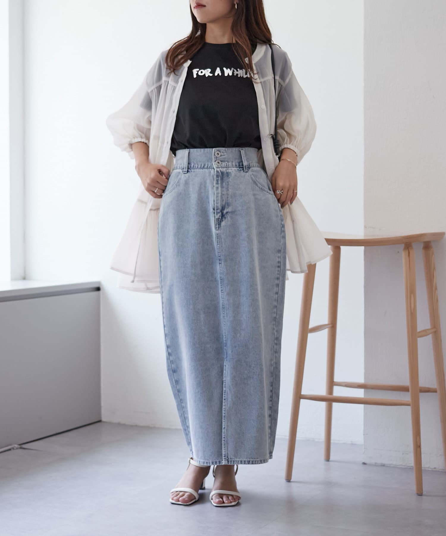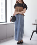 ・スリット入りでらくちん♪デニム素材のナロースカート