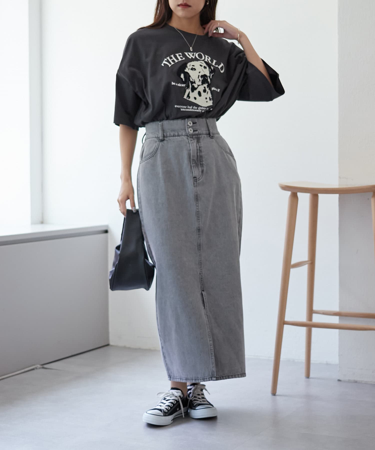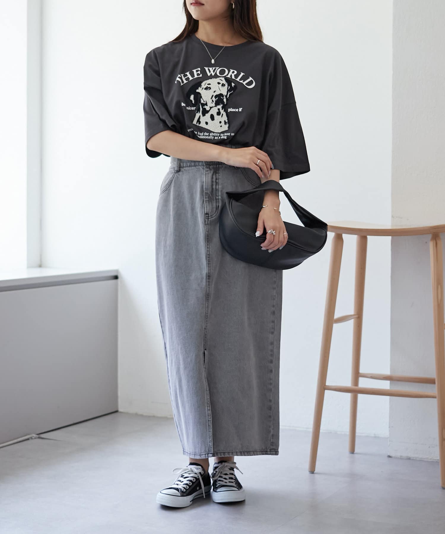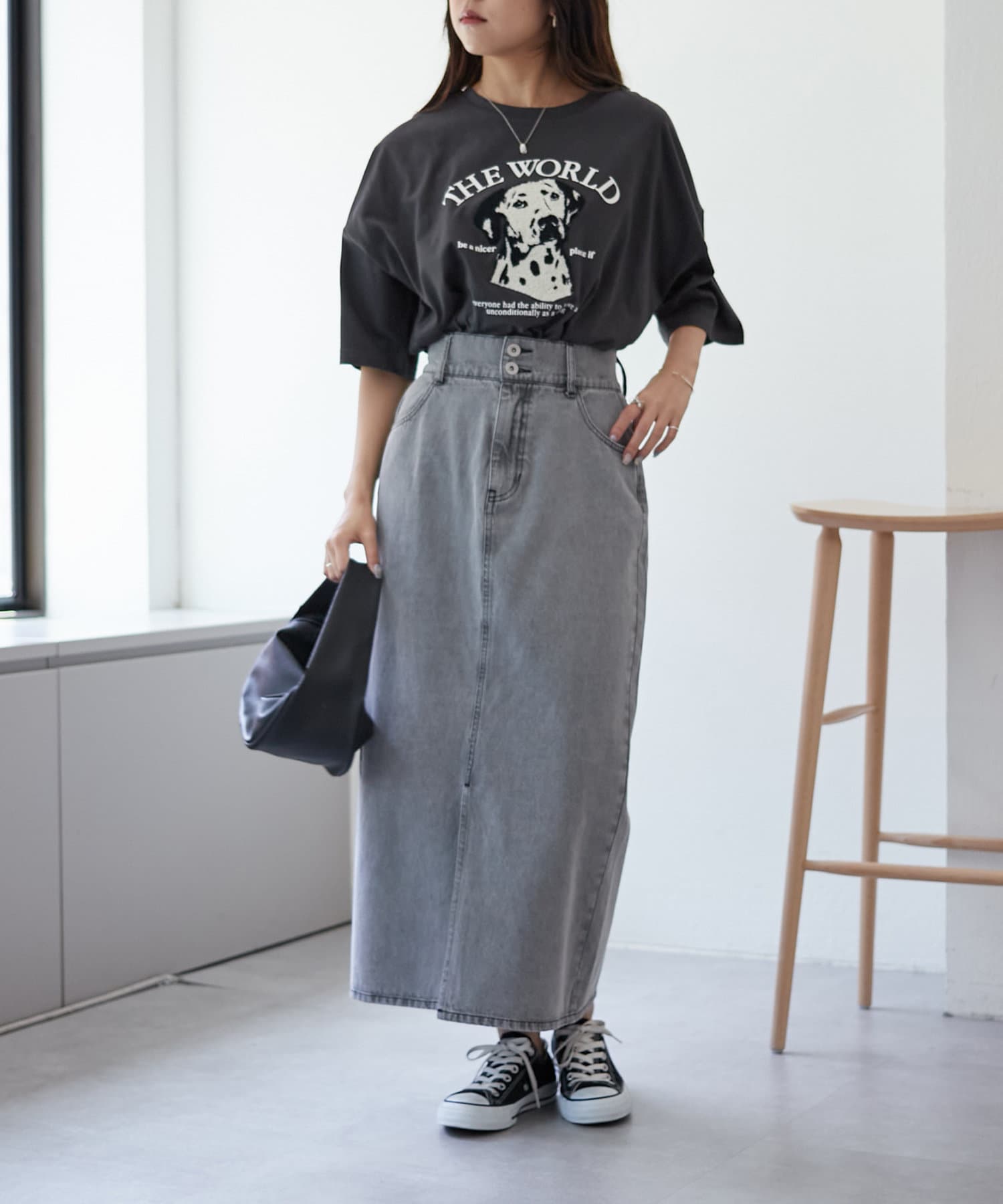 ・コンパクトな丈感のTシャツと合わせてスタイルアップコーデがオススメ