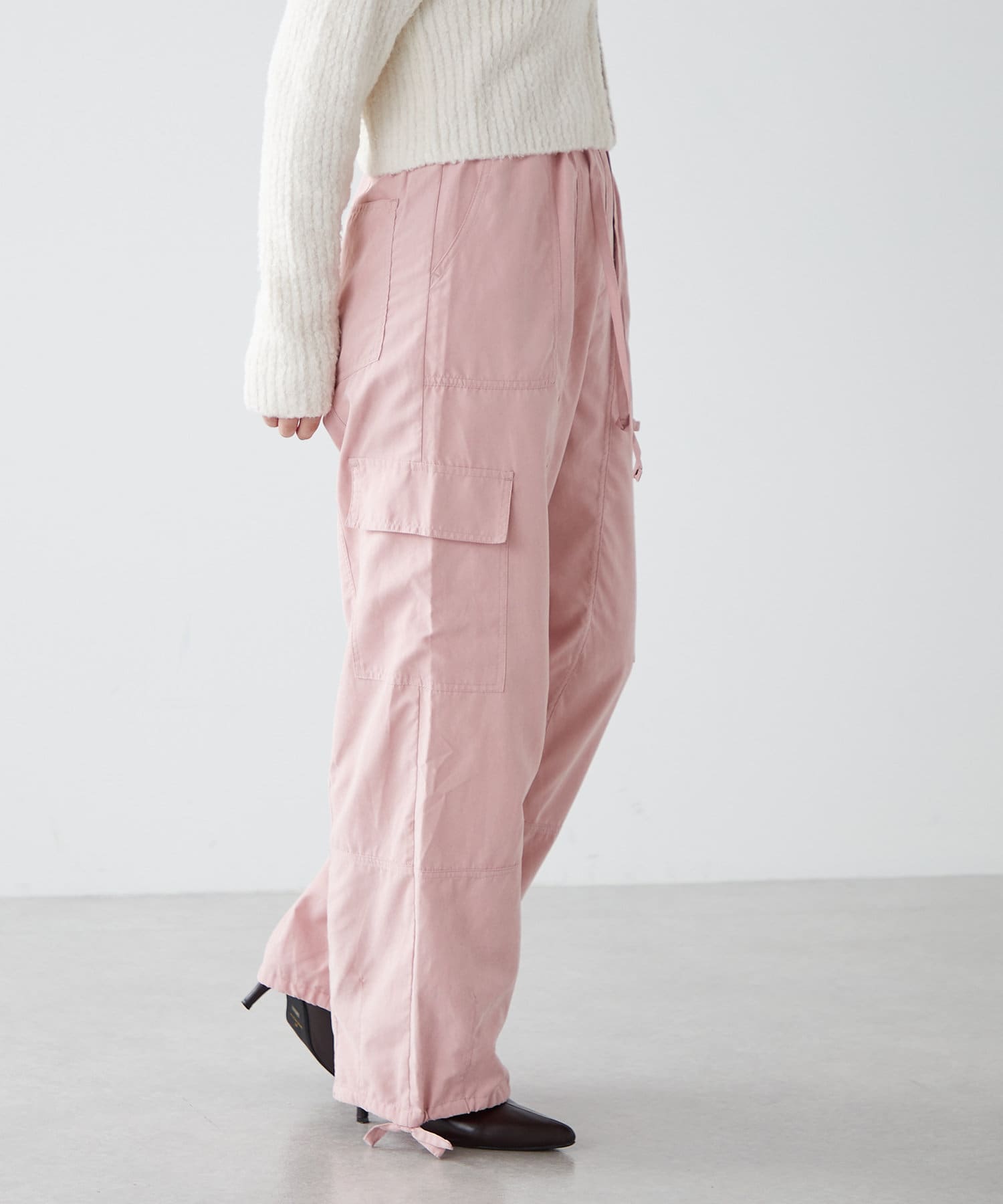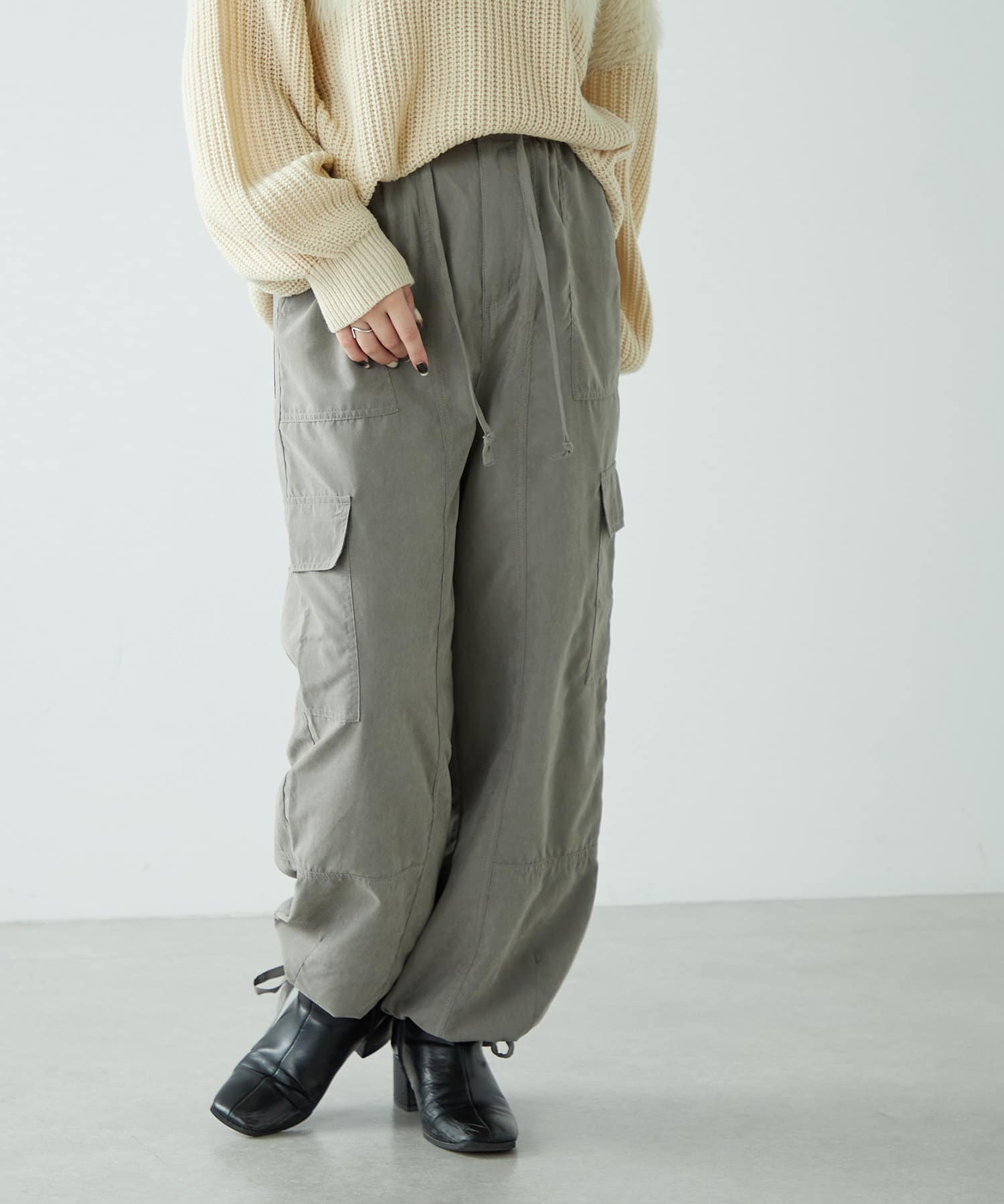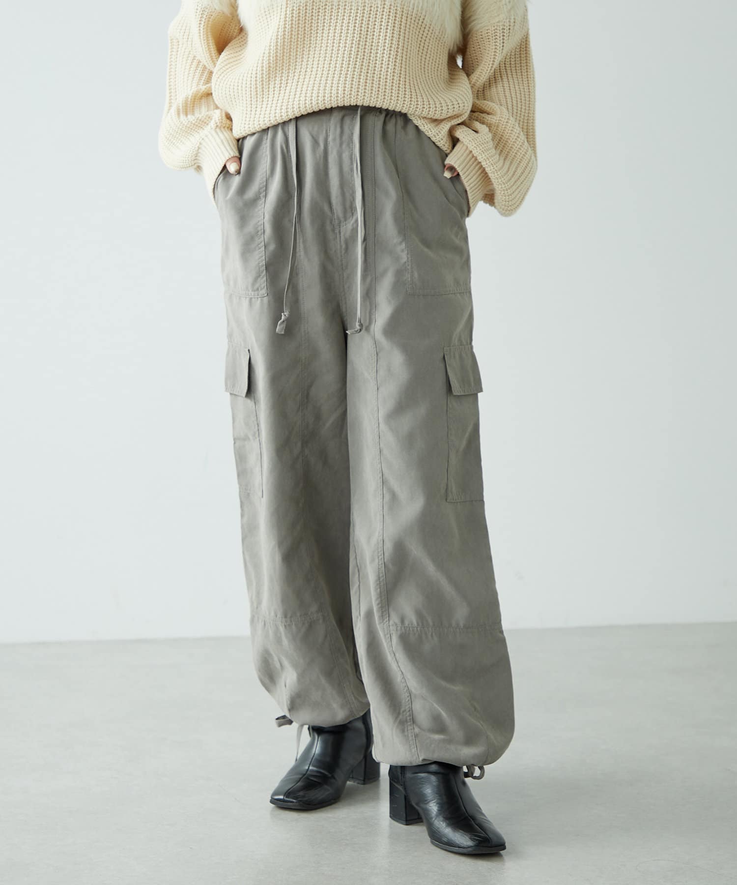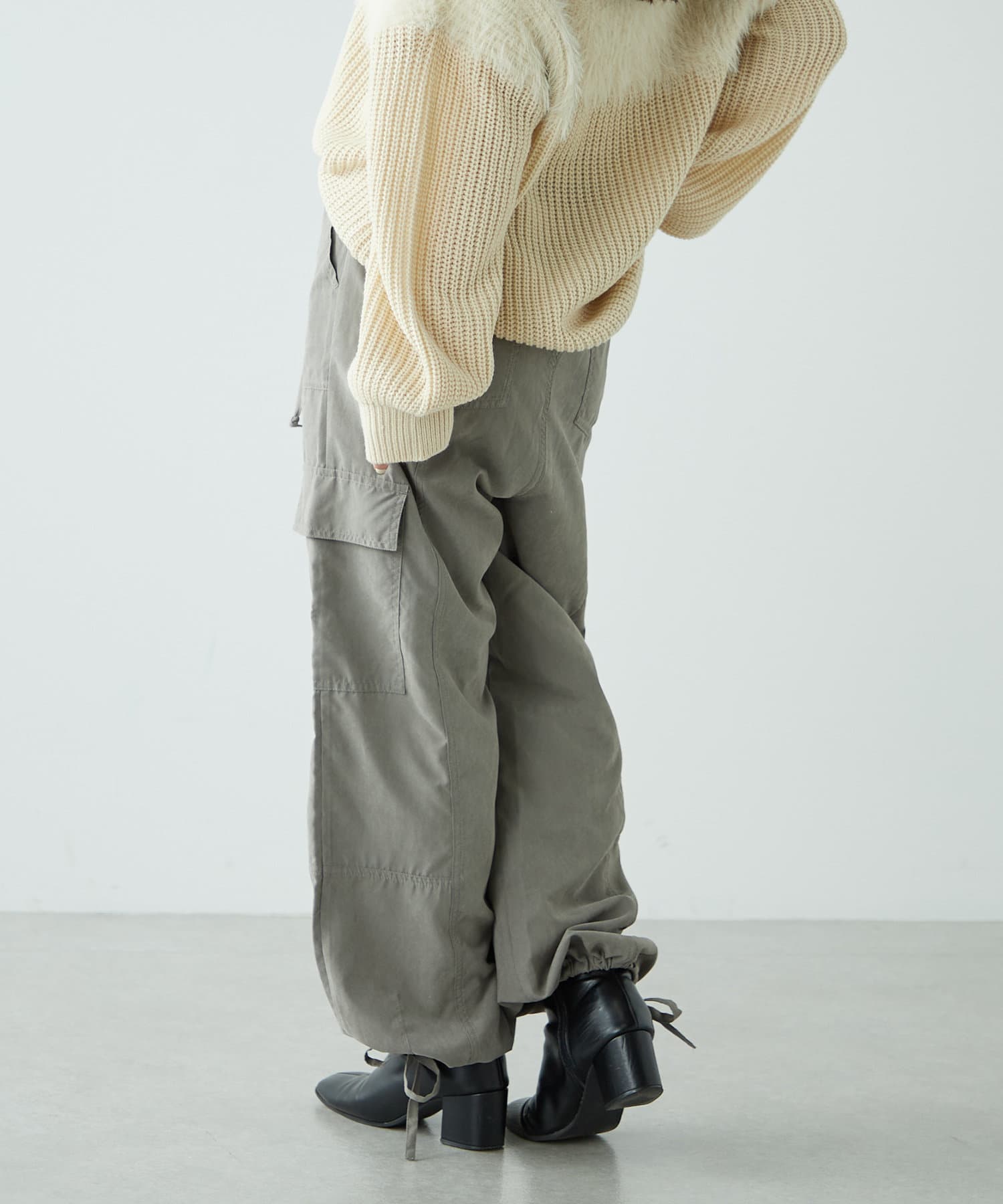 ・ピーチ起毛素材を使用したカジュアルだけどキレイ見えするカーゴパンツ。