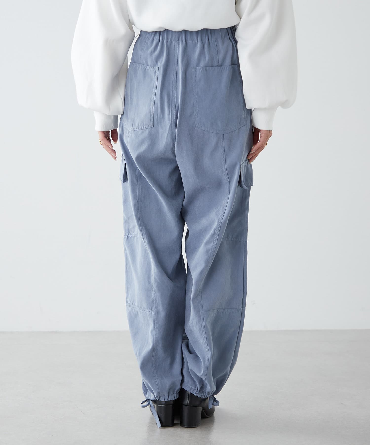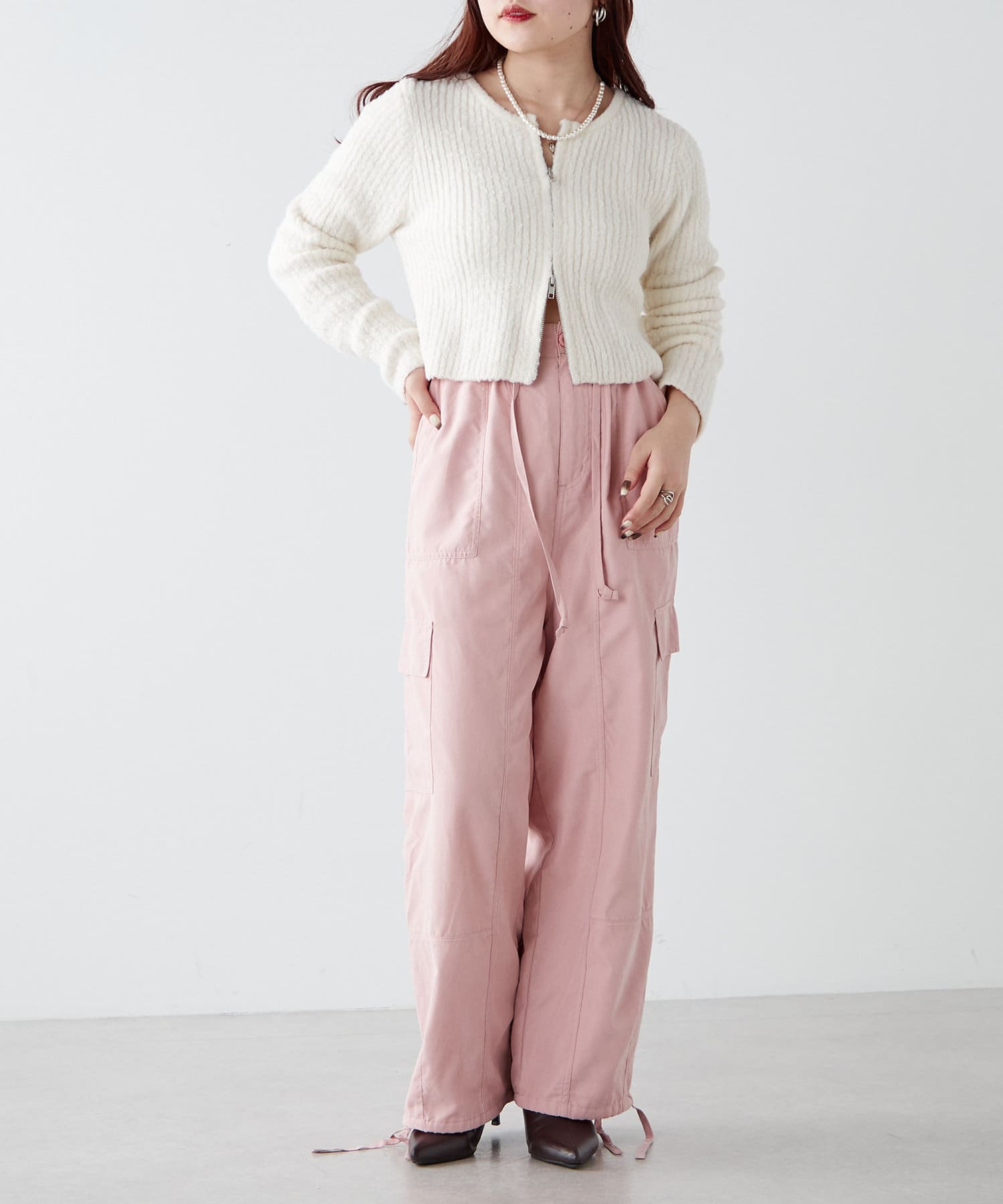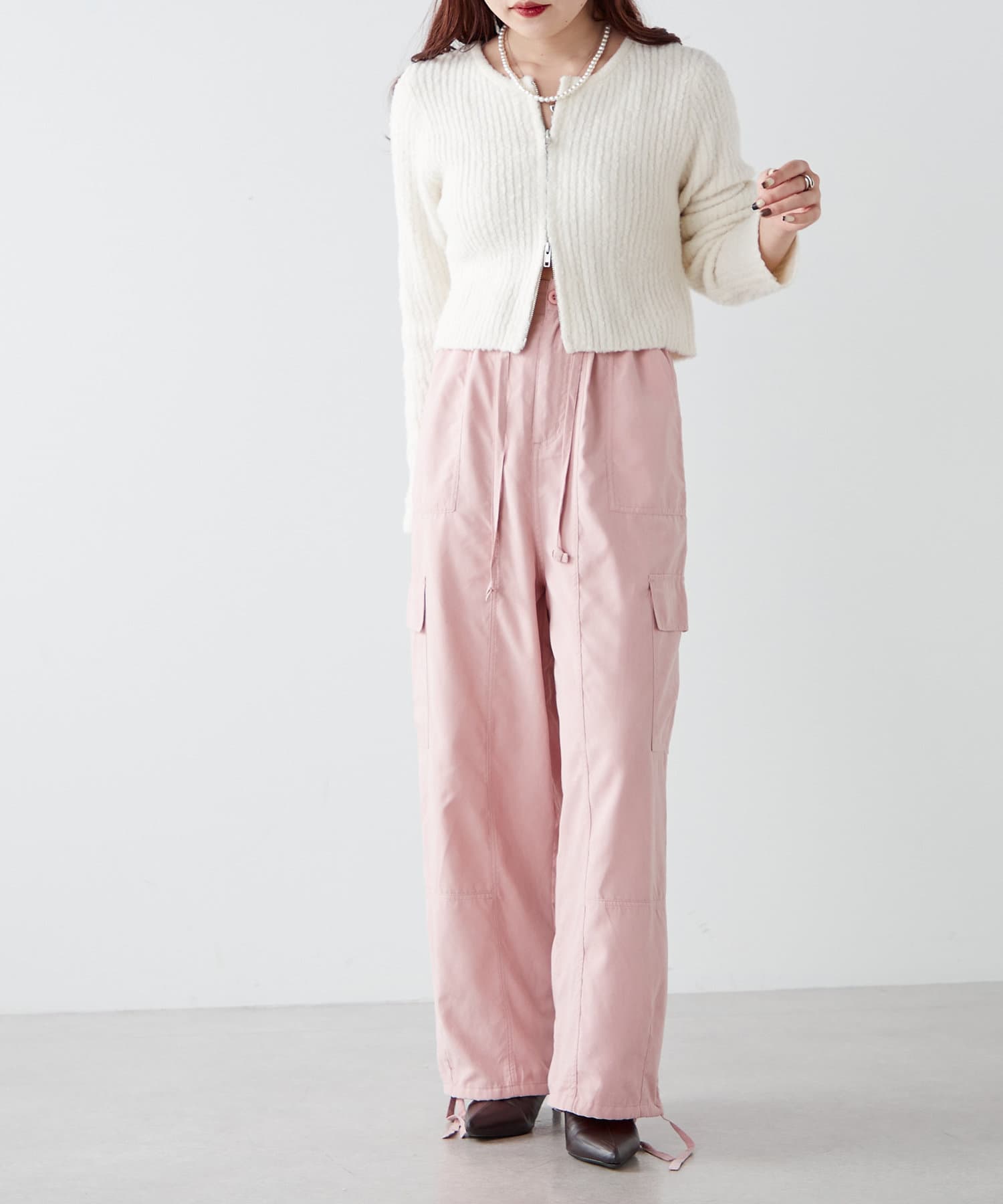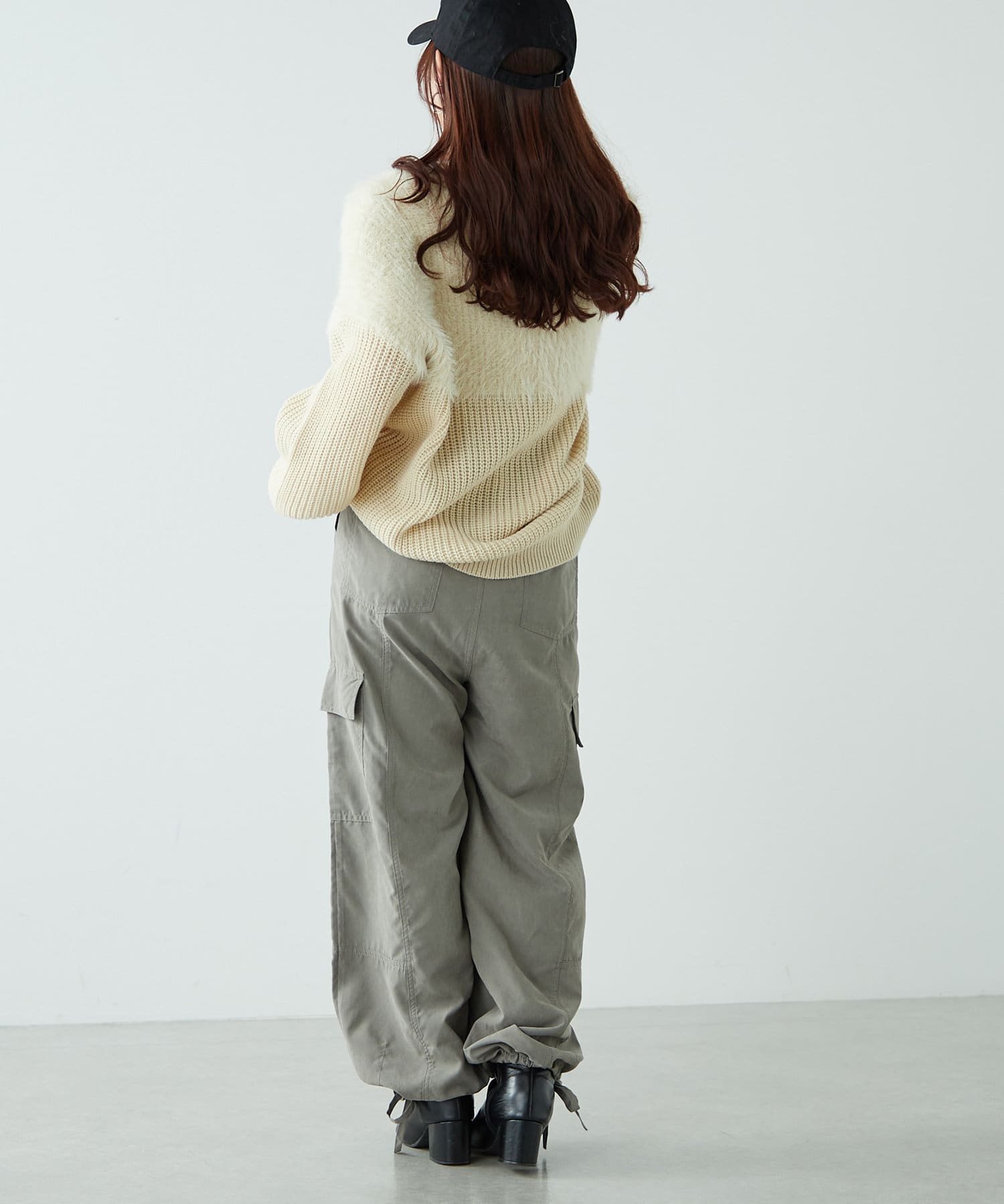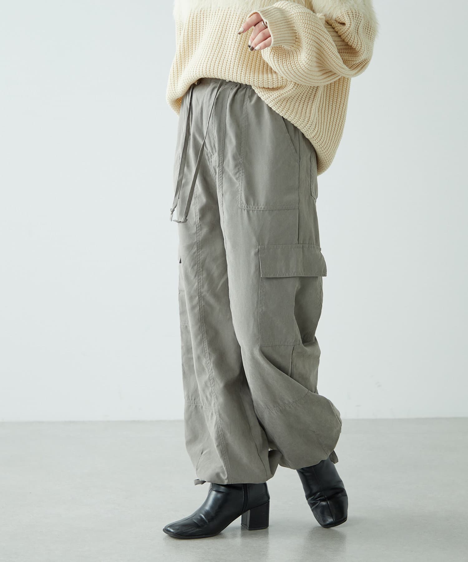 ・ピーチ起毛素材を使用したカジュアルだけどキレイ見えするカーゴパンツ。