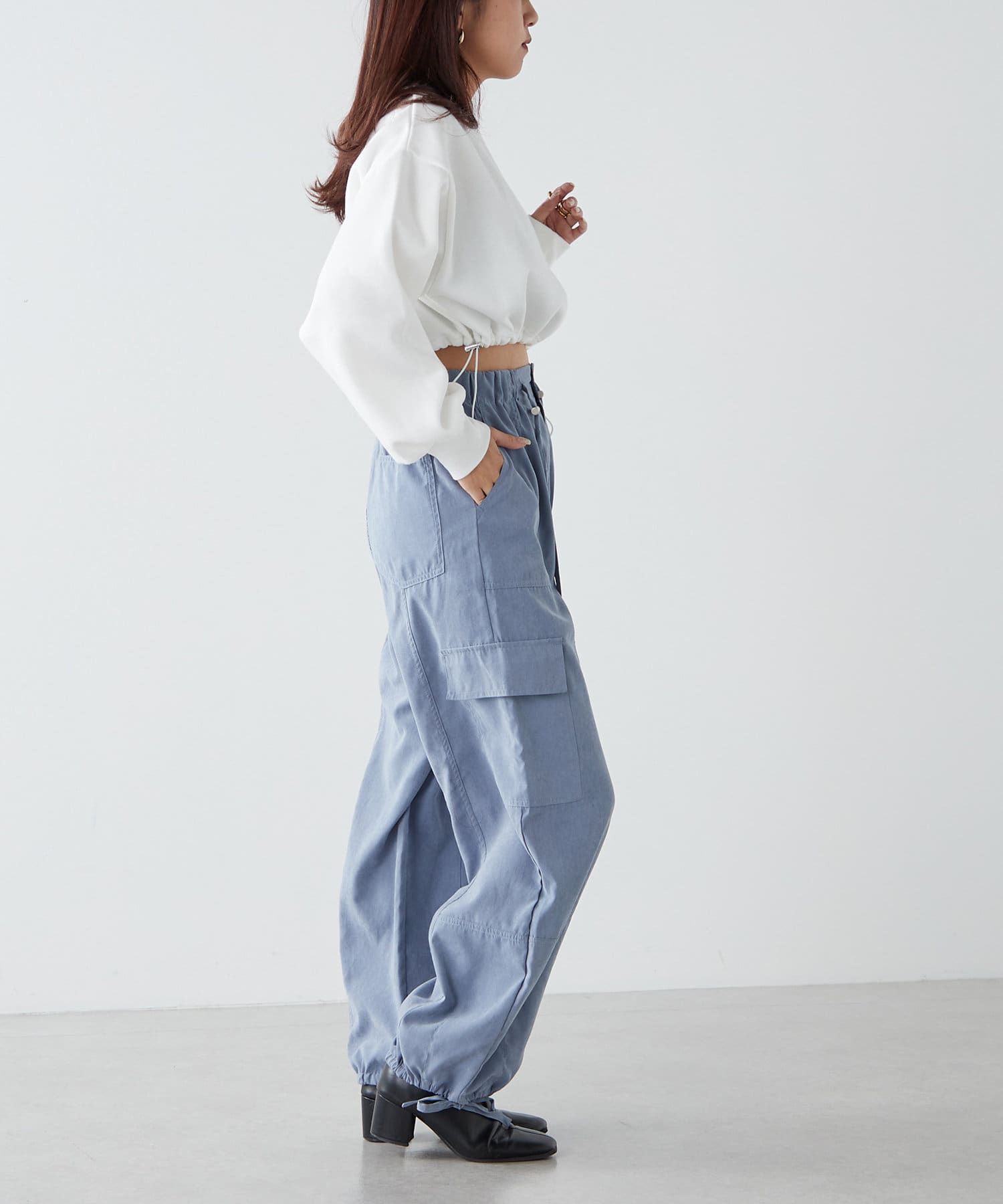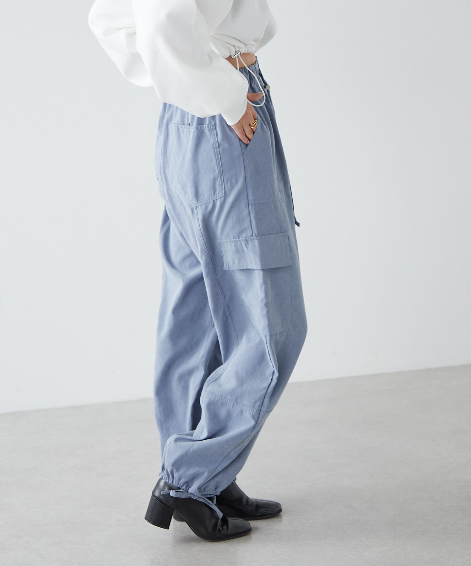 ・程よくルーズなセミワイドでセンタープレスのラインが美シルエットを叶えます。