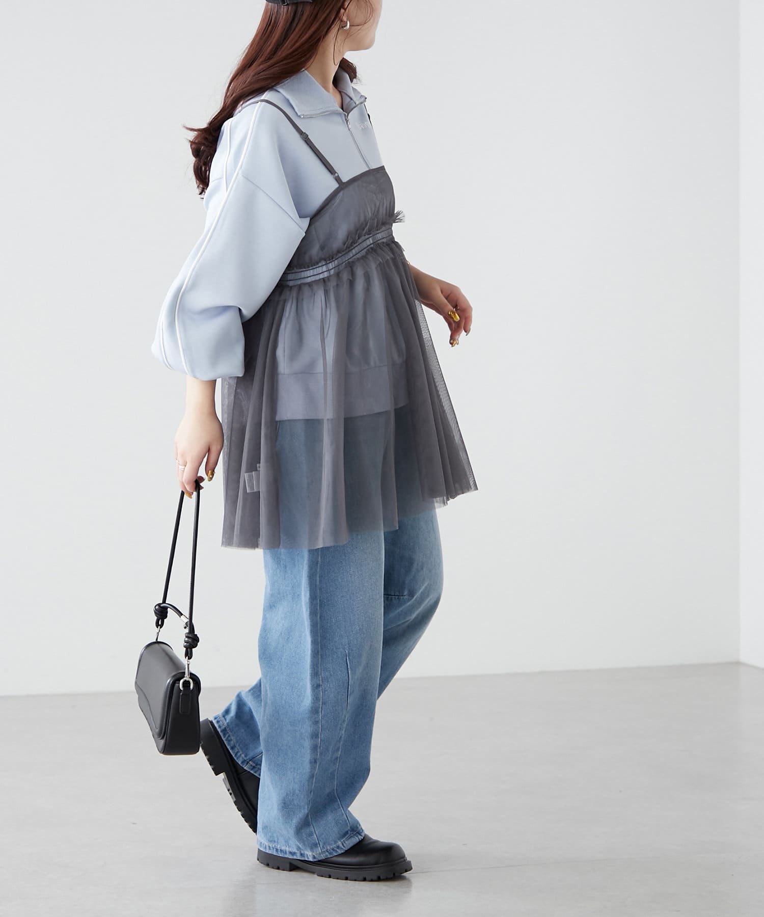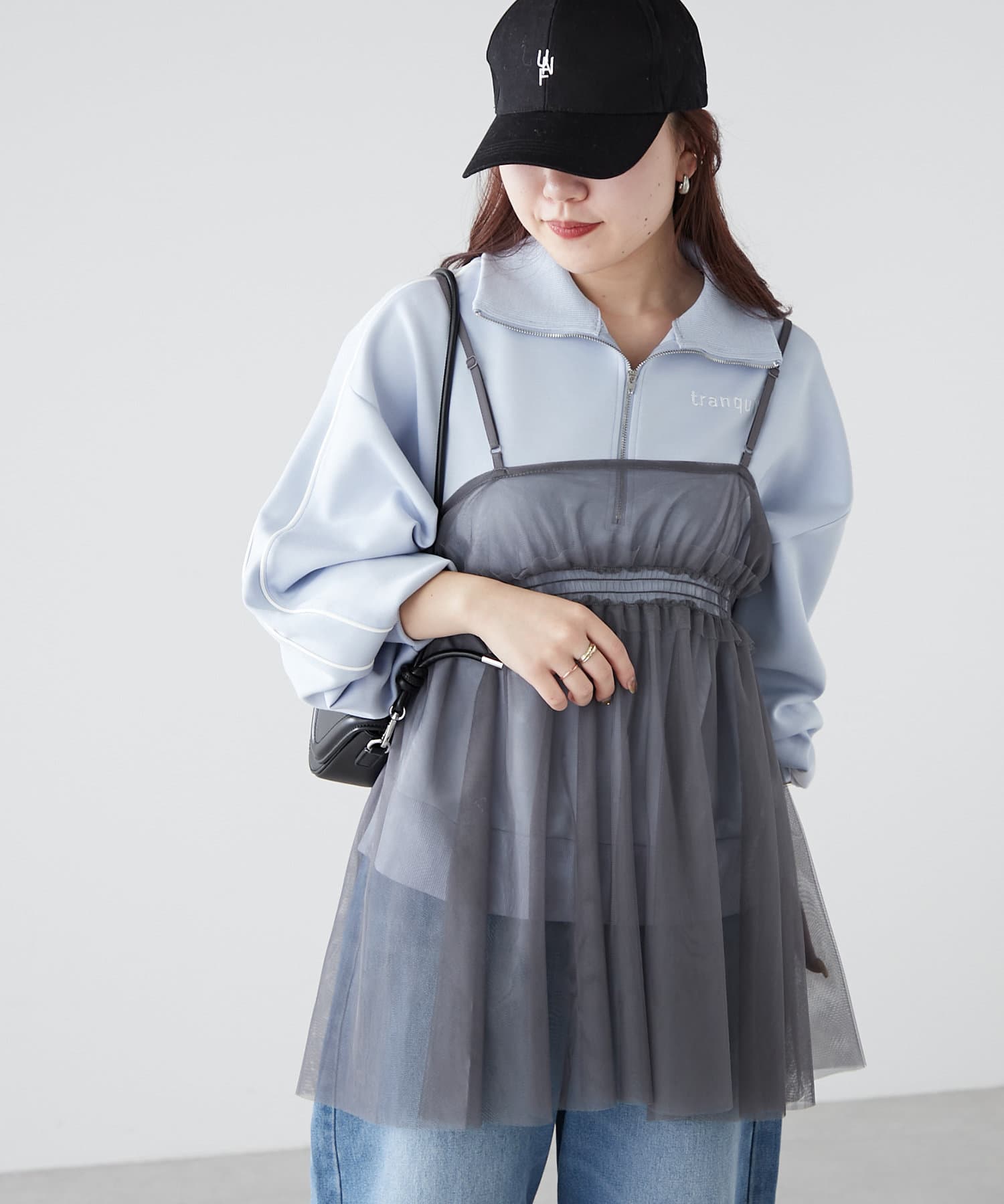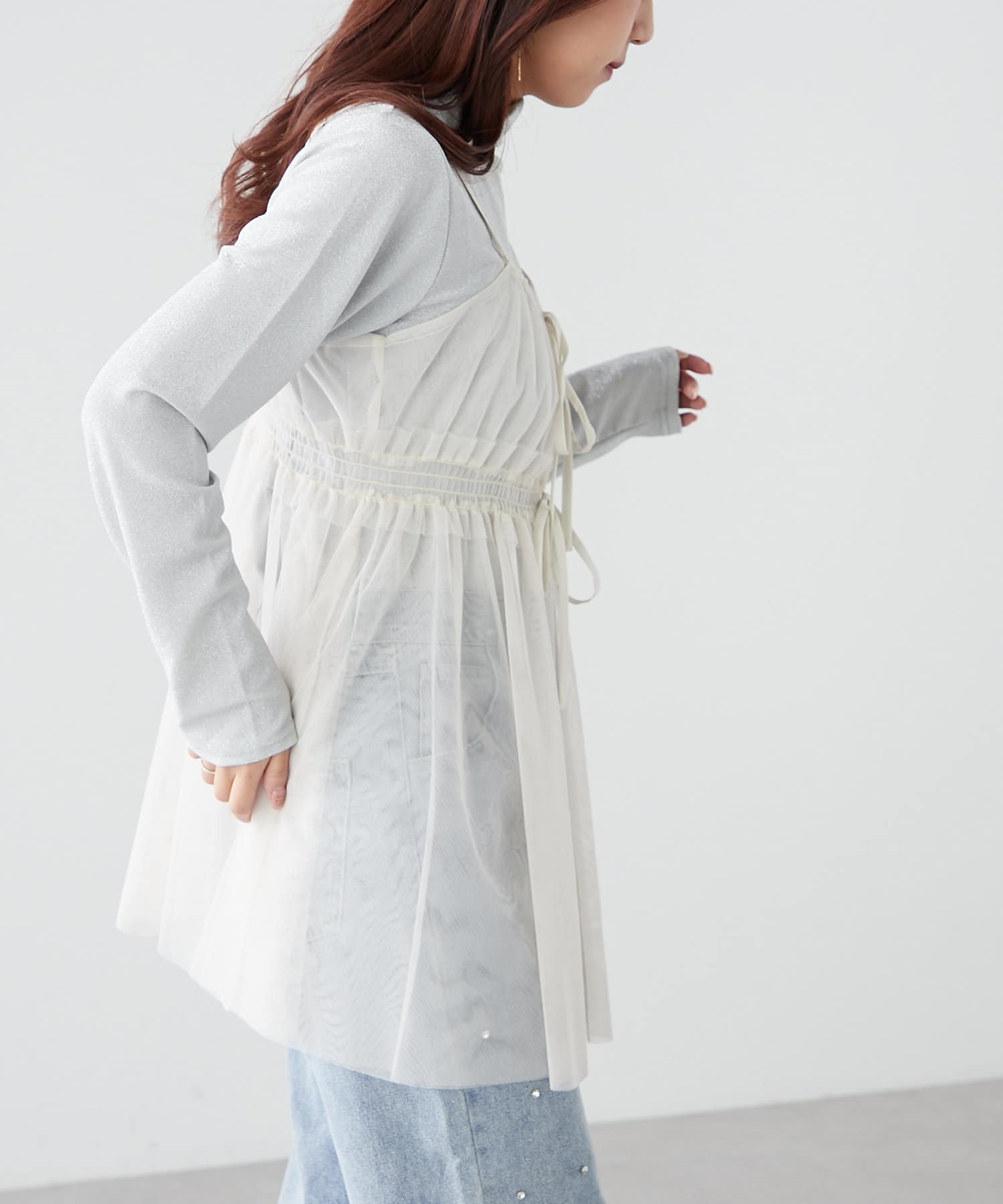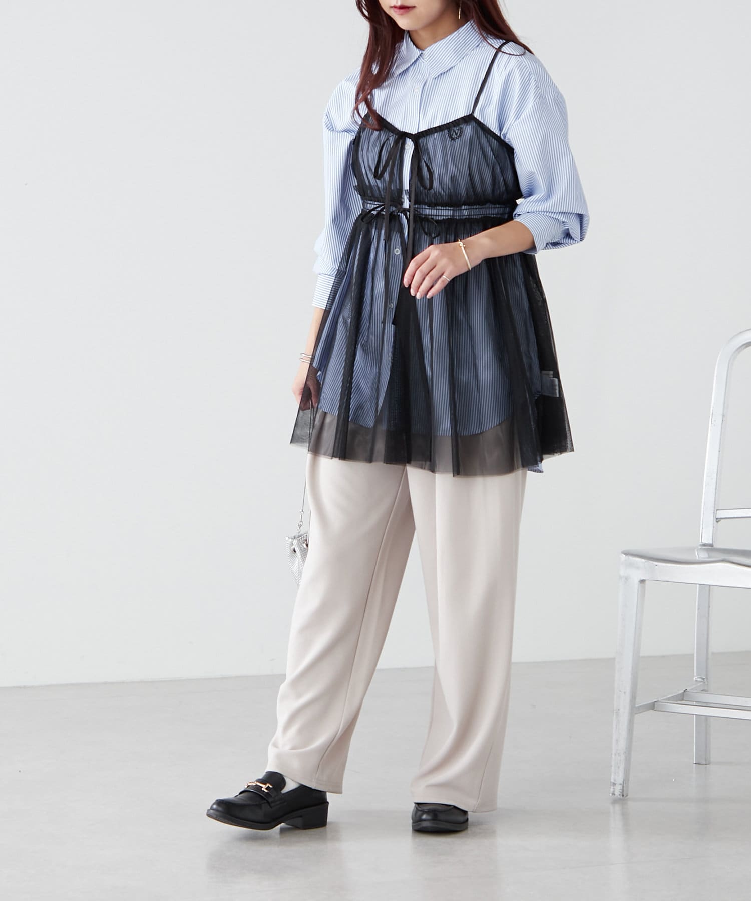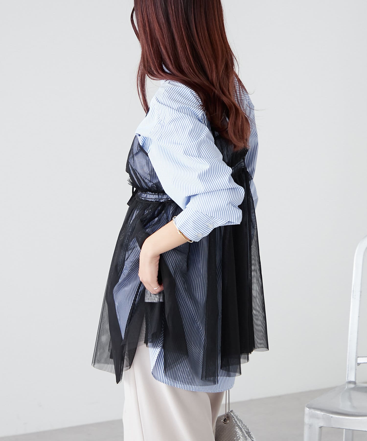 ・チュール素材で、シンプルなコーデも華やかな印象にチェンジ