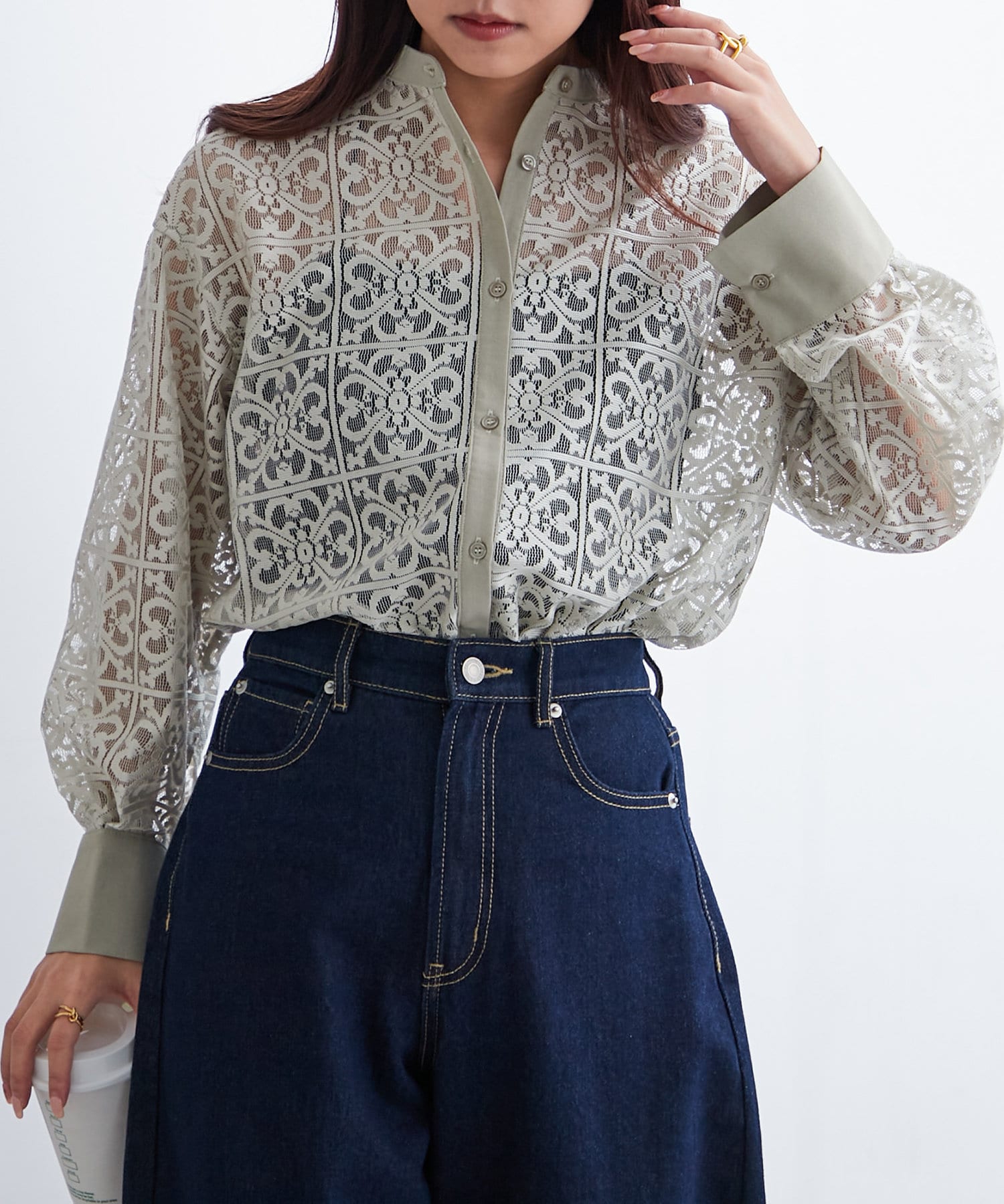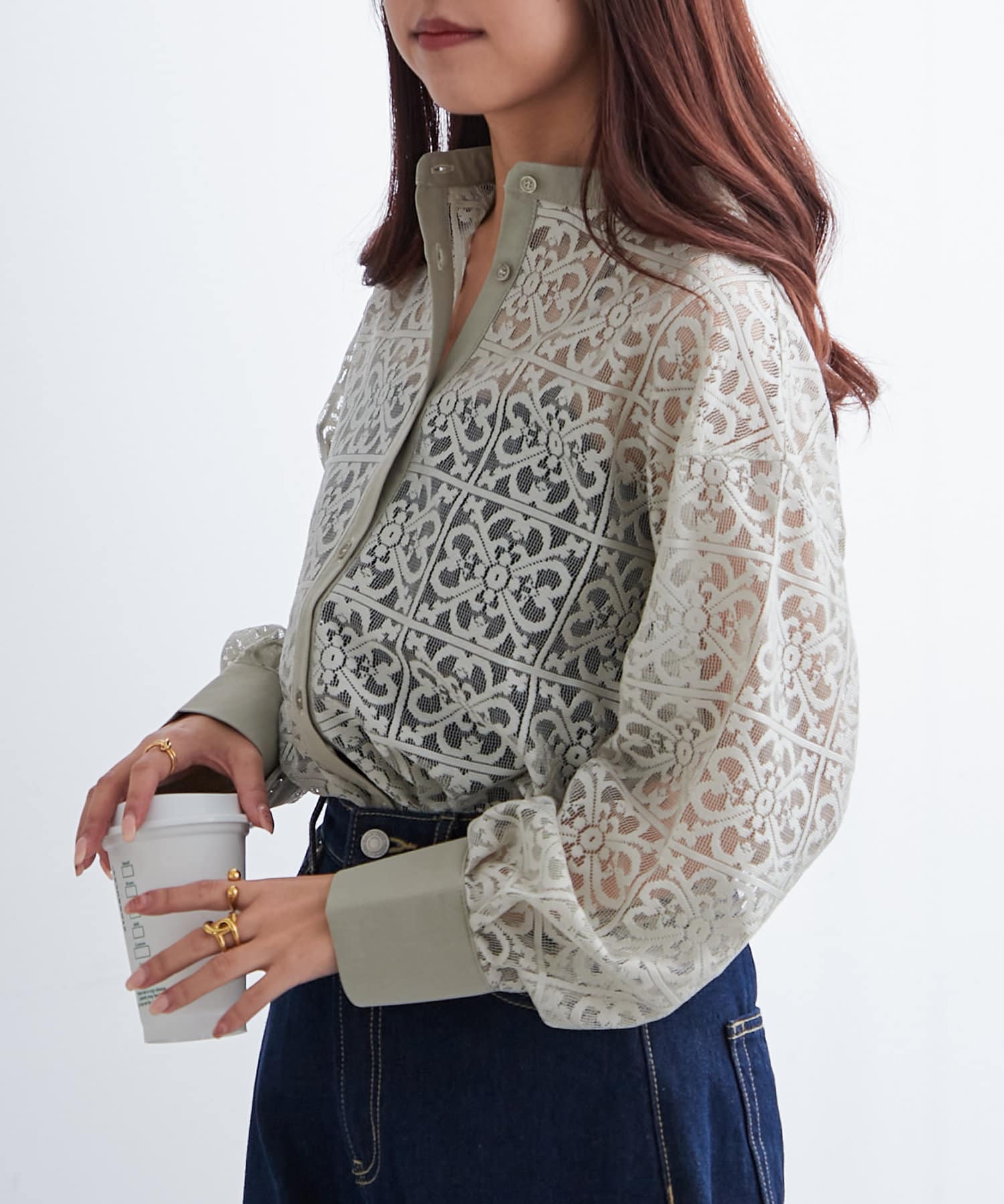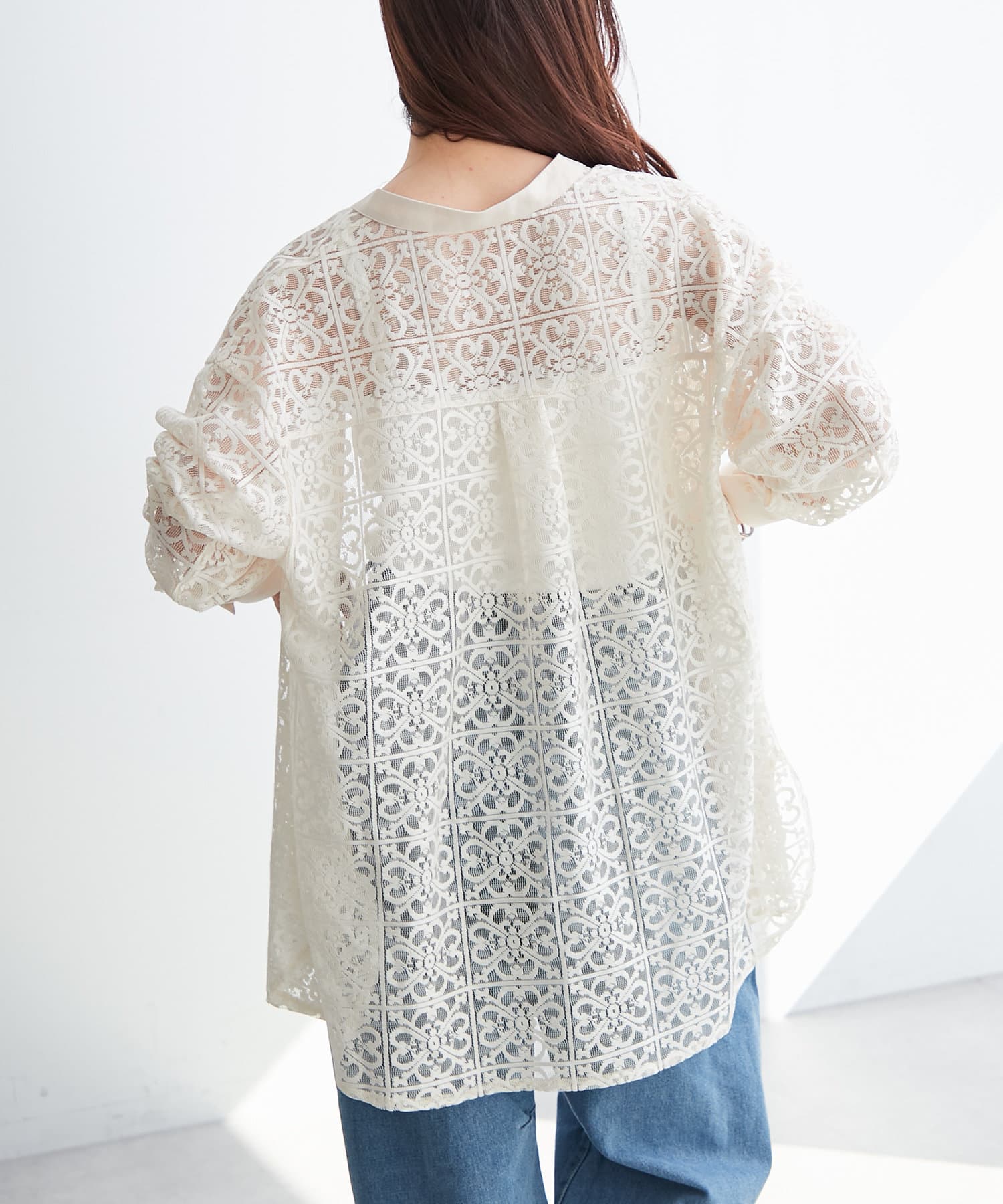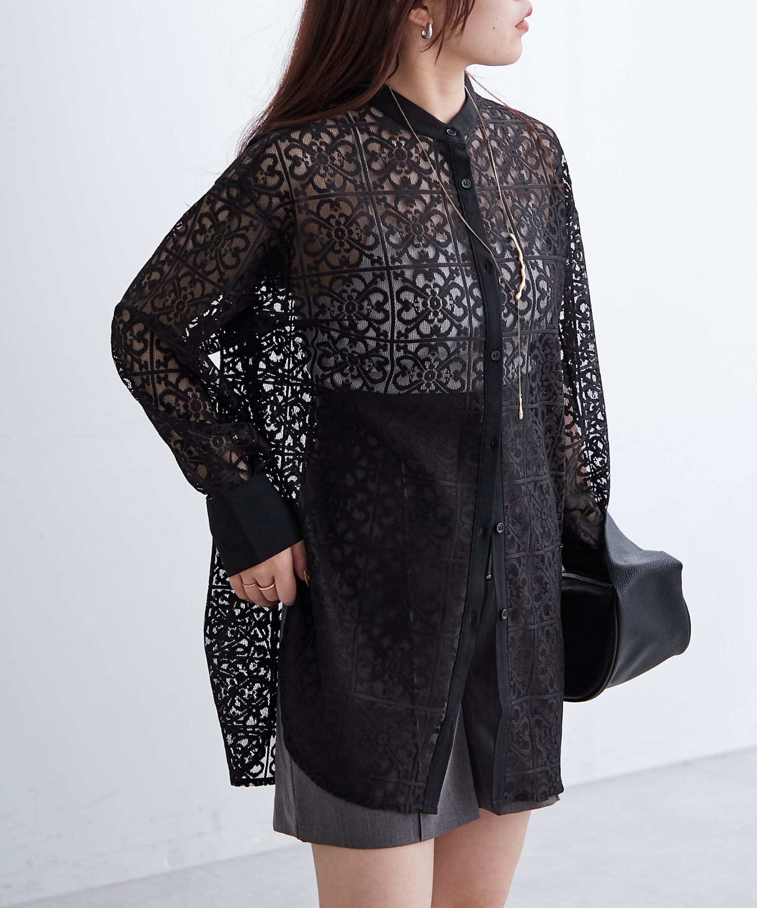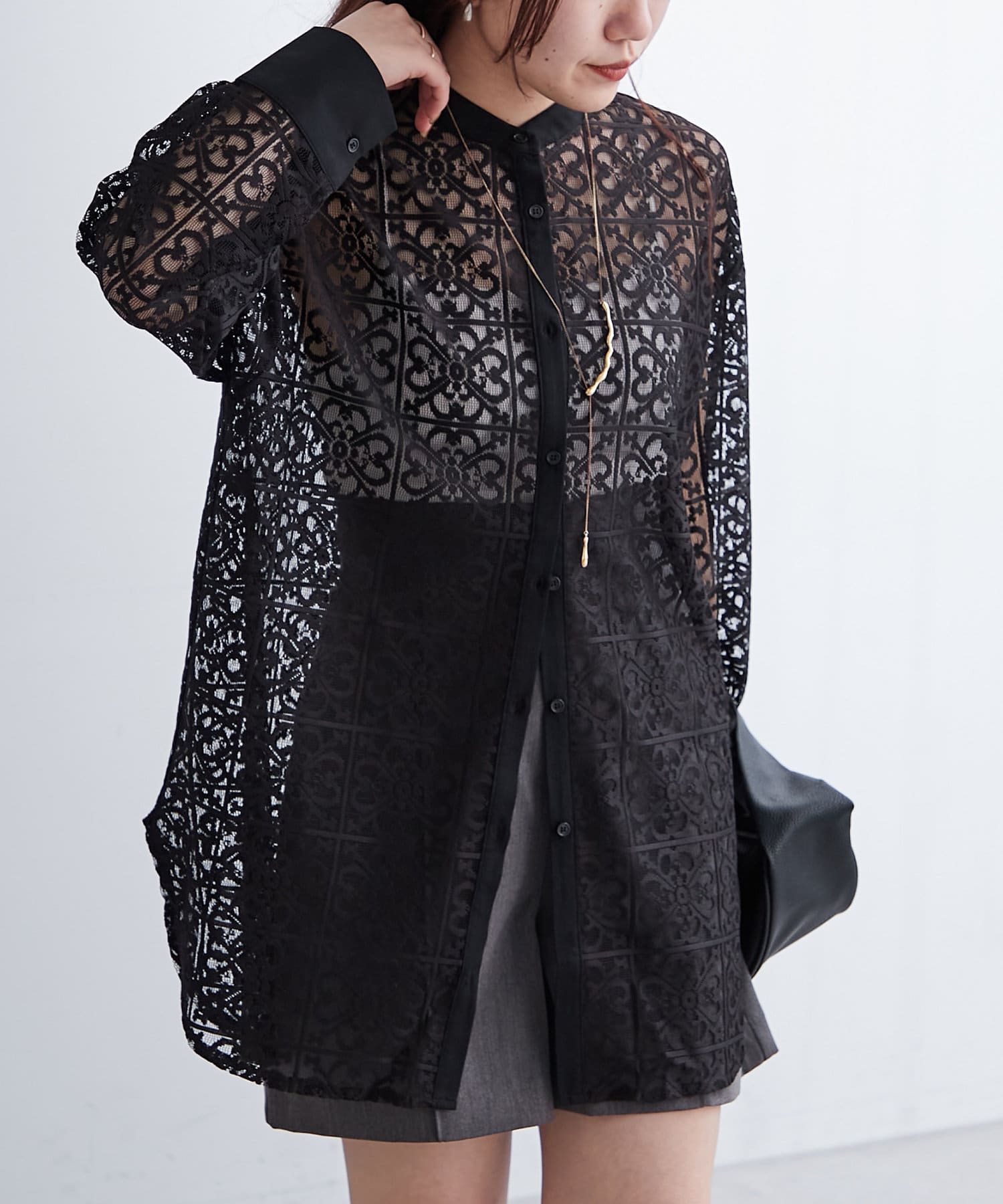 スタンドカラーレースシャツ
