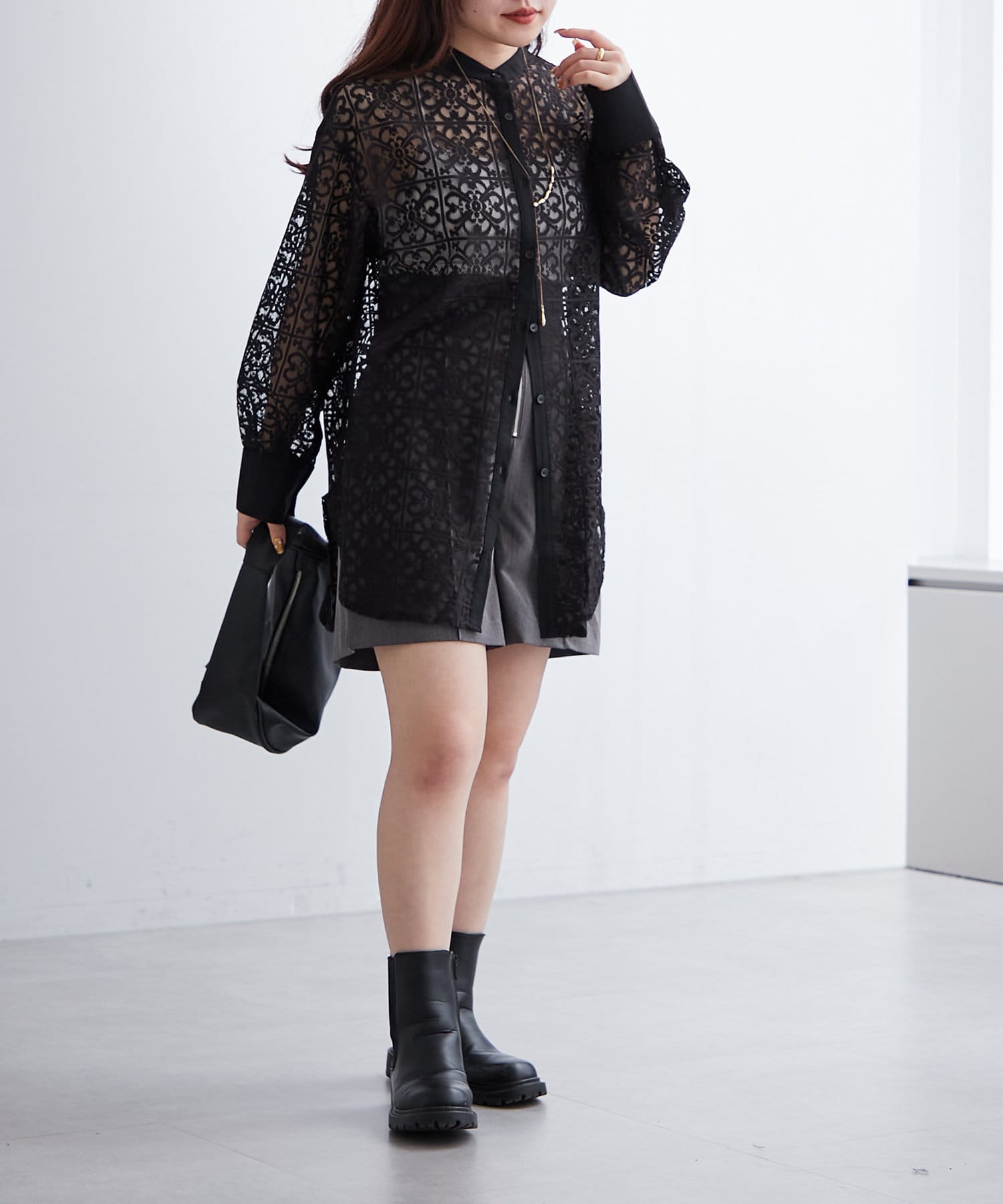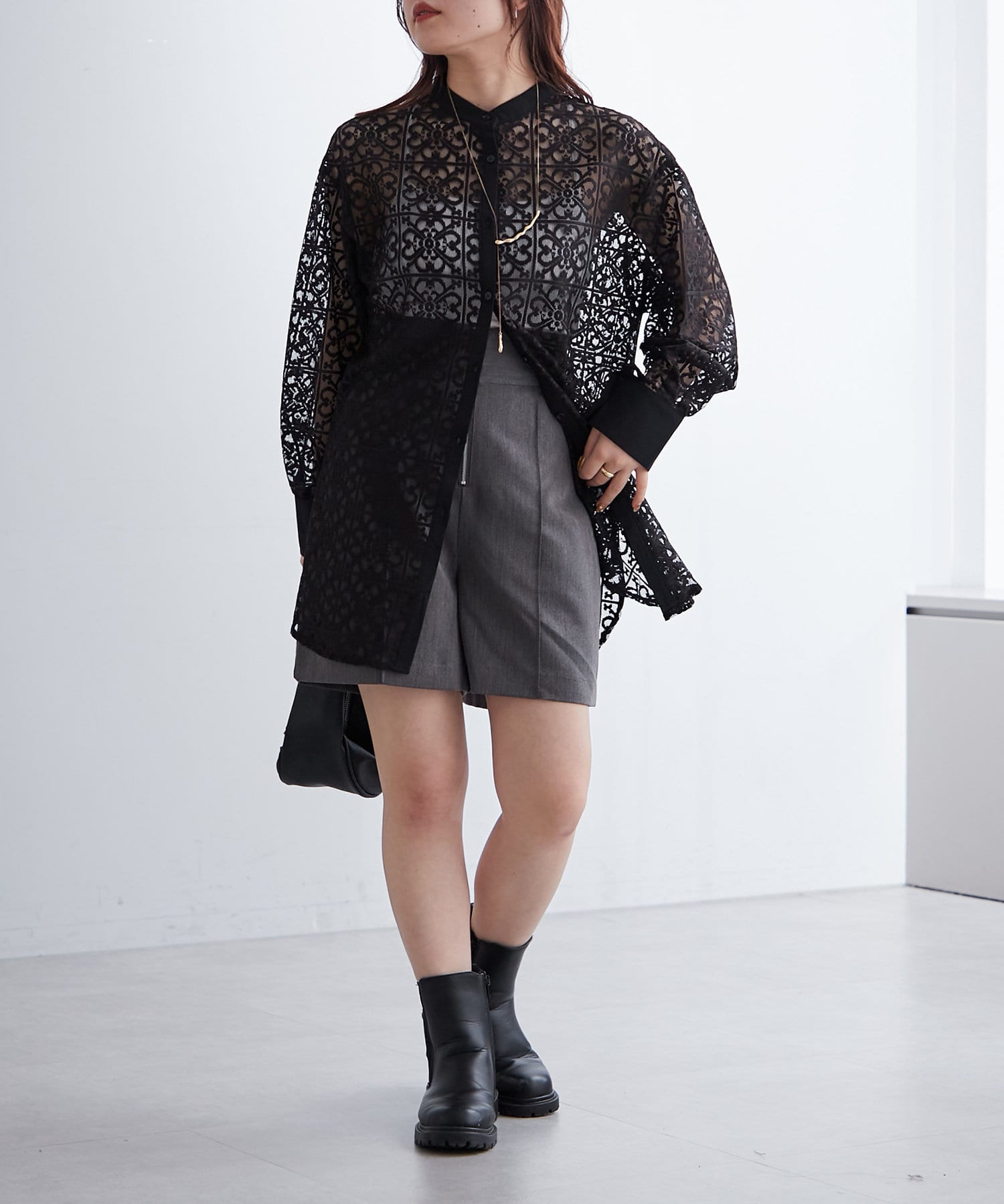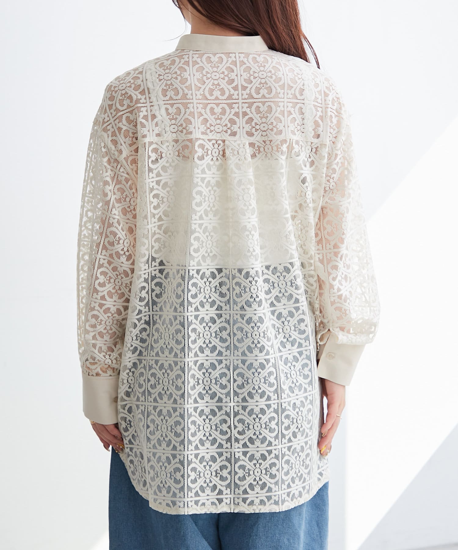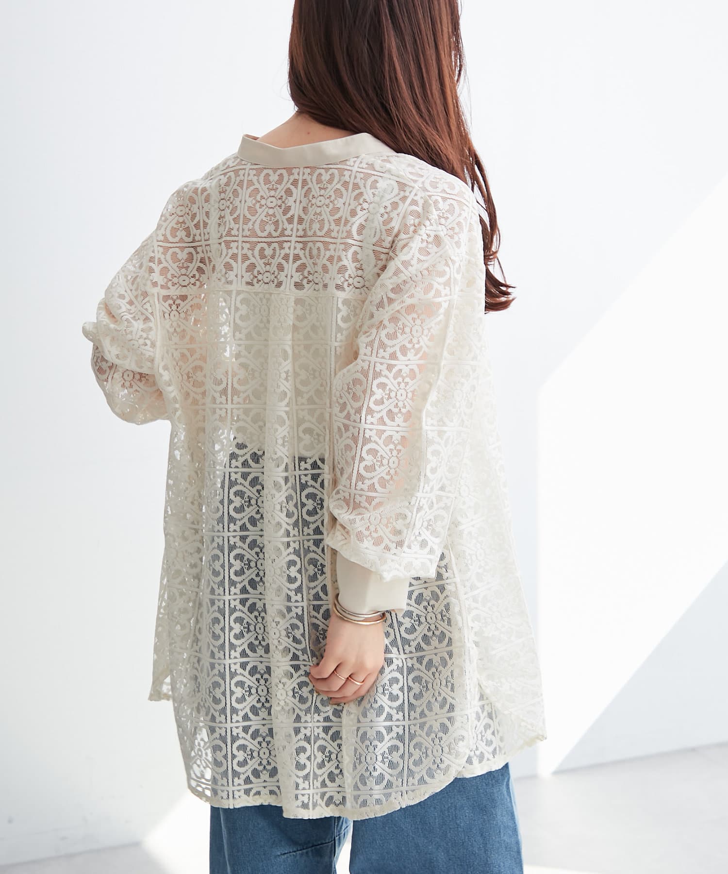 スタンドカラーレースシャツ